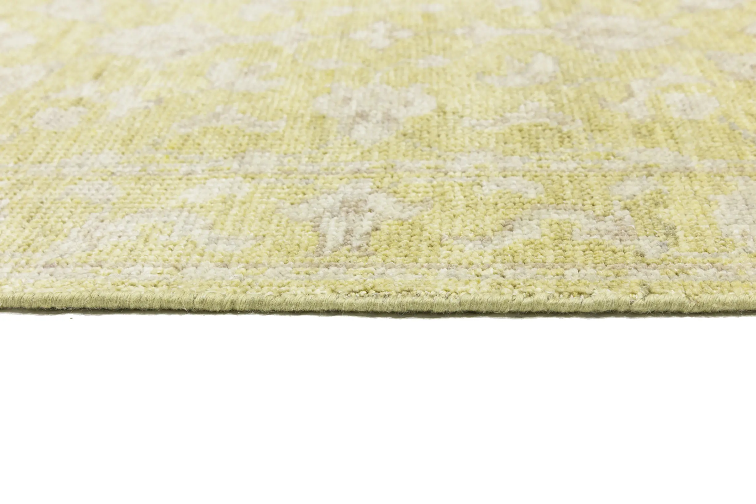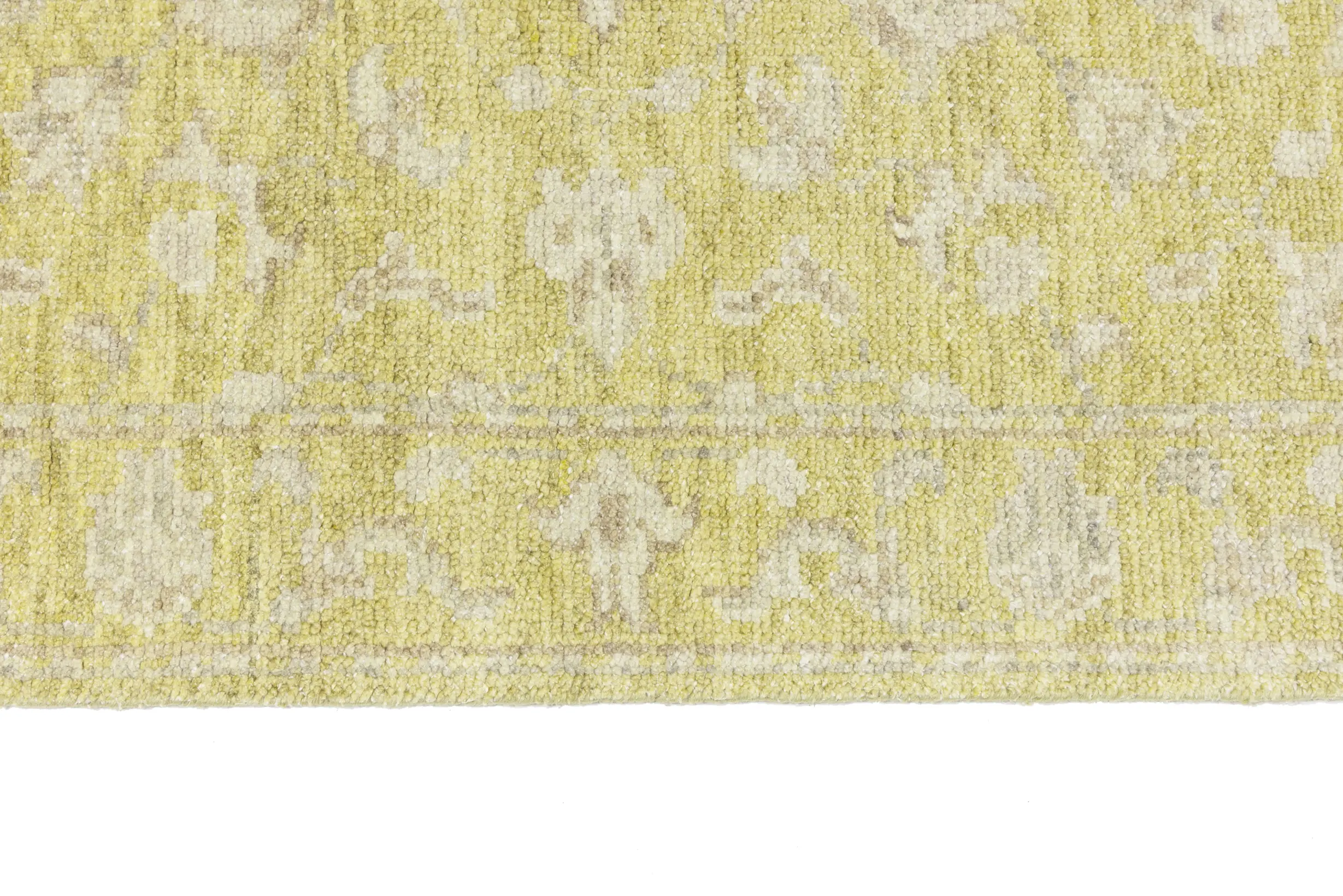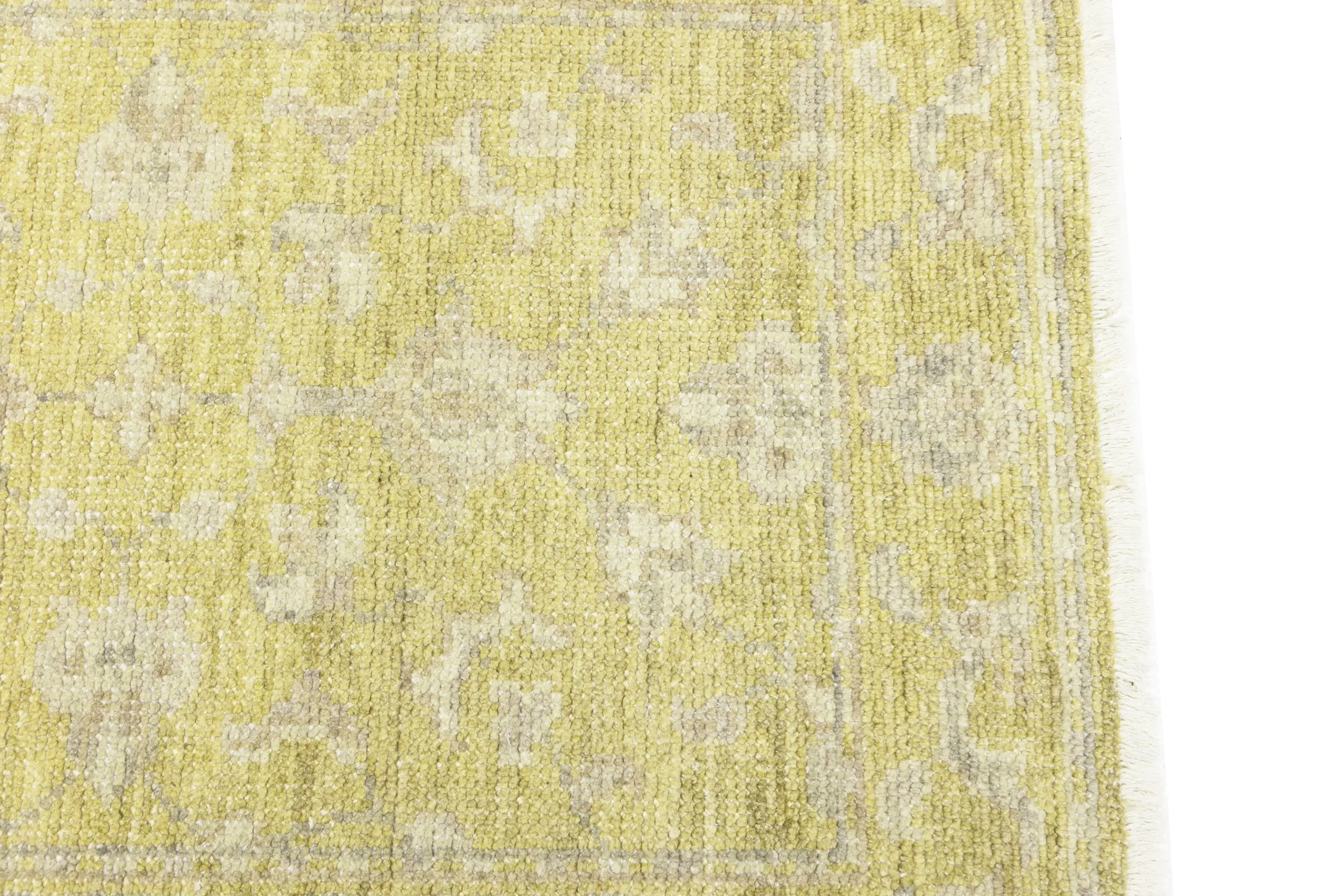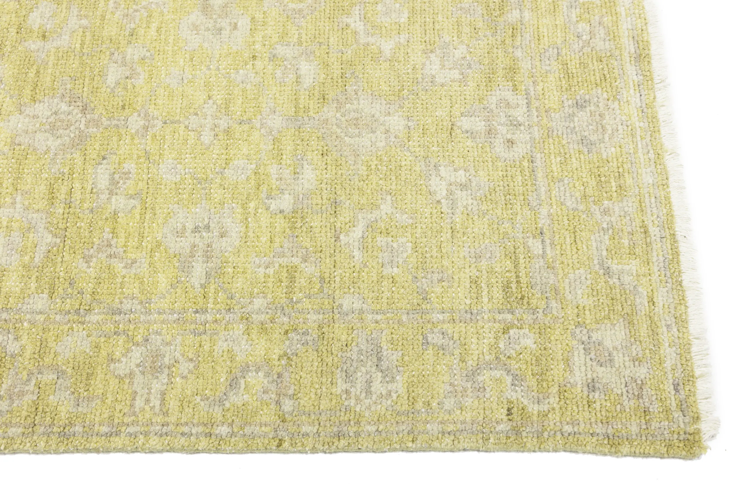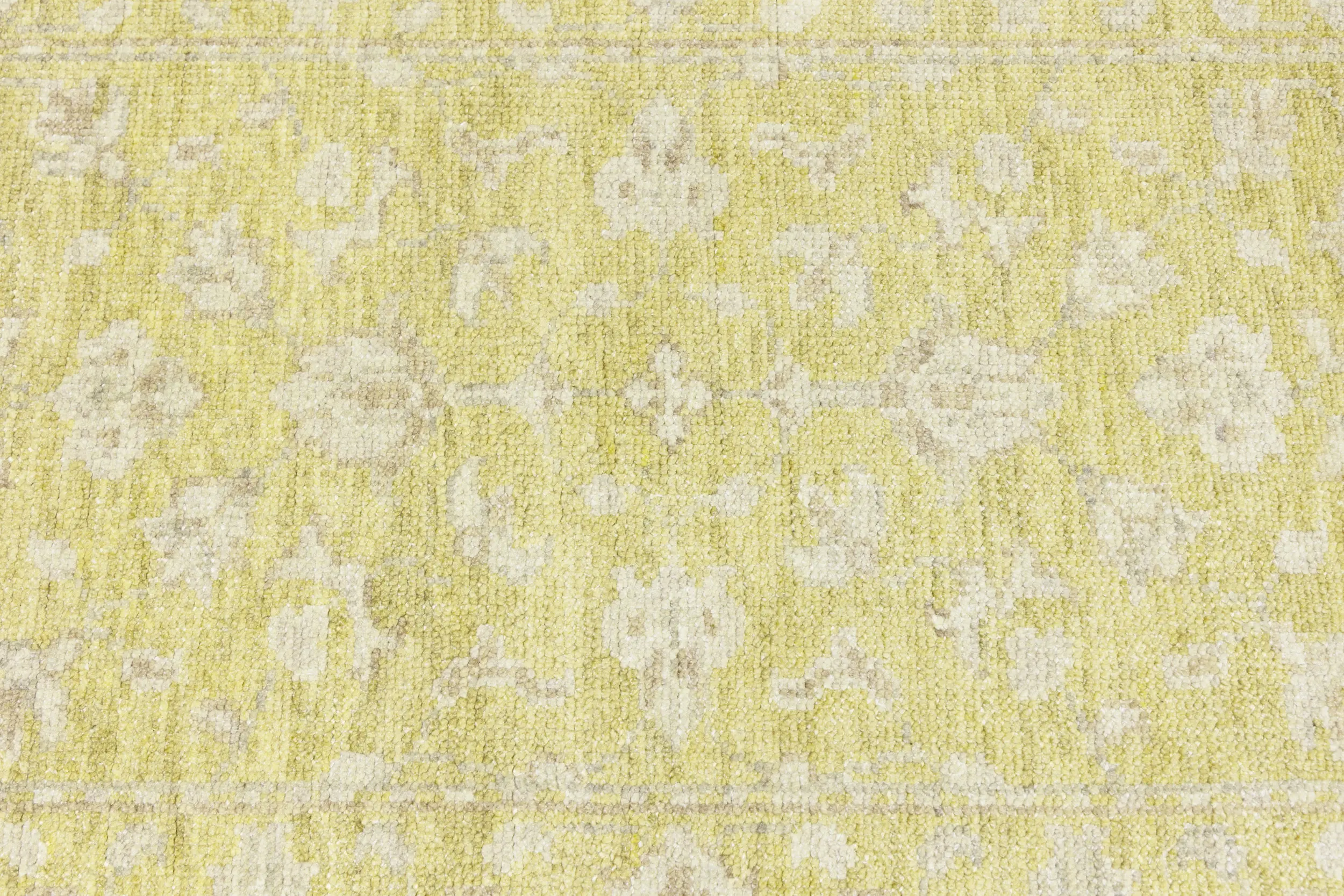 Muted Golden Yellow Floral 3X10 Transitional Oriental Runner Rug