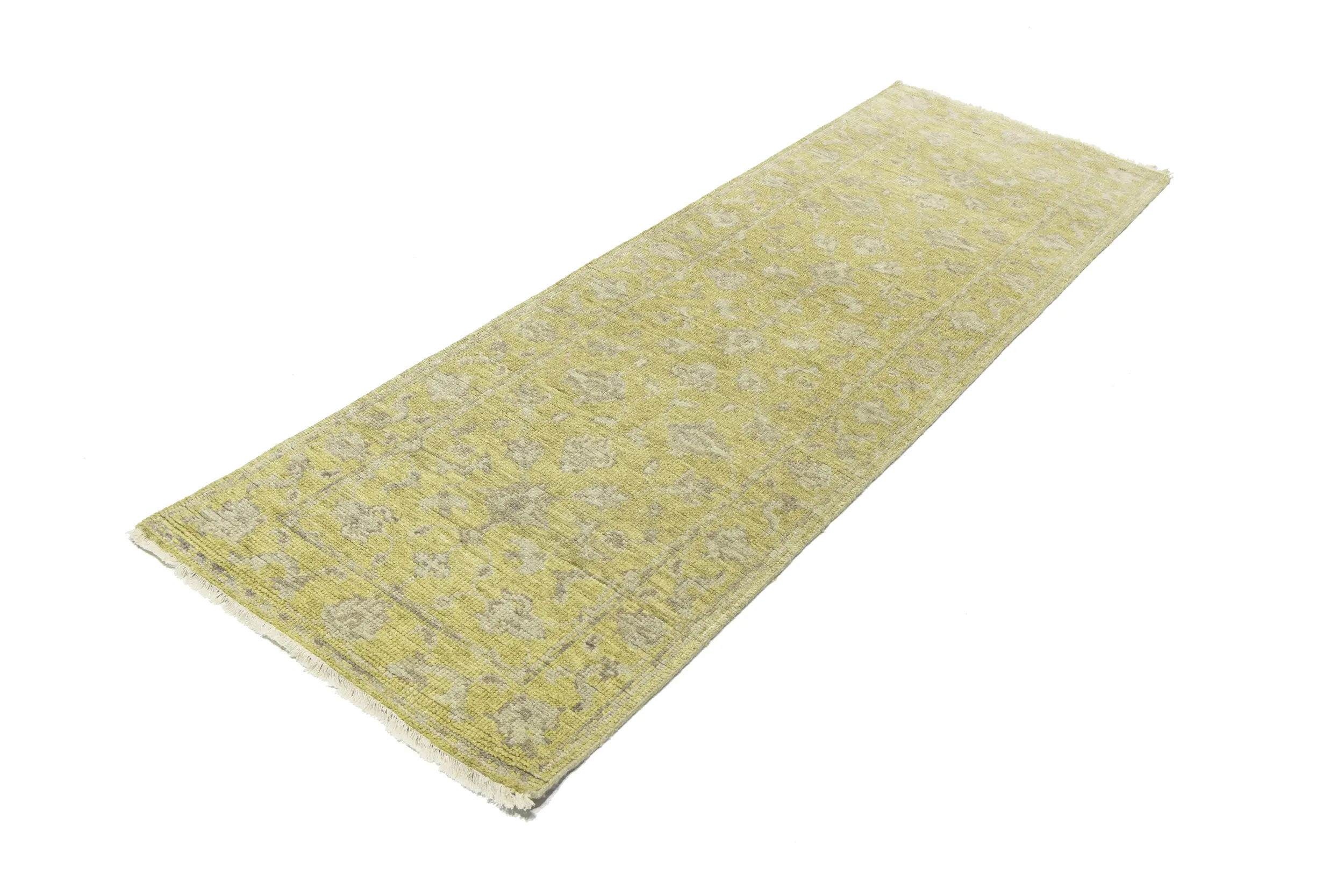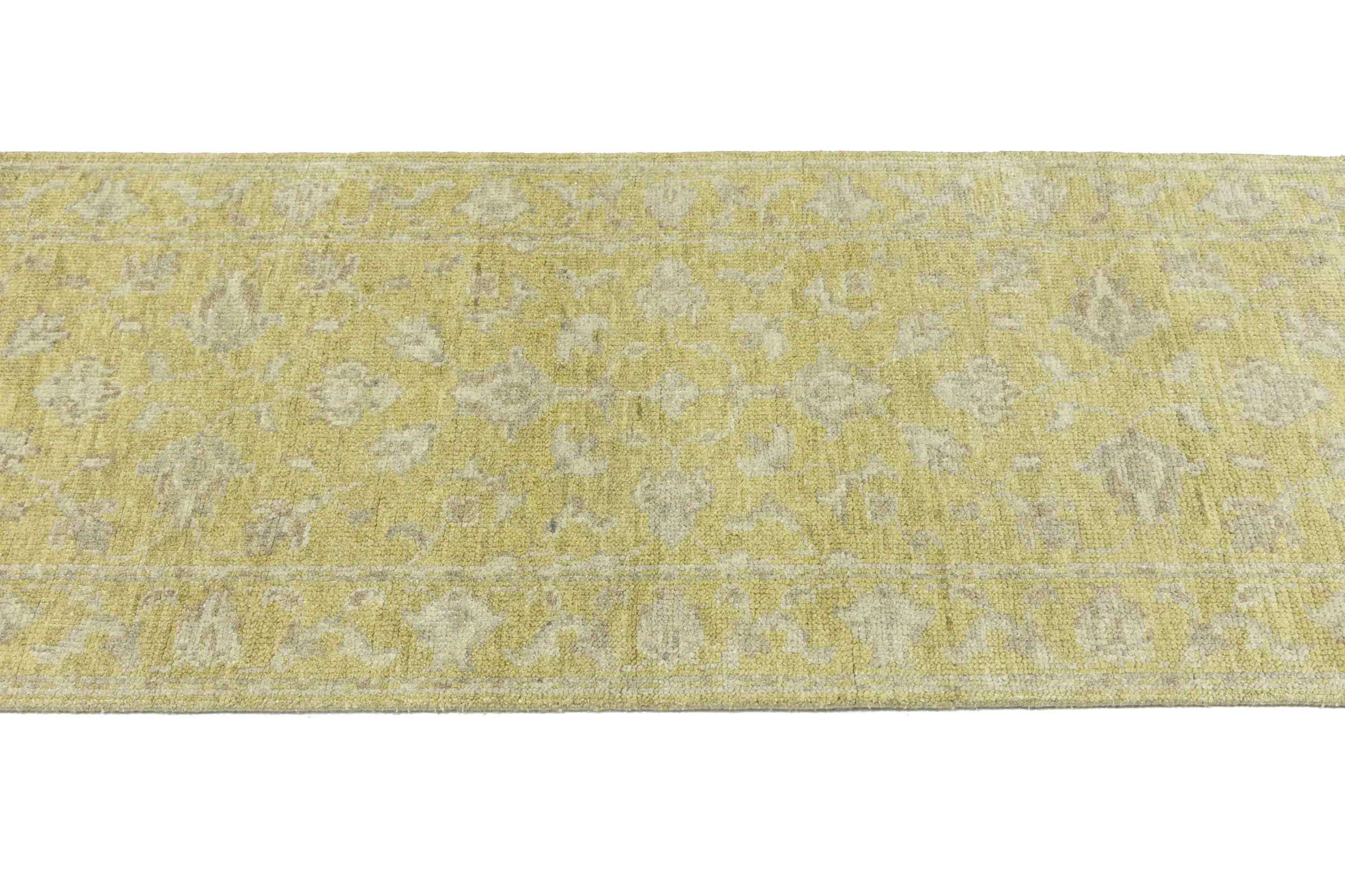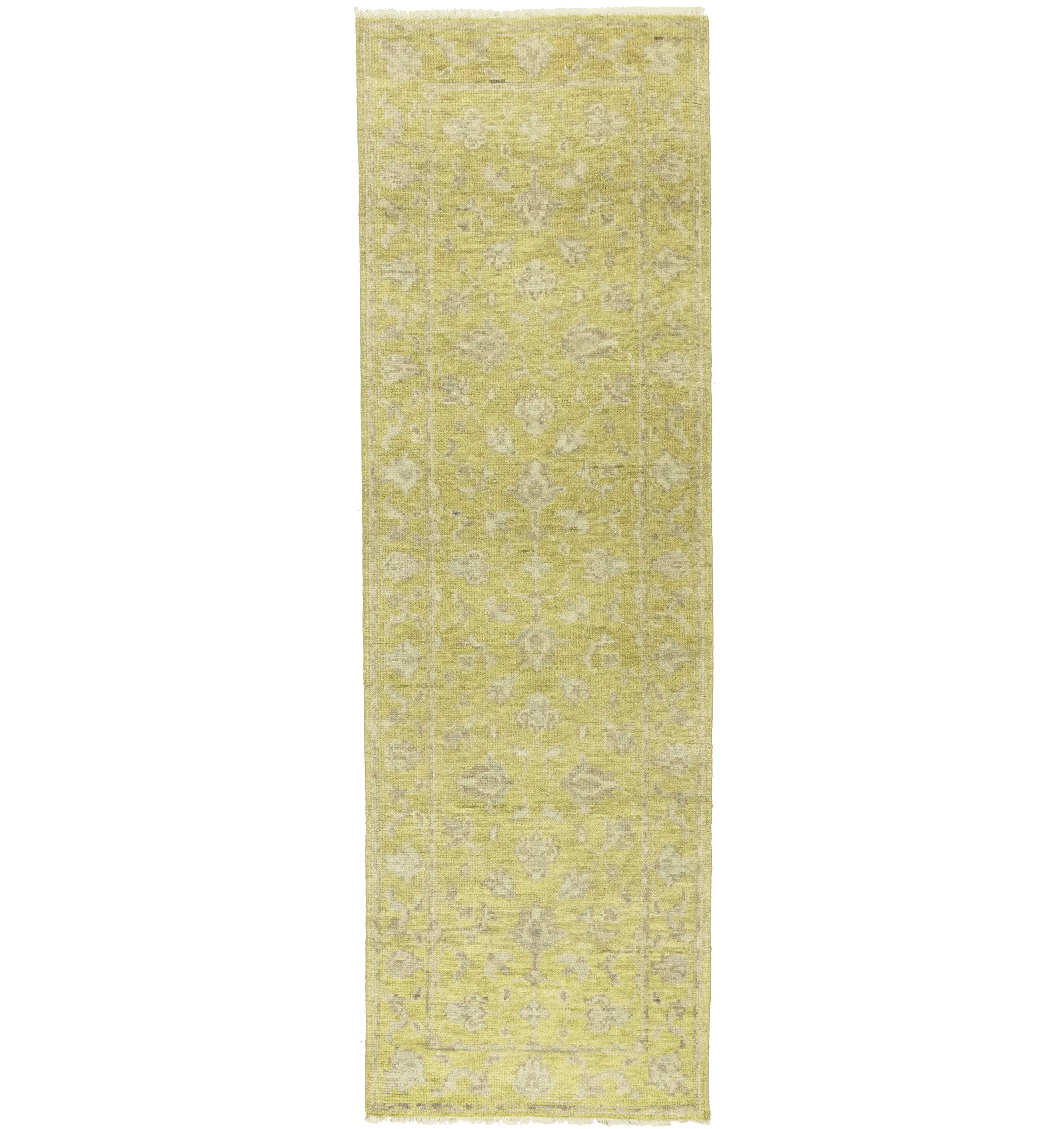 Muted Golden Yellow Floral 3X8 Transitional Oriental Runner Rug