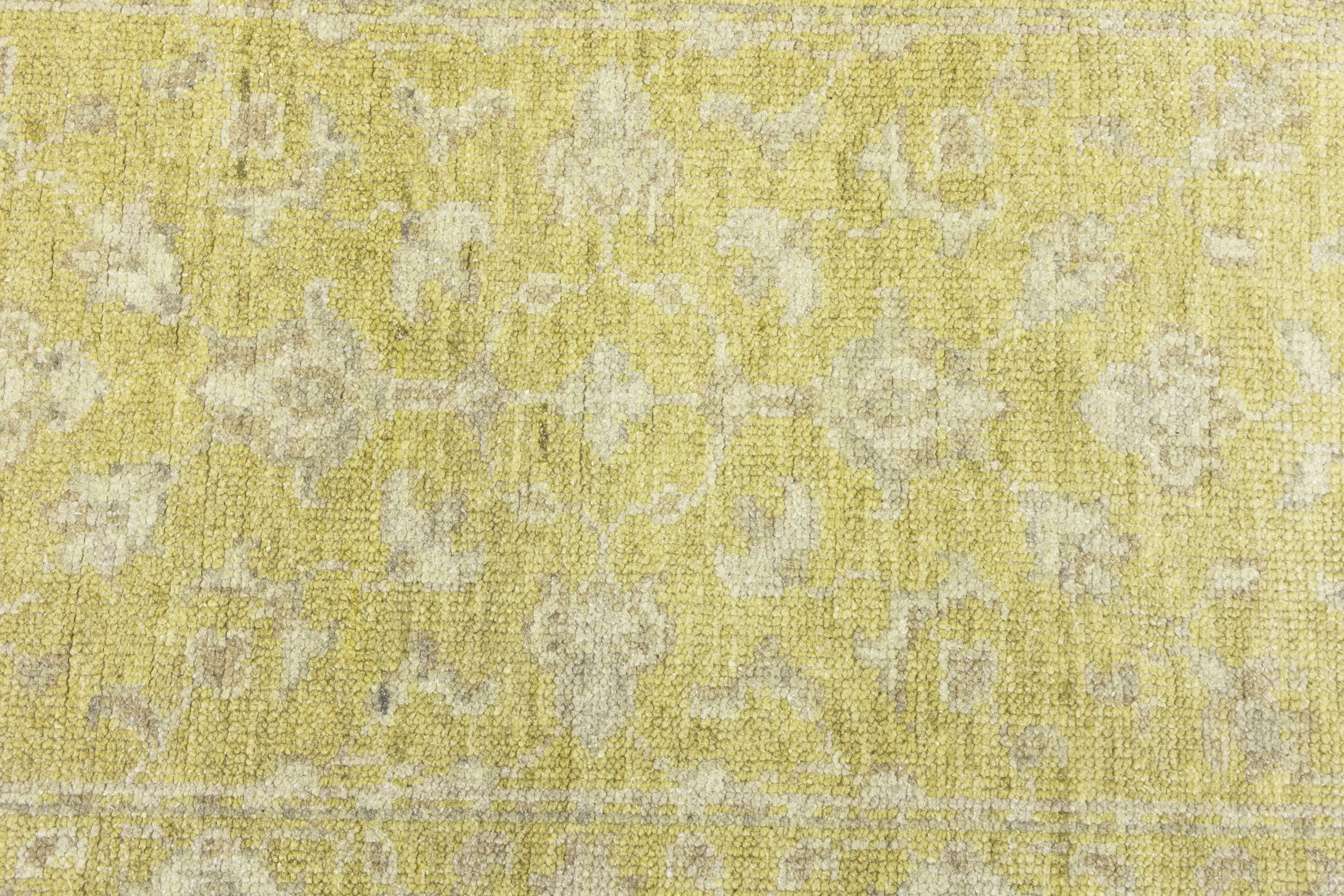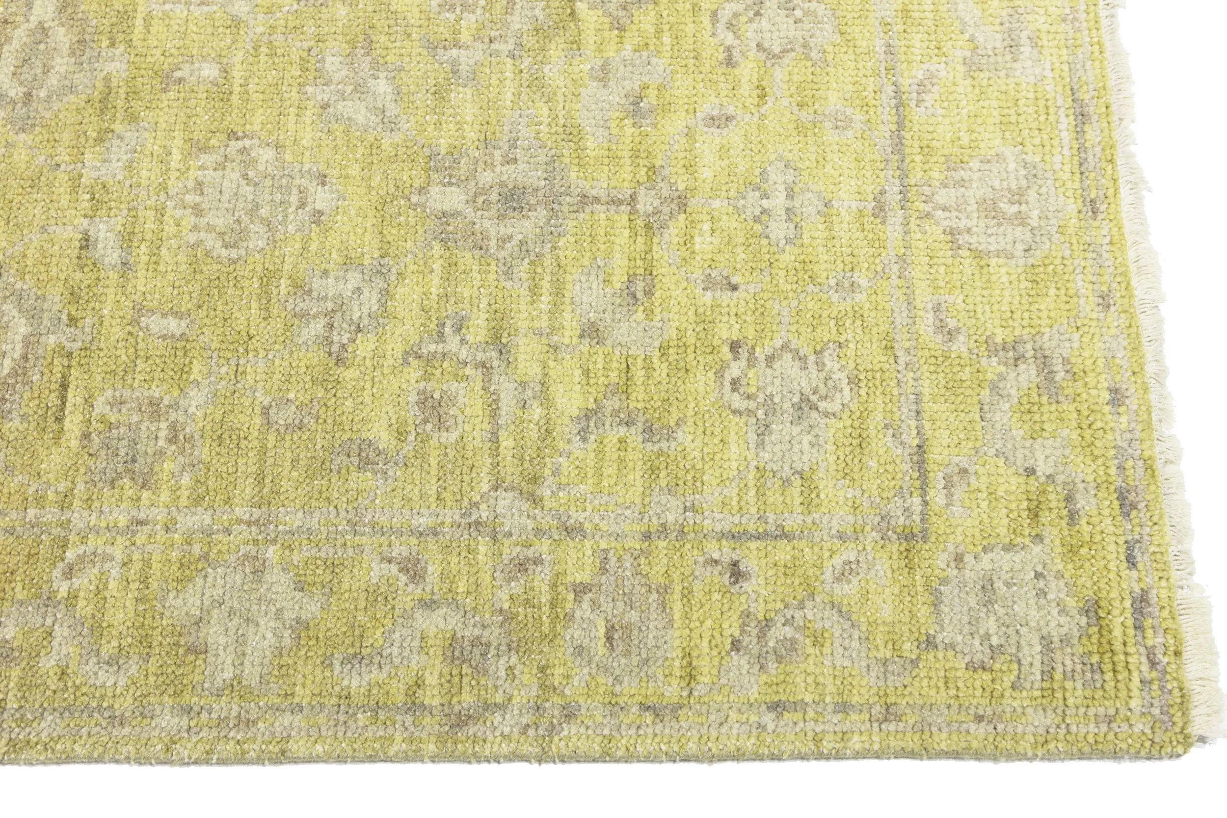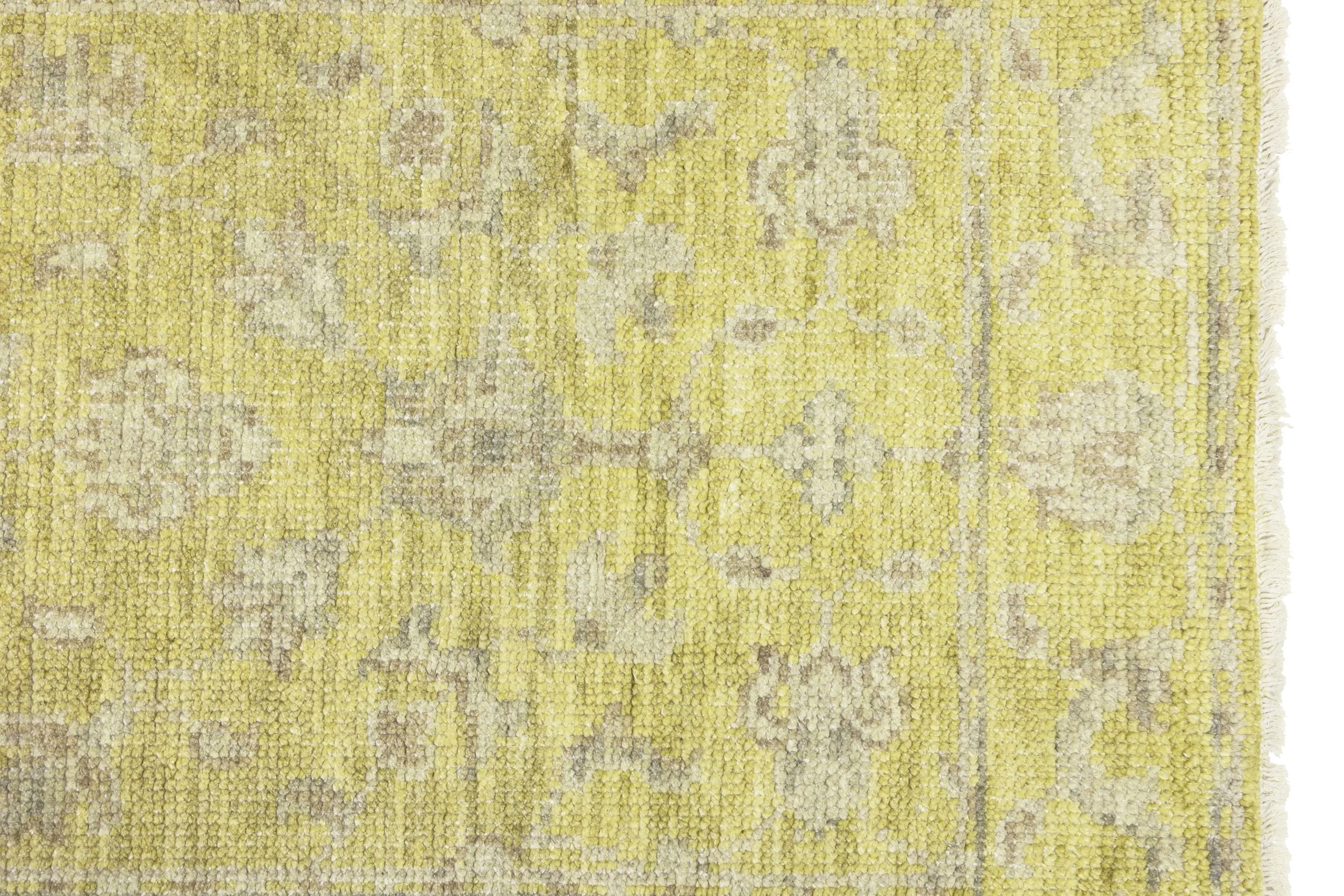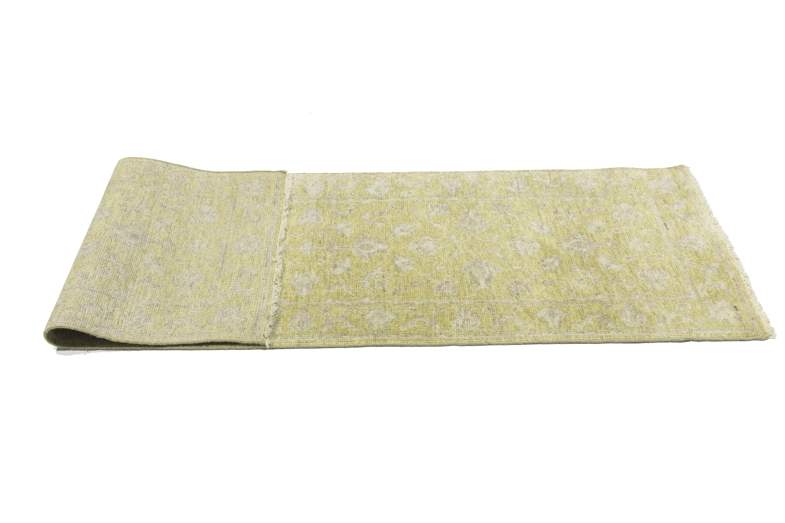 Muted Golden Yellow Floral 3X8 Transitional Oriental Runner Rug