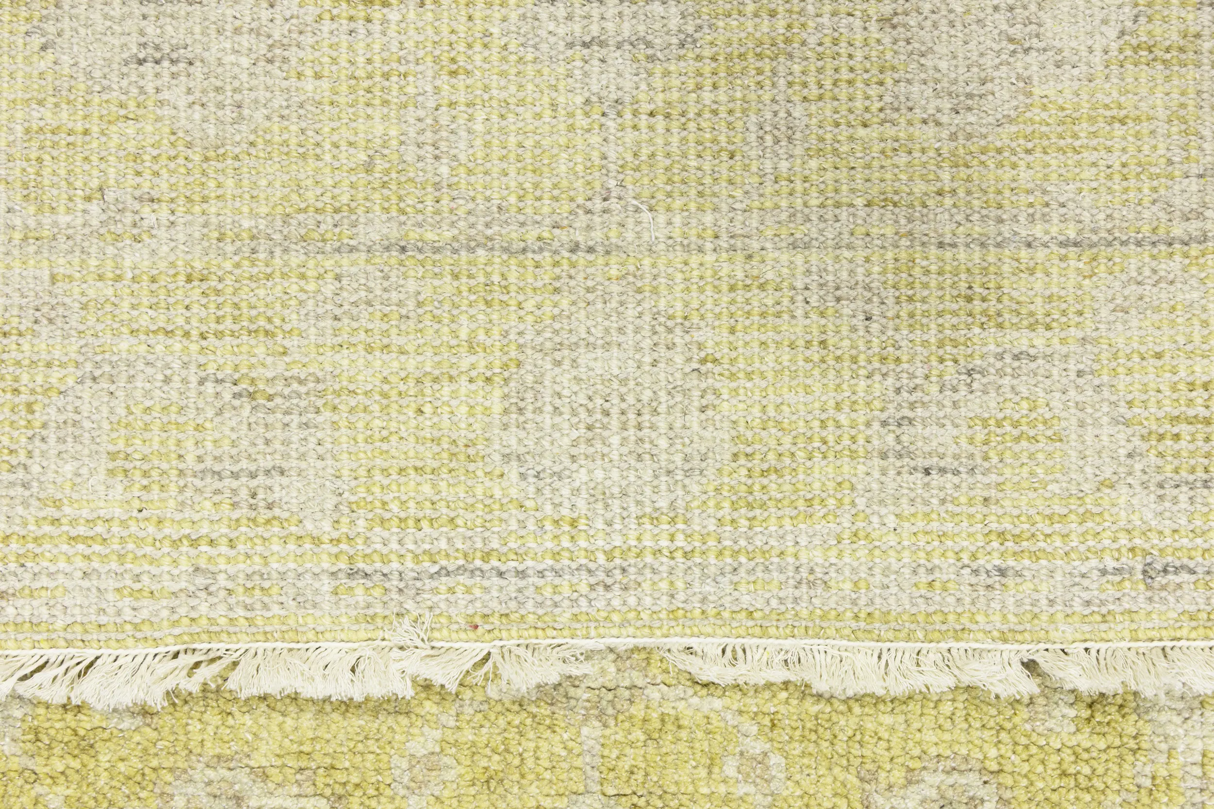 This genuine 3X8 yellow new Oriental runner was made by the hands of gifted weavers inspired by a variety of spectacular artistic designs, to recreate the aged look of the original piece with a richness of color and ornately patterned background field. What set this vintage style Oriental area runner from the others are the material and dye used (wool pile and cotton foundation), knot count, ancient designs, fantastic grades, and its regional historical connection: it has deep roots, from the story of the people who produced it to the meaning of the symbols and colors displayed across its canvas that have been praised for centuries. This Indian home décor carpet will be completely cozy and inviting that never will go out of style! Also, this Oriental runner would be among your most valuable treasures, it is a great investment that accrues value over time, and it will last for generations because was woven with high-quality, all-natural wool. Environmentally friendly, opulent yet affordable; this rug will give you a thorough amount of character to help define your living space with elegance and warmth that will capture the eyes and attention of your audience (homeowners, designers, decorators, family and friends).