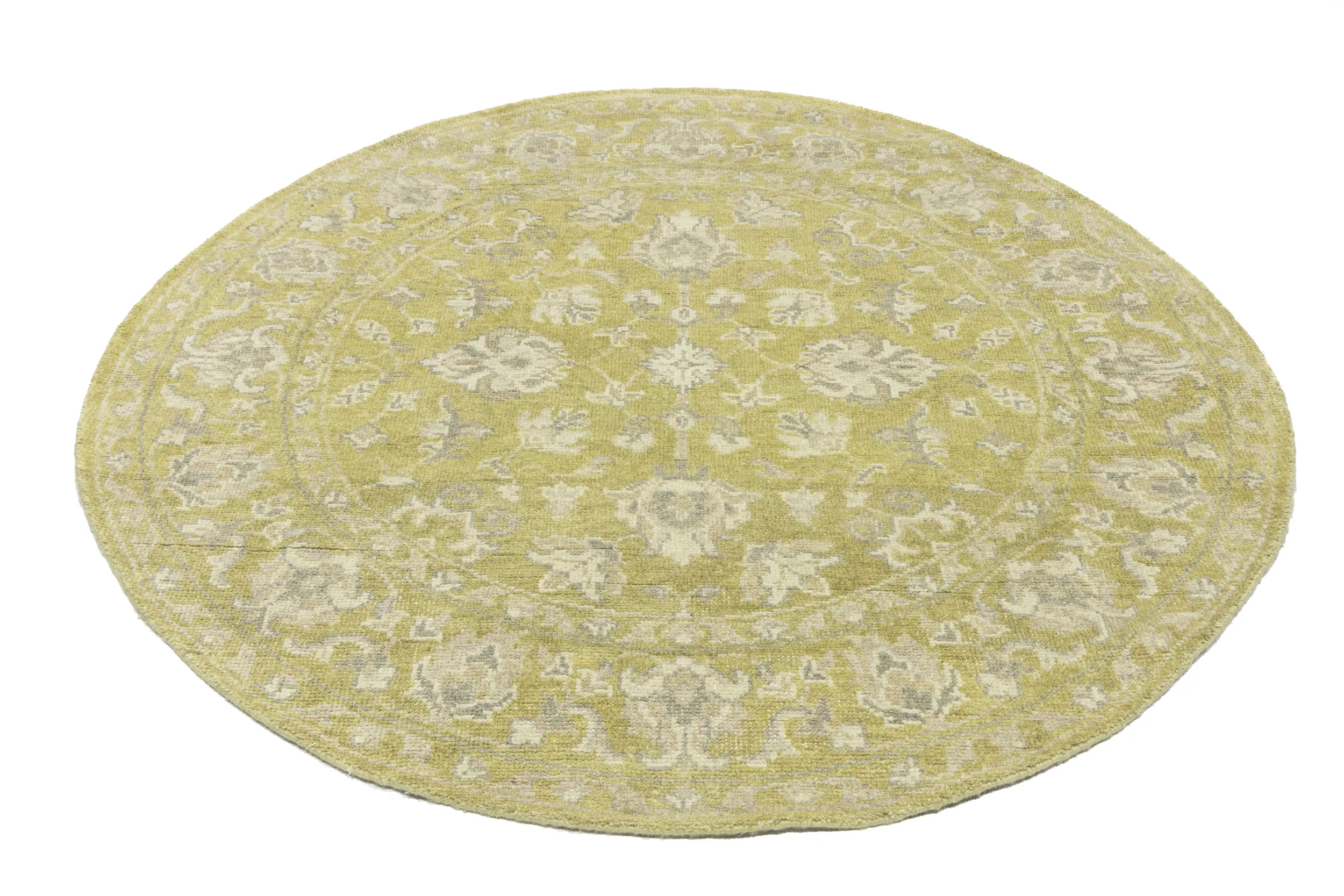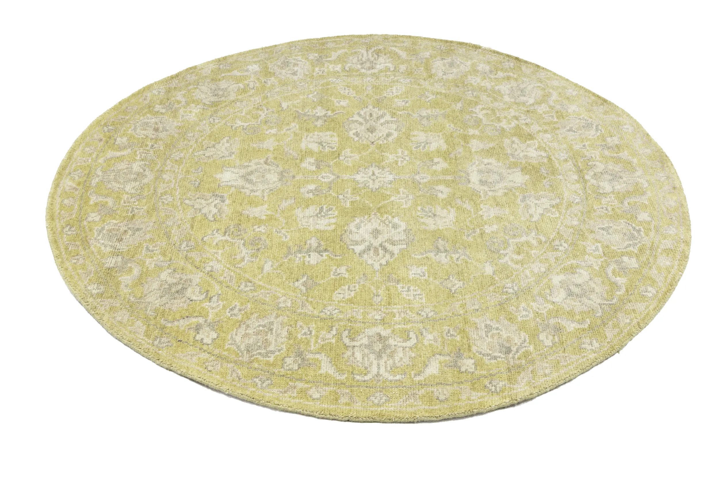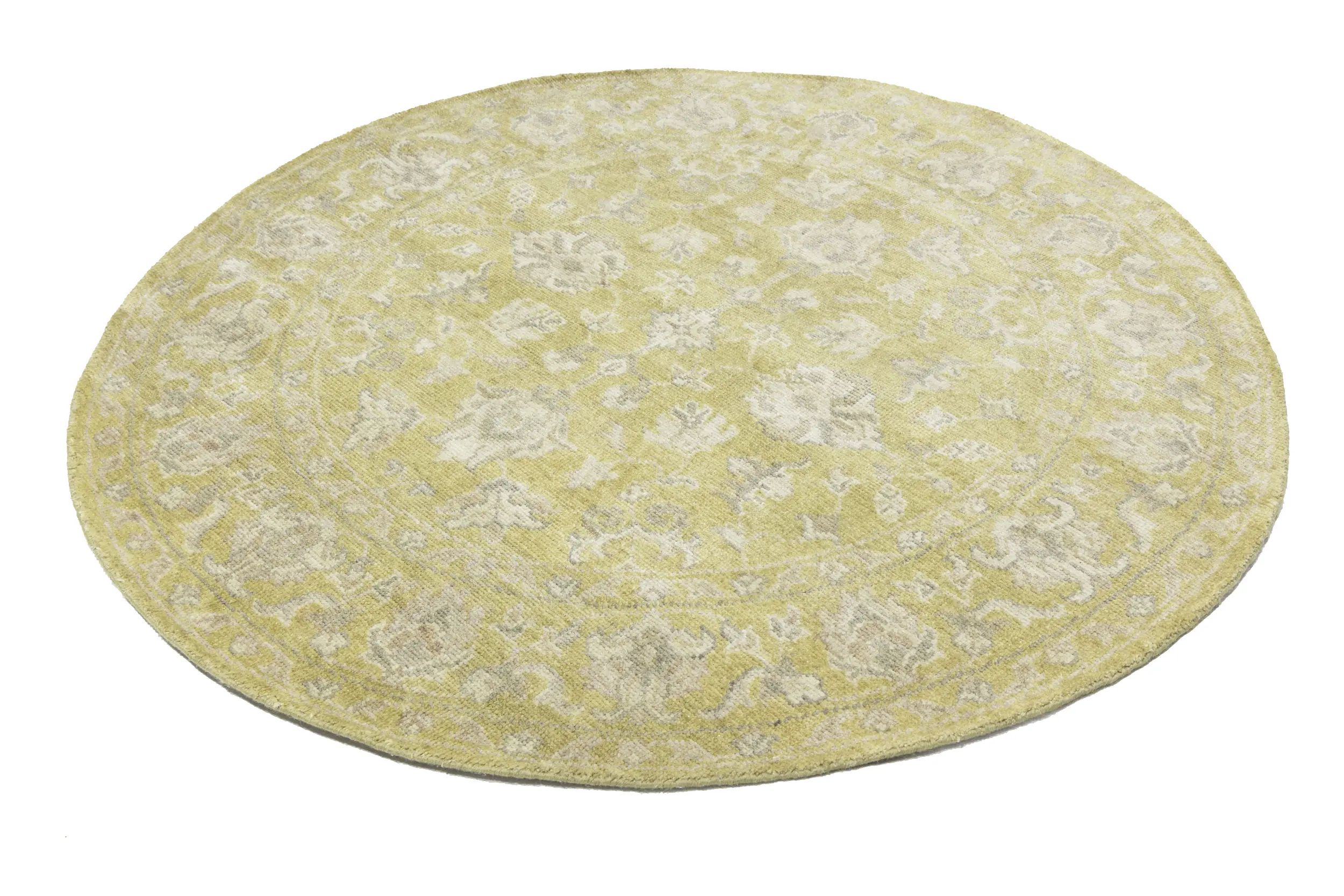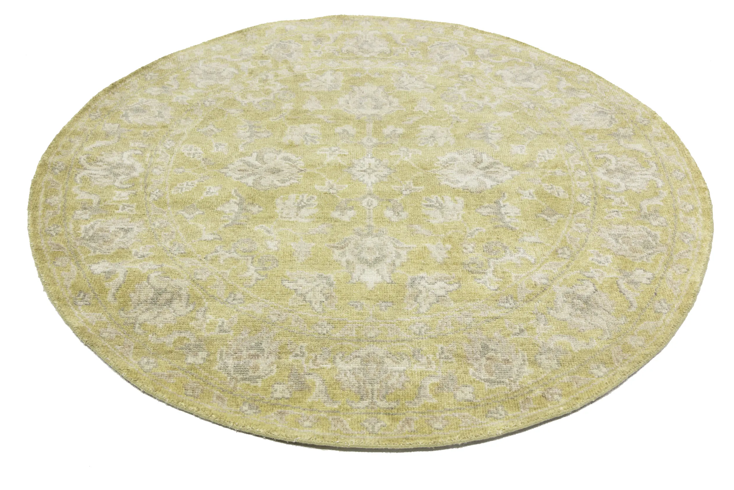 Muted Golden Yellow Floral 6X6 Transitional Oriental Round Rug