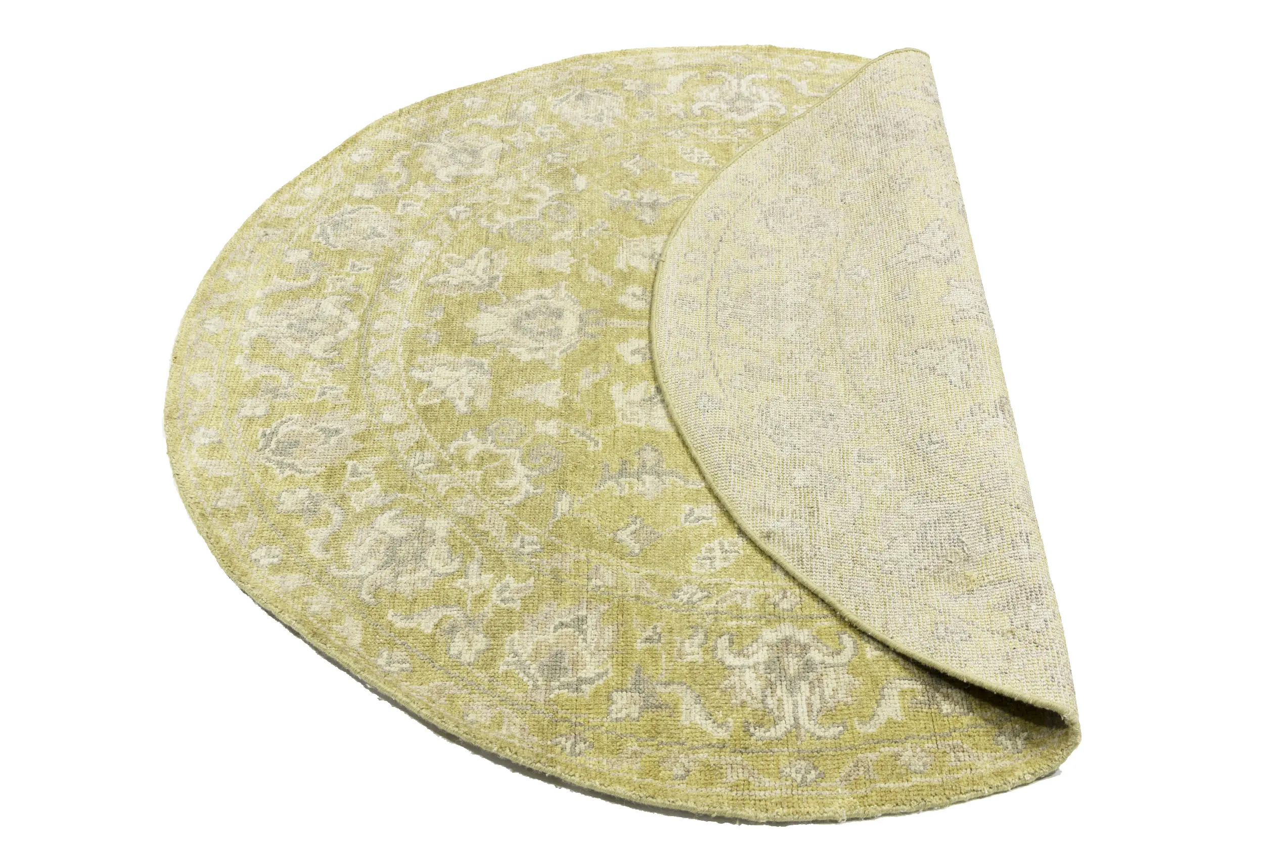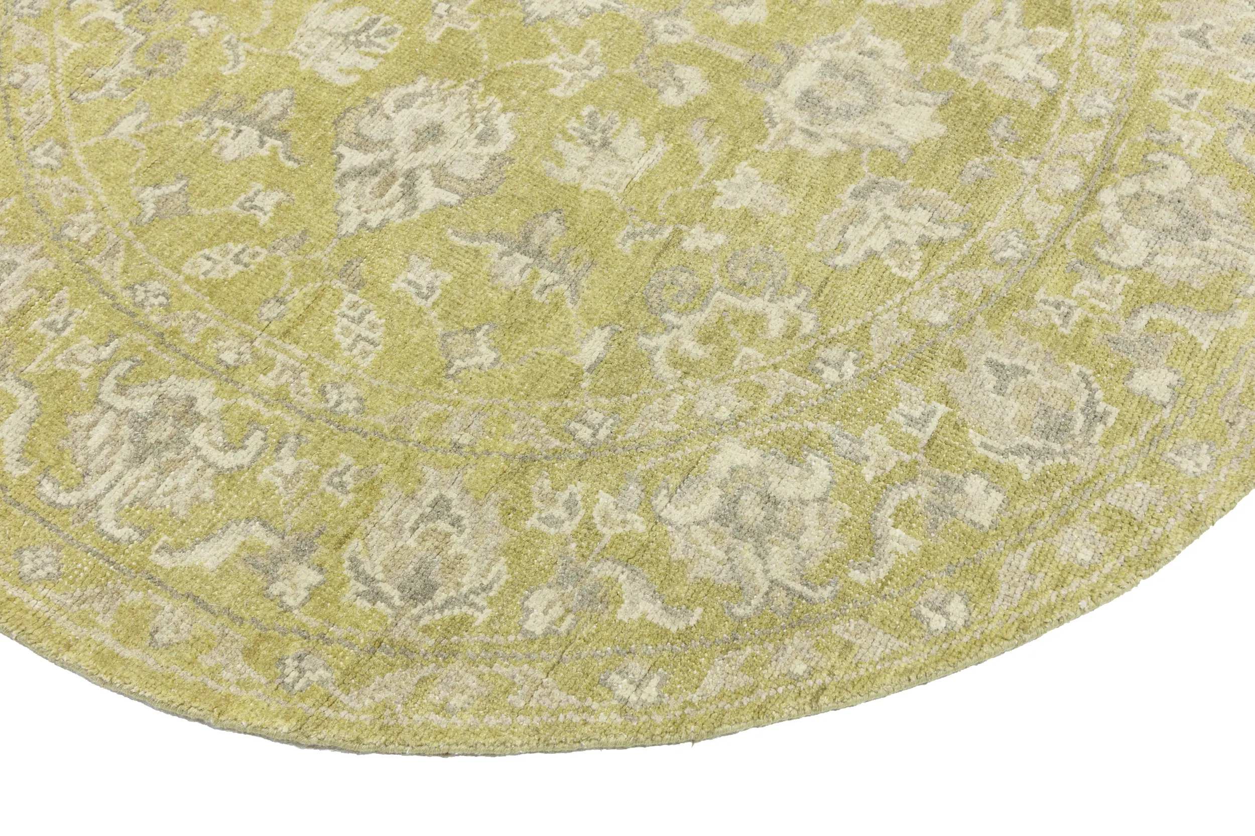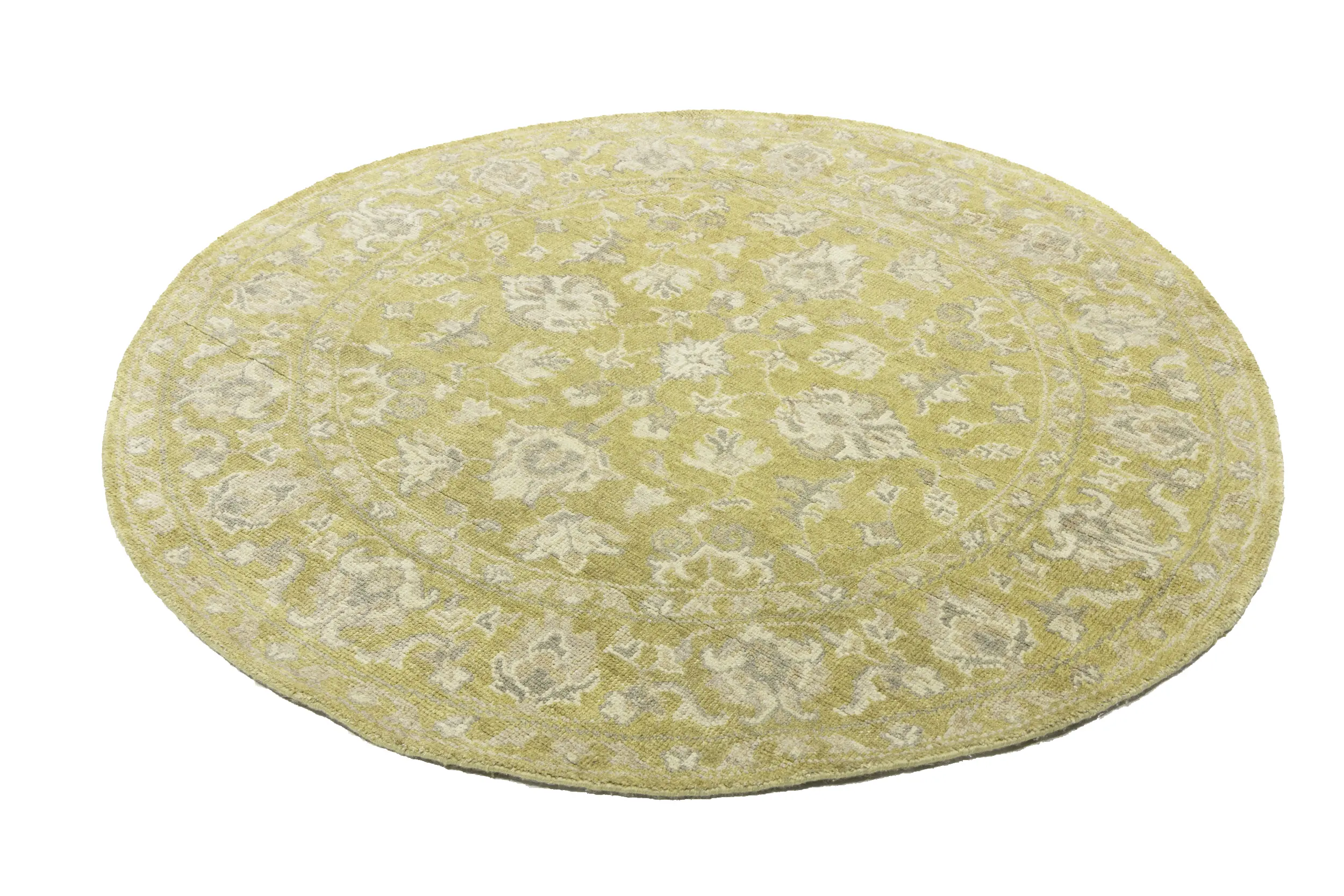 Muted Golden Yellow Floral 6X6 Transitional Oriental Round Rug