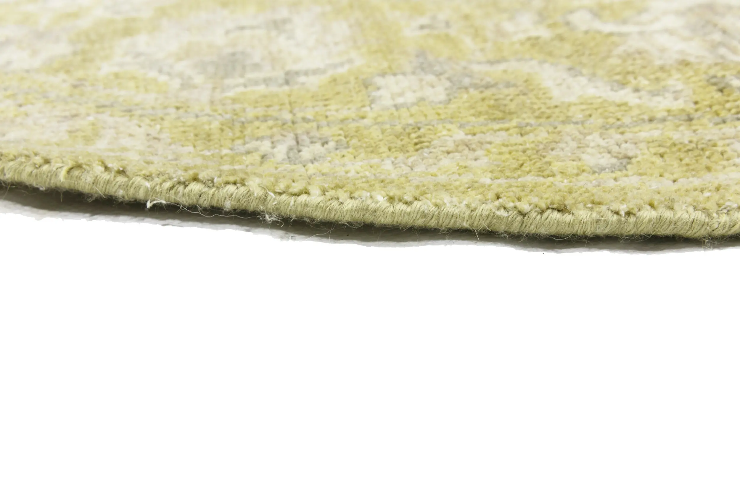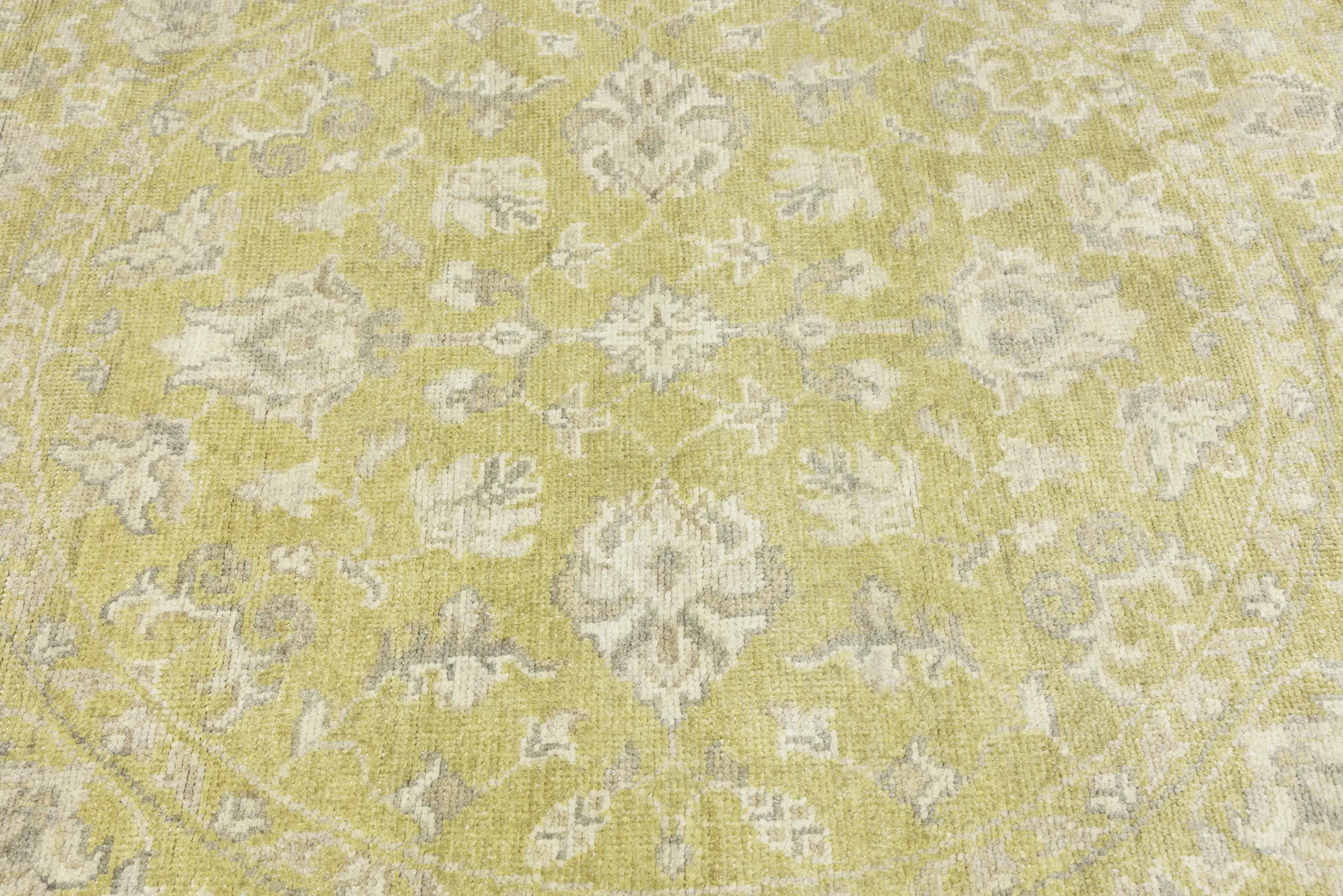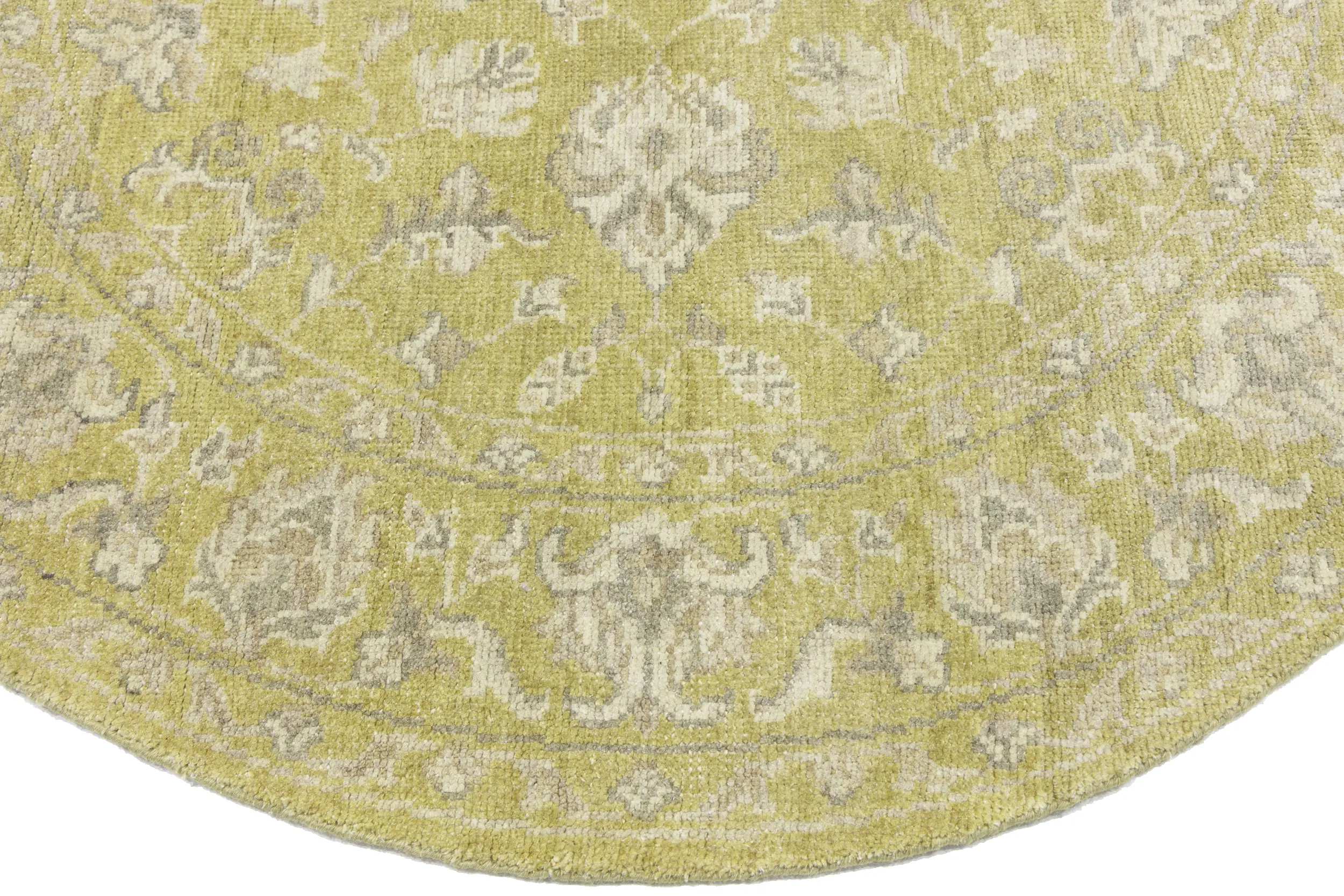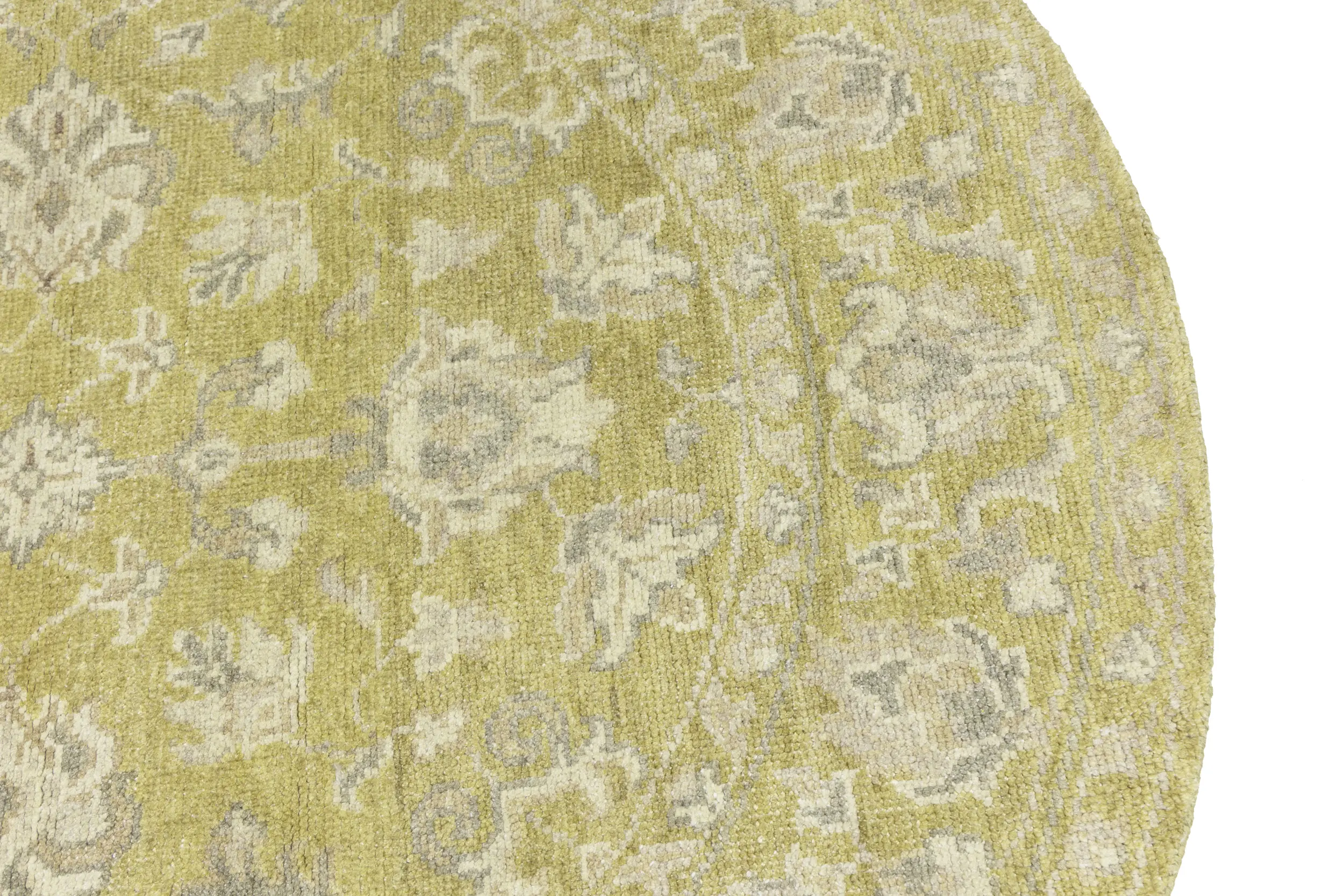 Muted Golden Yellow Floral 6X6 Transitional Oriental Round Rug