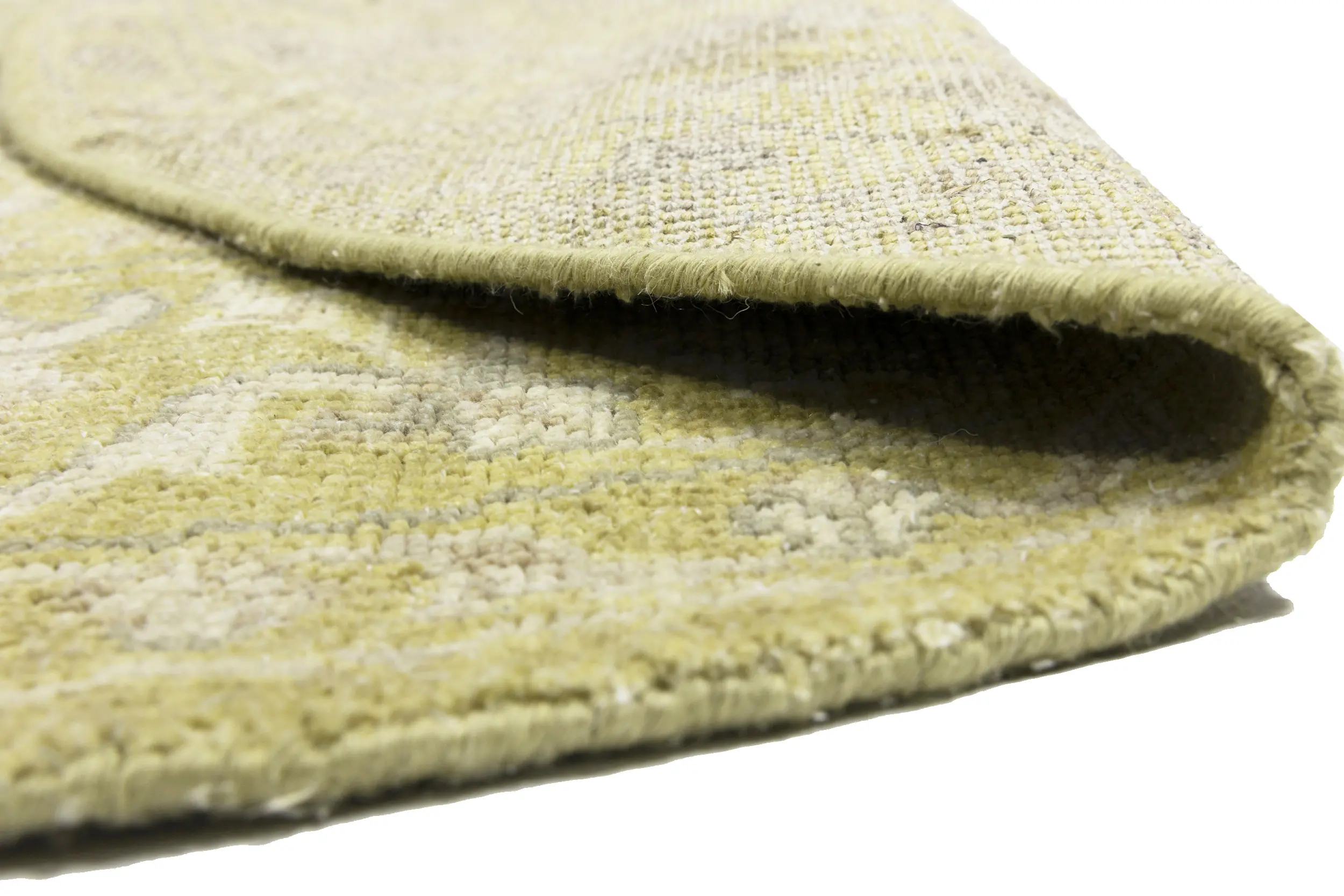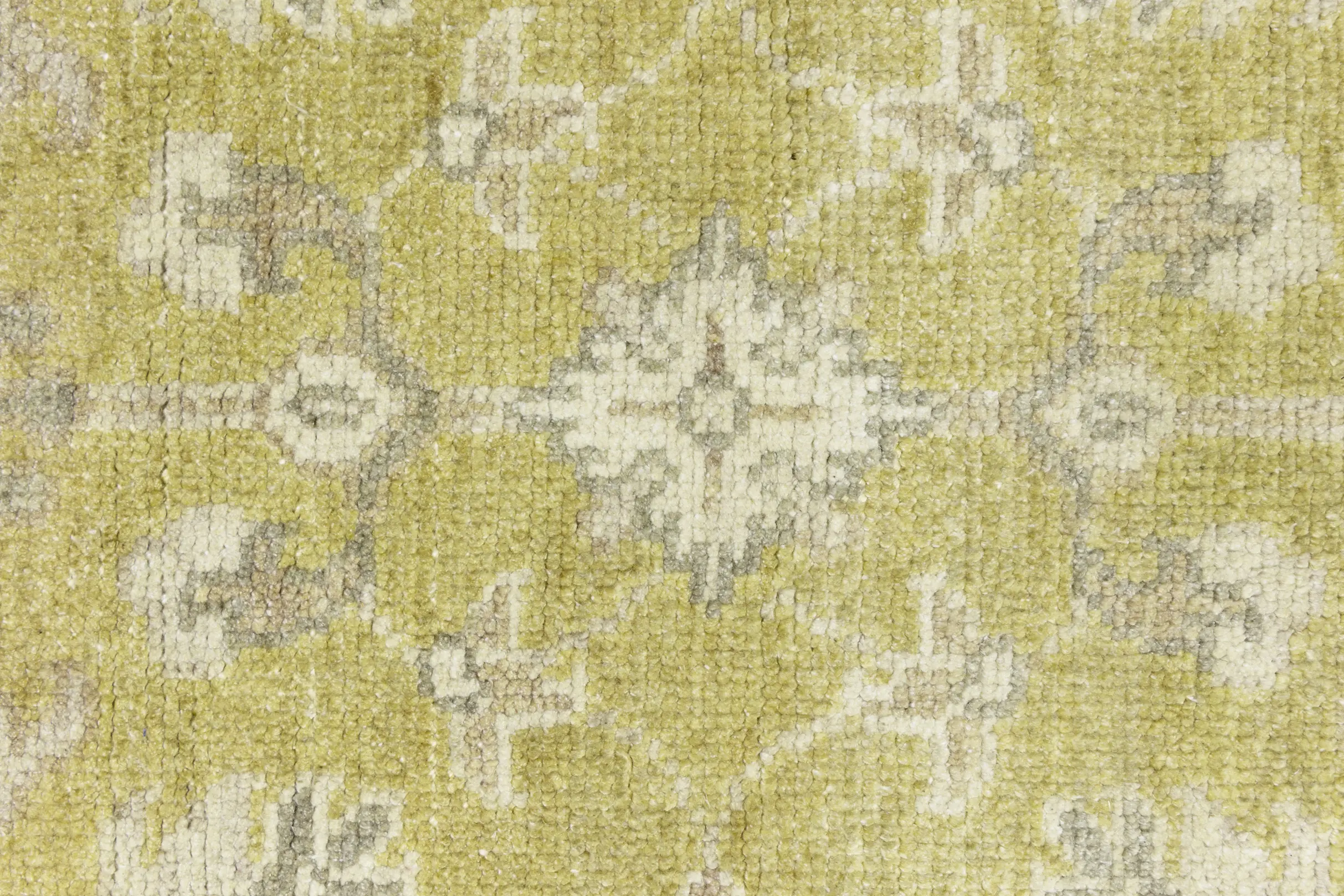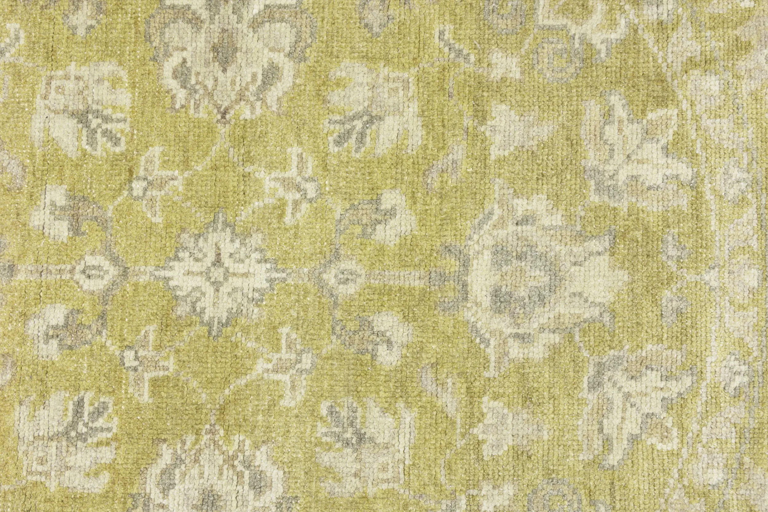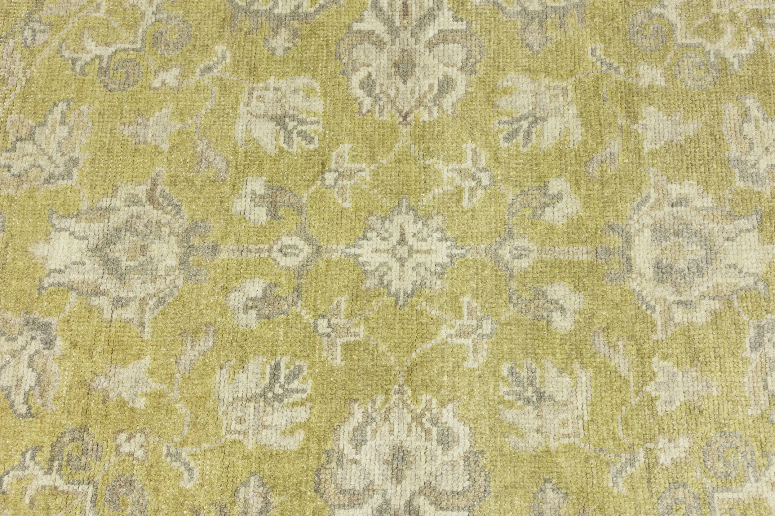 This genuine 6X6 yellow new Oriental rug was made by the hands of gifted weavers inspired by a variety of spectacular artistic designs, to recreate the aged look of the original piece with a richness of color and ornately patterned background field. What set this vintage style Oriental area rug from the others are the material and dye used (wool pile and cotton foundation), knot count, ancient designs, fantastic grades, and its regional historical connection: it has deep roots, from the story of the people who produced it to the meaning of the symbols and colors displayed across its canvas that have been praised for centuries. This Indian home décor carpet will be completely cozy and inviting that never will go out of style! Also, this Oriental rug would be among your most valuable treasures, it is a great investment that accrues value over time, and it will last for generations because was woven with high-quality, all-natural wool. Environmentally friendly, opulent yet affordable; this rug will give you a thorough amount of character to help define your living space with elegance and warmth that will capture the eyes and attention of your audience (homeowners, designers, decorators, family and friends).