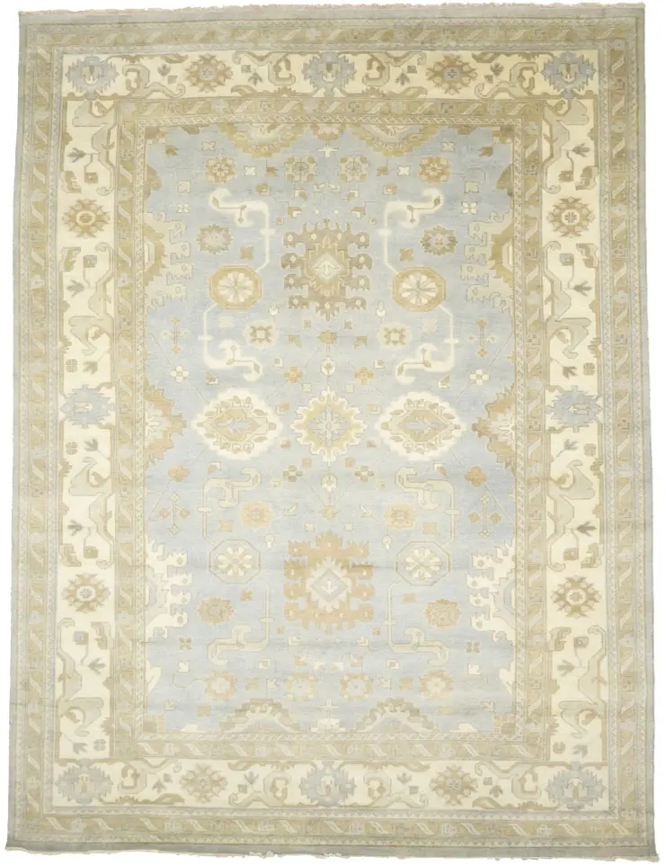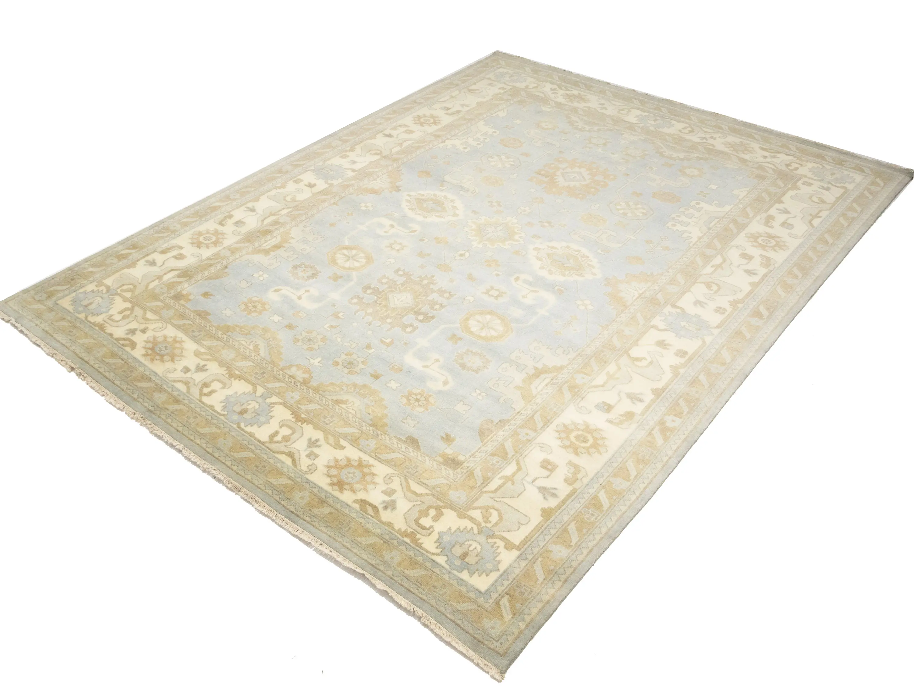 Muted Gray Floral 10X14 Oushak Chobi Oriental Rug
