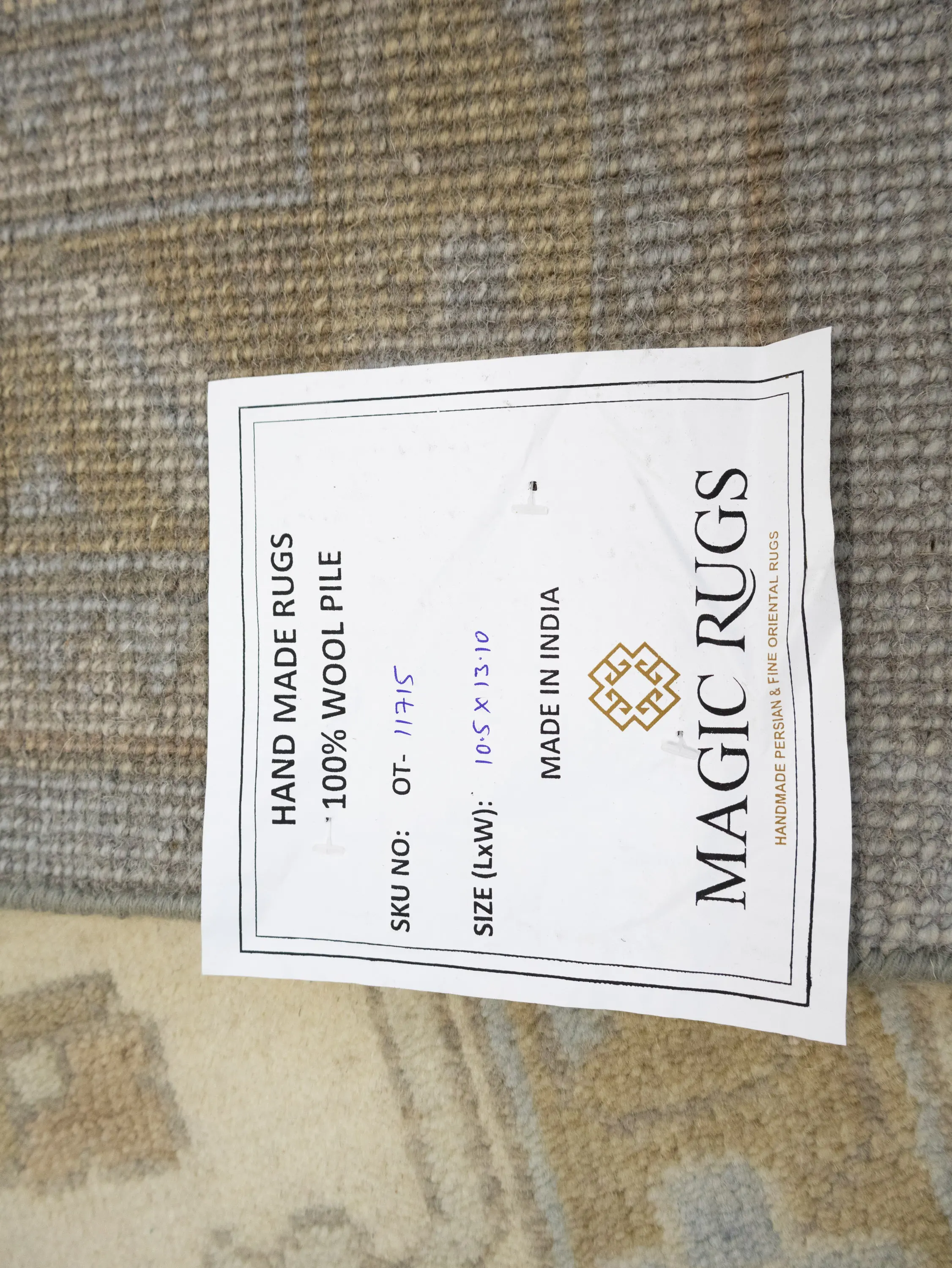 This authentic 10X14 Muted Gray new Oriental rug was crafted by the hands of skilled weavers enthused by a variety of lovely artistic designs, to recreate the aged look of the unique piece with a richness of color and beautifully elaborated background field. What set this vintage style Oriental area rug from the others are the material and dye used (wool pile and cotton foundation), knot count, ancient designs, fantastic grades, and its regional historical connection: it has deep roots, from the story of the people who produced it to the meaning of the symbols and colors displayed across its canvas that have been praised for centuries. This Indian home décor carpet will be completely cozy and inviting that never will go out of style! Also, this Oriental rug would be among your most valuable treasures, it is a great investment that increase in value over time, and it will last for generations because was woven with high-quality, all-natural wool. Environmentally friendly, opulent yet affordable; this rug will give you a thorough amount of character to help define your living space with sophistication and warmth that will capture the eyes and attention of your audience (homeowners, designers, decorators, family and friends). OT-11715
