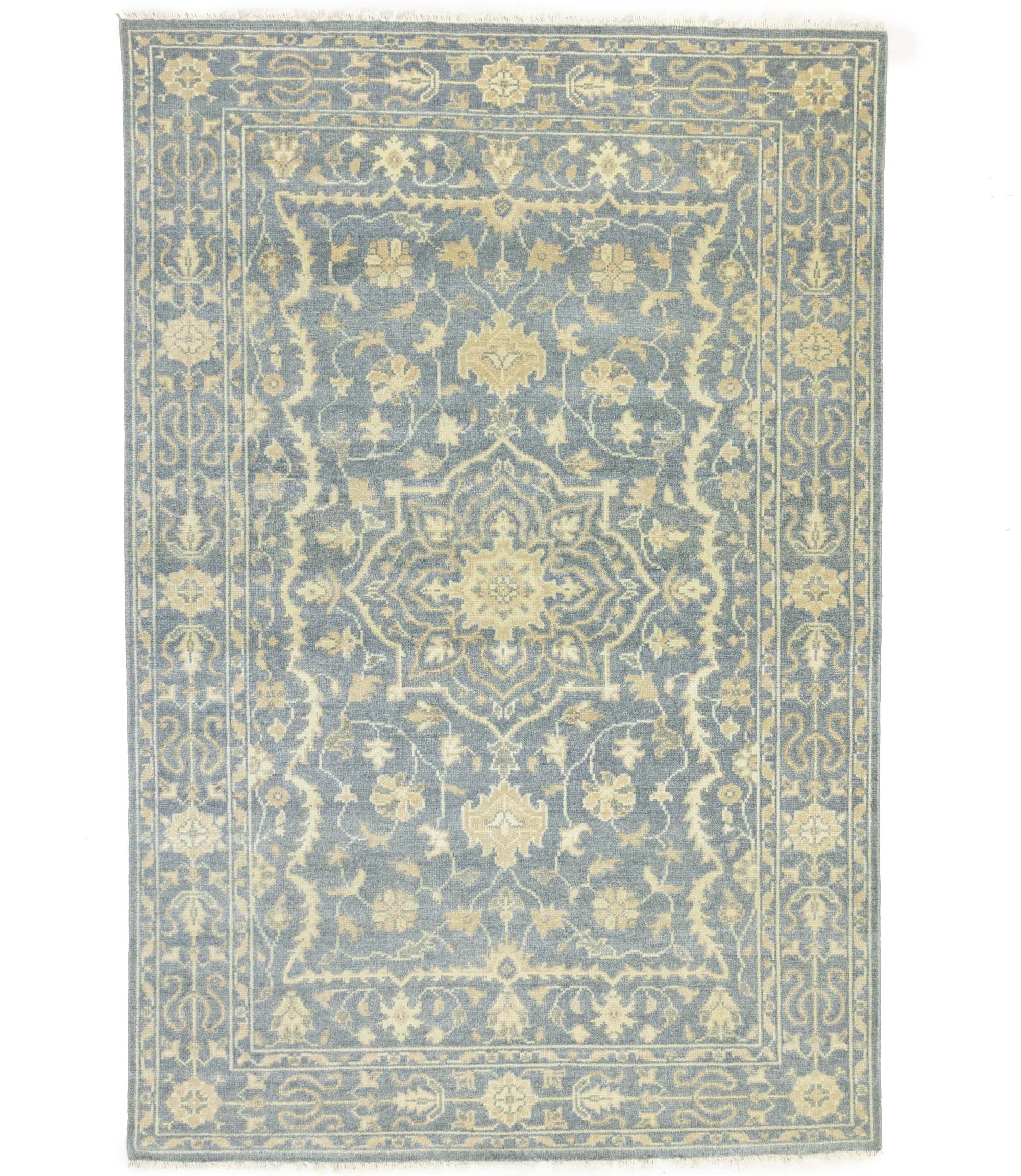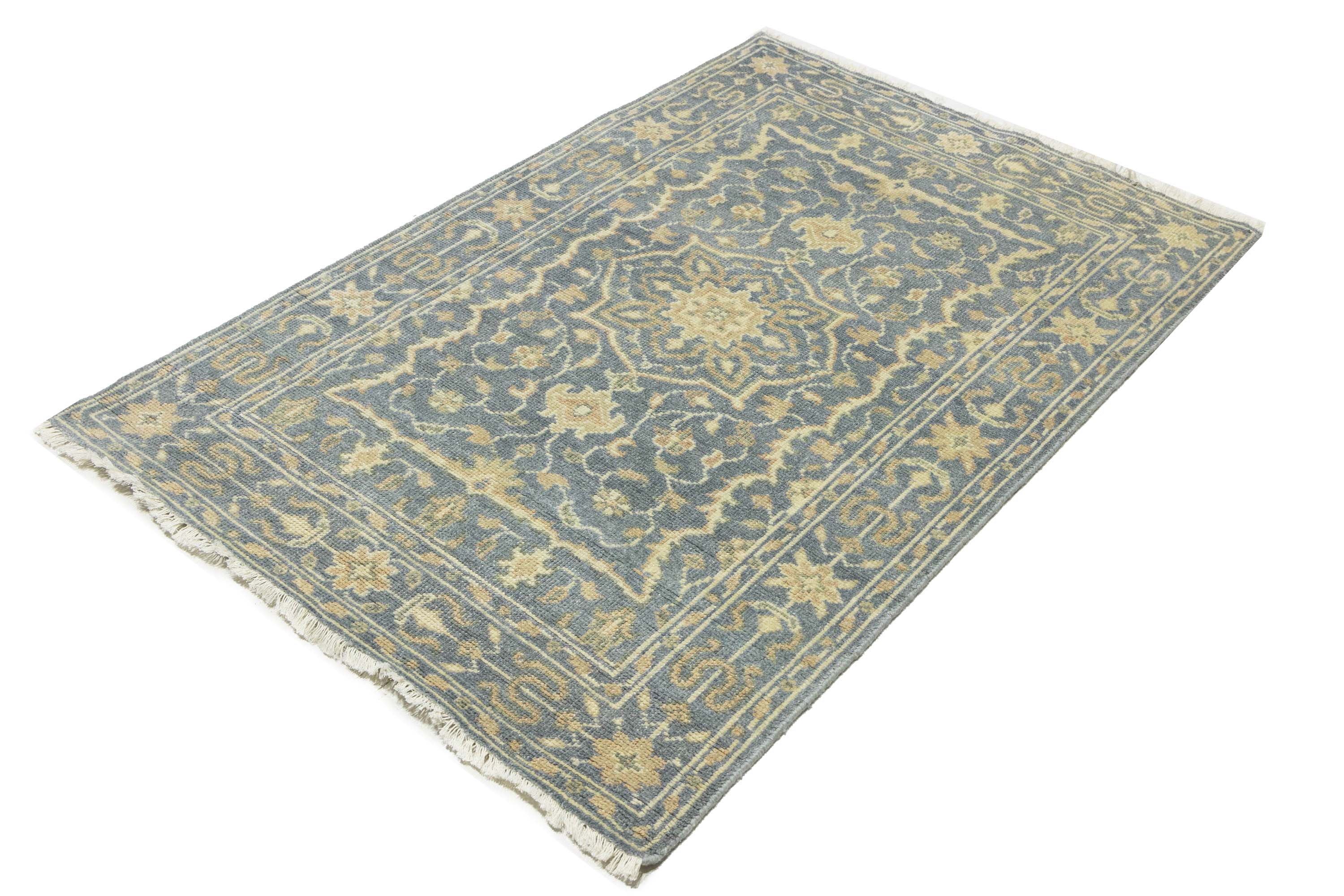 This genuine 4x6 Gray new Oriental rug was made by the hands of gifted weavers inspired by a variety of spectacular artistic designs, to recreate the aged look of the original piece with a richness of color and ornately patterned background field. What set this vintage style Oriental area rug from the others are the material and dye used (wool pile and cotton foundation), knot count, ancient designs, fantastic grades, and its regional historical connection: it has deep roots, from the story of the people who produced it to the meaning of the symbols and colors displayed across its canvas that have been praised for centuries. This Indian home décor carpet will be completely cozy and inviting that never will go out of style! Also, this Oriental rug would be among your most valuable treasures, it is a great investment that accrues value over time, and it will last for generations because was woven with high-quality, all-natural wool. Environmentally friendly, opulent yet affordable; this rug will give you a thorough amount of character to help define your living space with elegance and warmth that will capture the eyes and attention of your audience (homeowners, designers, decorators, family and friends). OT-12018