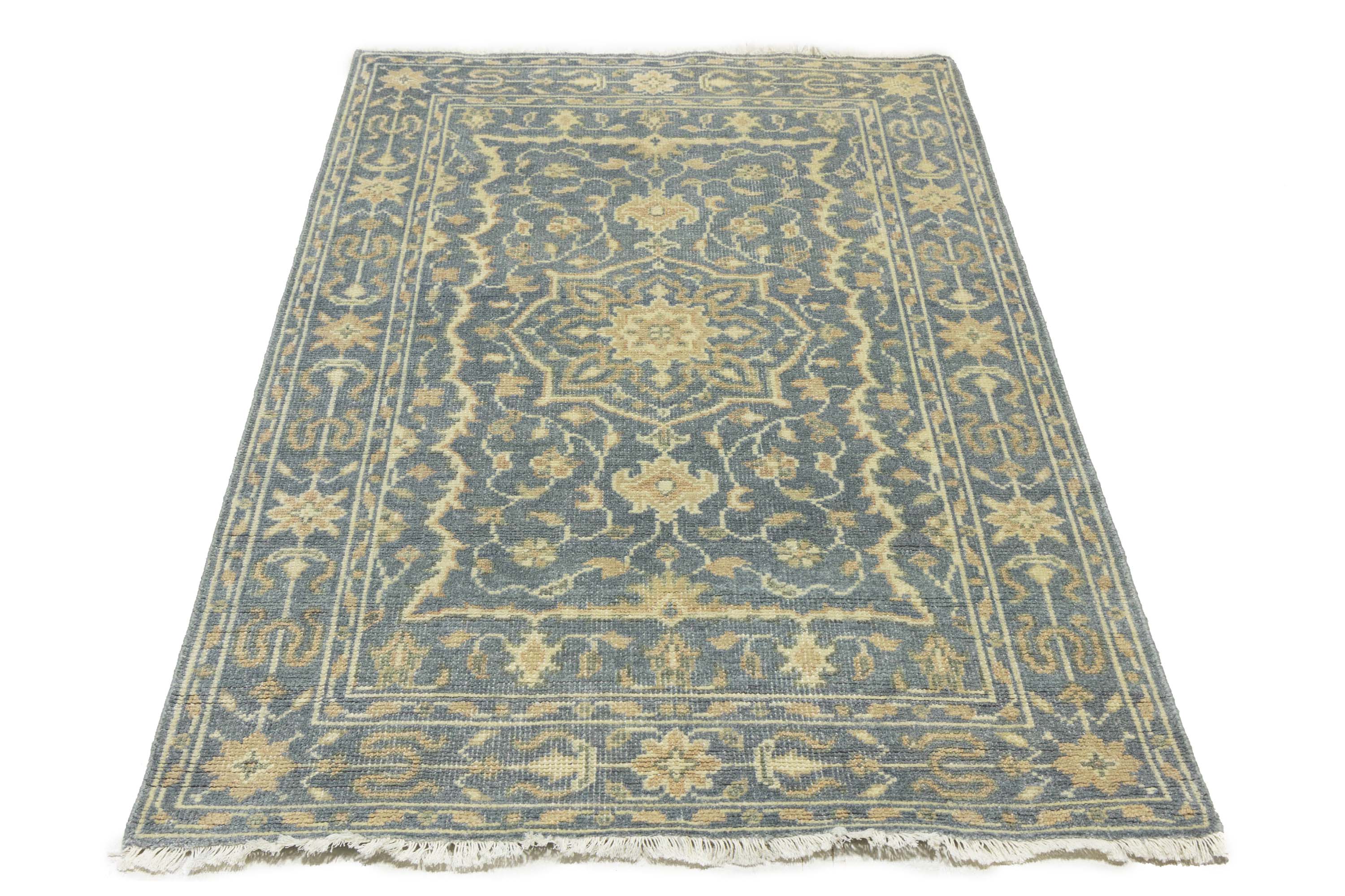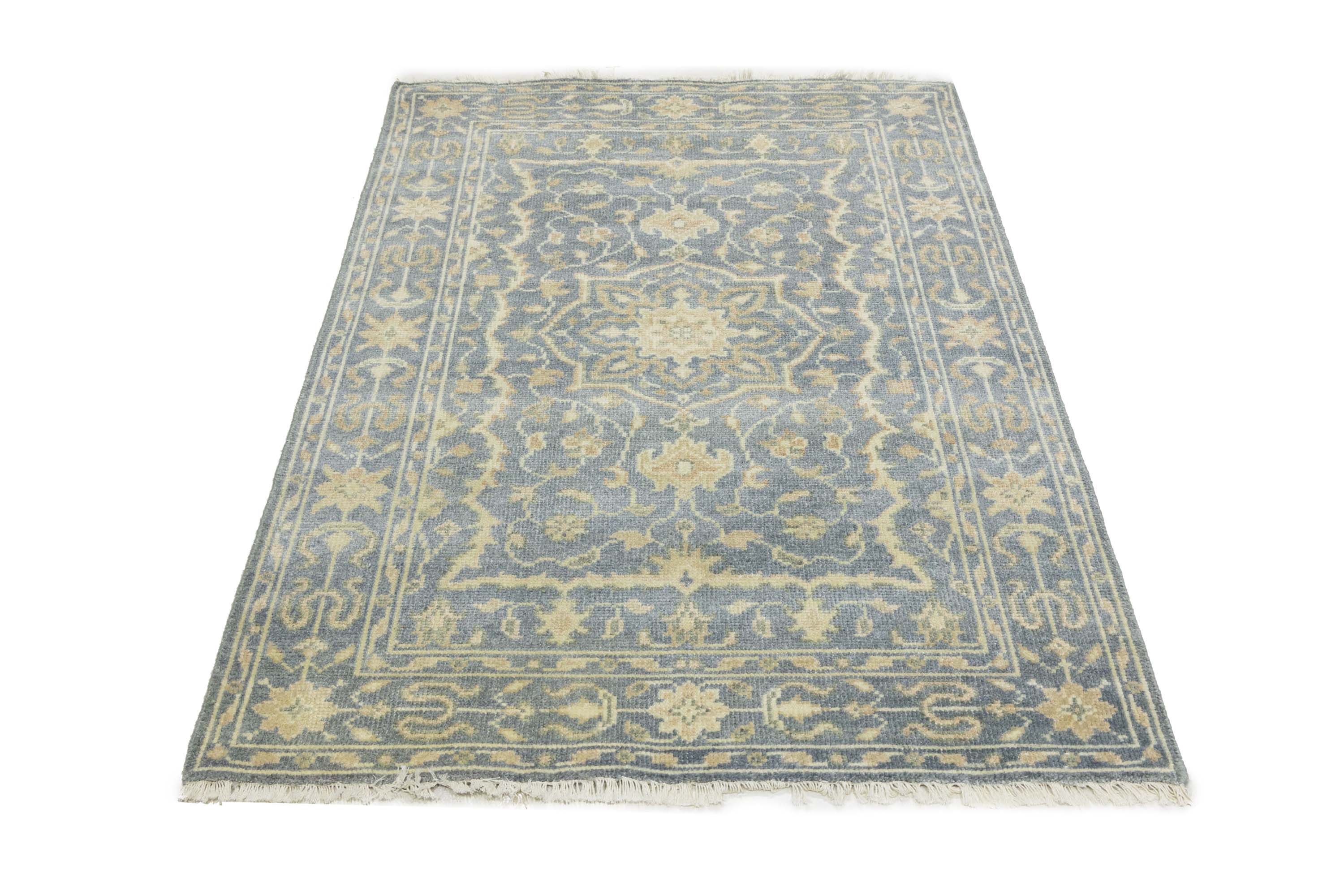 Muted Gray Floral 4x6Transitional Oriental Area Rug