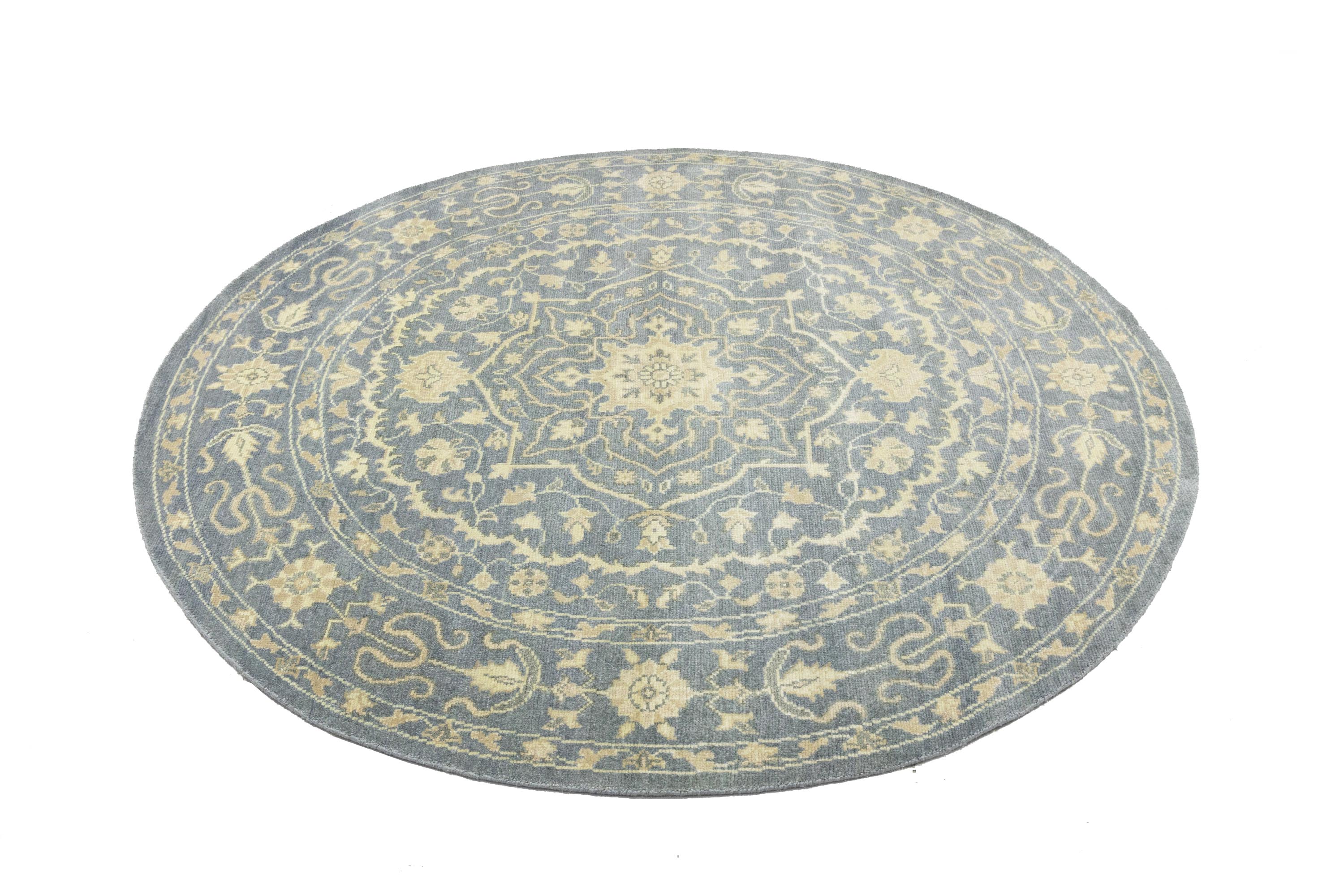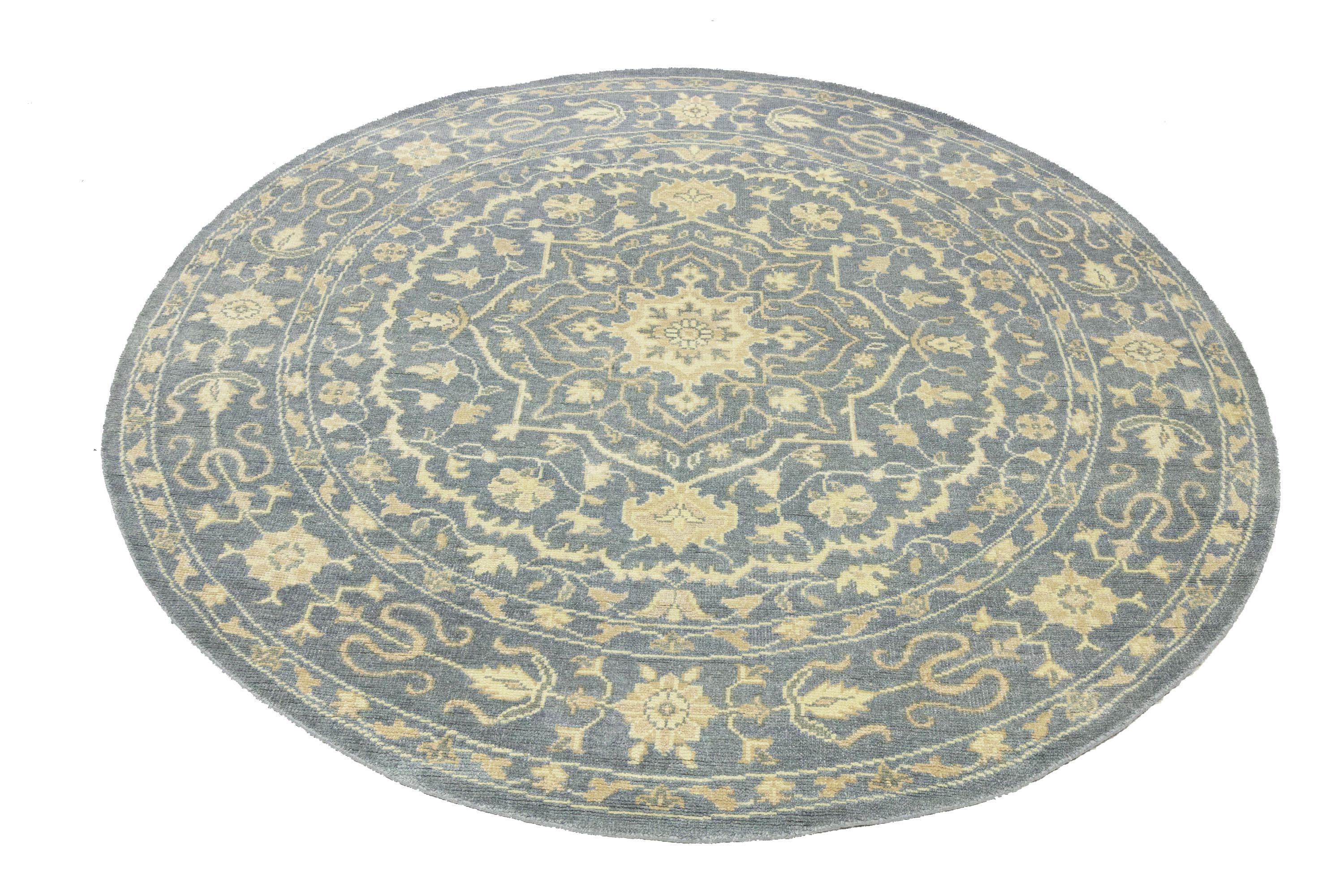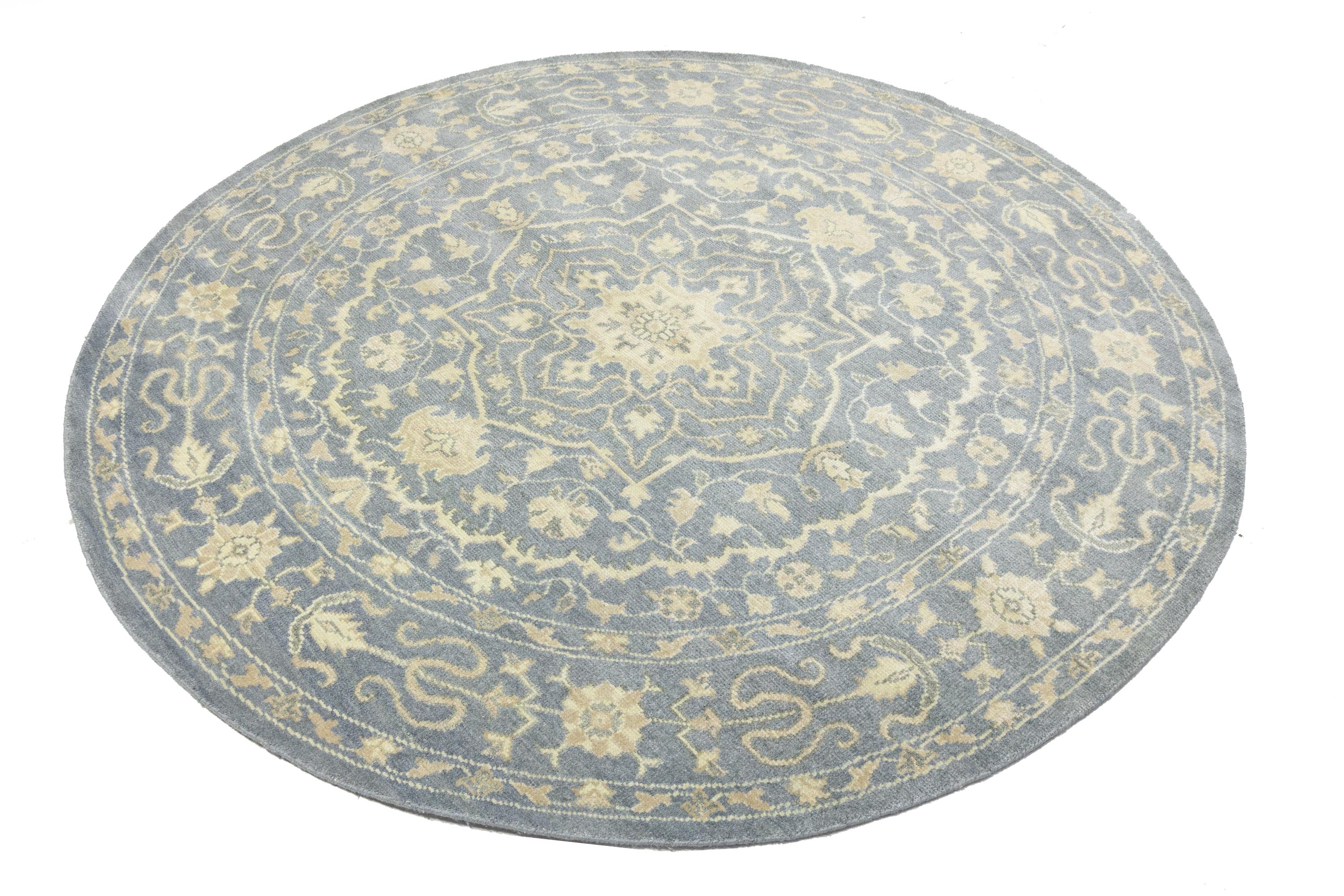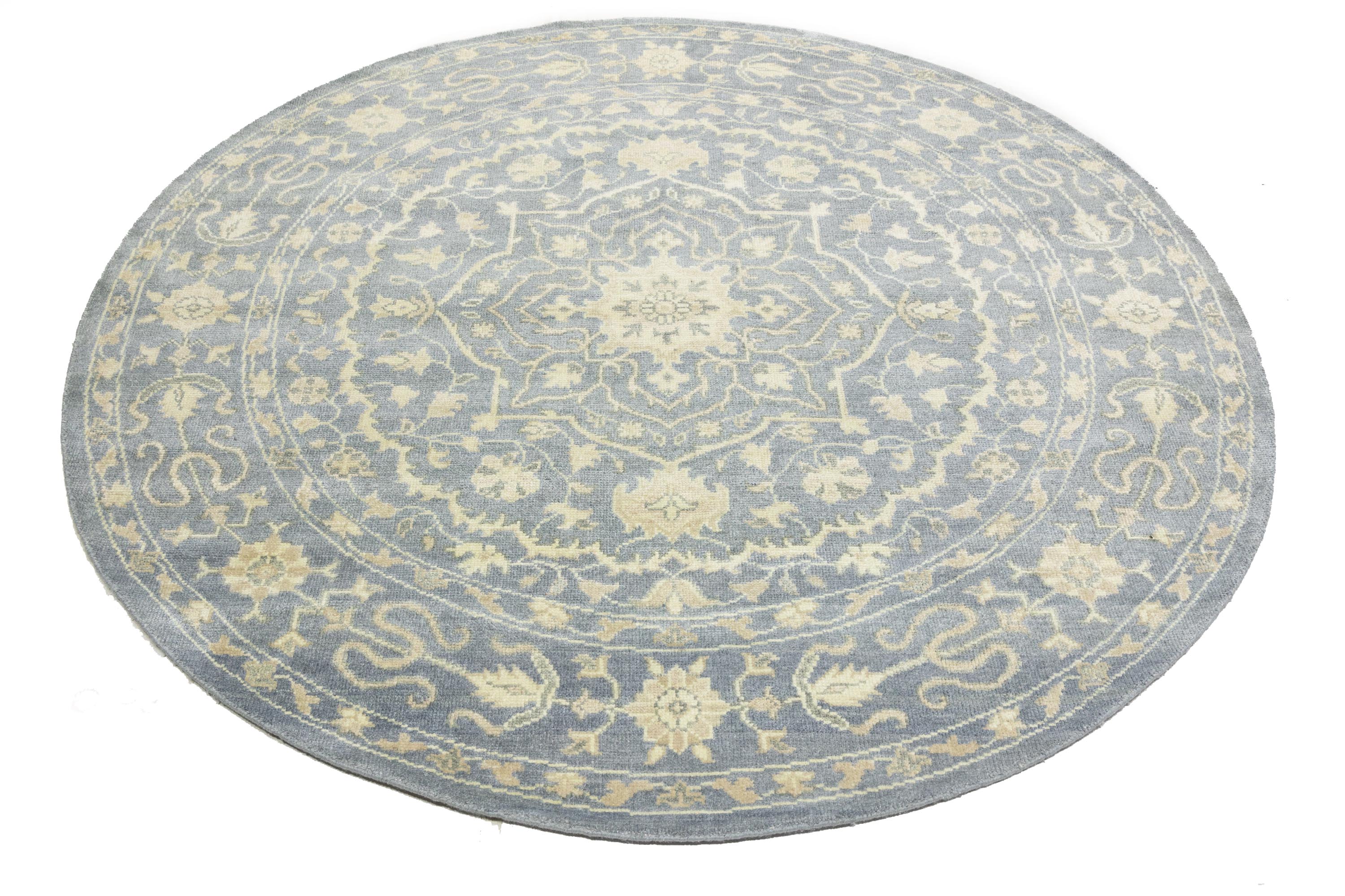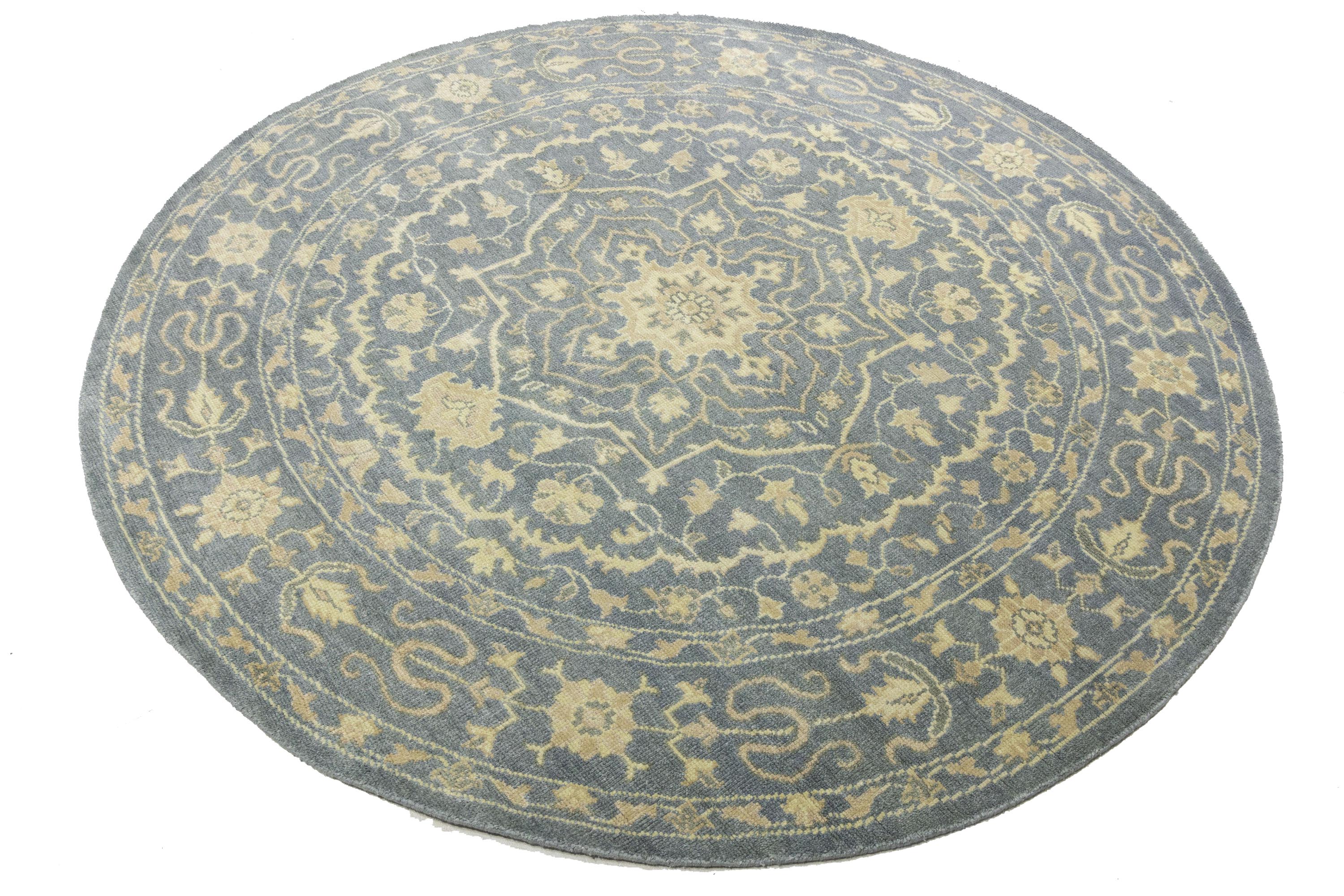 Muted Gray Floral 6X6 Transitional Oriental Round Rug