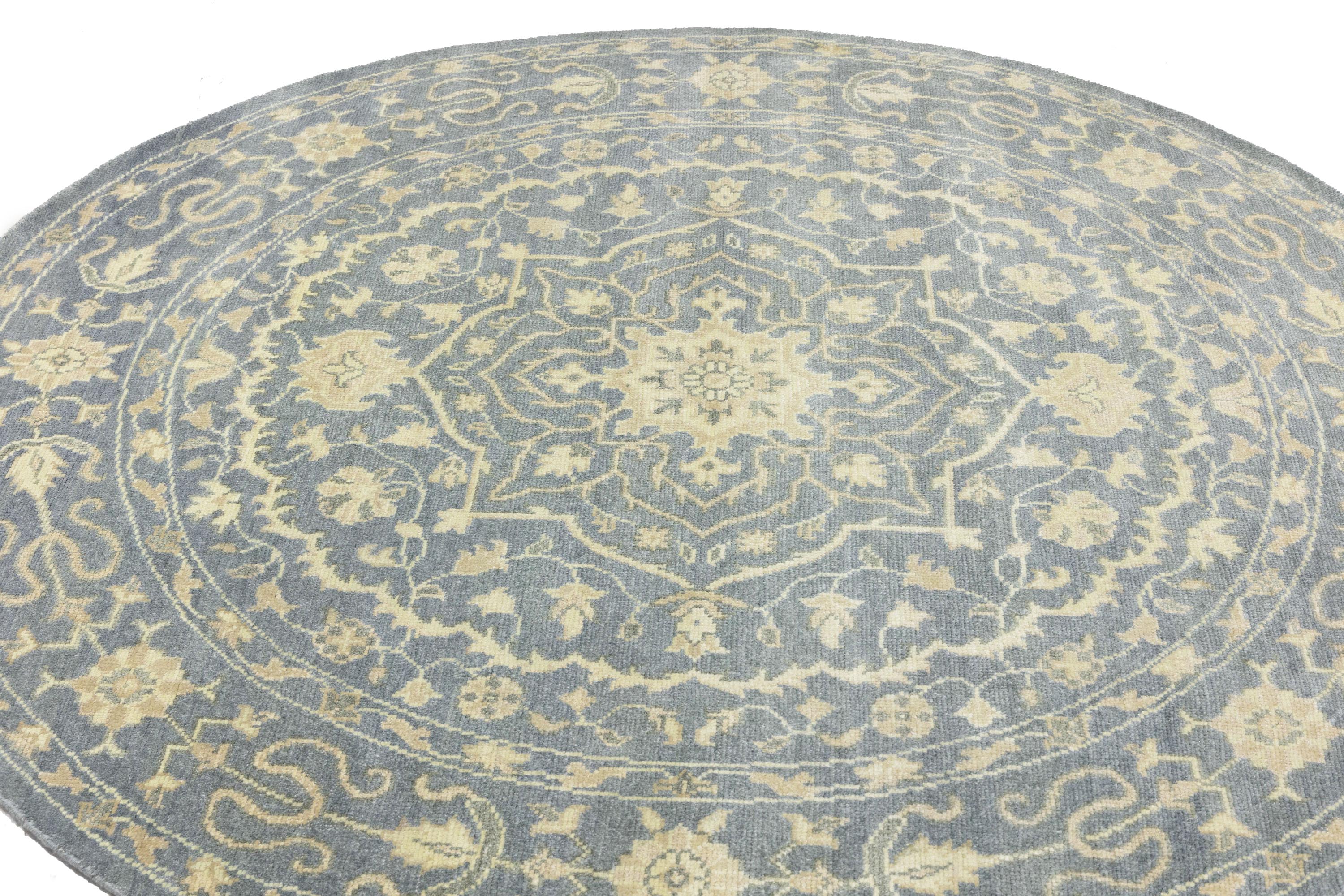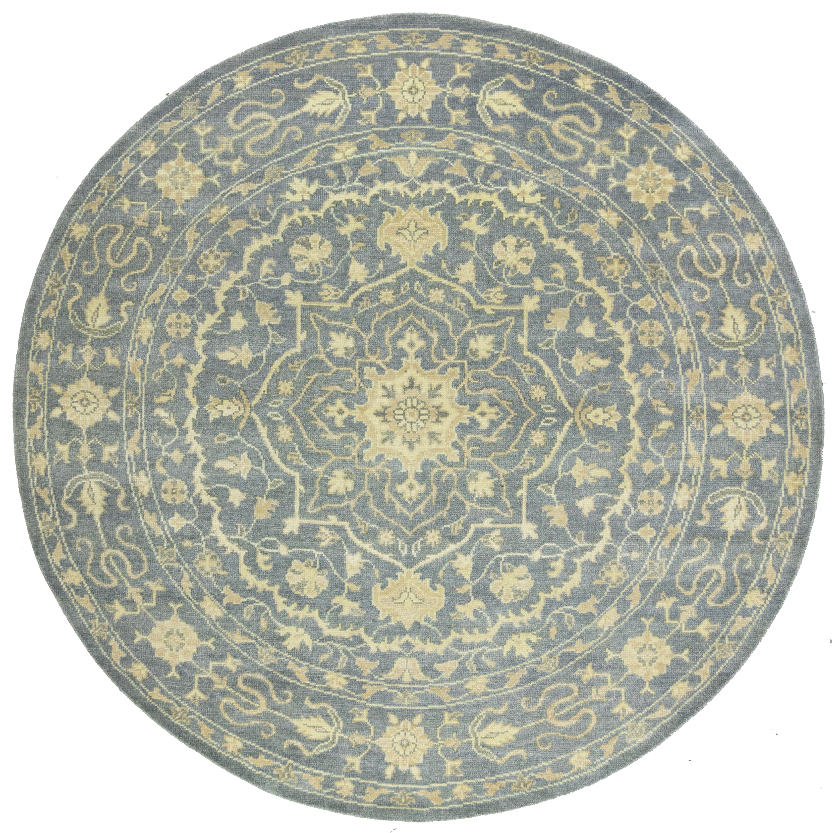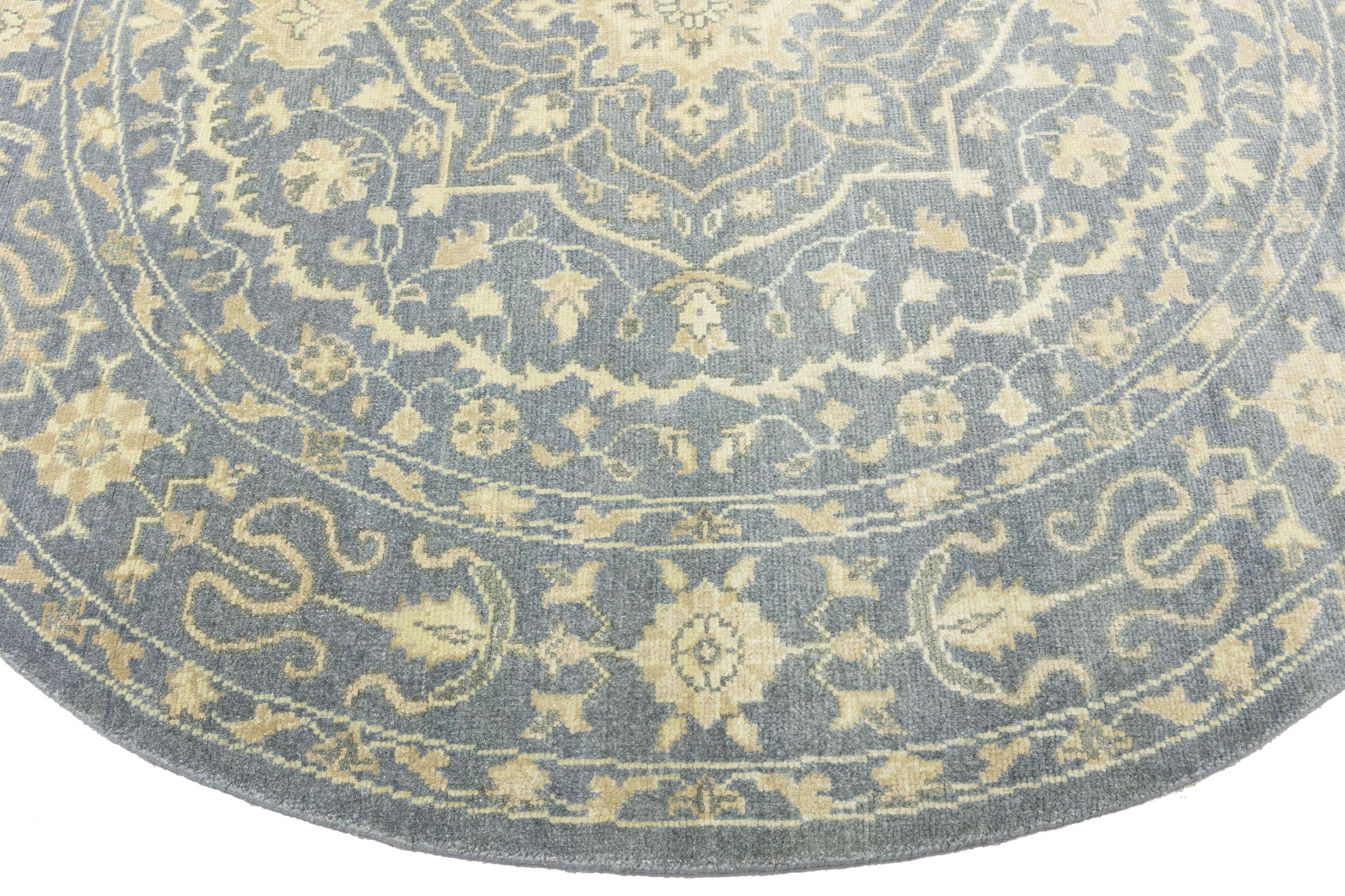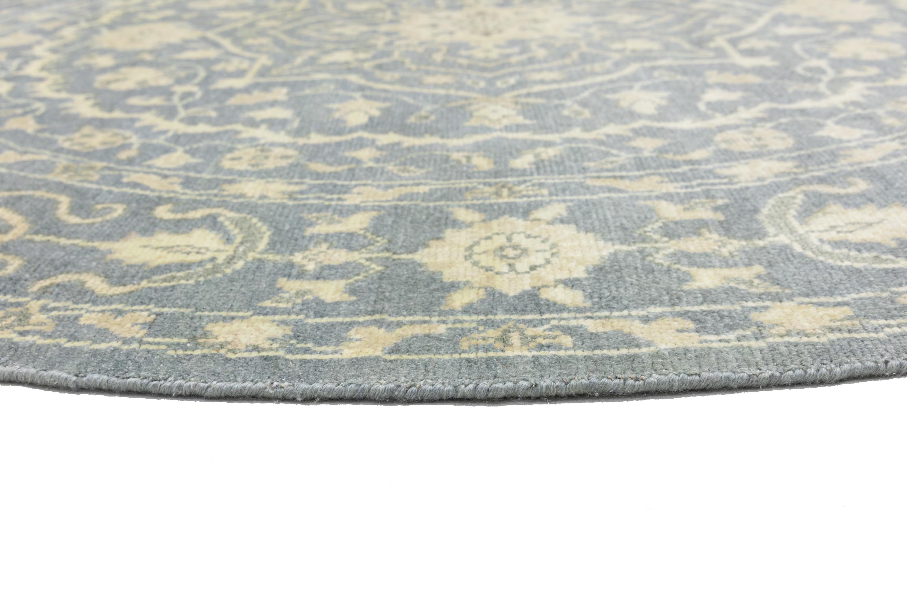Muted Gray Floral 6X6 Transitional Oriental Round Rug