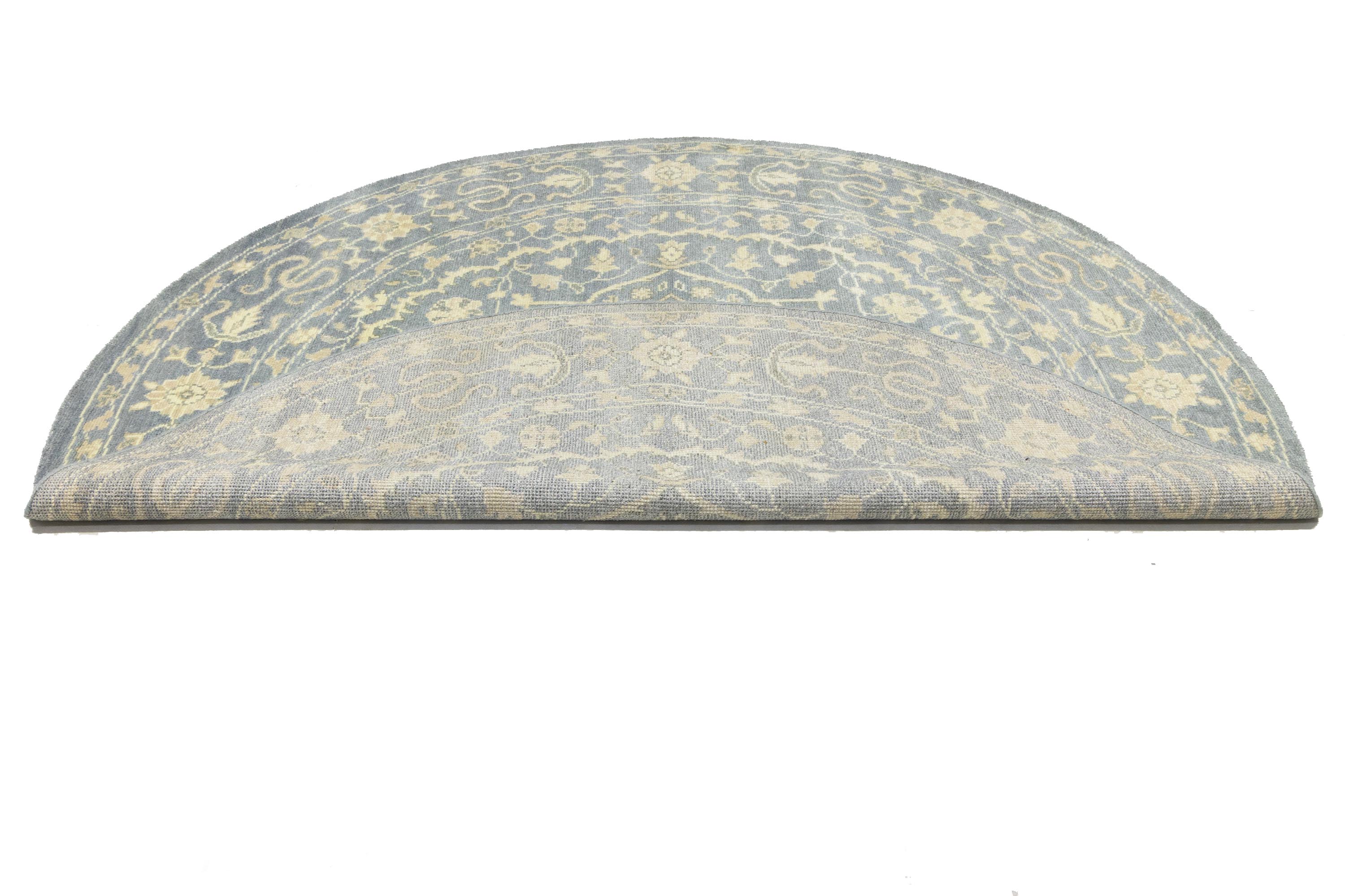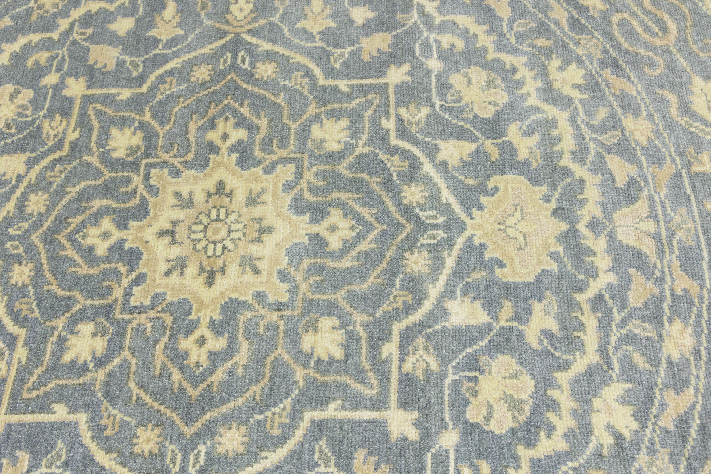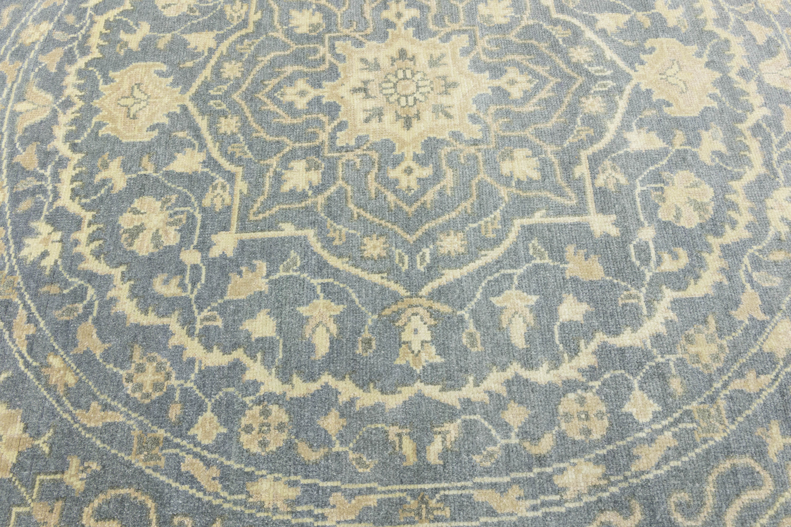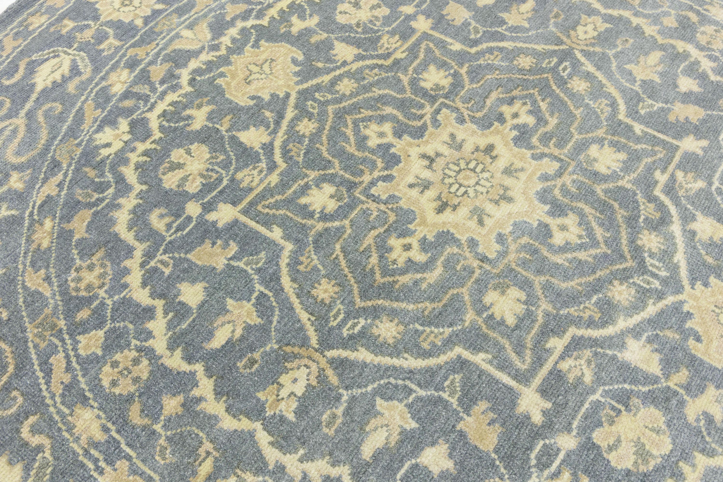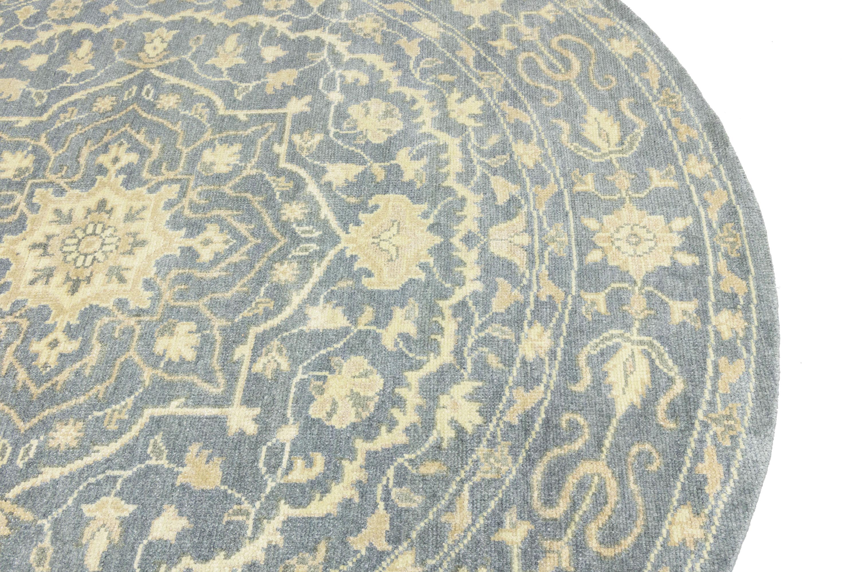 Muted Gray Floral 6X6 Transitional Oriental Round Rug