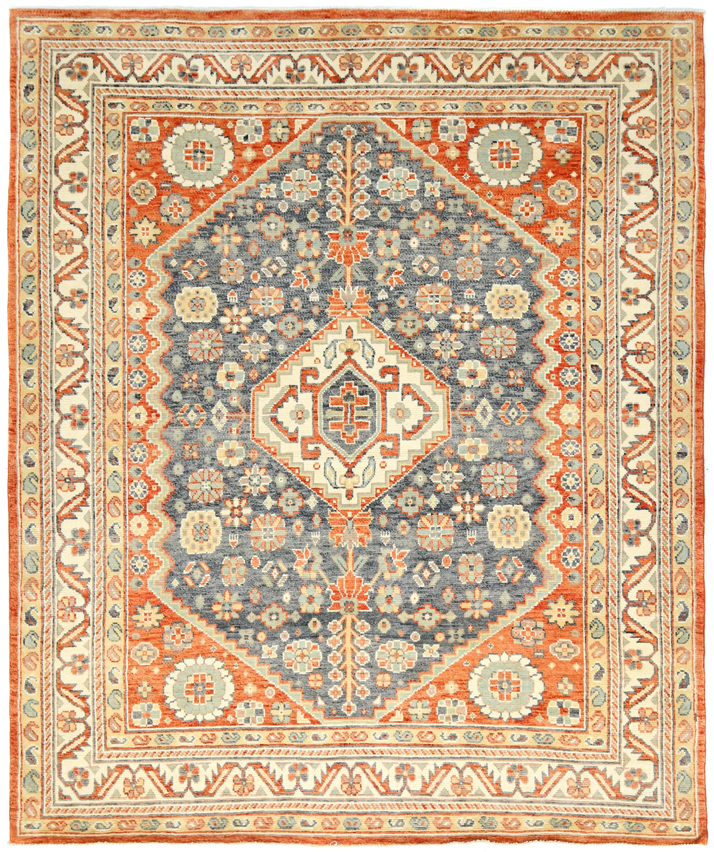 Hand Knotted 8X10 gray oriental rug made with vegetable dyes (fine wool pile and cotton foundation), superior knot count, and appealing ancient designs. This Oriental rug never will go out of style and would be among your most valuable treasures.