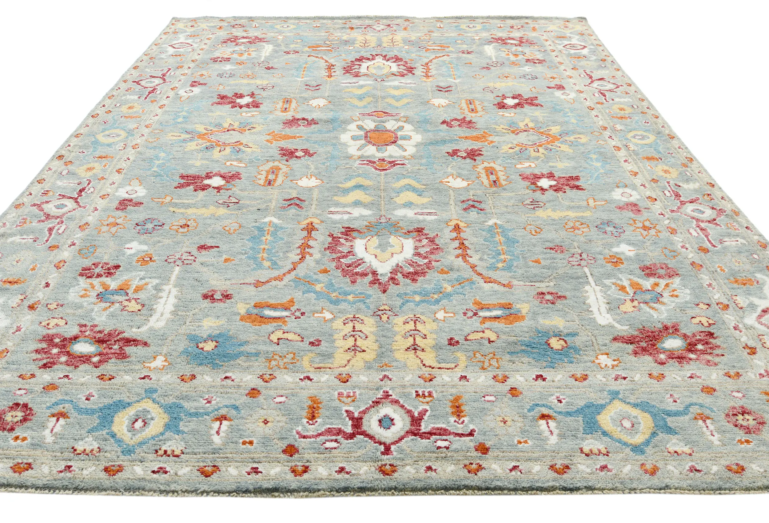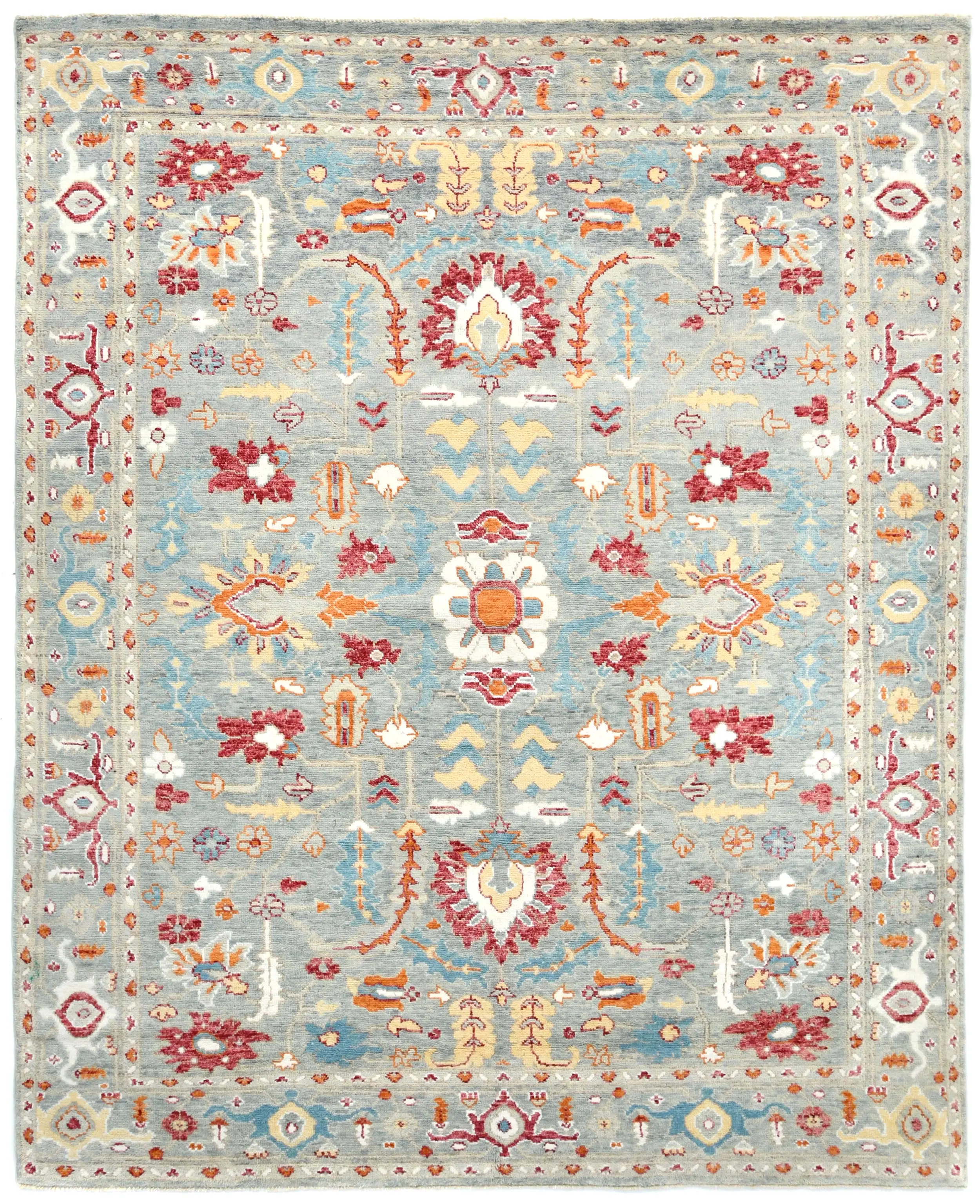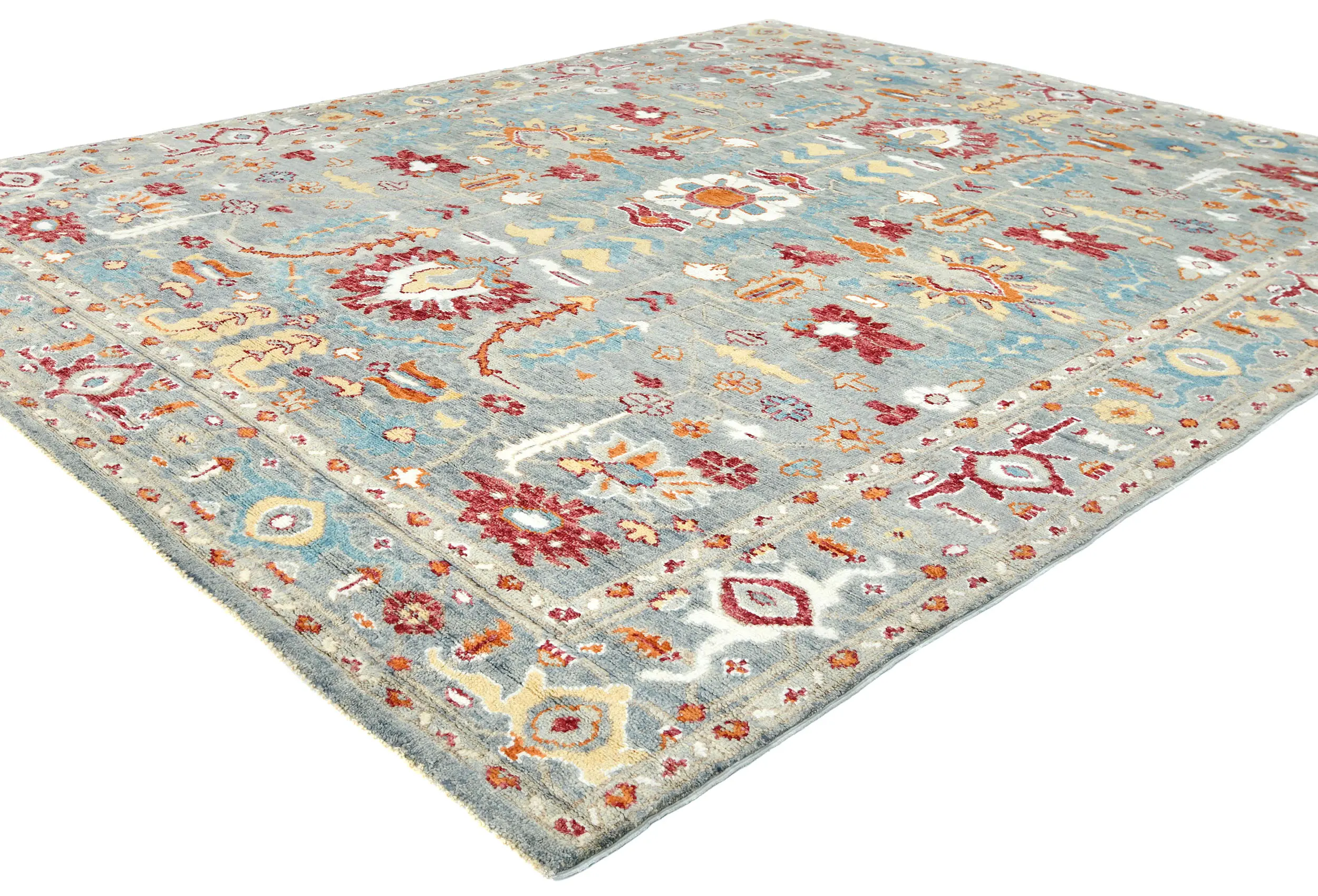 Muted Gray Floral 8X10 Oushak Oriental Rug