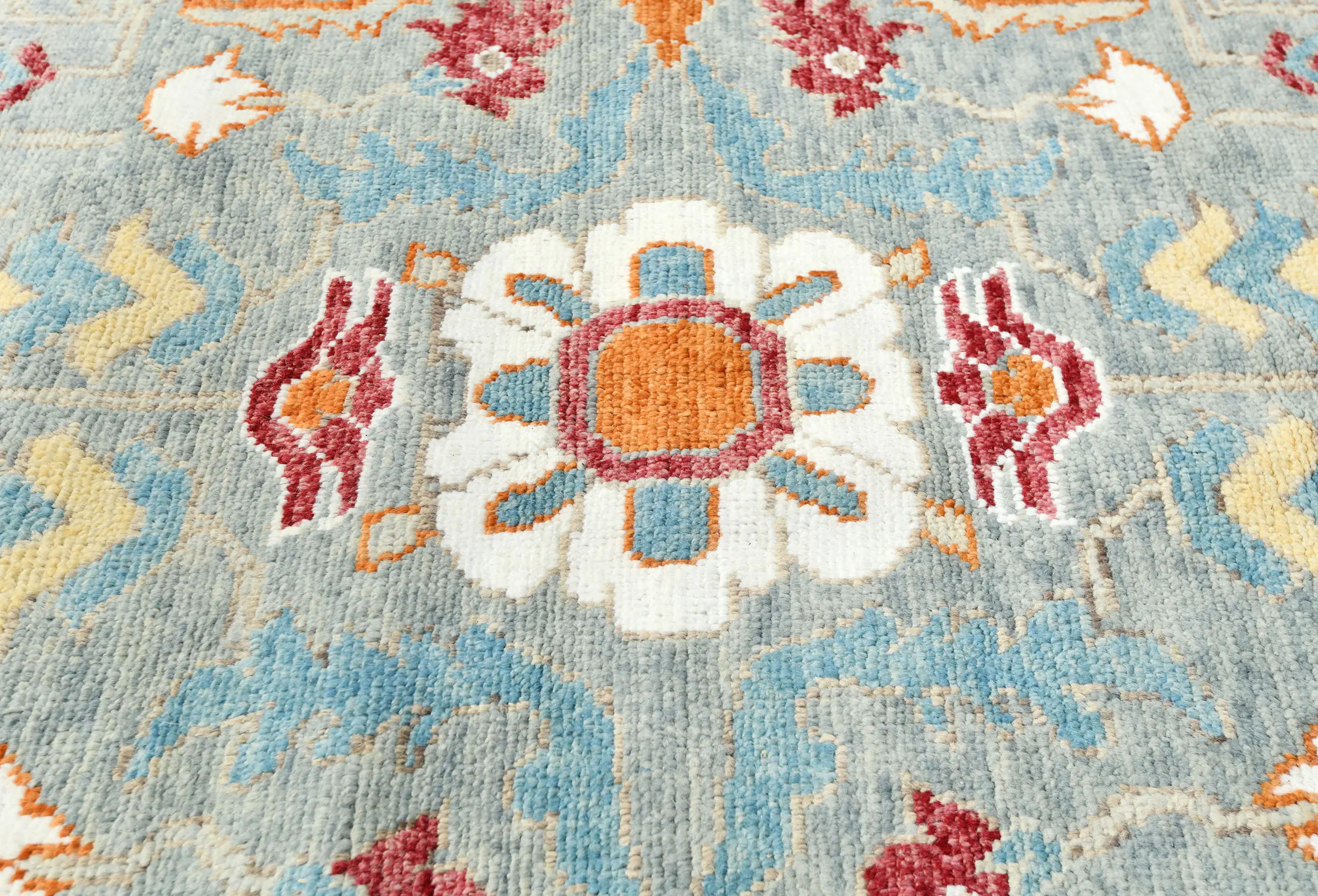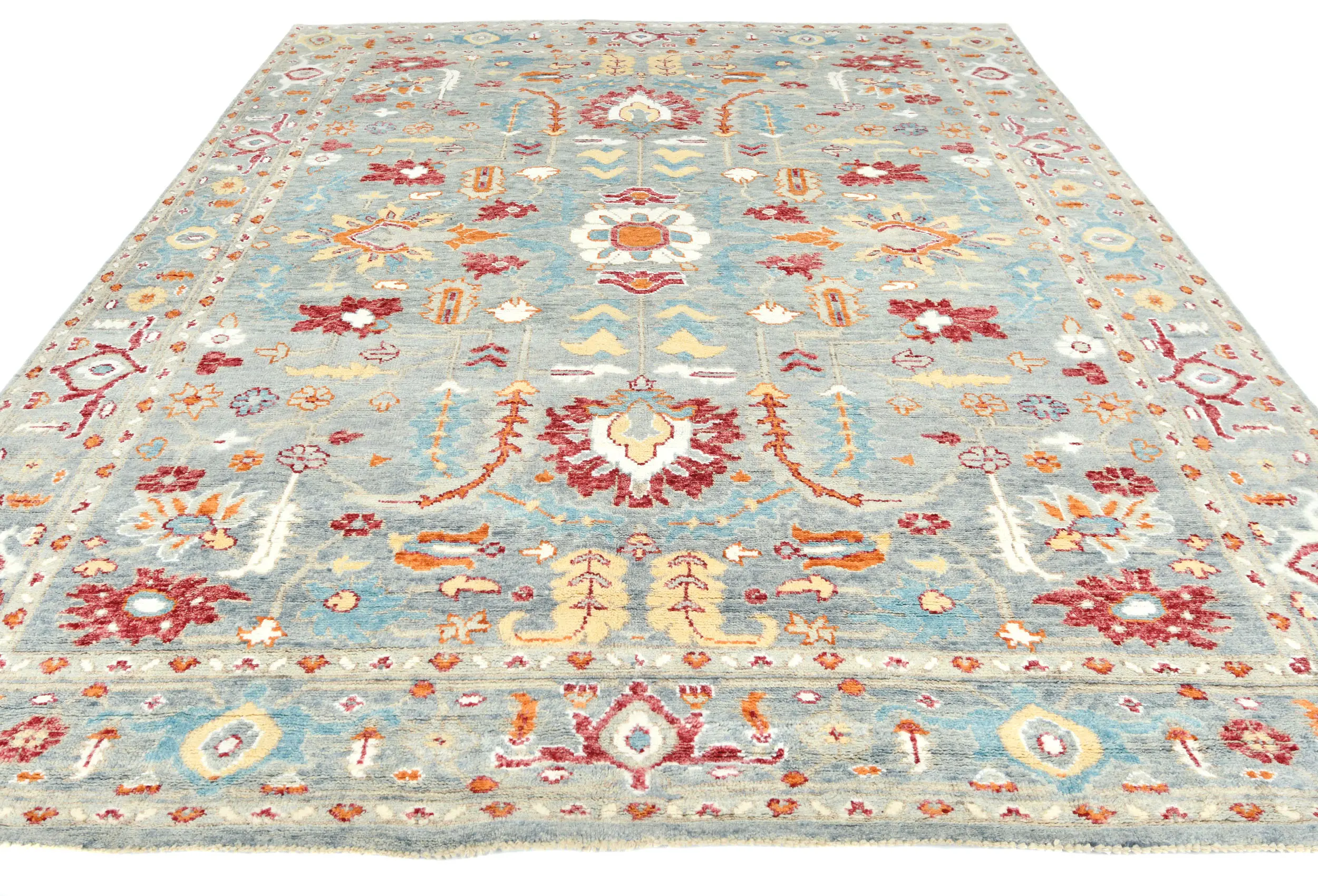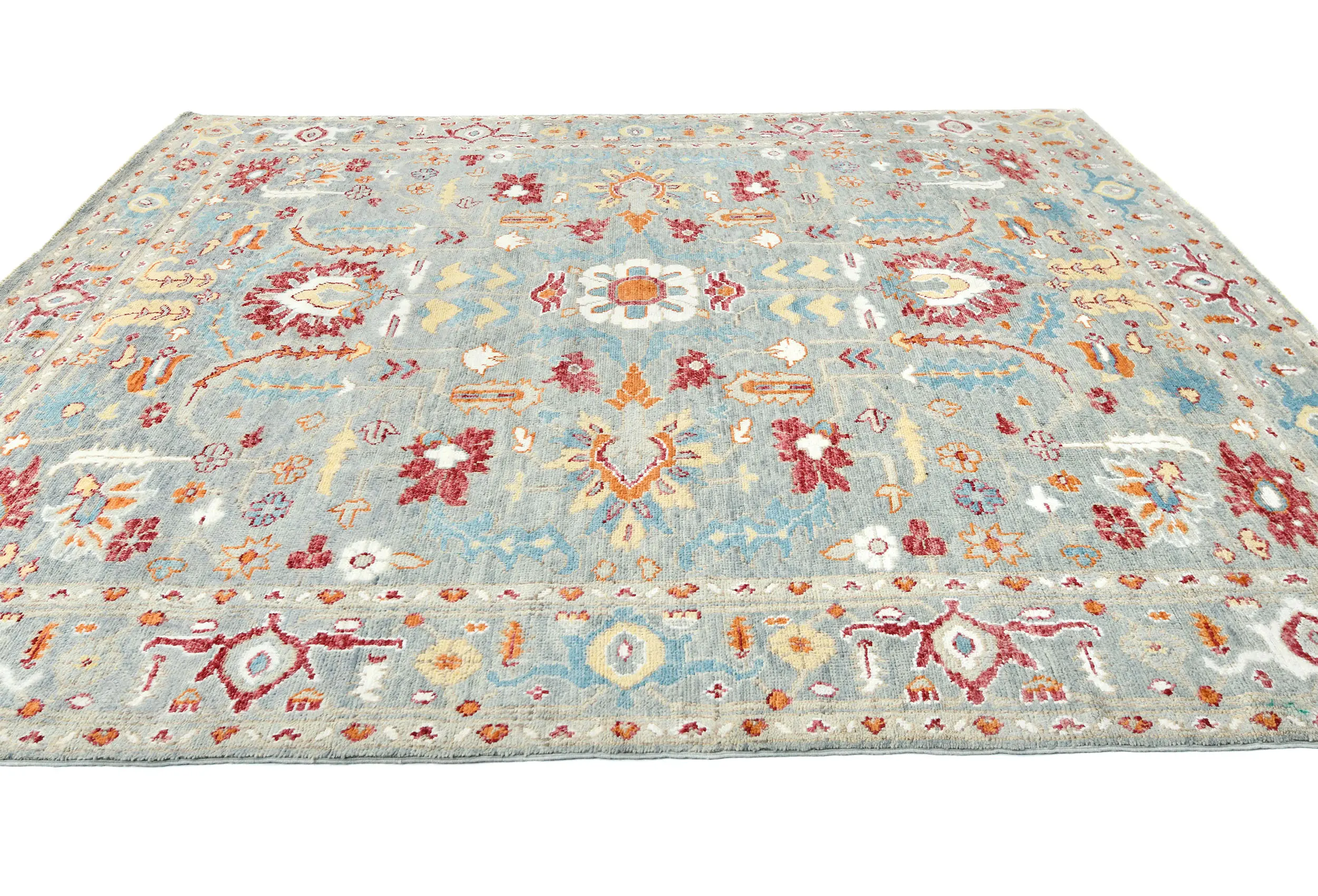 Muted Gray Floral 8X10 Oushak Oriental Rug