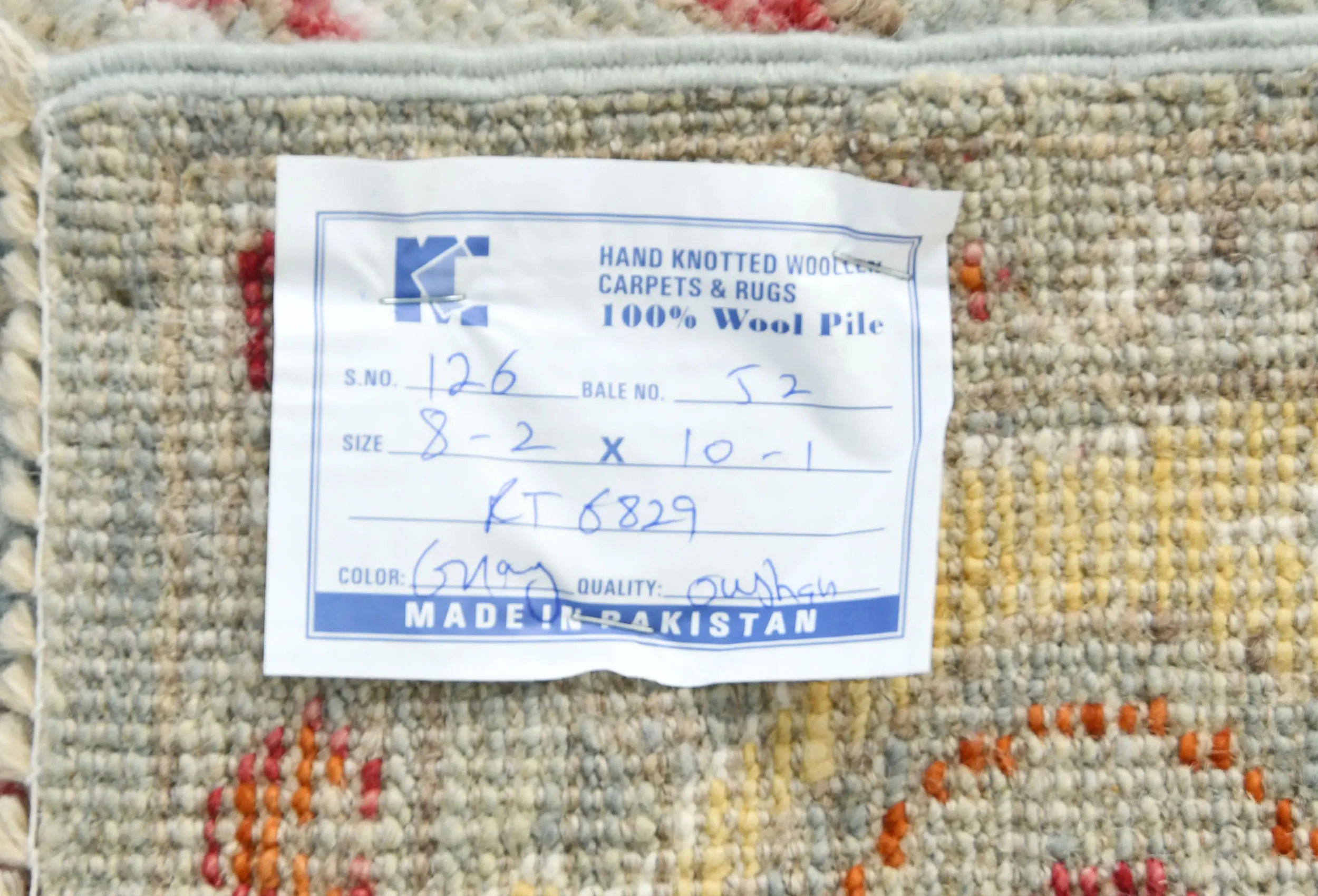 Handmade 8X10 Gray Oriental rug made with natural dyes (fine wool pile and cotton foundation), superior knot count, and alluring ancient designs. This Oriental rug never will go out of style and would be among your most valuable treasures.