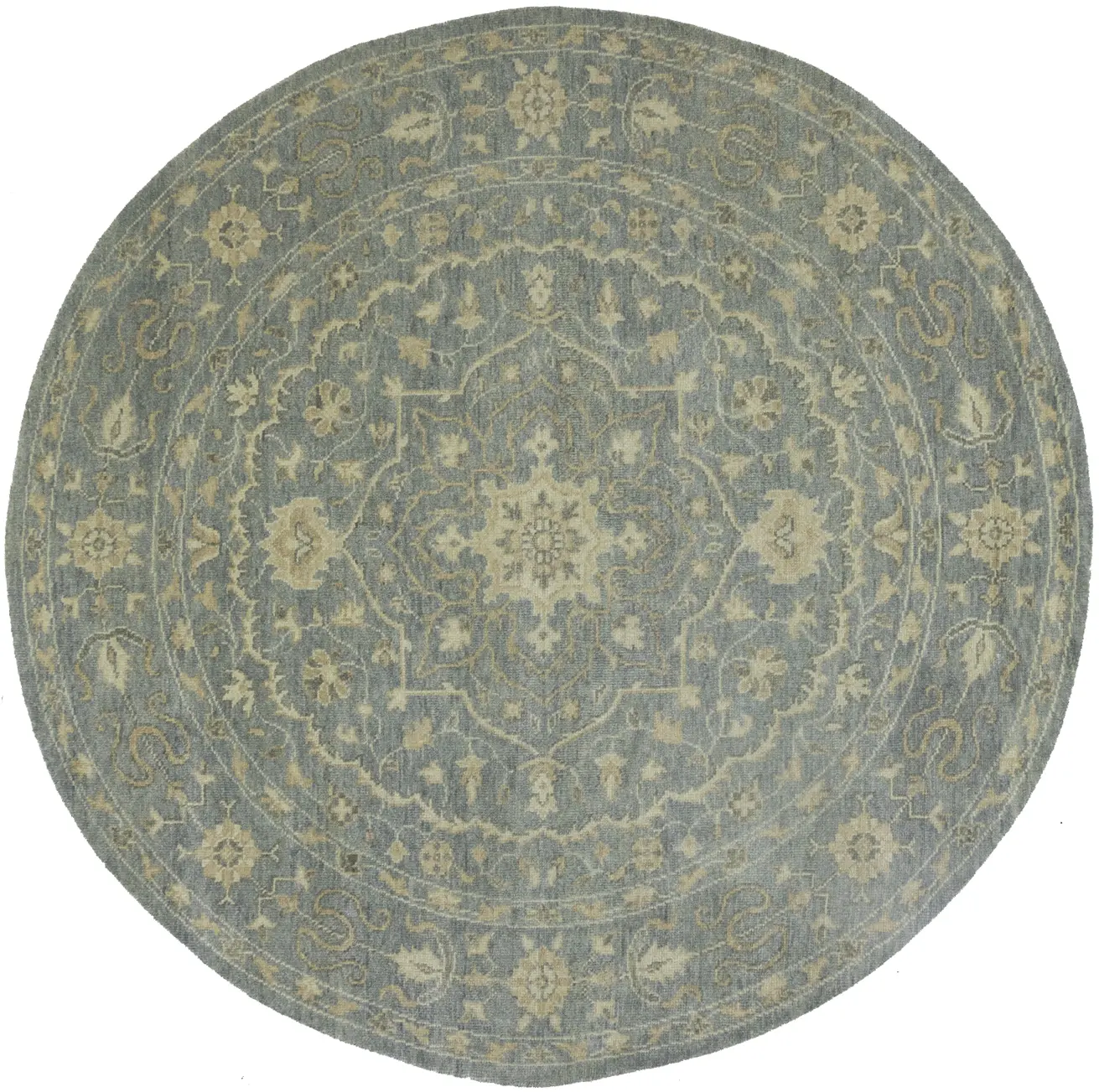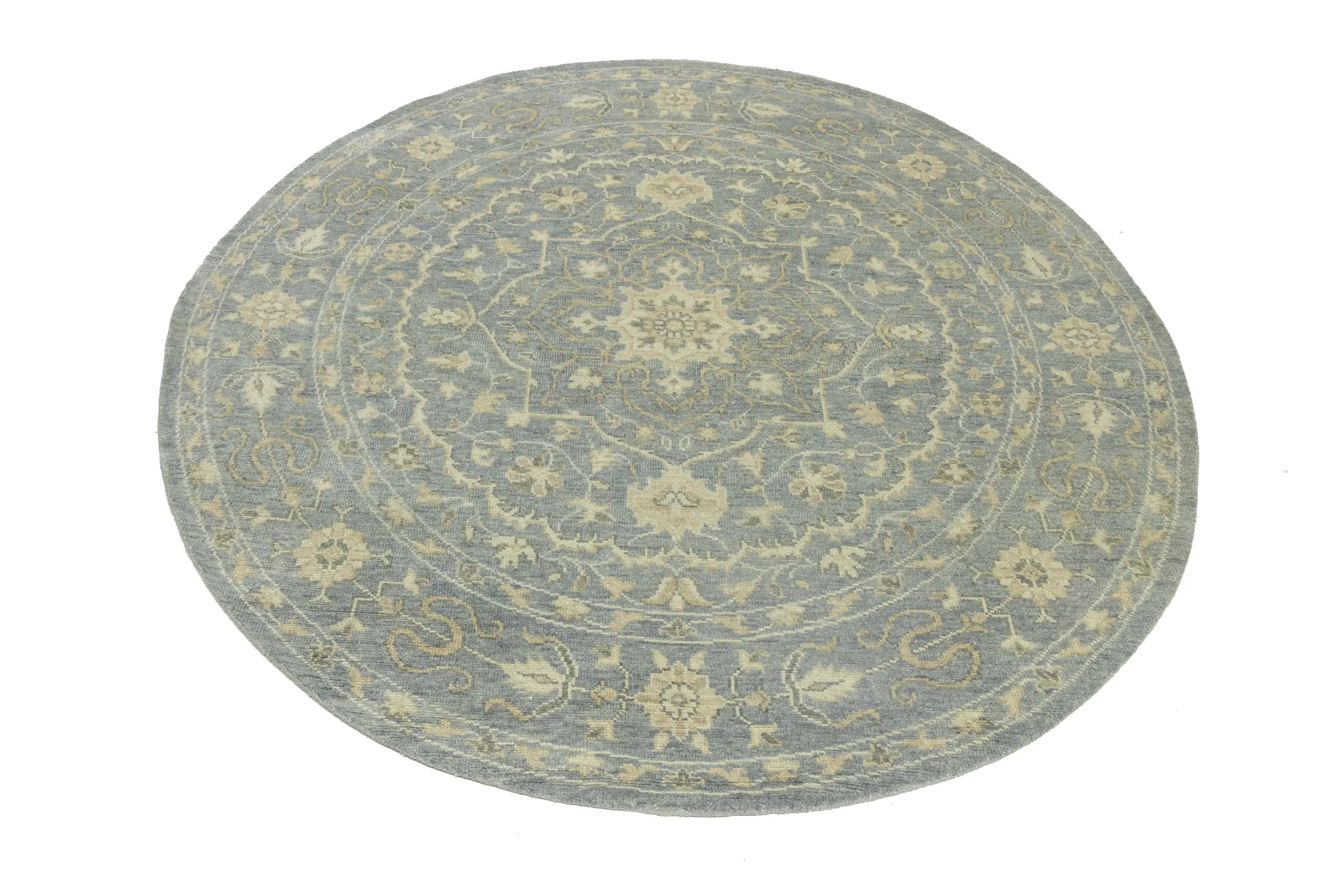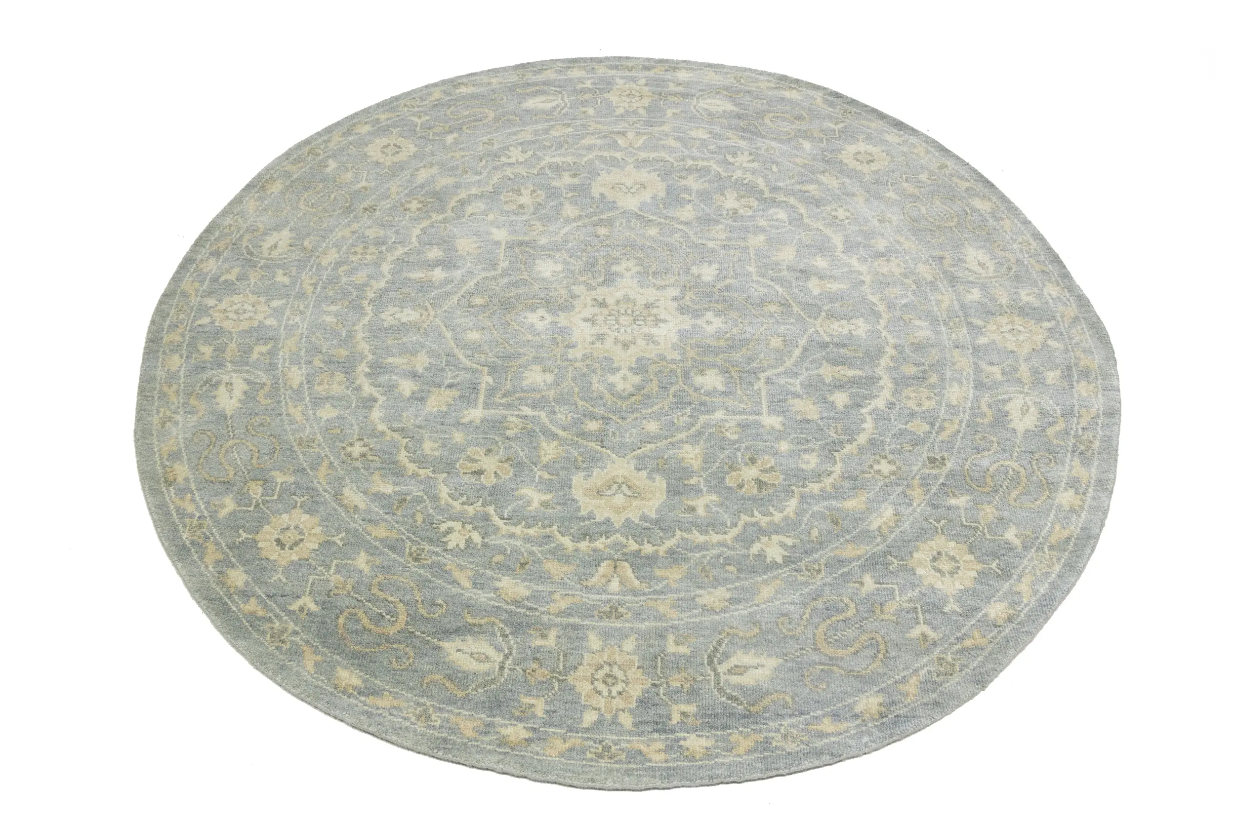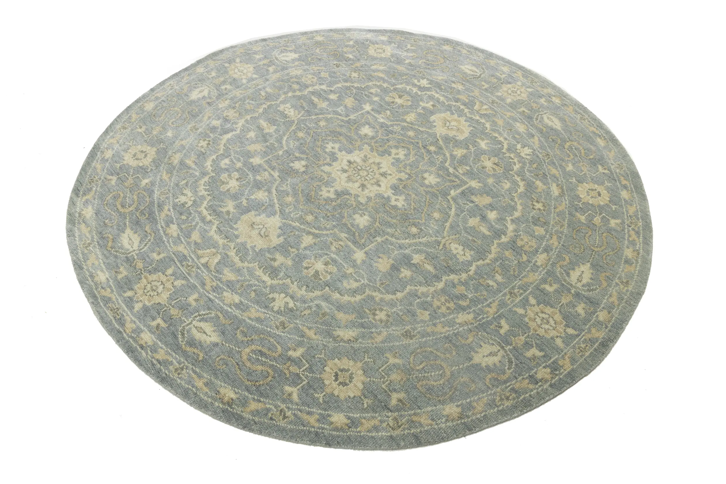 Muted Gray Floral 8X8 Transitional Oriental Round Rug