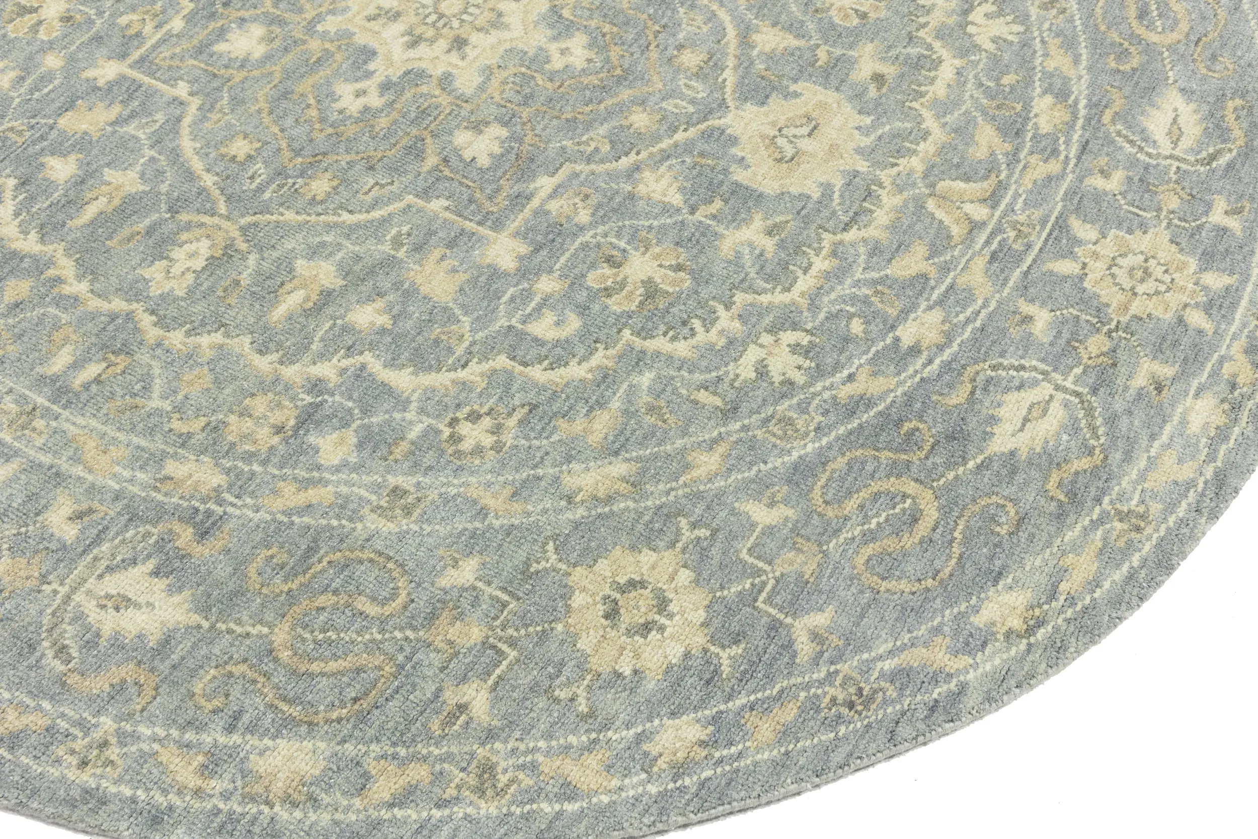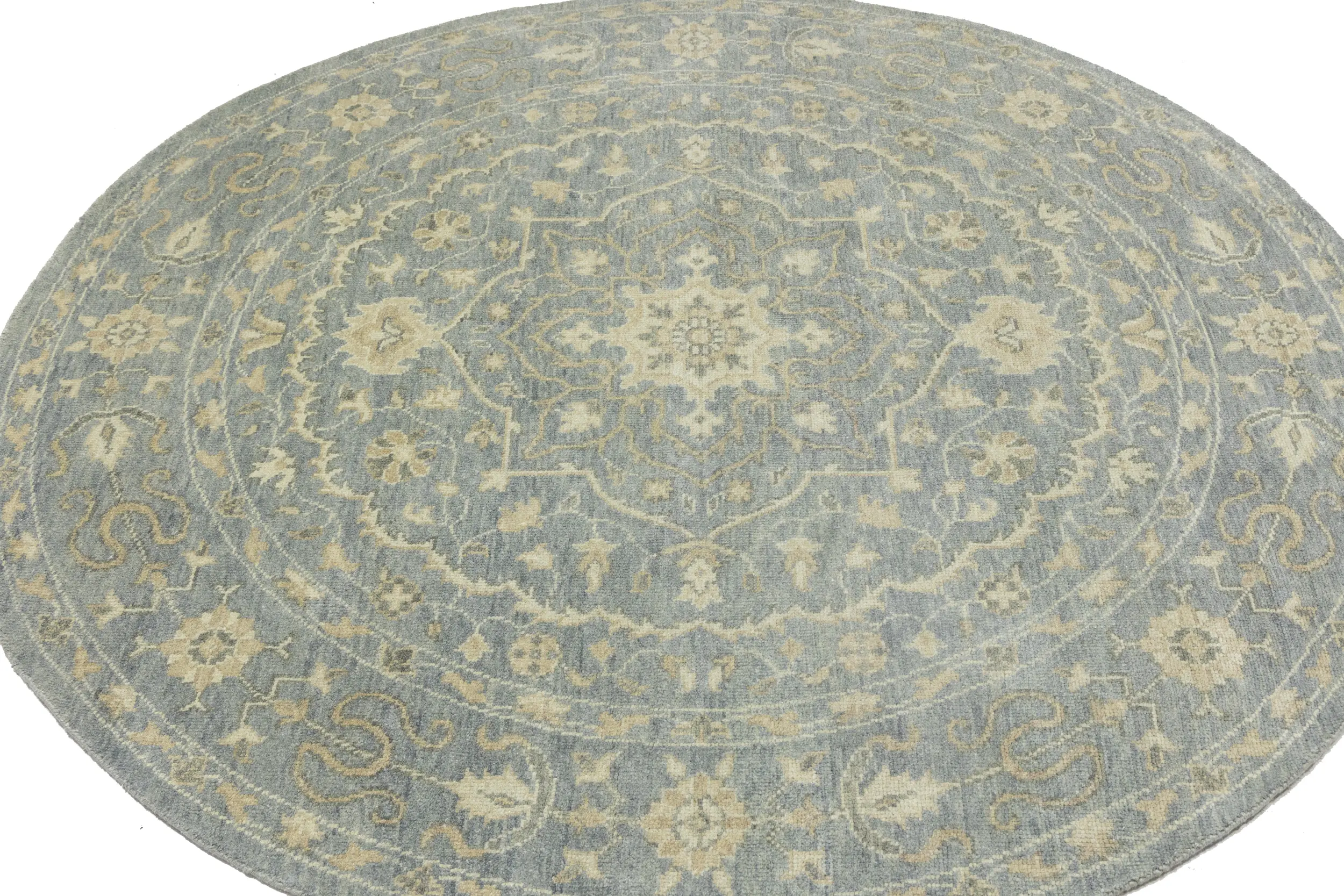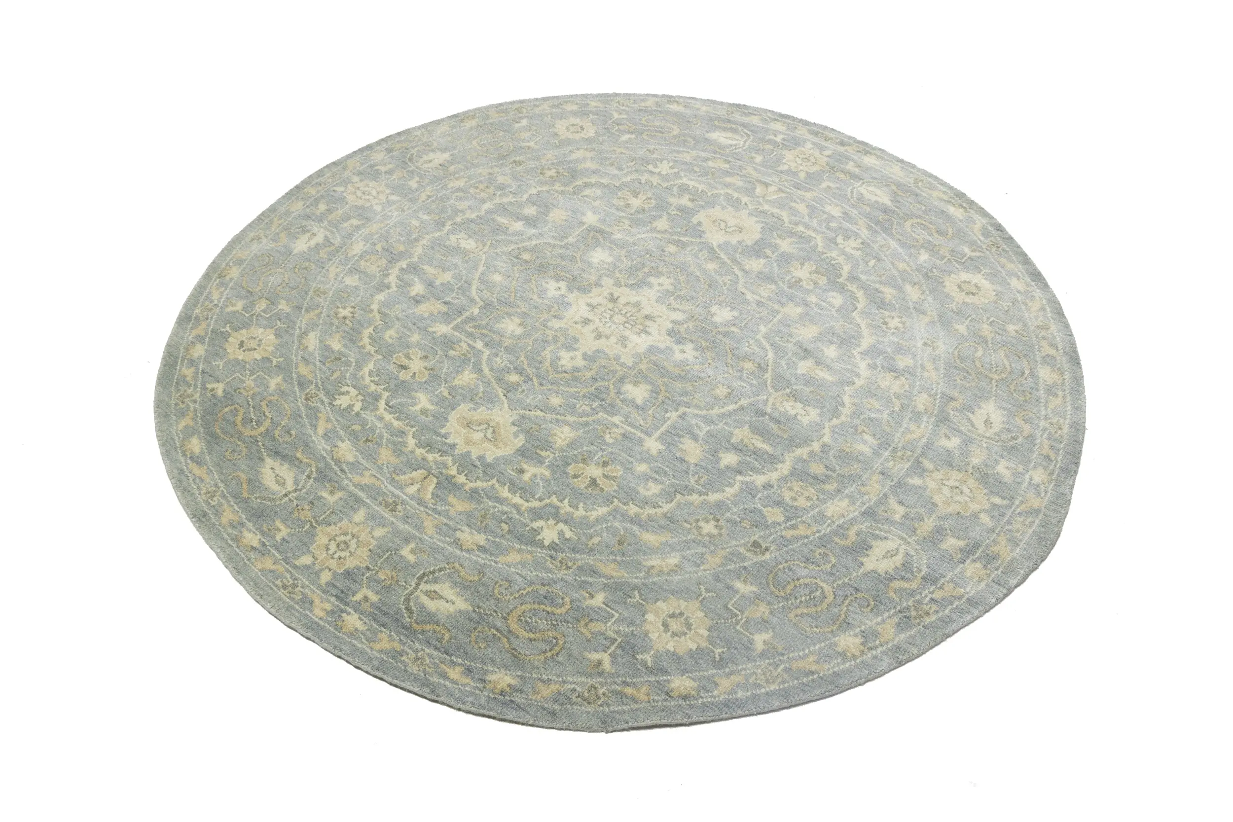 Muted Gray Floral 8X8 Transitional Oriental Round Rug