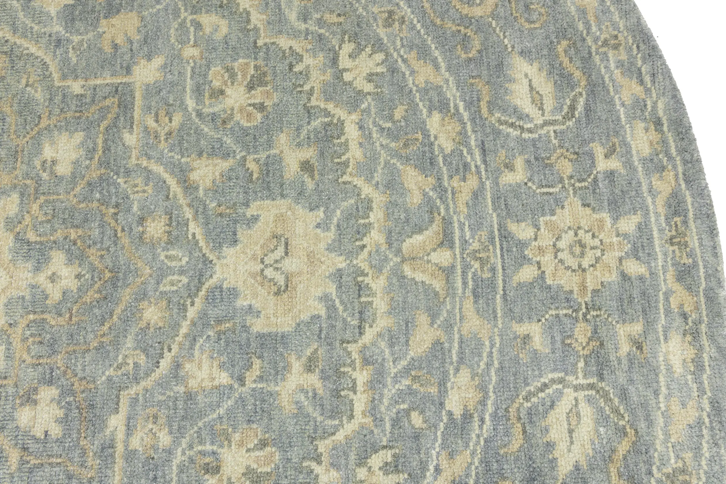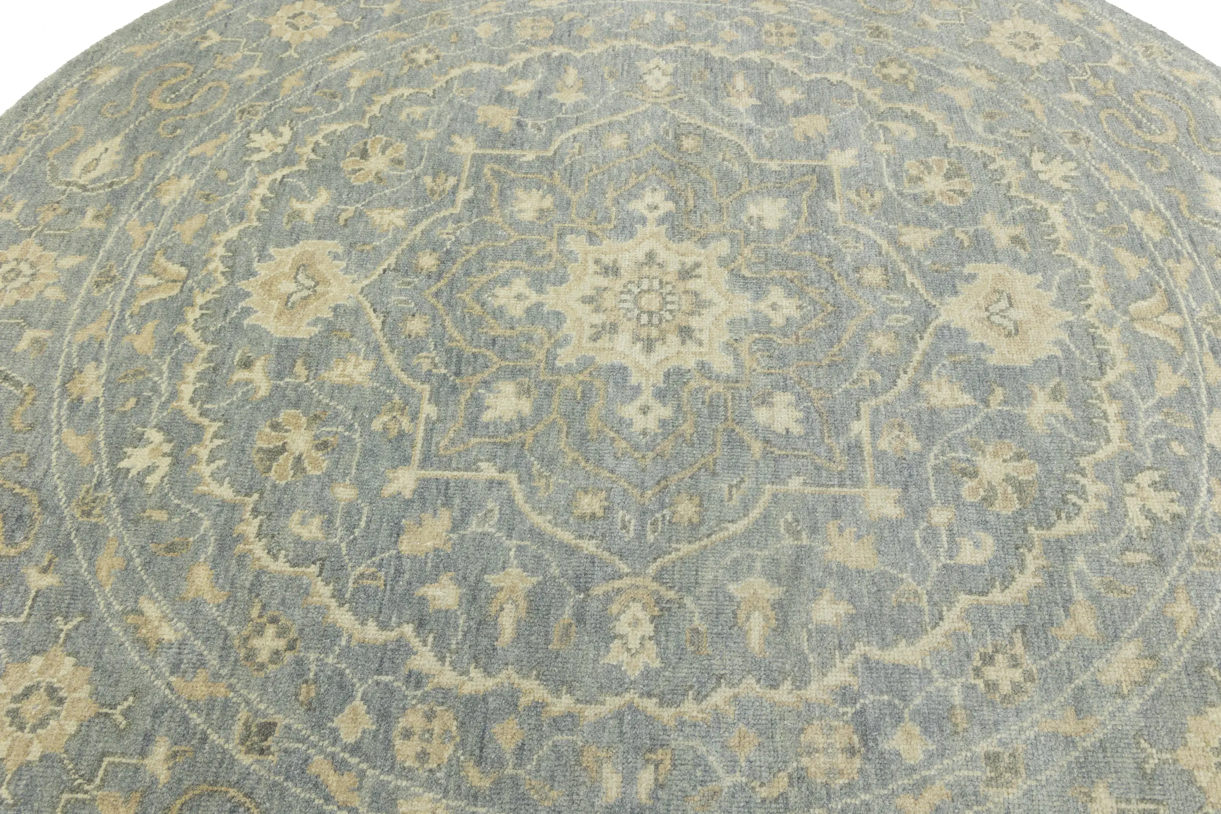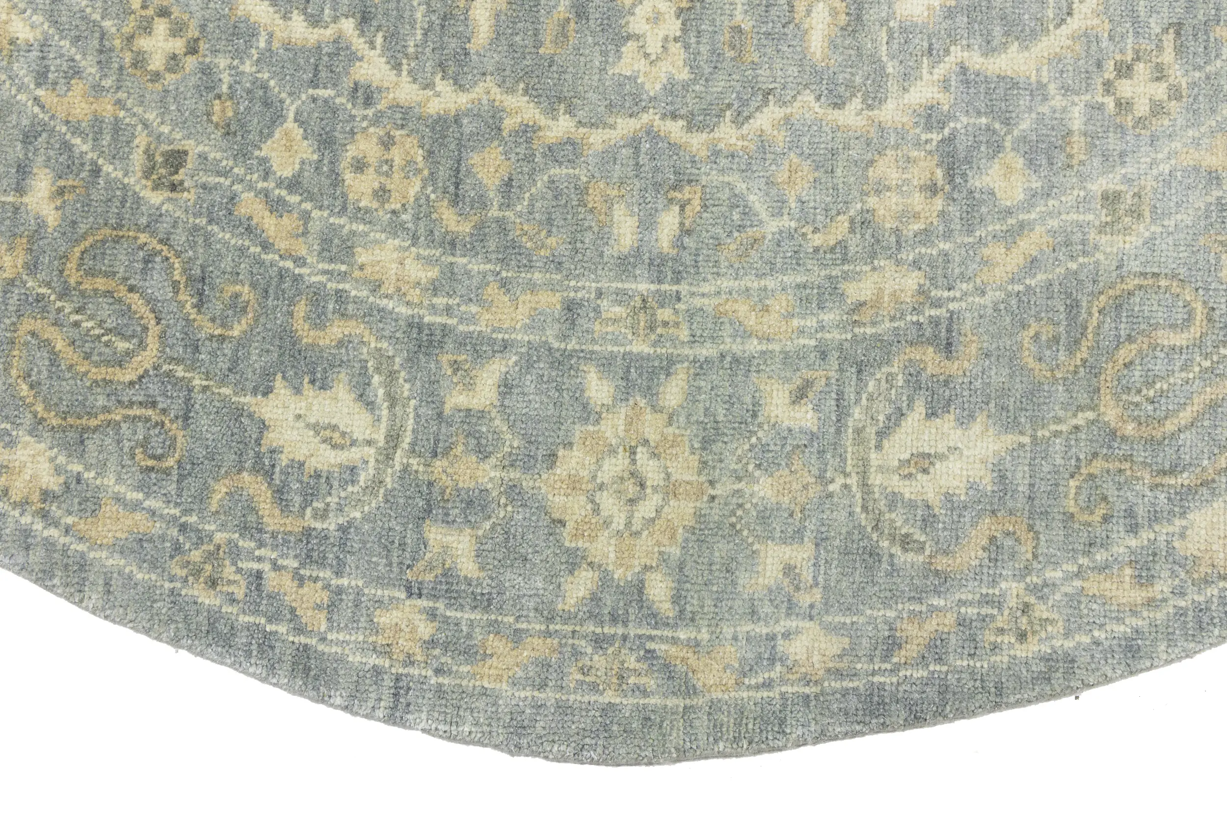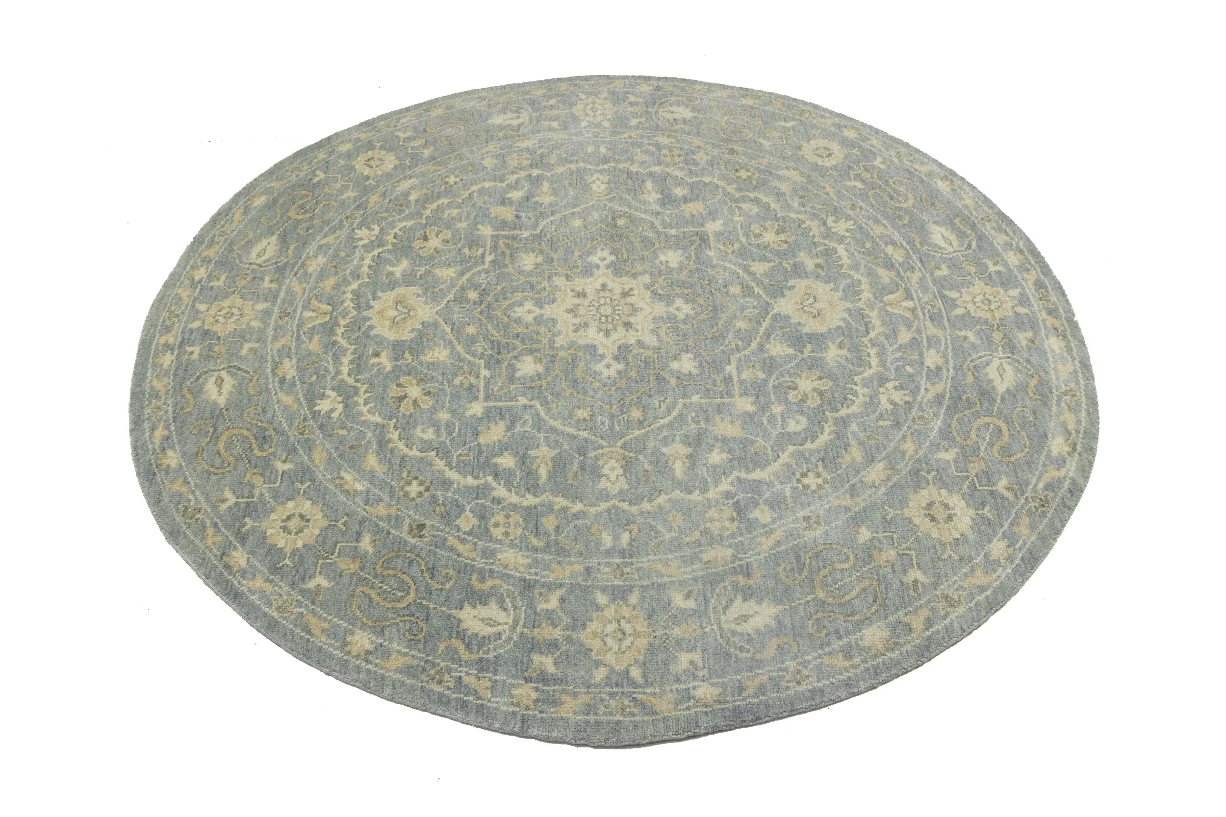 Muted Gray Floral 8X8 Transitional Oriental Round Rug
