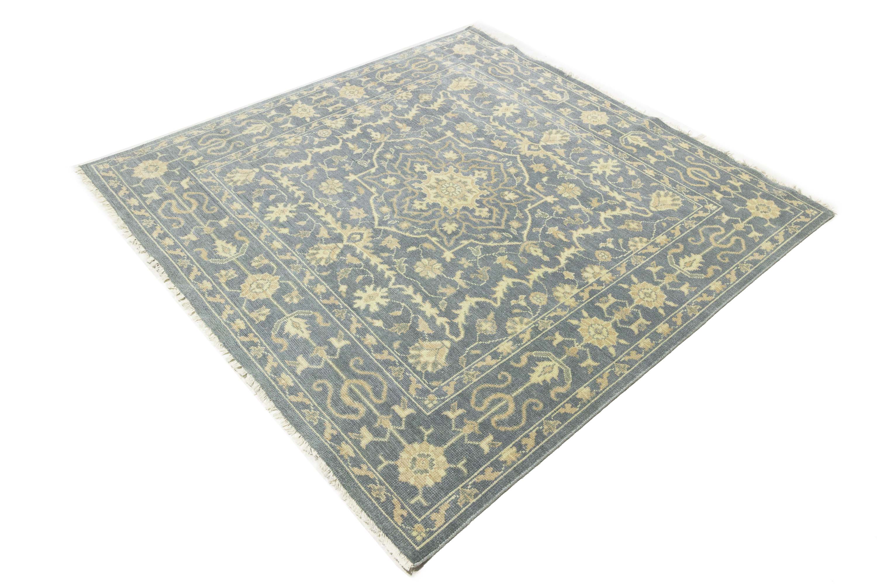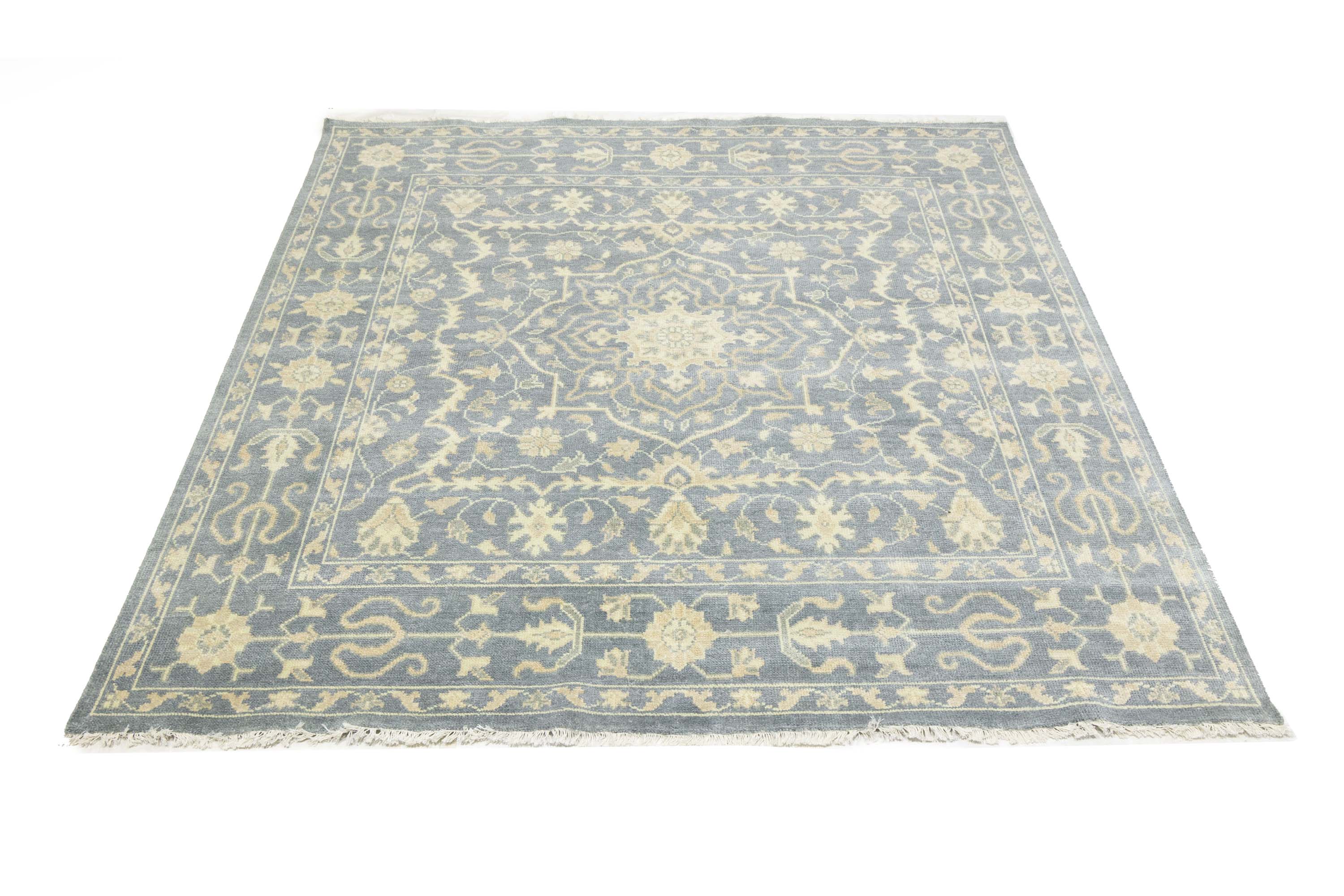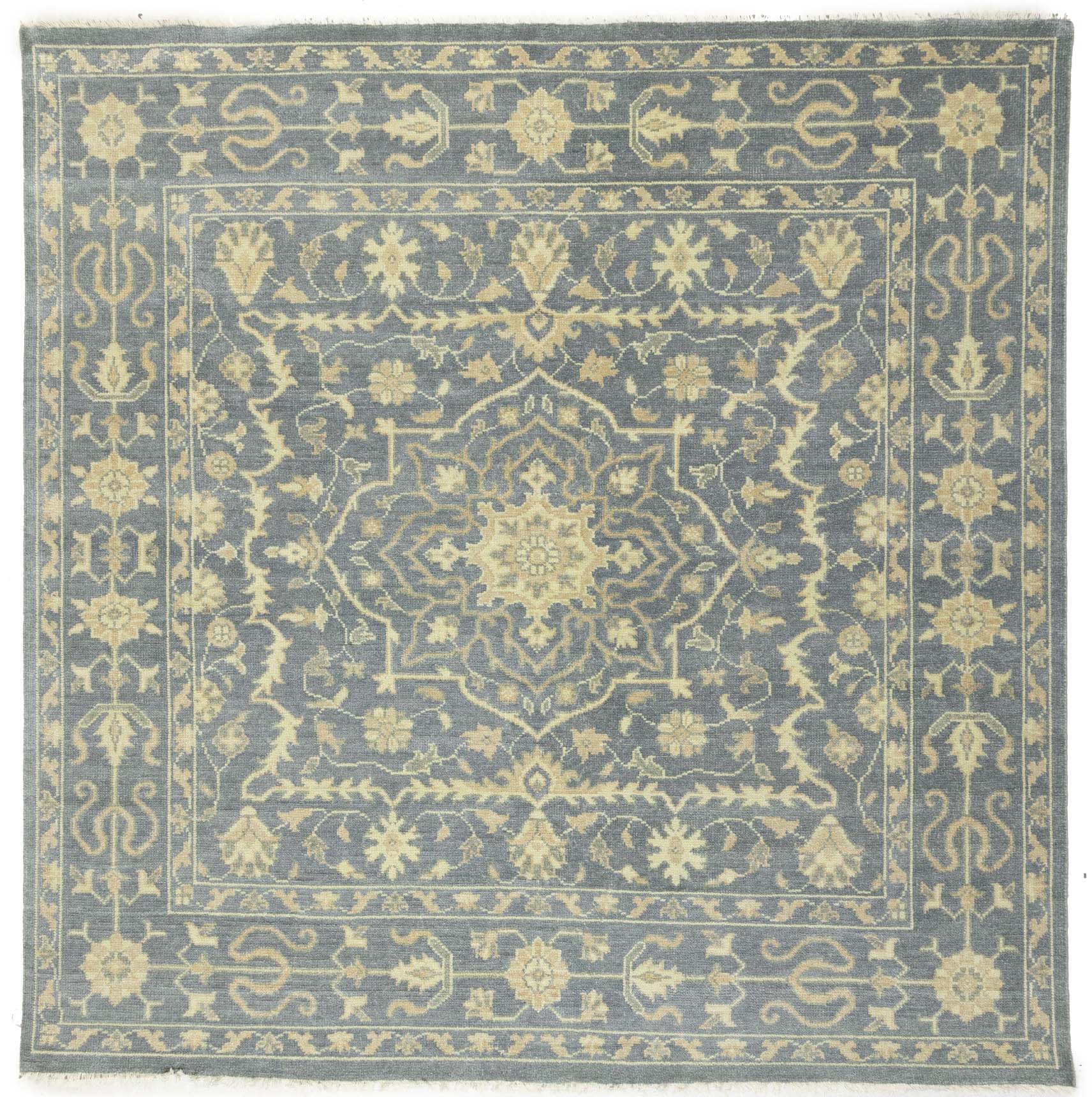 Muted Gray Floral 8X8 Transitional Oriental Square Rug
