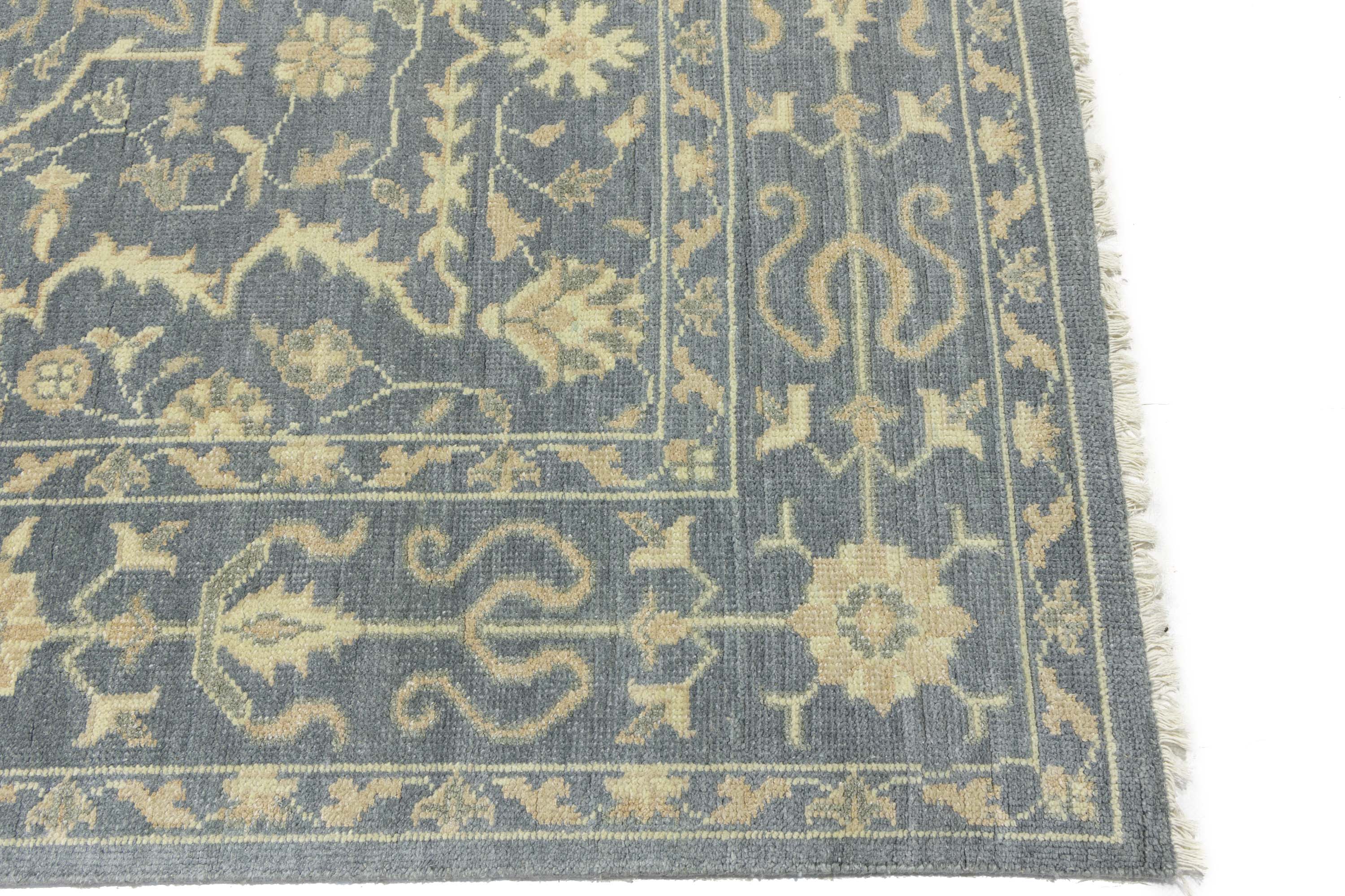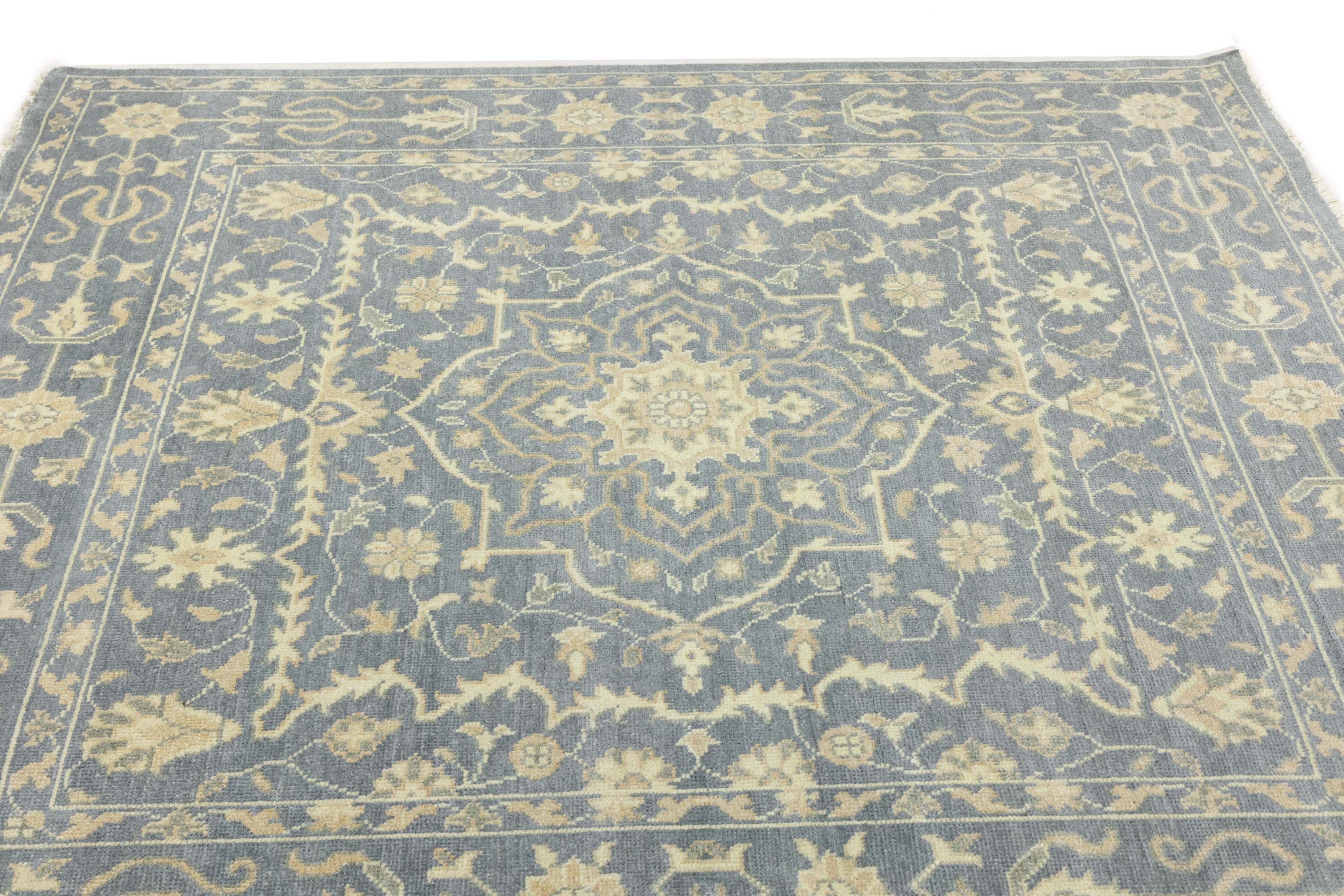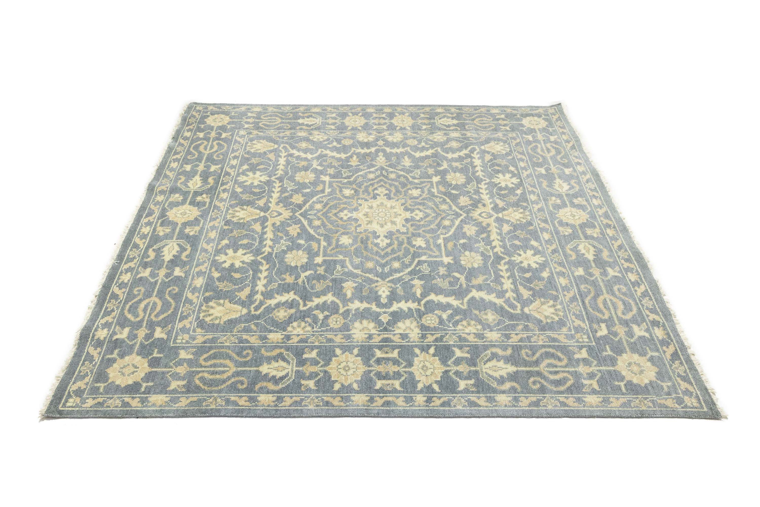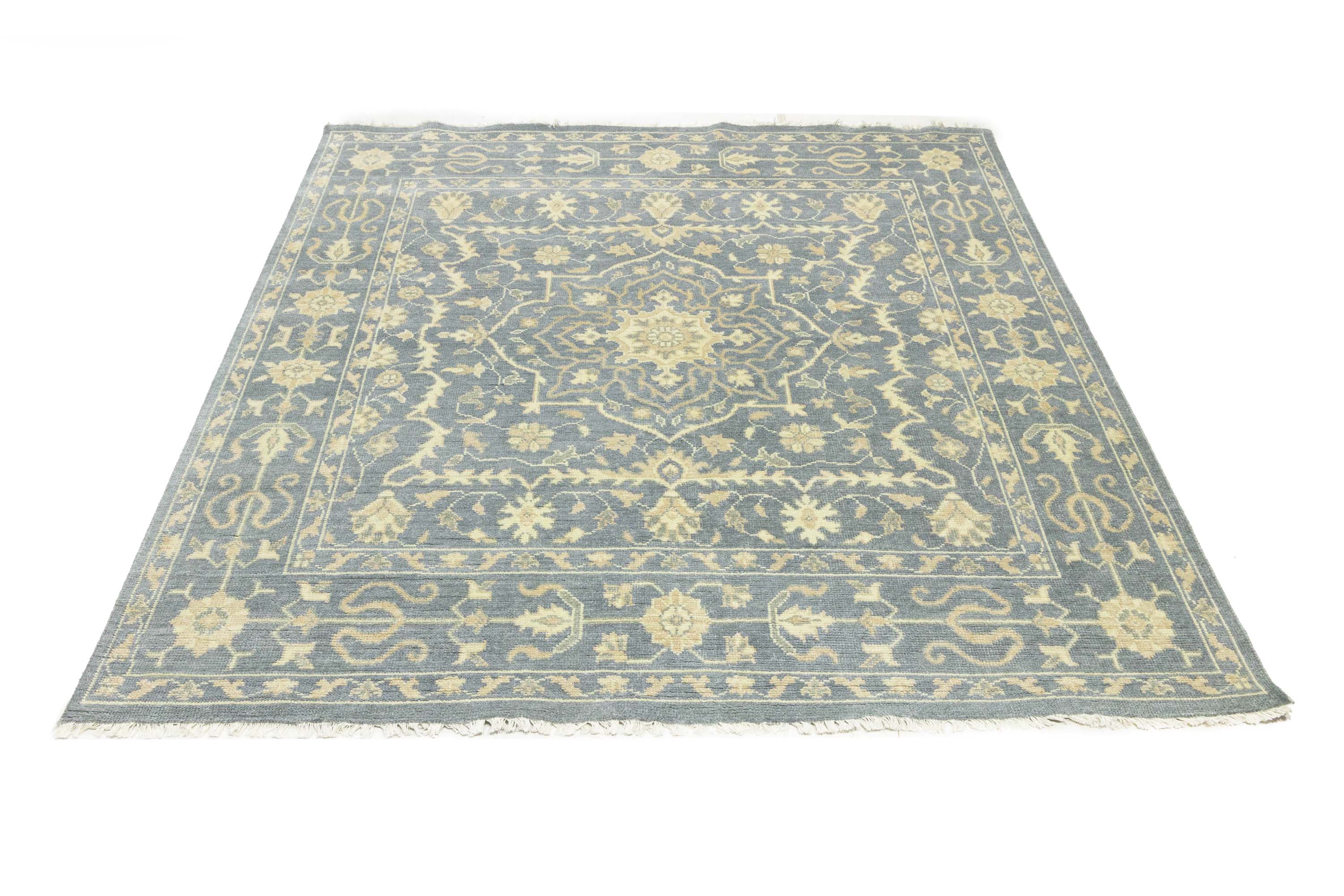Muted Gray Floral 8X8 Transitional Oriental Square Rug