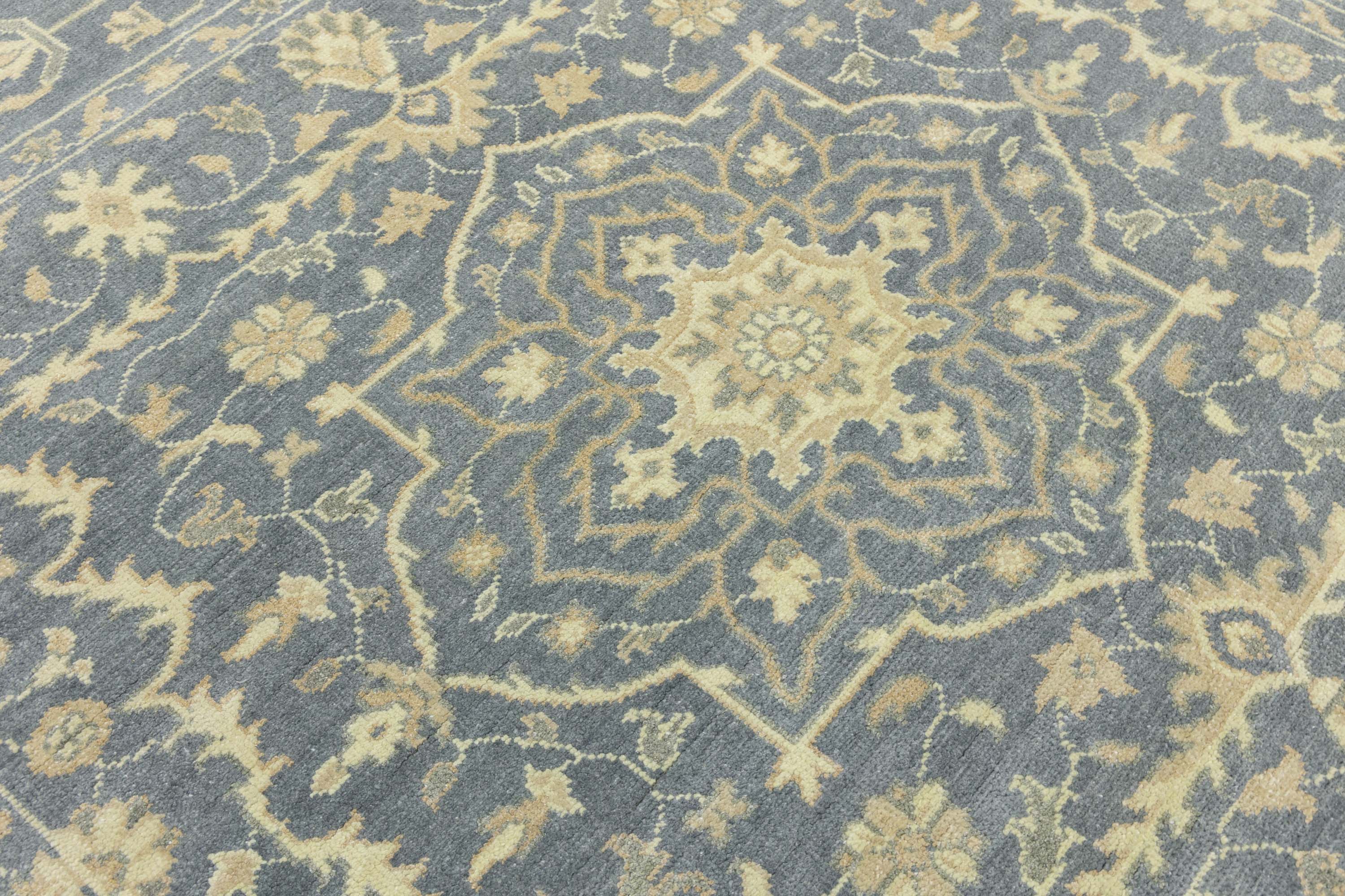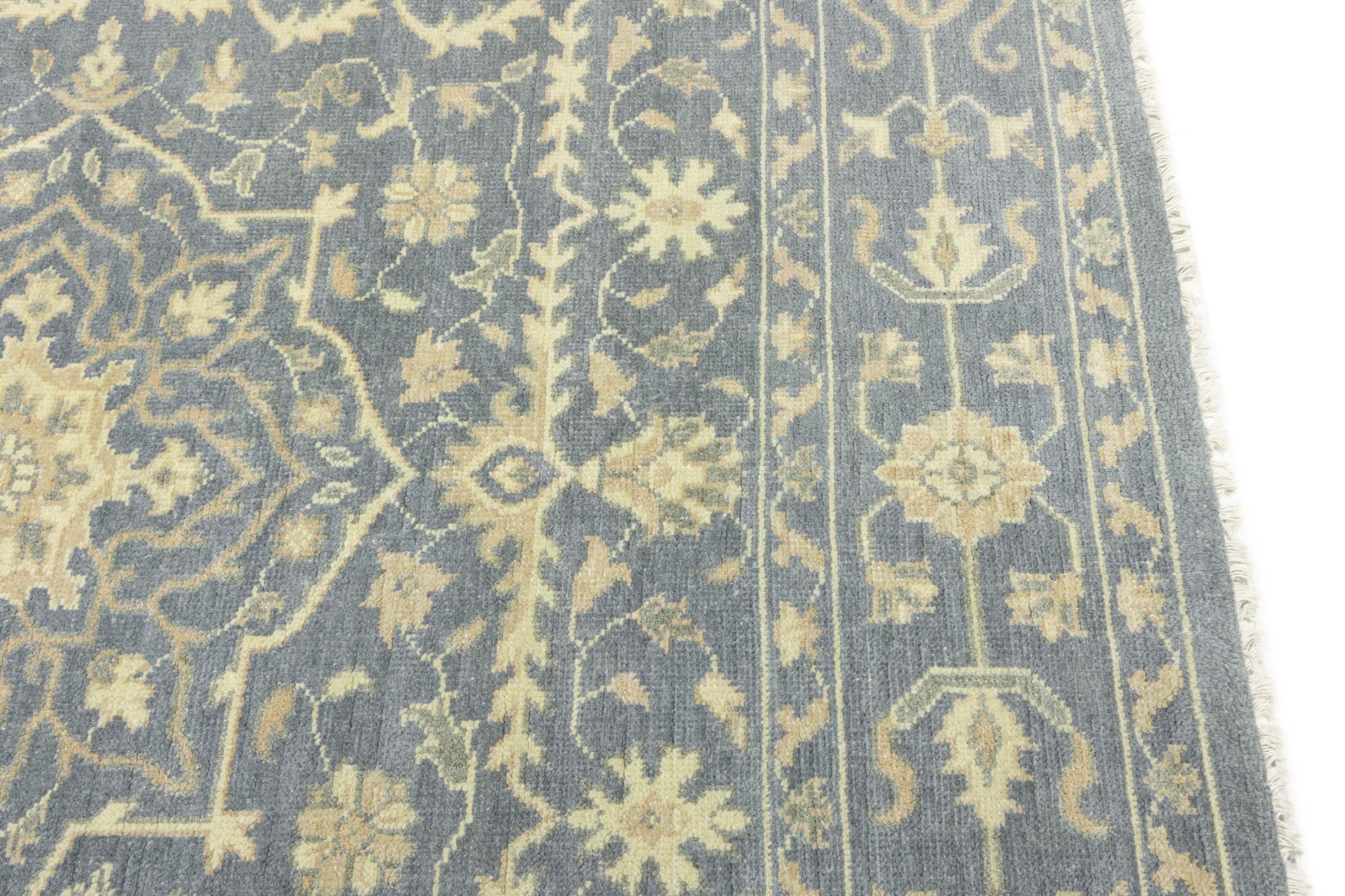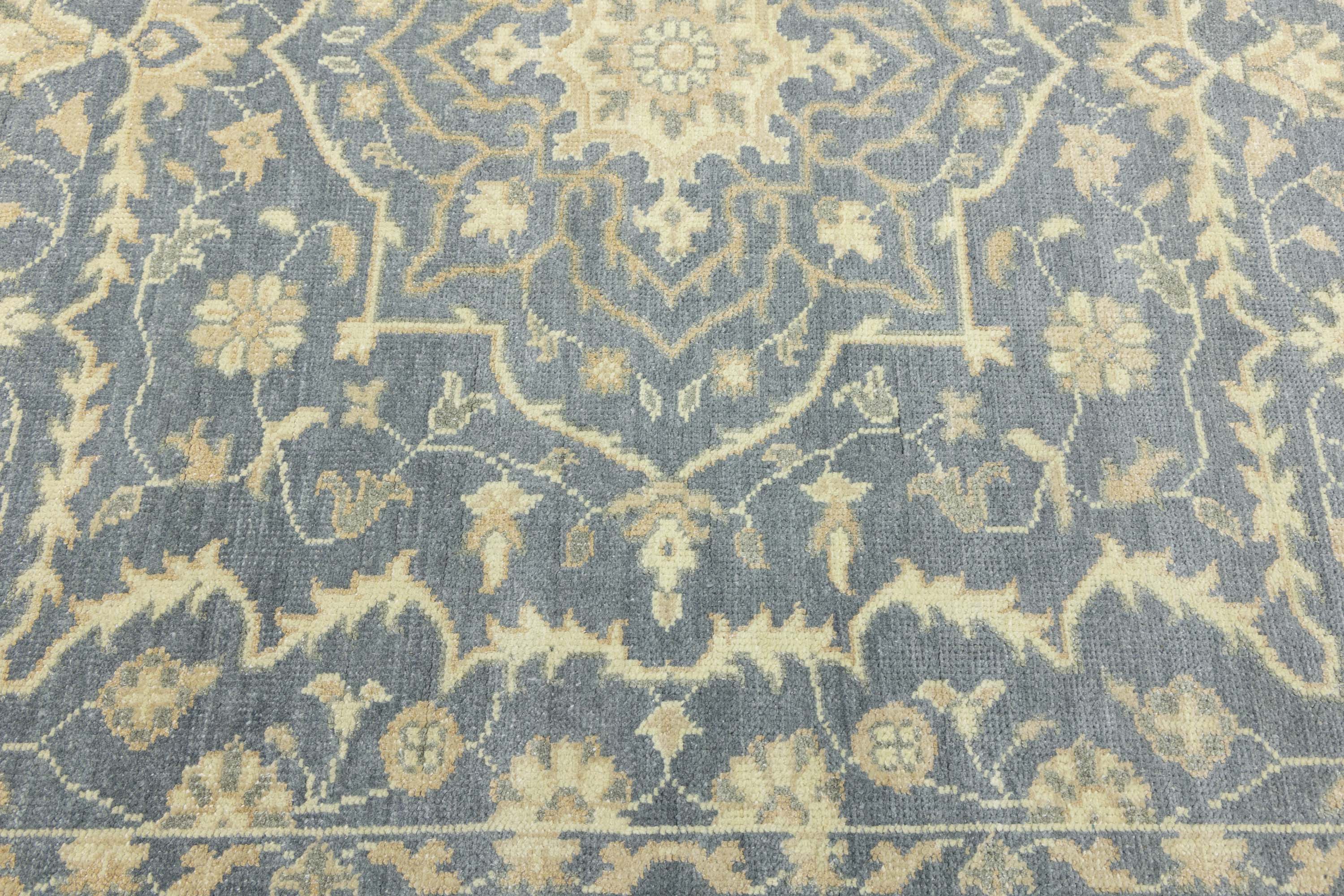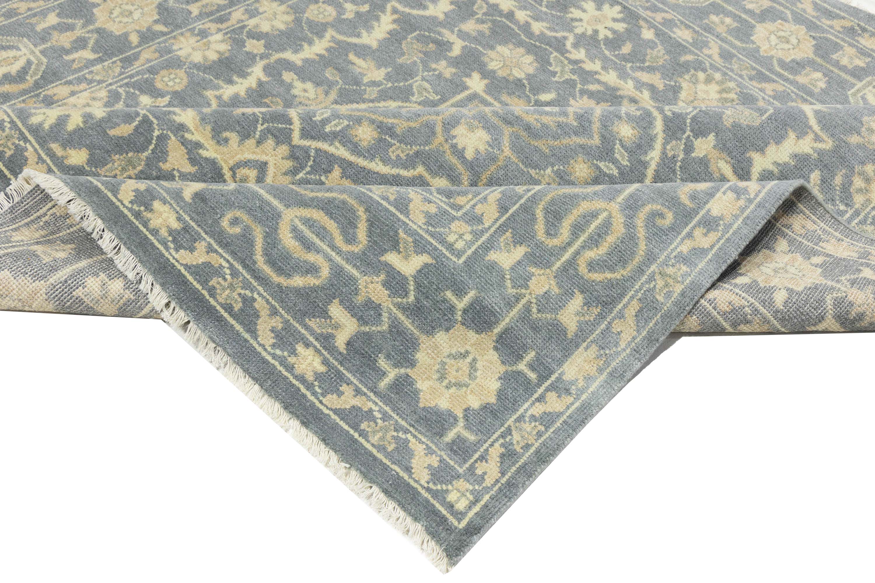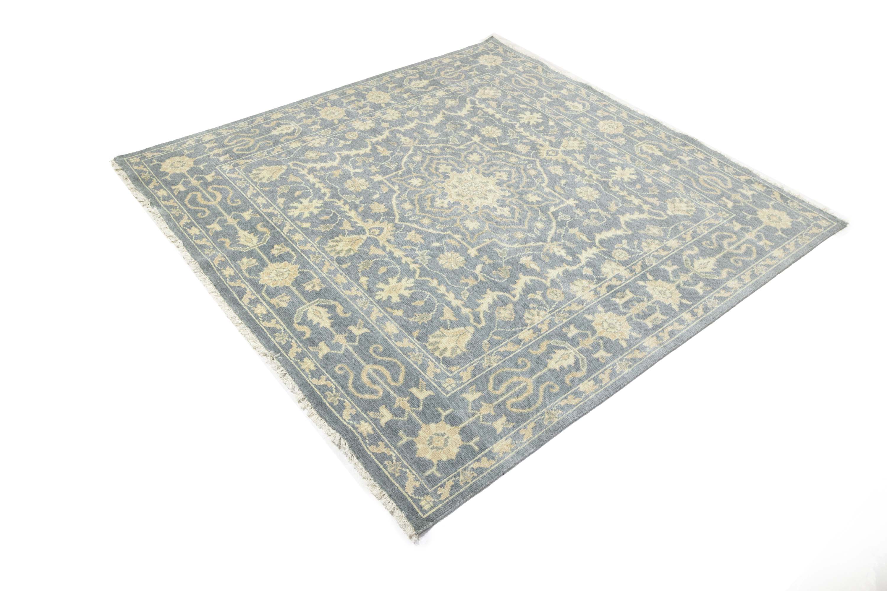 This genuine 8X8 gray new Oriental rug was made by the hands of gifted weavers inspired by a variety of spectacular artistic designs, to recreate the aged look of the original piece with a richness of color and ornately patterned background field. What set this vintage style Oriental area rug from the others are the material and dye used (wool pile and cotton foundation), knot count, ancient designs, fantastic grades, and its regional historical connection: it has deep roots, from the story of the people who produced it to the meaning of the symbols and colors displayed across its canvas that have been praised for centuries. This Indian home décor carpet will be completely cozy and inviting that never will go out of style! Also, this Oriental rug would be among your most valuable treasures, it is a great investment that accrues value over time, and it will last for generations because was woven with high-quality, all-natural wool. Environmentally friendly, opulent yet affordable; this rug will give you a thorough amount of character to help define your living space with elegance and warmth that will capture the eyes and attention of your audience (homeowners, designers, decorators, family and friends). OT-12007