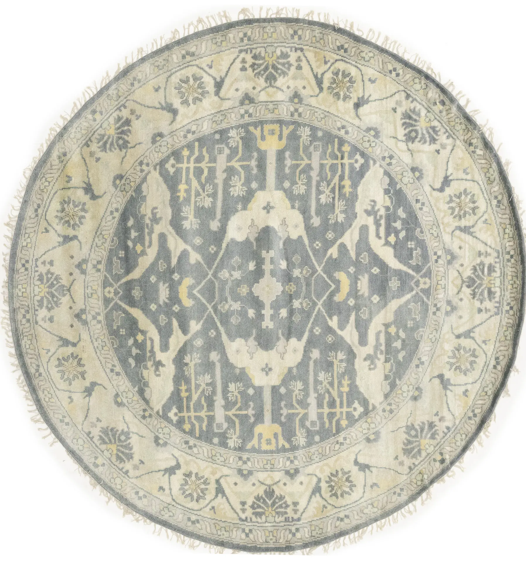 This genuine 9X9 gray new Oriental Round rug was made by the hands of gifted weavers inspired by a variety of spectacular artistic designs, to recreate the aged look of the original piece with a richness of color and ornately patterned background field. What set this vintage style Oriental area rug from the others are the material and dye used (wool pile and cotton foundation), knot count, ancient designs, fantastic grades, and its regional historical connection: it has deep roots, from the story of the people who produced it to the meaning of the symbols and colors displayed across its canvas that have been praised for centuries. This Indian home décor carpet will be completely cozy and inviting that never will go out of style! Also, this Oriental rug would be among your most valuable treasures, it is a great investment that accrues value over time, and it will last for generations because was woven with high-quality, all-natural wool. Environmentally friendly, opulent yet affordable; this rug will give you a thorough amount of character to help define your living space with elegance and warmth that will capture the eyes and attention of your audience (homeowners, designers, decorators, family and friends).