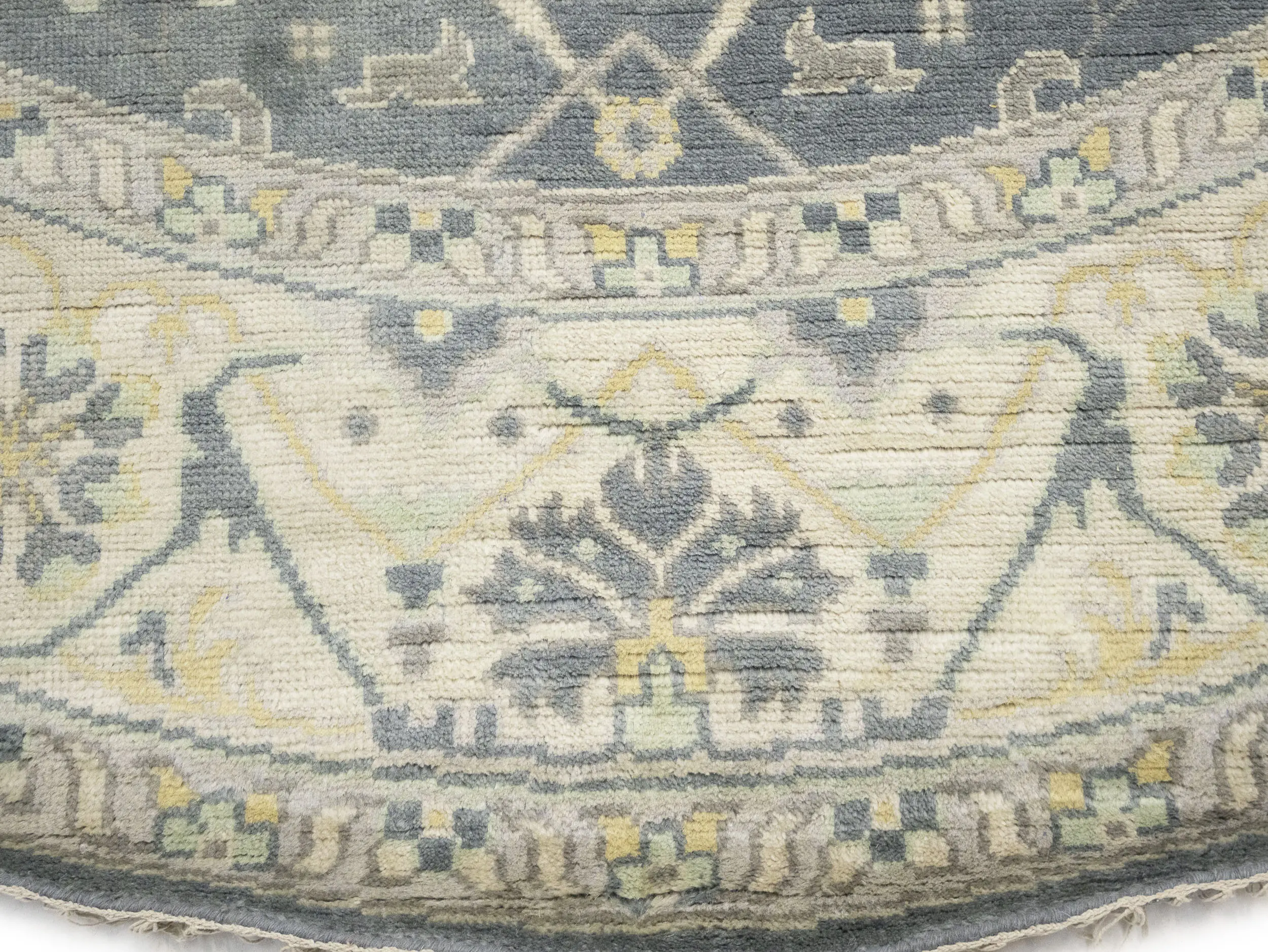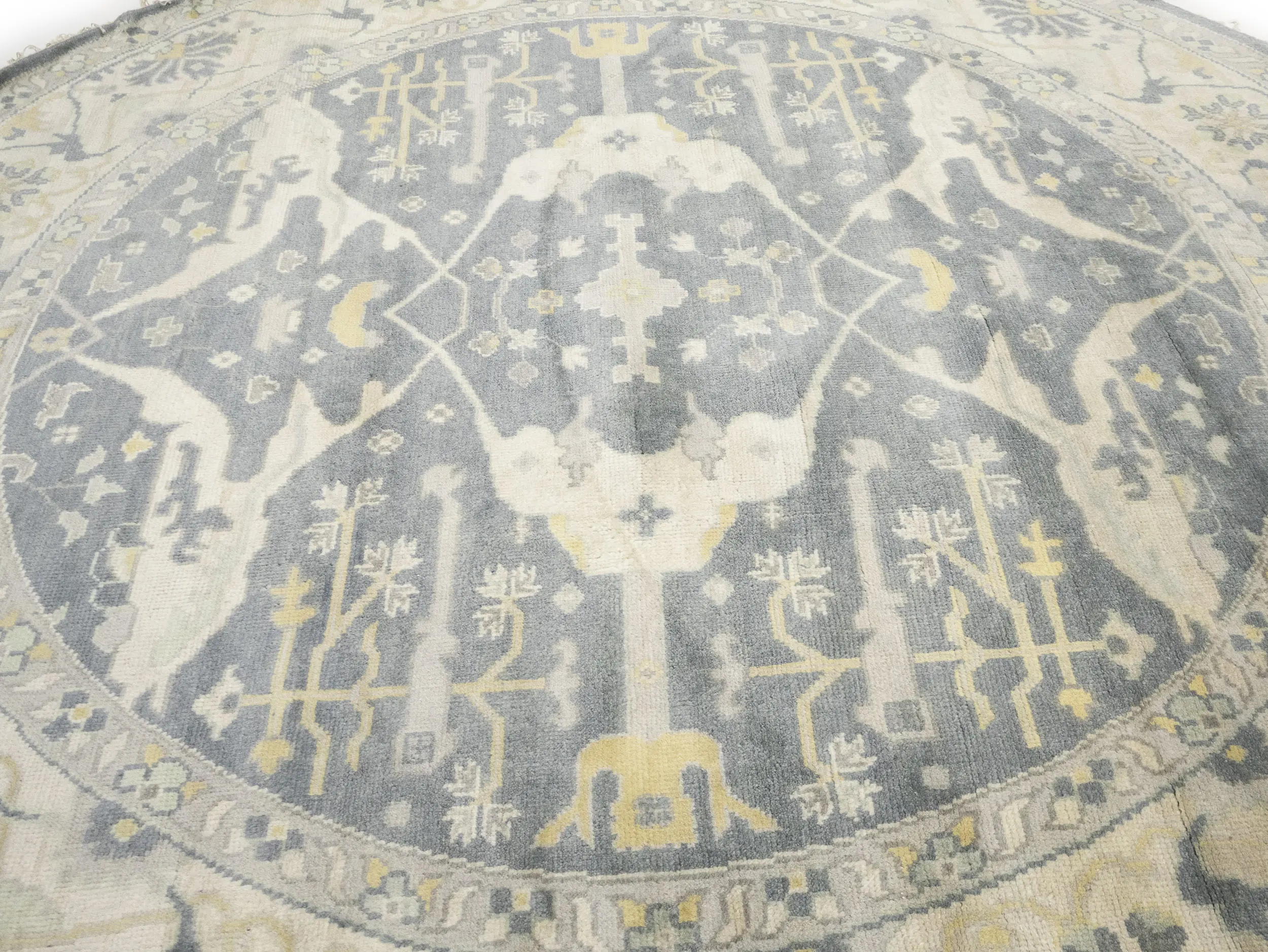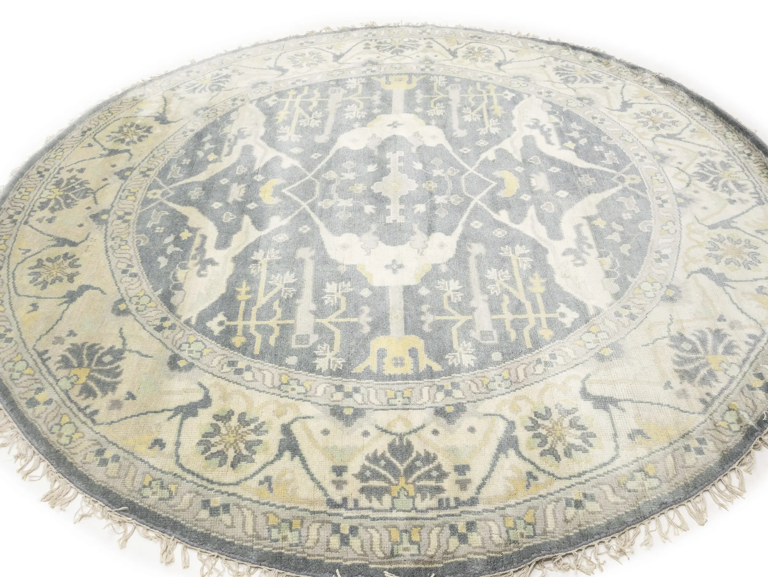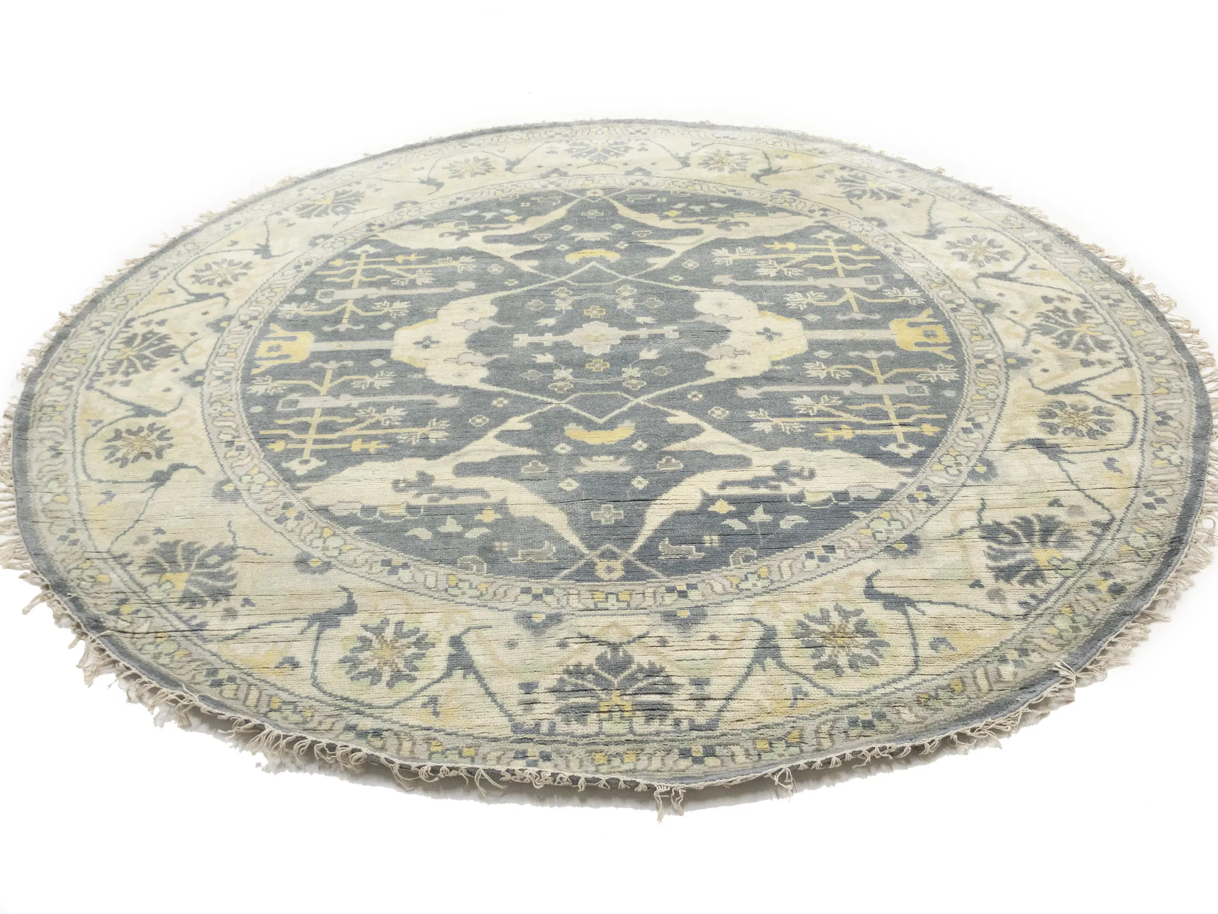 Muted Gray Floral Transitional 9X9 Oushak Oriental Round Rug