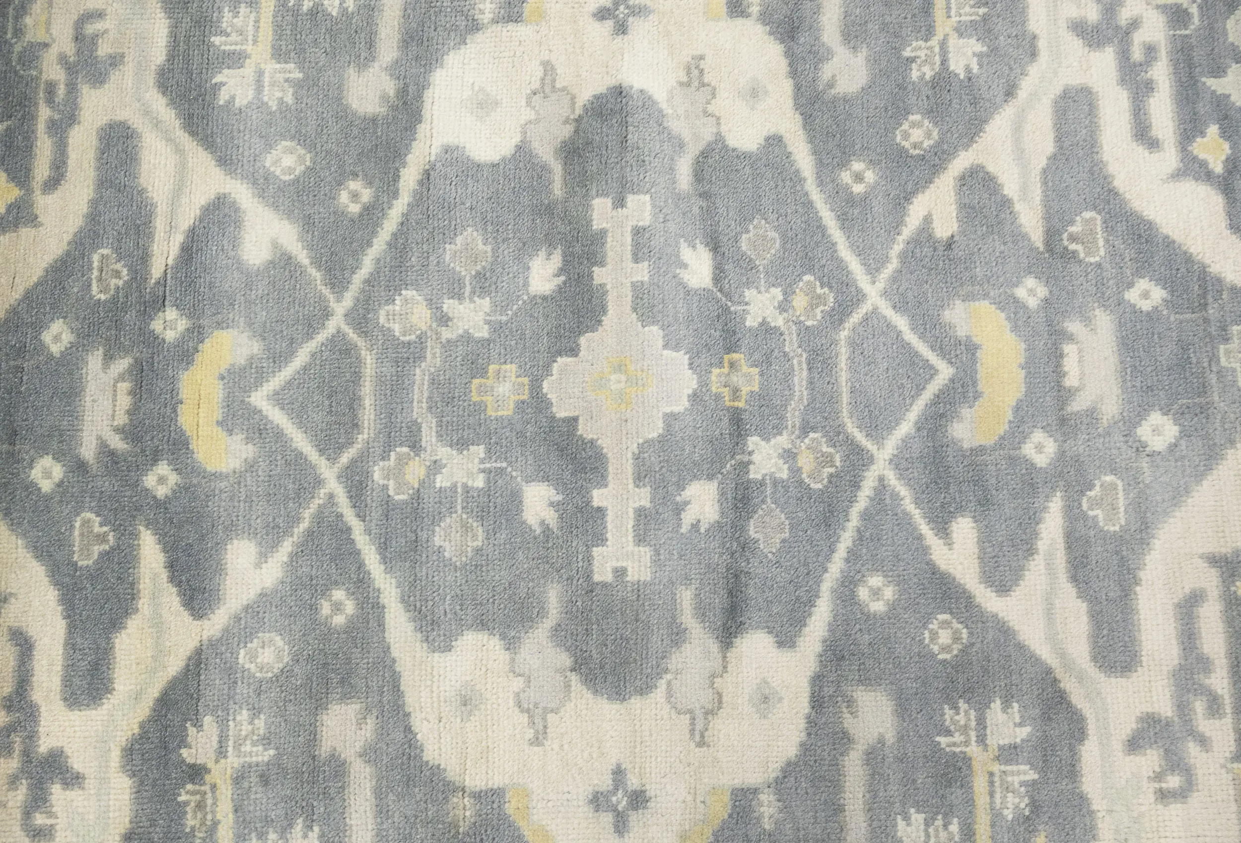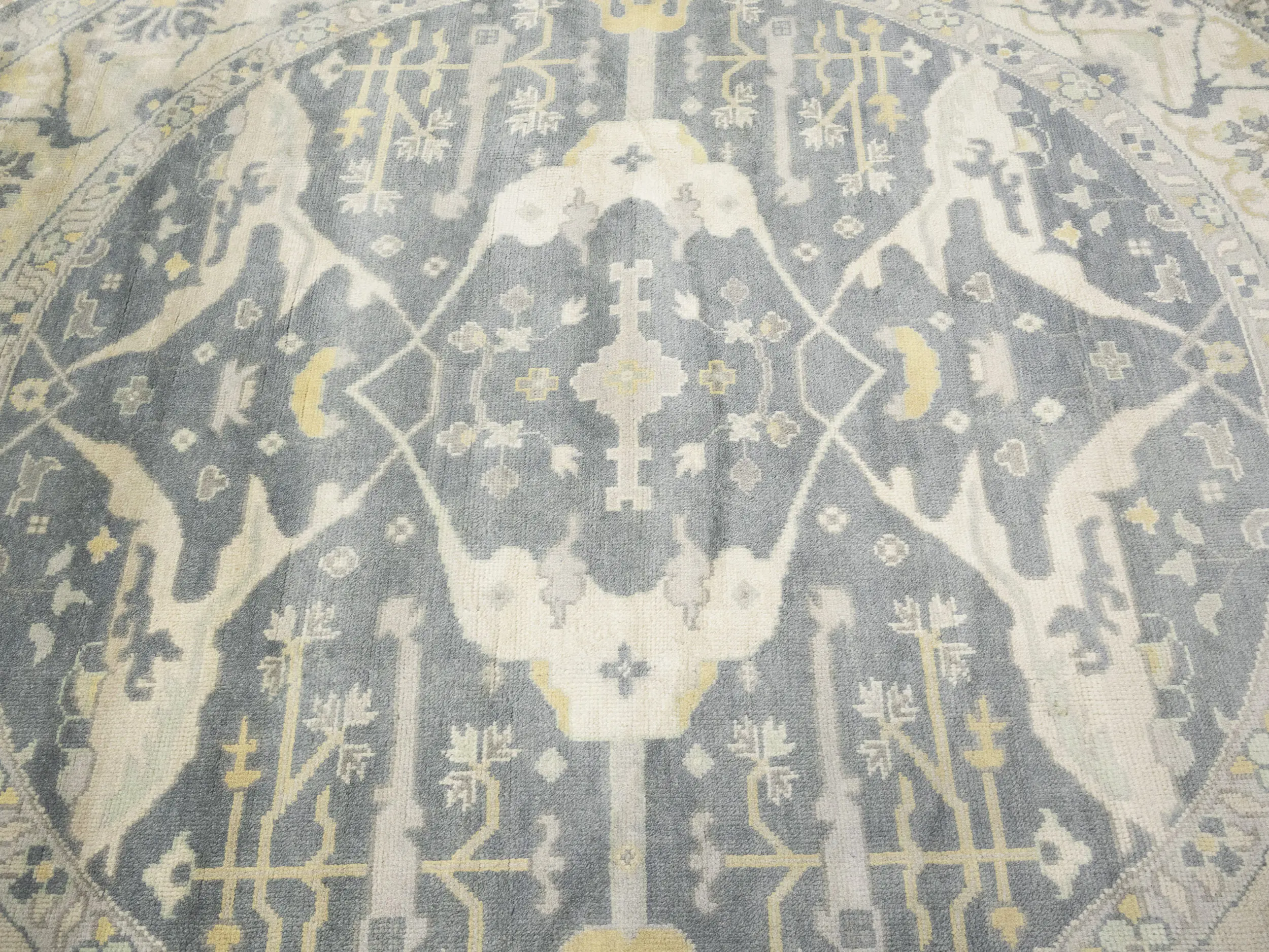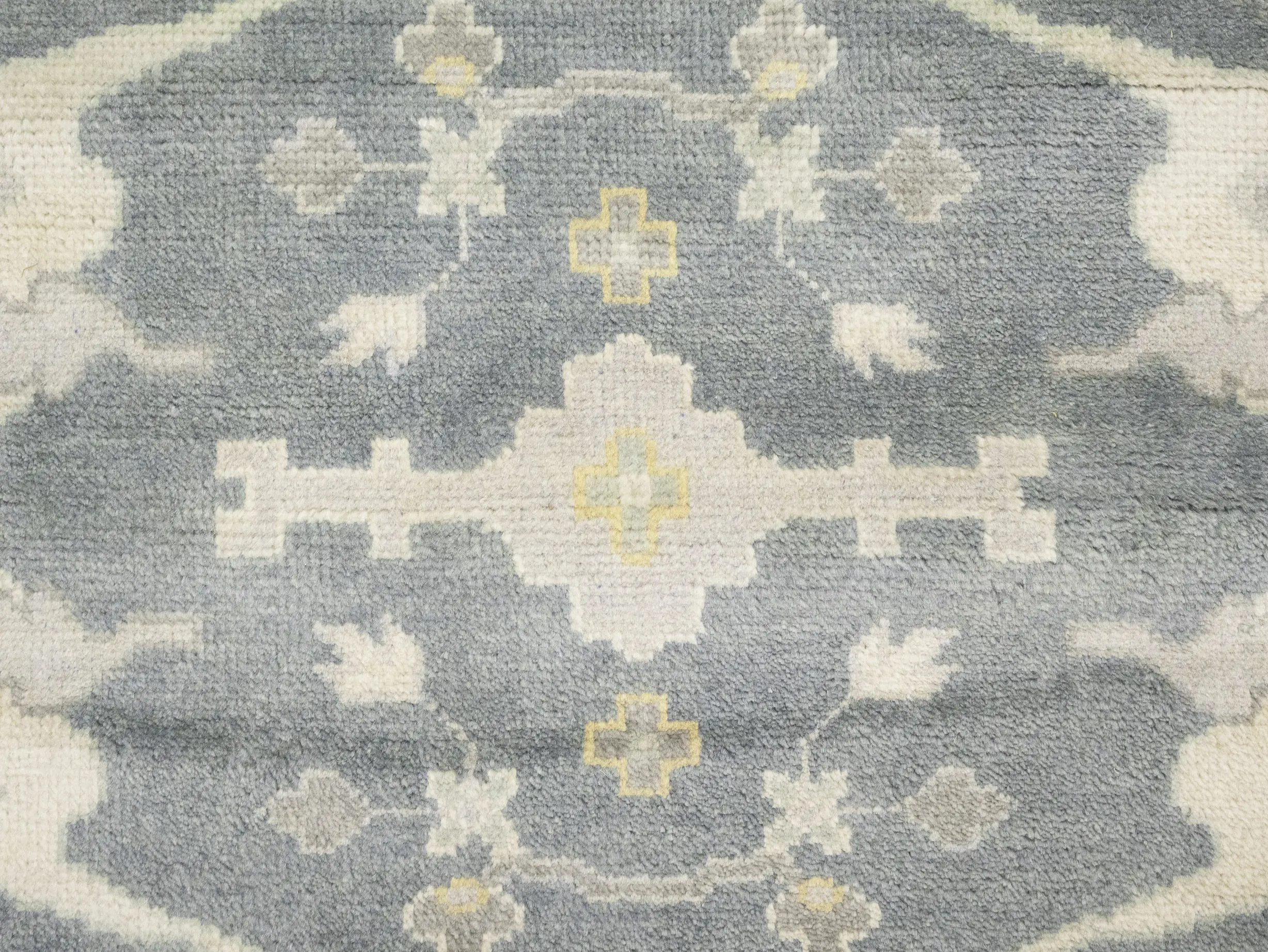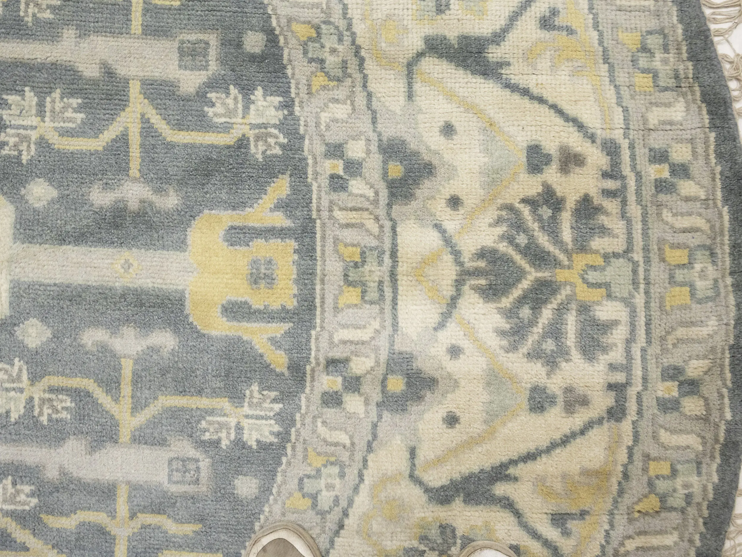 Muted Gray Floral Transitional 9X9 Oushak Oriental Round Rug