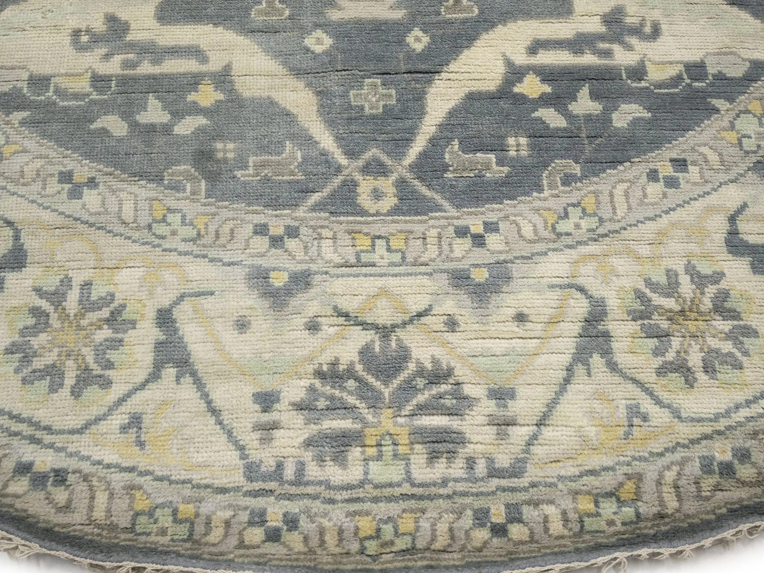 Hand Knotted 9X9 gray oriental Round rug made with vegetable dyes (fine wool pile and cotton foundation), superior knot count, and alluring ancient designs. This Oriental rug never will go out of style and would be among your most valuable treasures.
