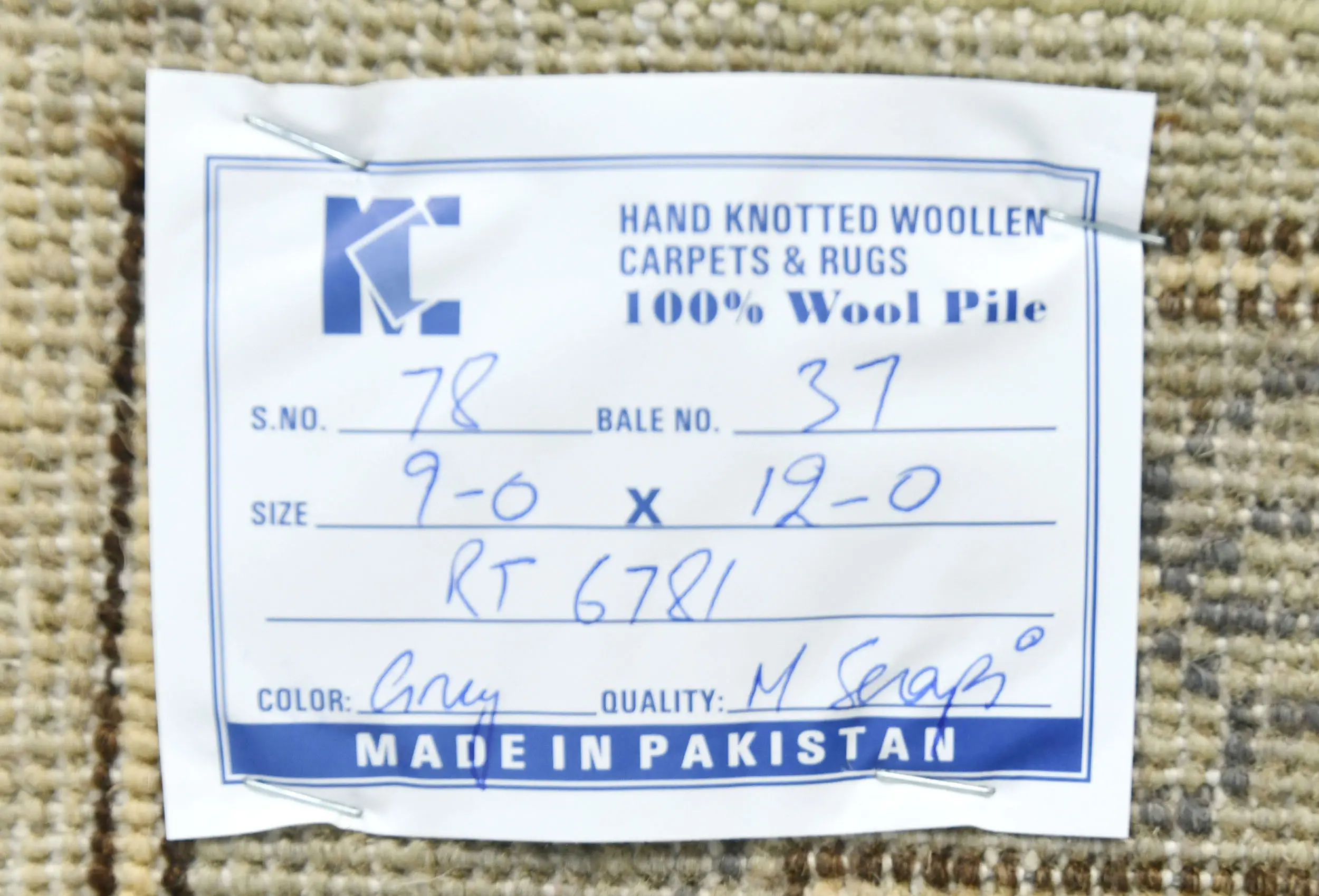 Handmade 9X12 gray Oriental rug made with natural dyes (fine wool pile and cotton foundation), superior knot count, and appealing ancient designs. This Oriental rug never will go out of style and would be among your most valuable treasures.