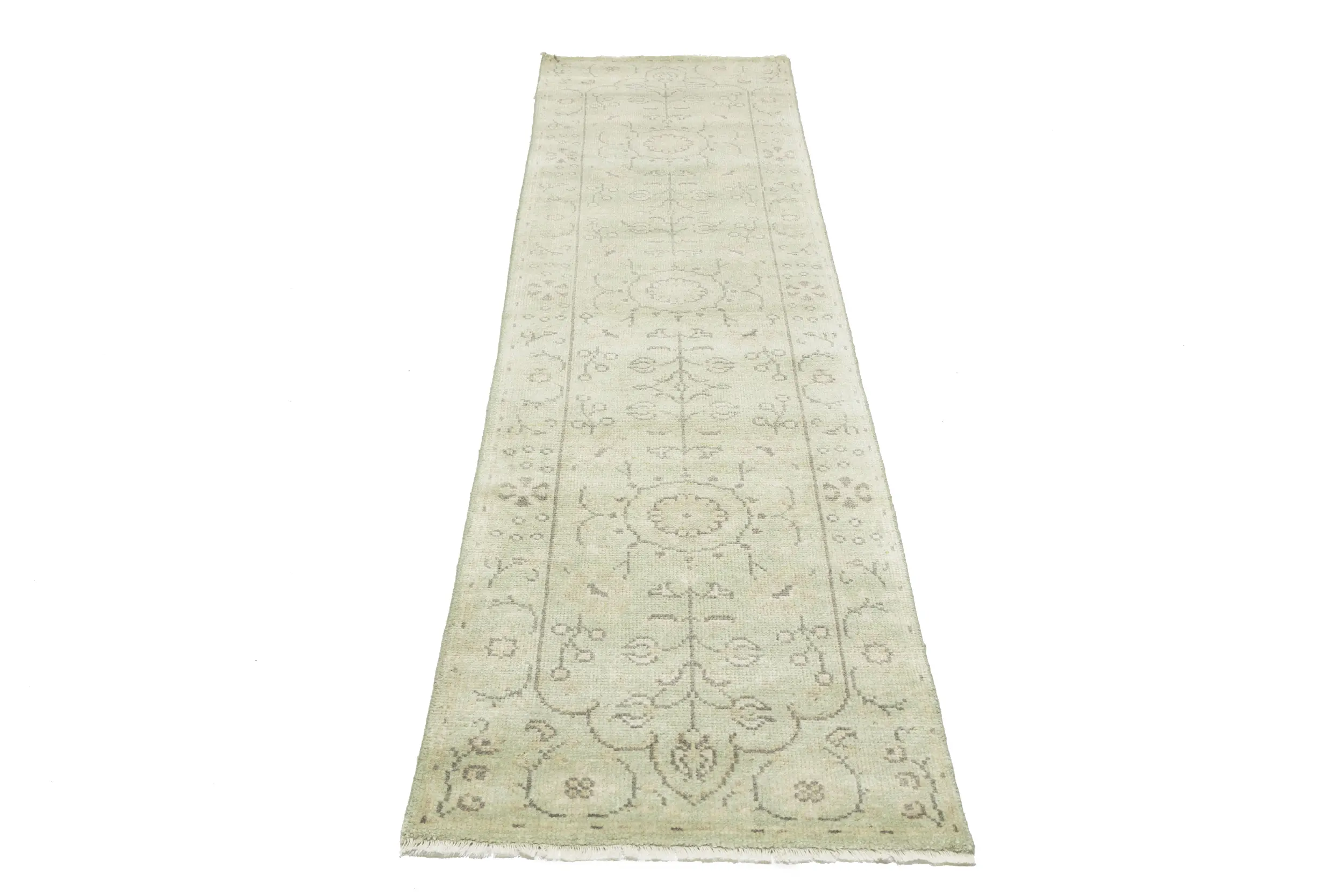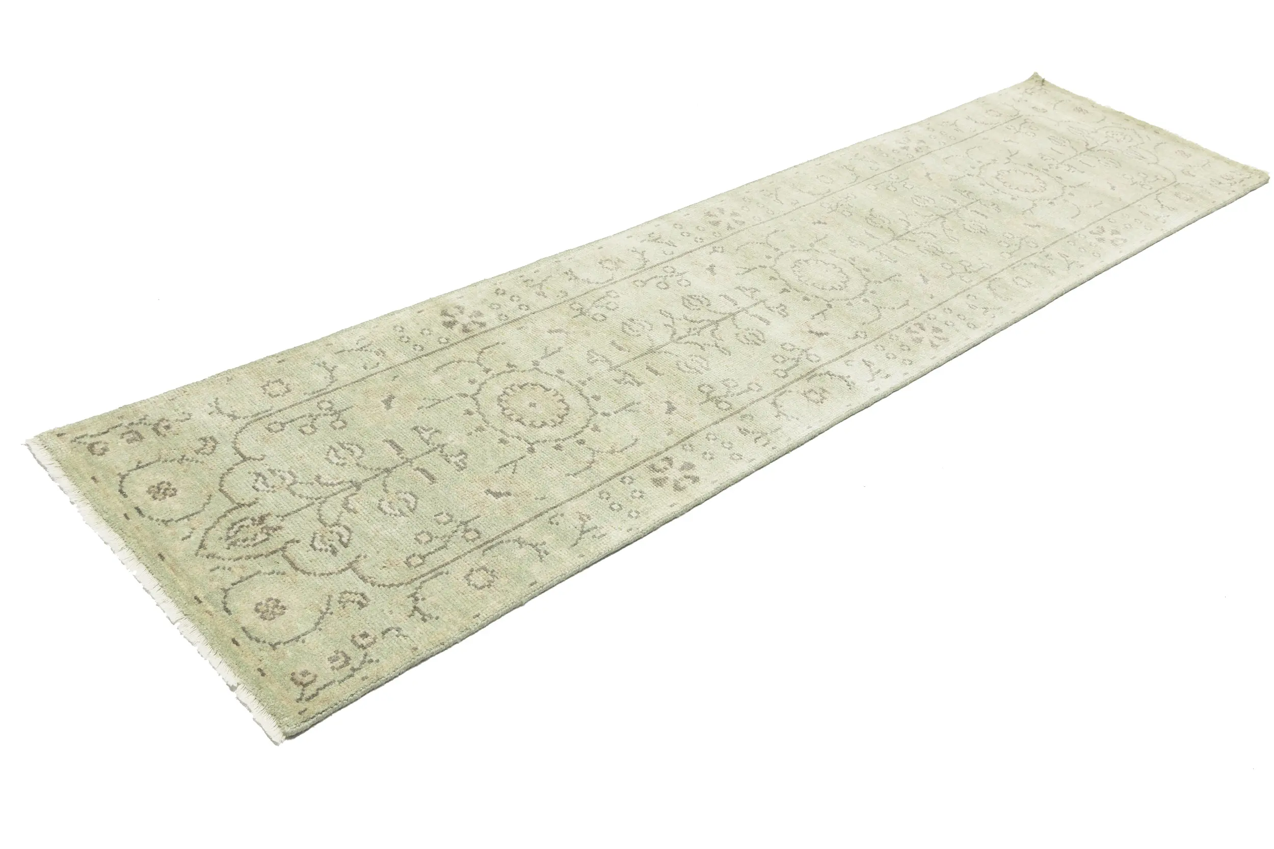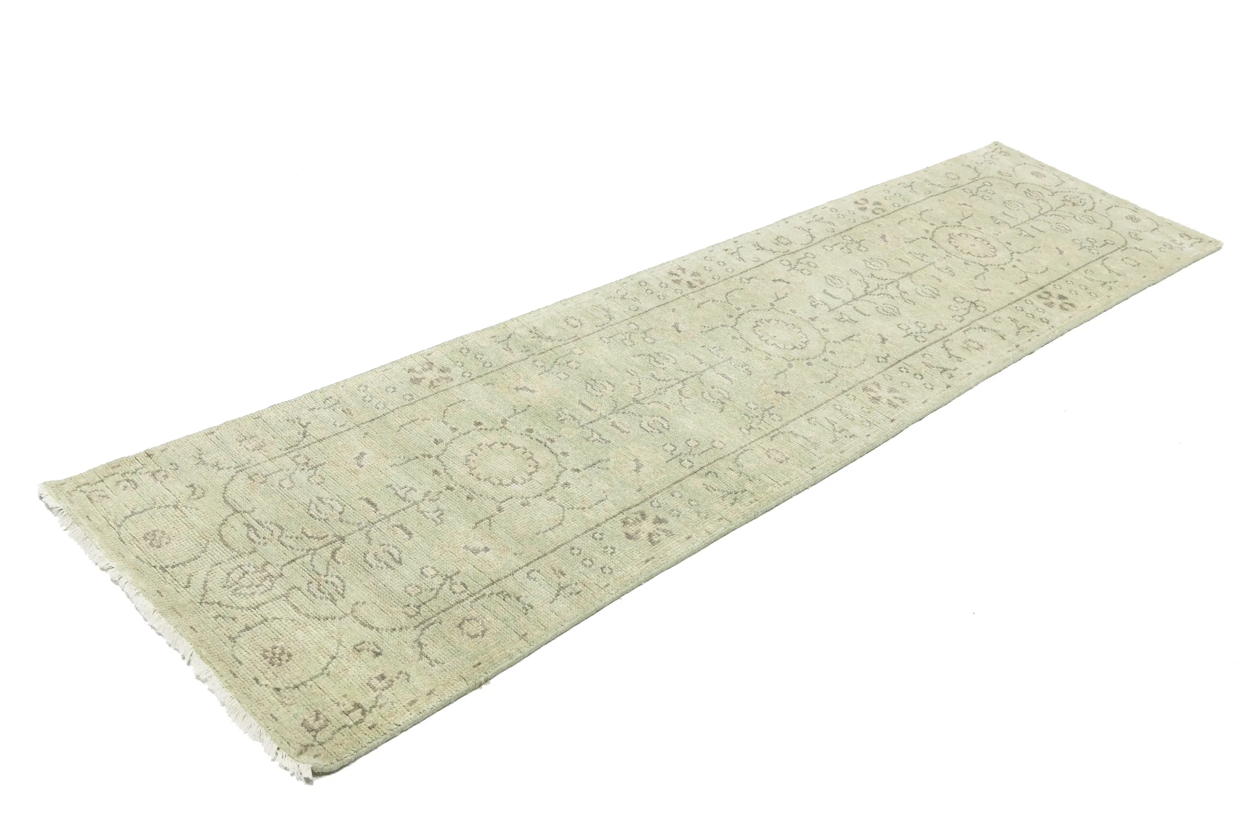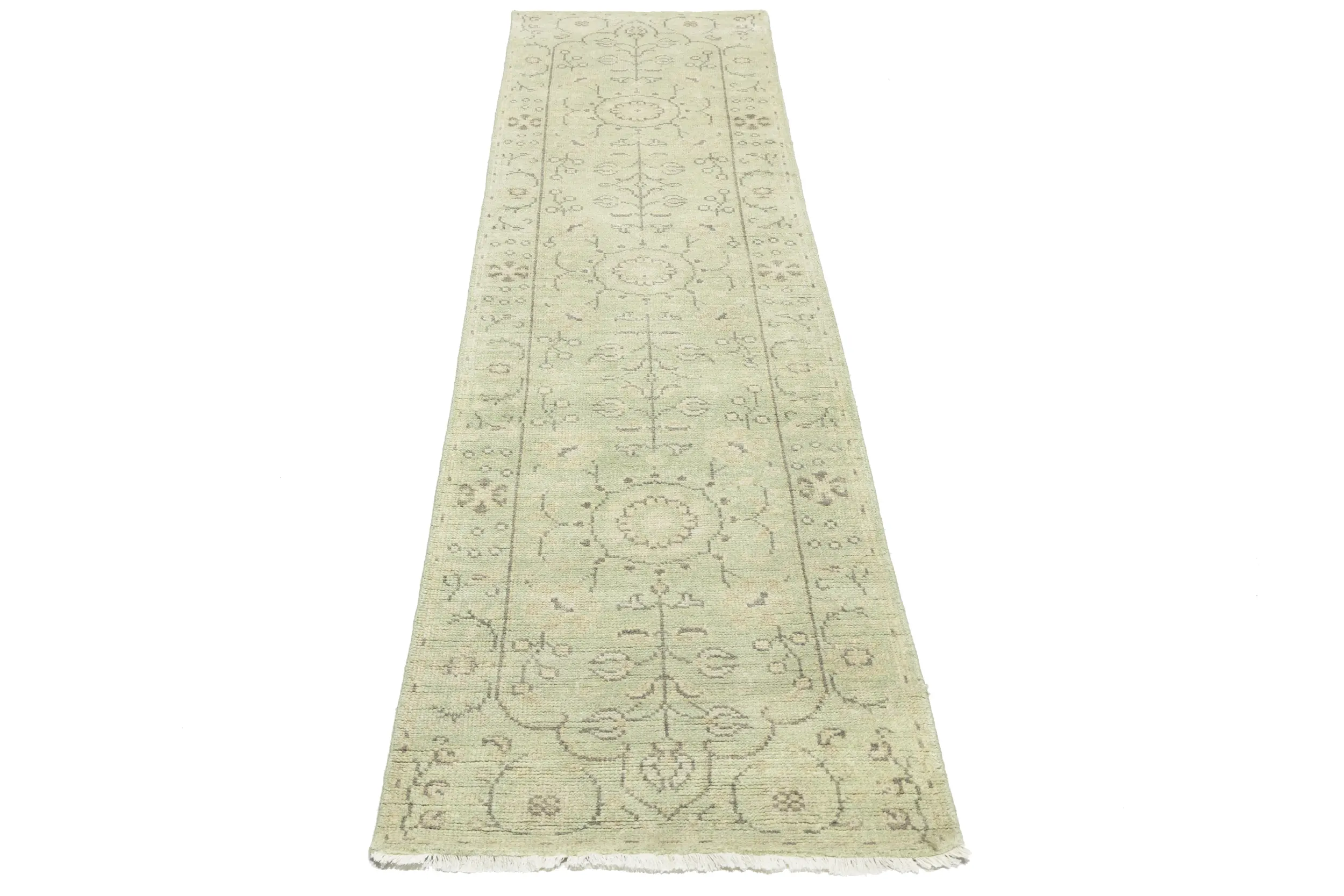 Muted Green Floral 2'5X10 Transitional Oriental Runner Rug