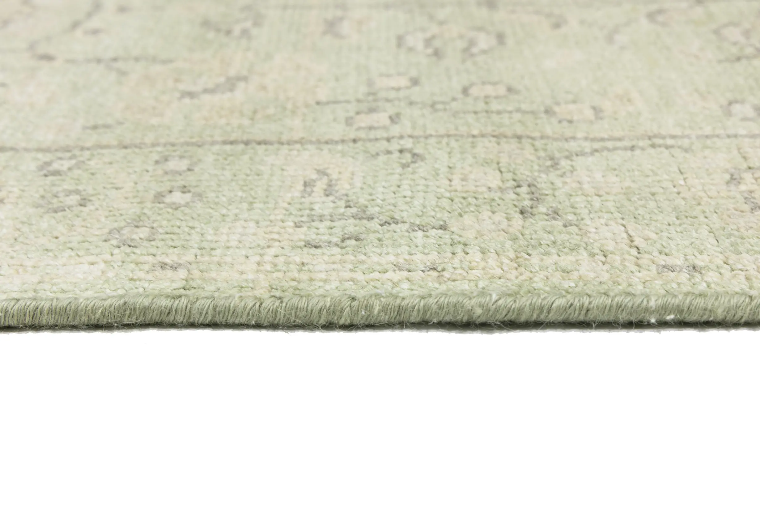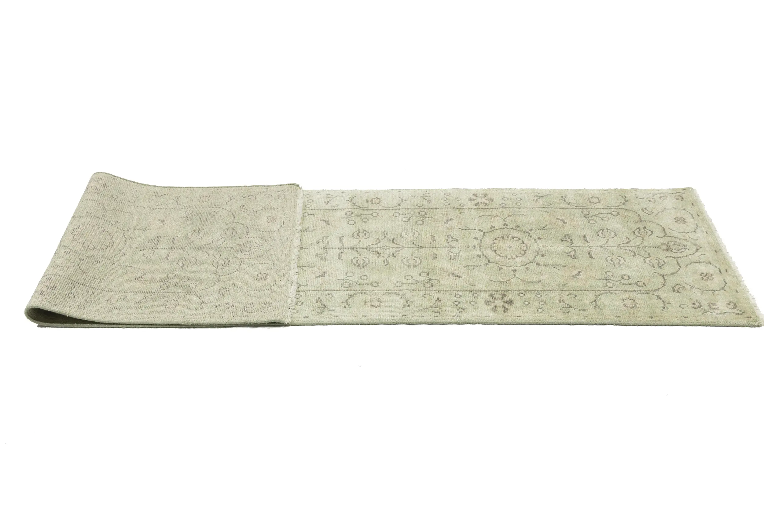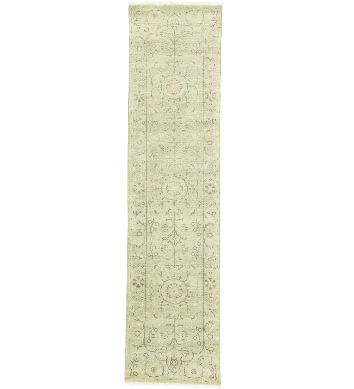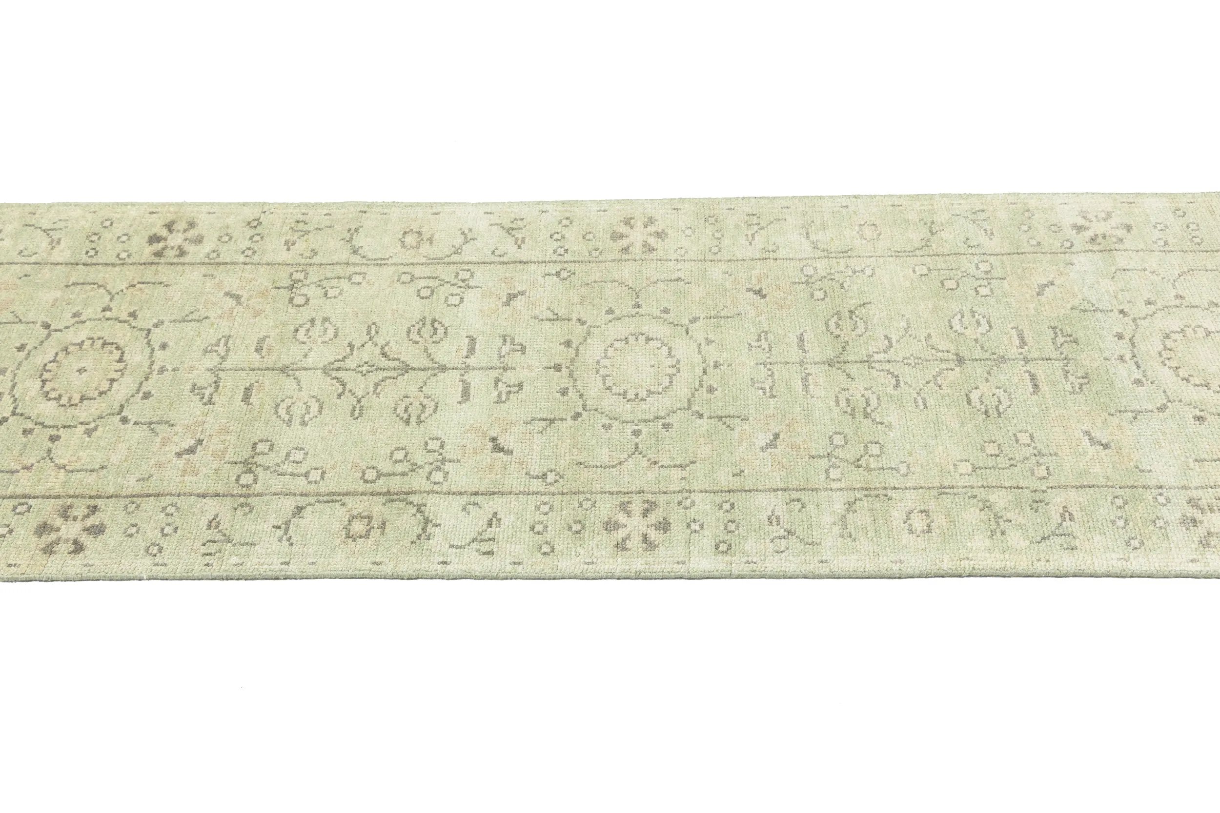 Muted Green Floral 2'5X10 Transitional Oriental Runner Rug