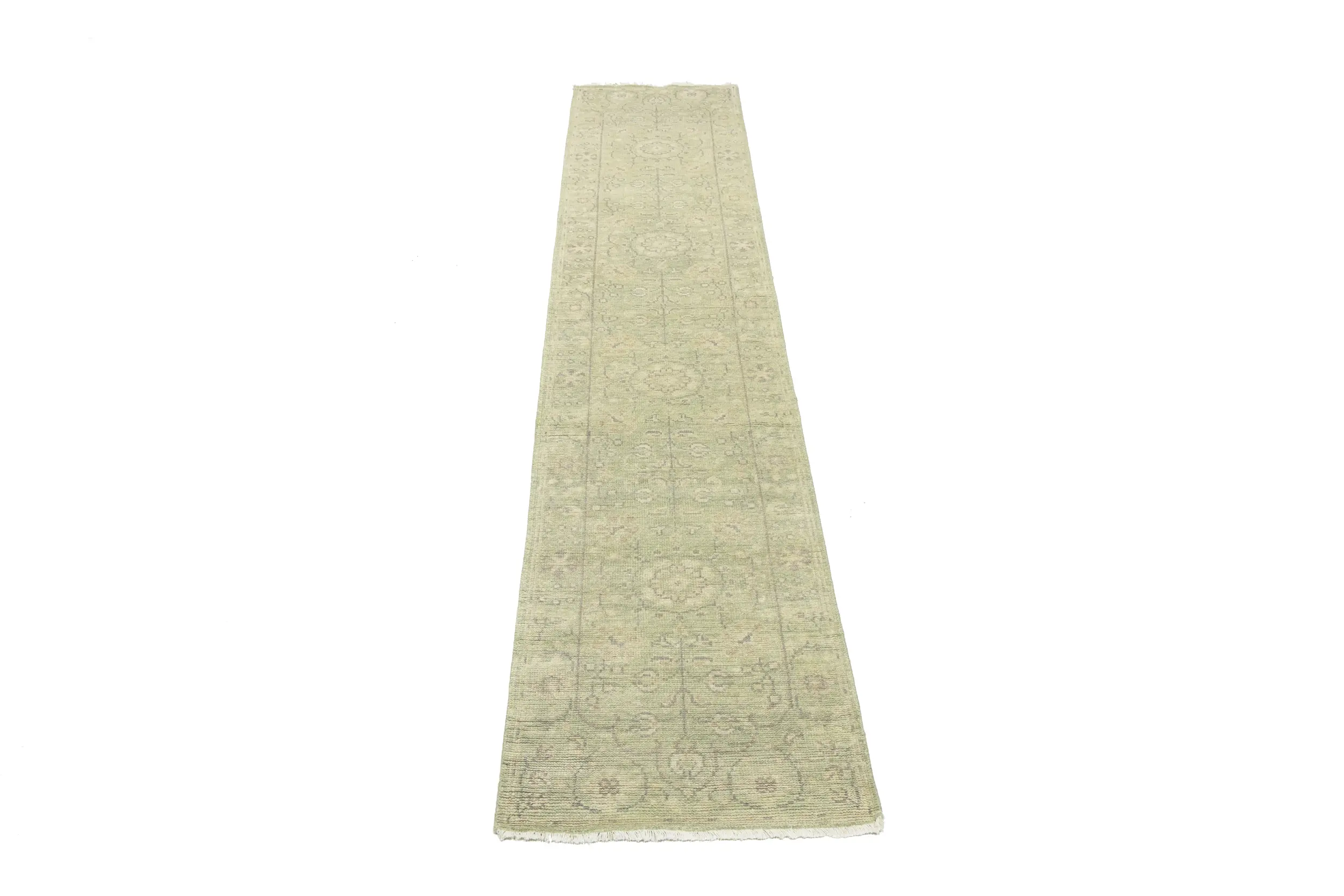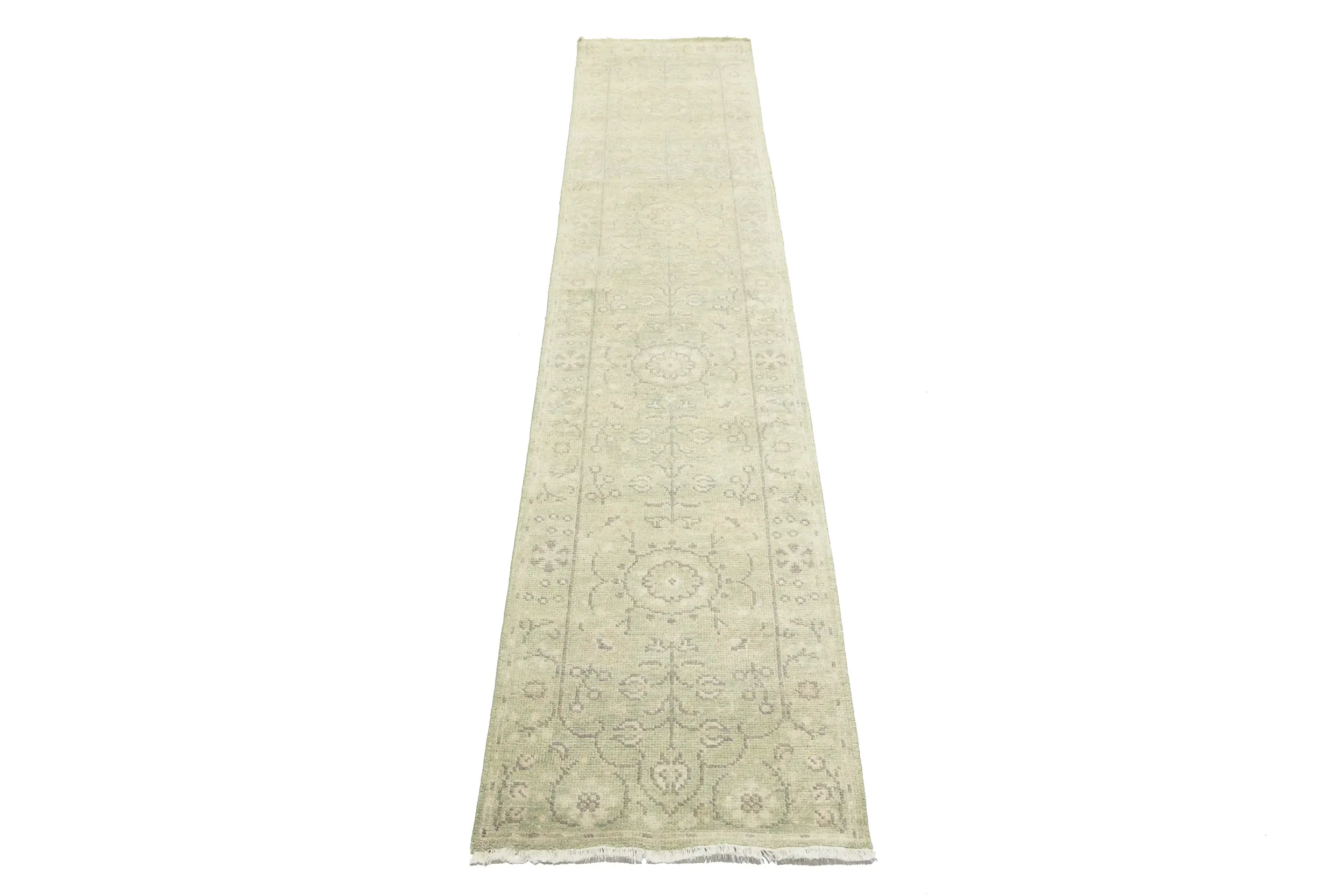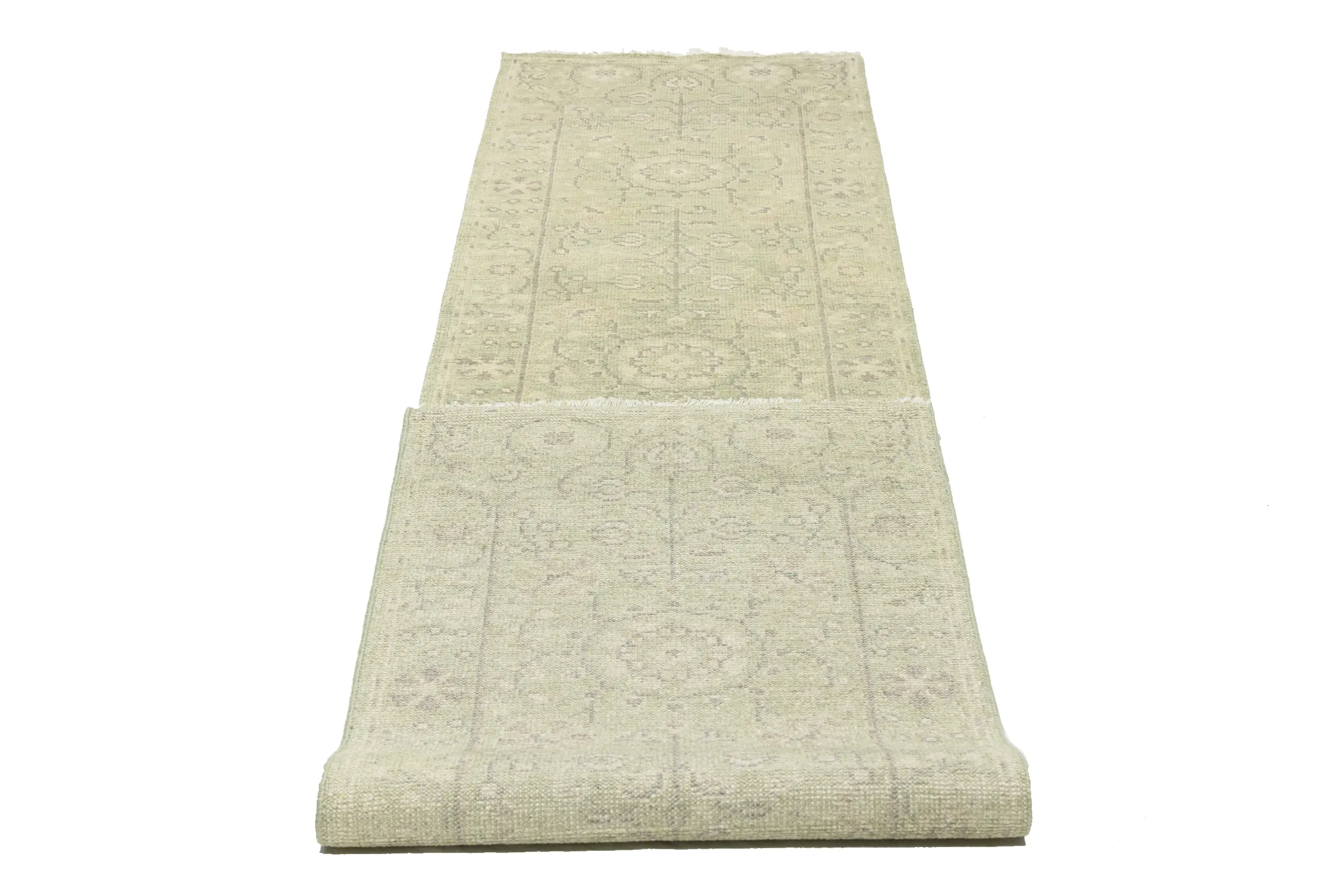Muted Green Floral 2'7X11'9 Transitional Oriental Runner Rug