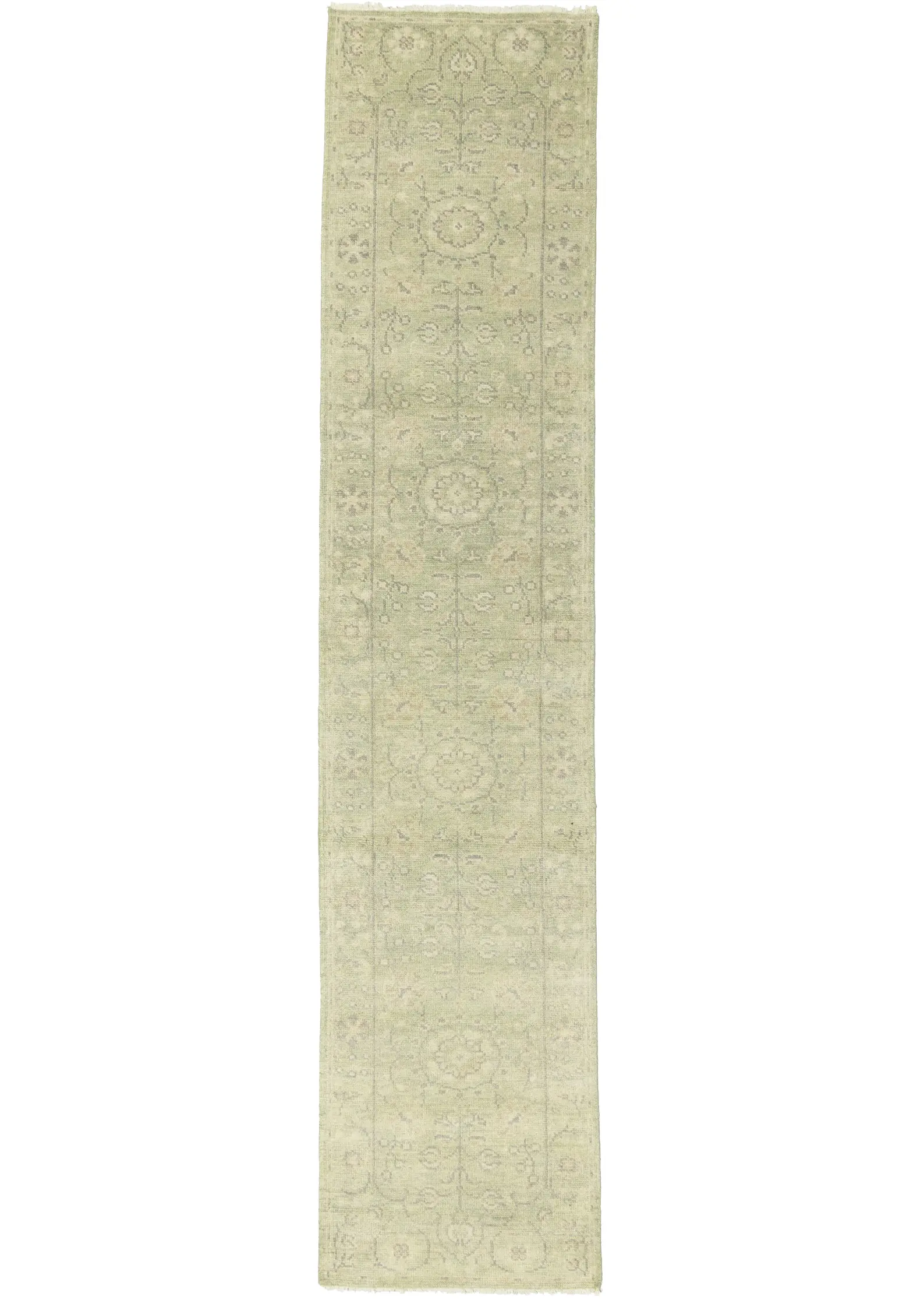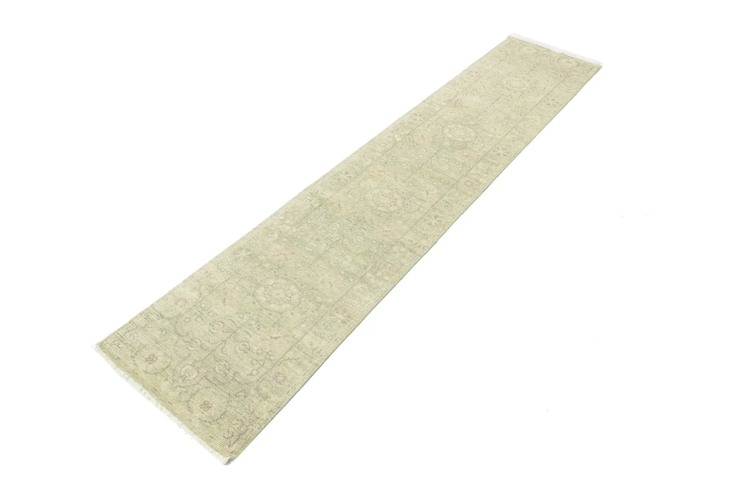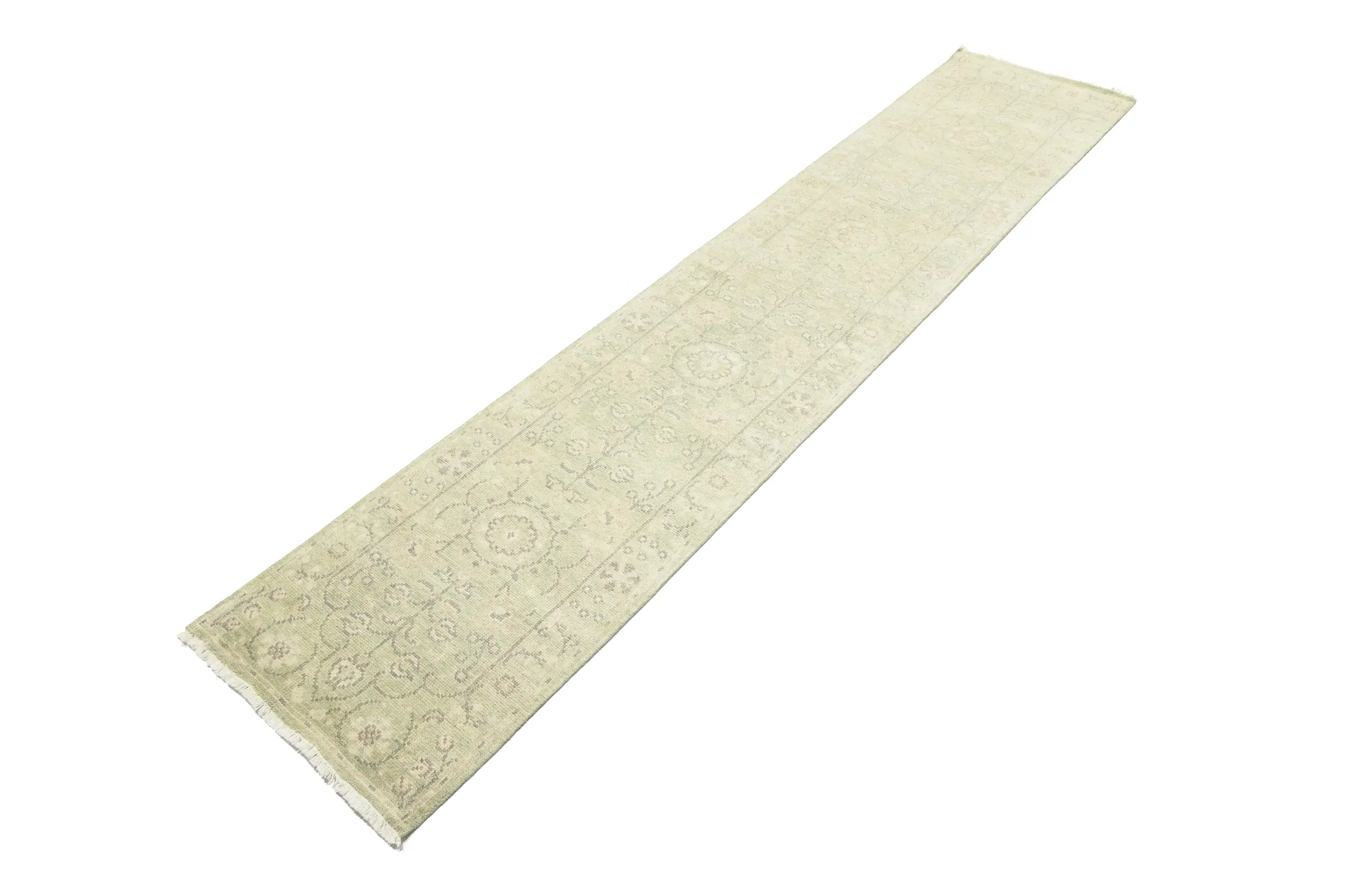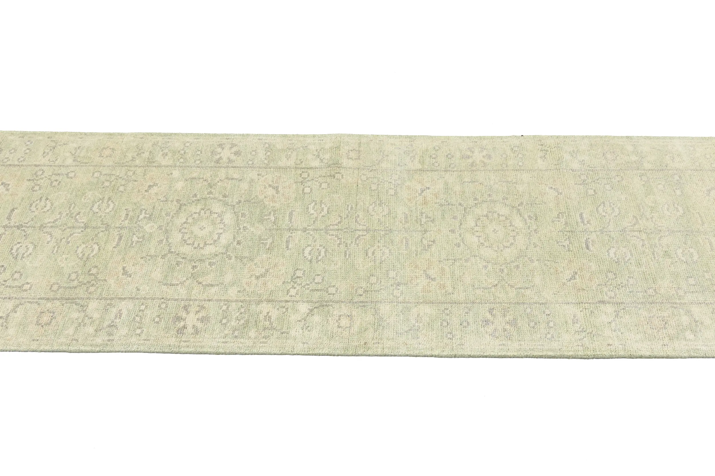 Muted Green Floral 2'7X11'9 Transitional Oriental Runner Rug