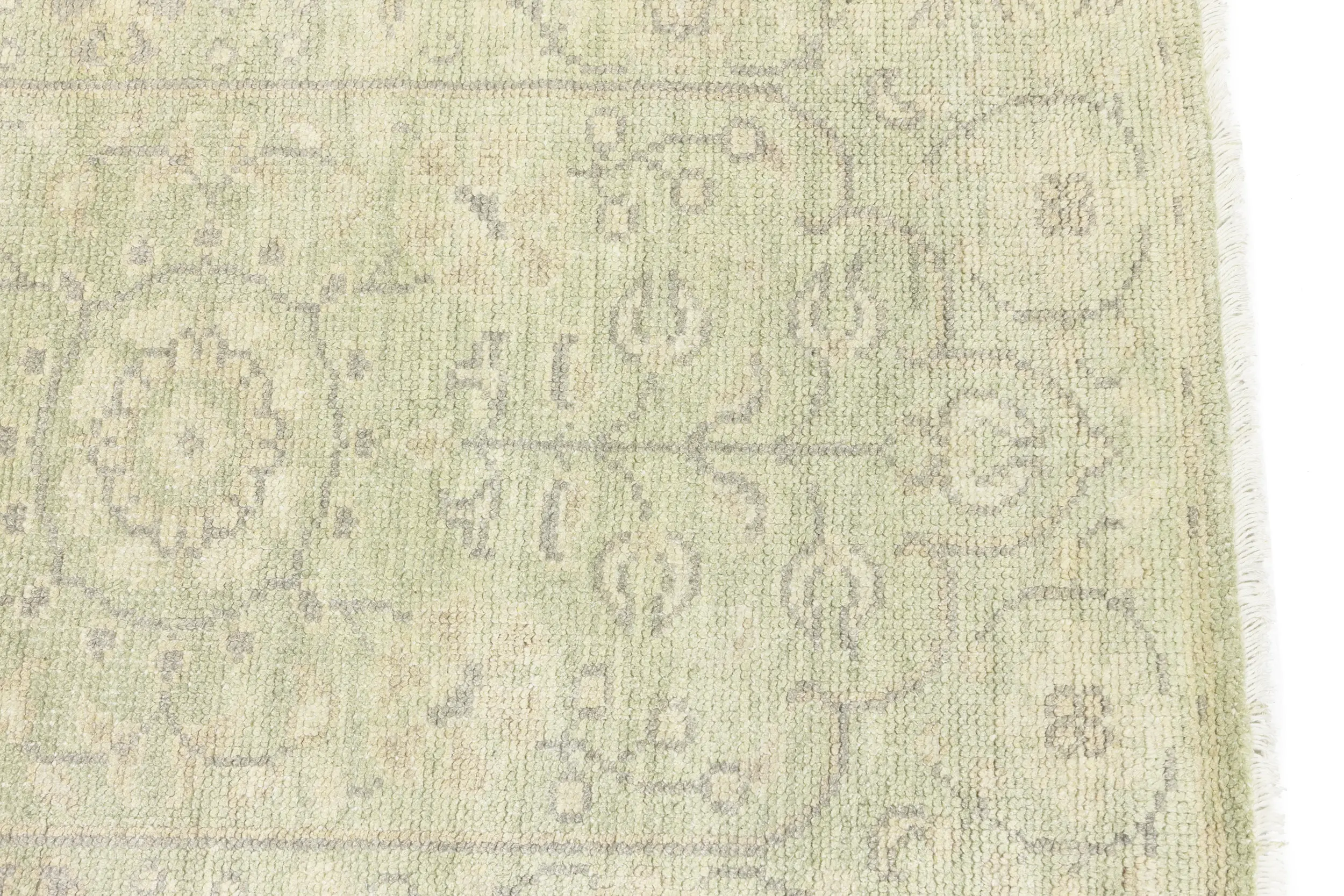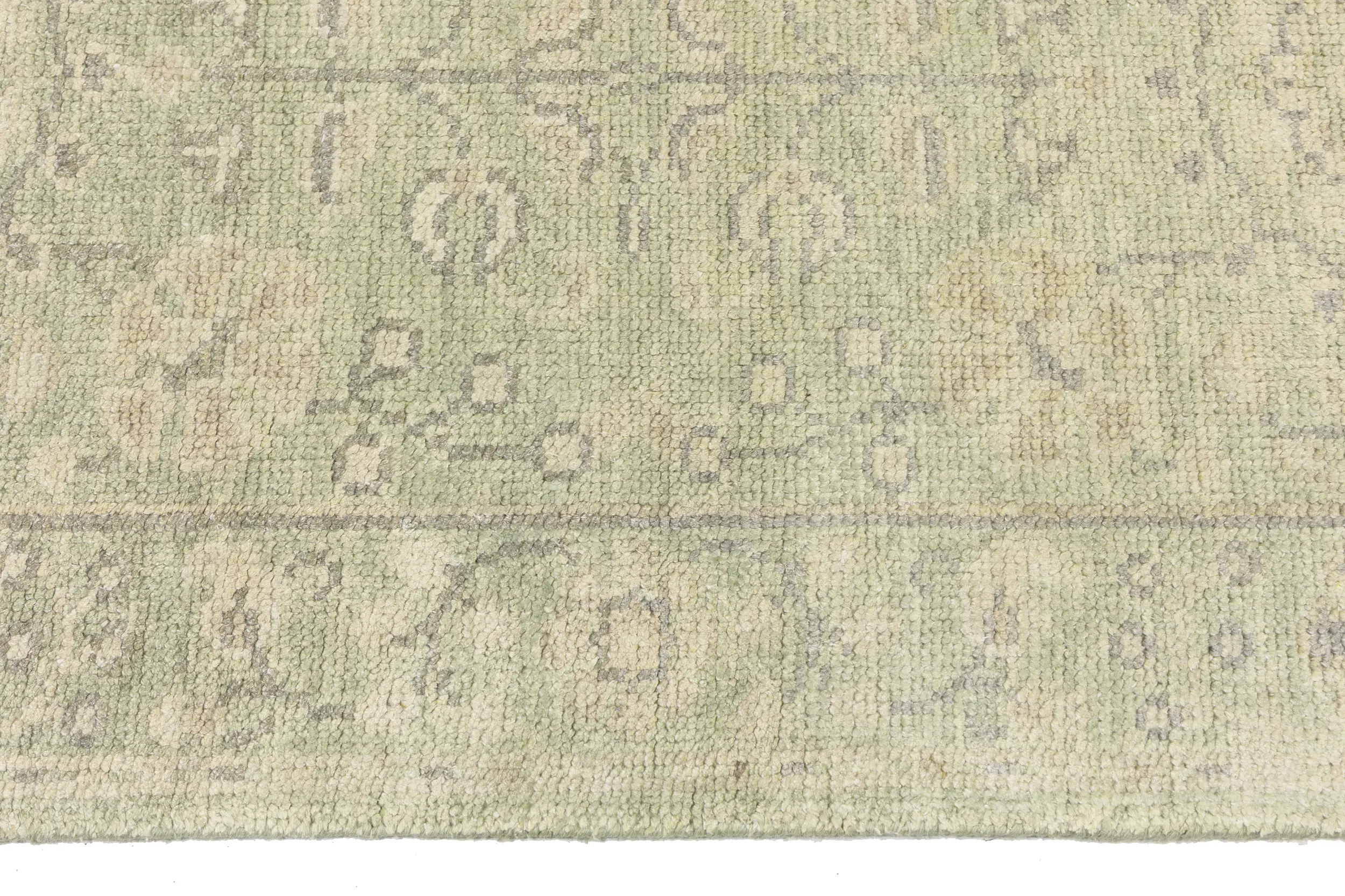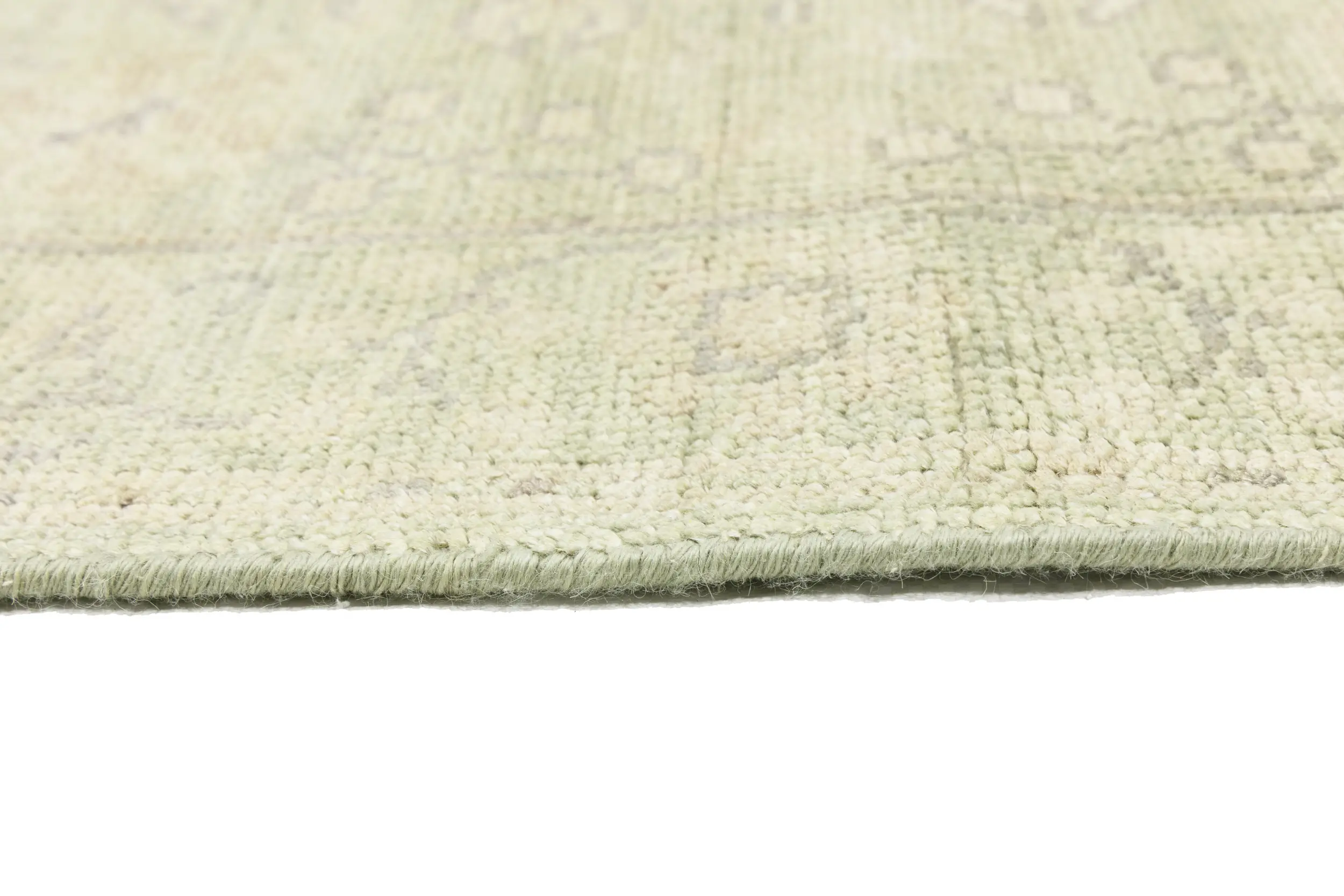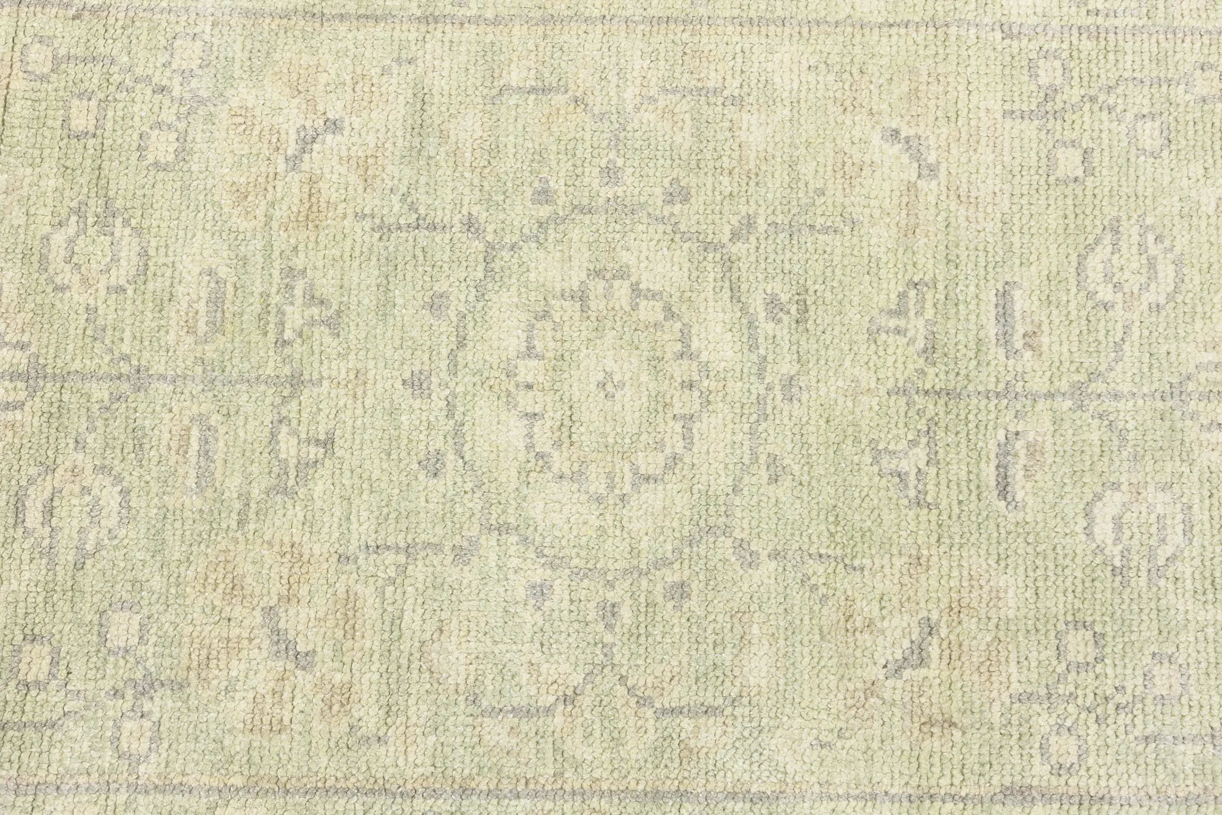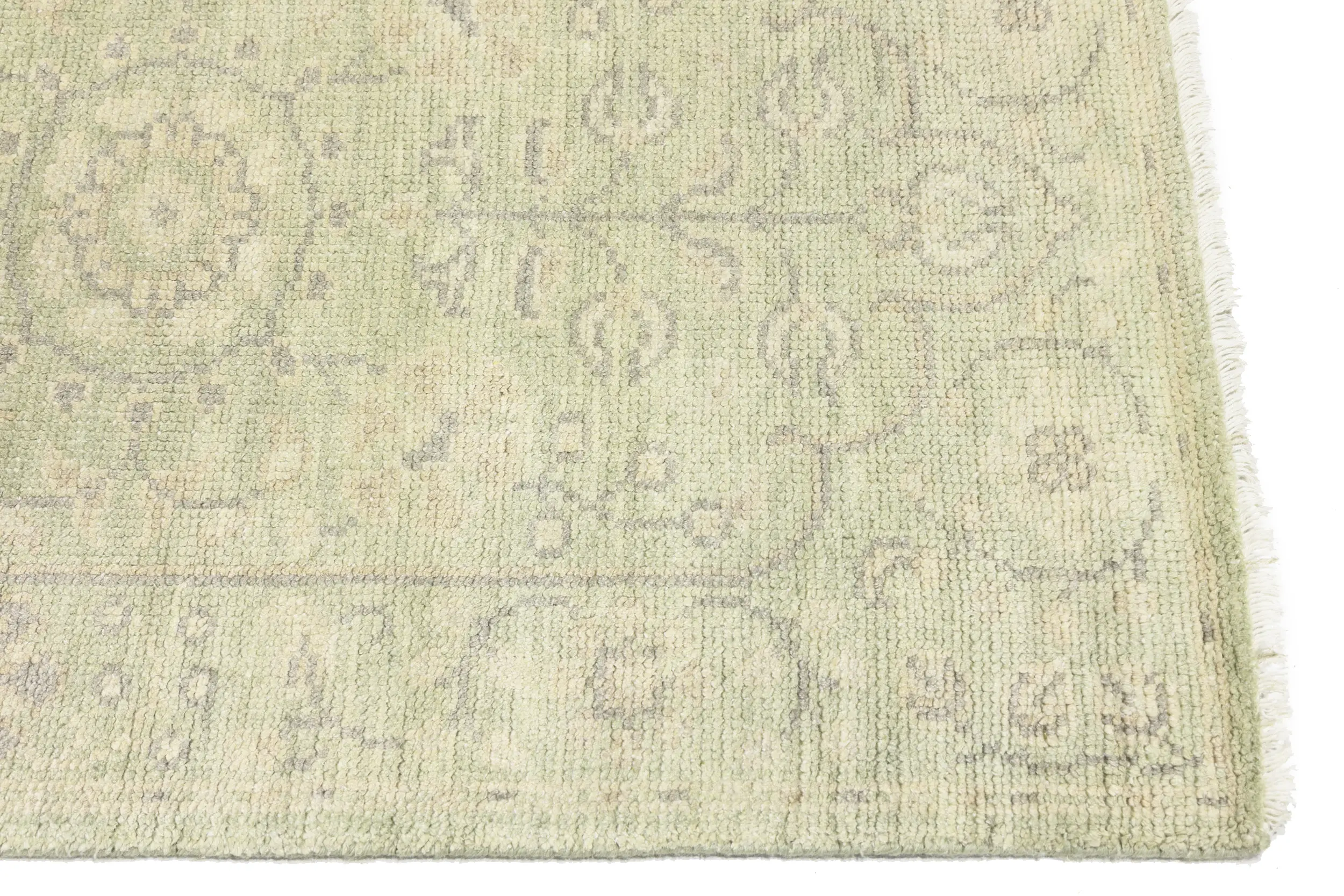 This genuine 2'7X11'9 green new Oriental runner was made by the hands of gifted weavers inspired by a variety of spectacular artistic designs, to recreate the aged look of the original piece with a richness of color and ornately patterned background field. What set this vintage style Oriental area runner from the others are the material and dye used (wool pile and cotton foundation), knot count, ancient designs, fantastic grades, and its regional historical connection: it has deep roots, from the story of the people who produced it to the meaning of the symbols and colors displayed across its canvas that have been praised for centuries. This Indian home décor carpet will be completely cozy and inviting that never will go out of style! Also, this Oriental runner would be among your most valuable treasures, it is a great investment that accrues value over time, and it will last for generations because was woven with high-quality, all-natural wool. Environmentally friendly, opulent yet affordable; this rug will give you a thorough amount of character to help define your living space with elegance and warmth that will capture the eyes and attention of your audience (homeowners, designers, decorators, family and friends).
