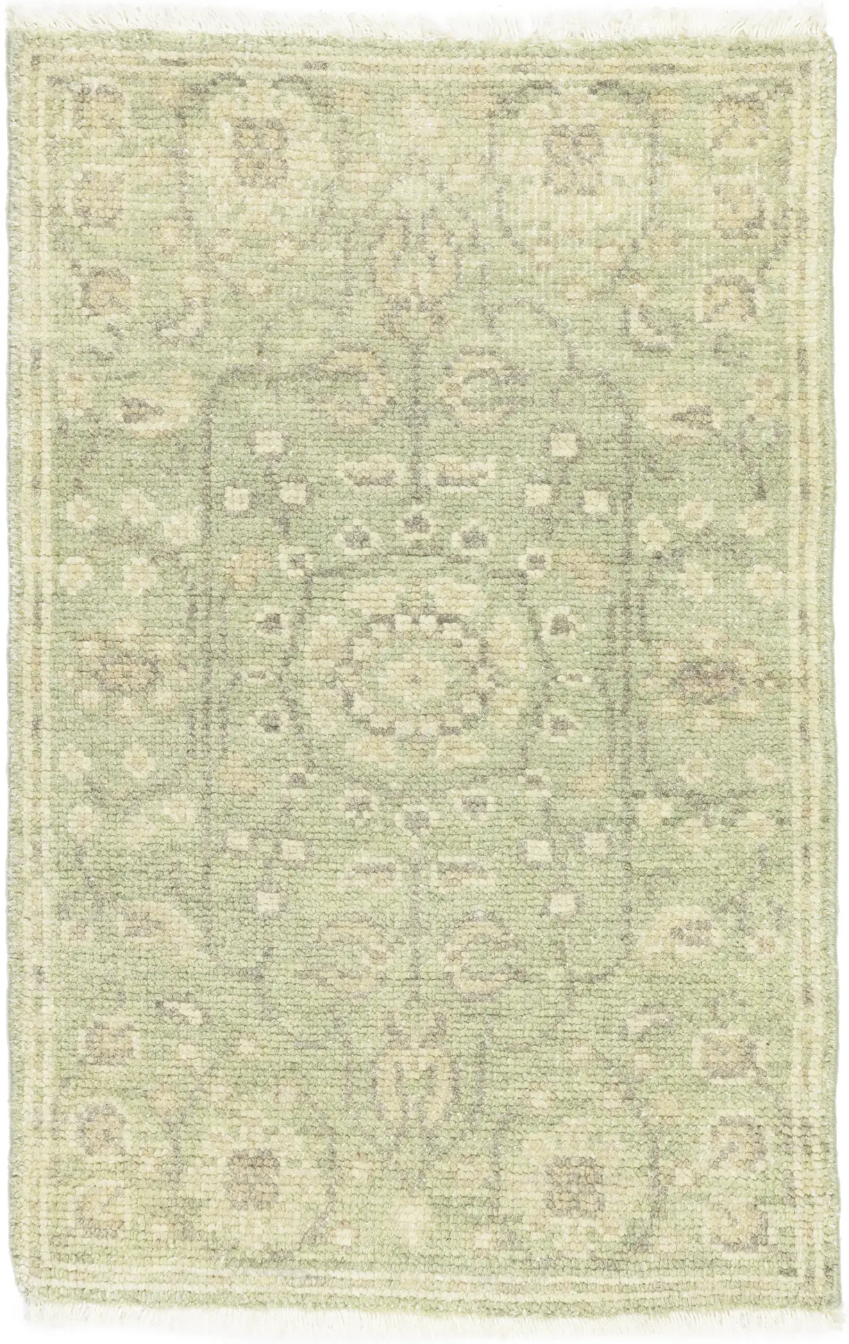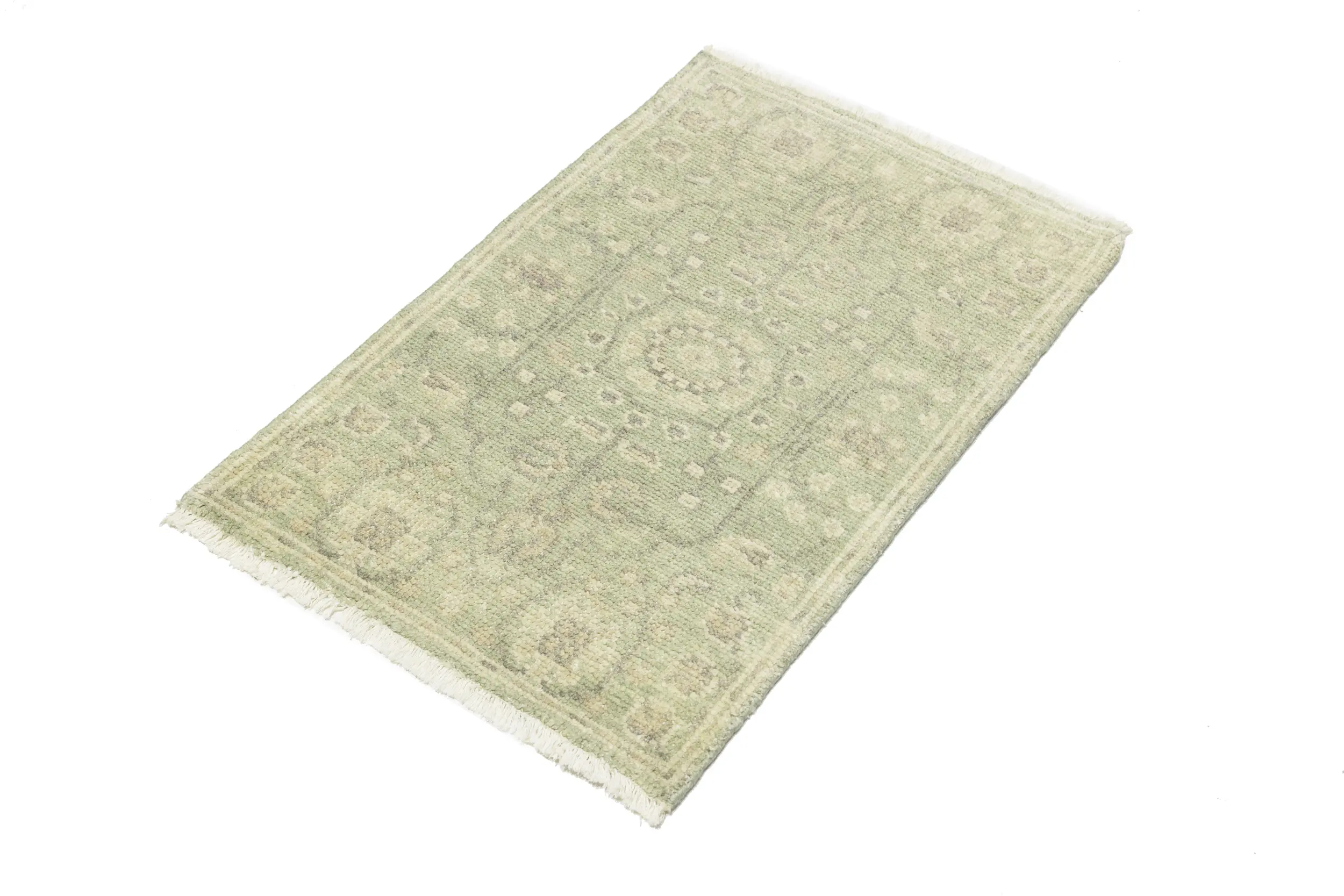 Muted Green Floral 2X3 Transitional Oriental Rug