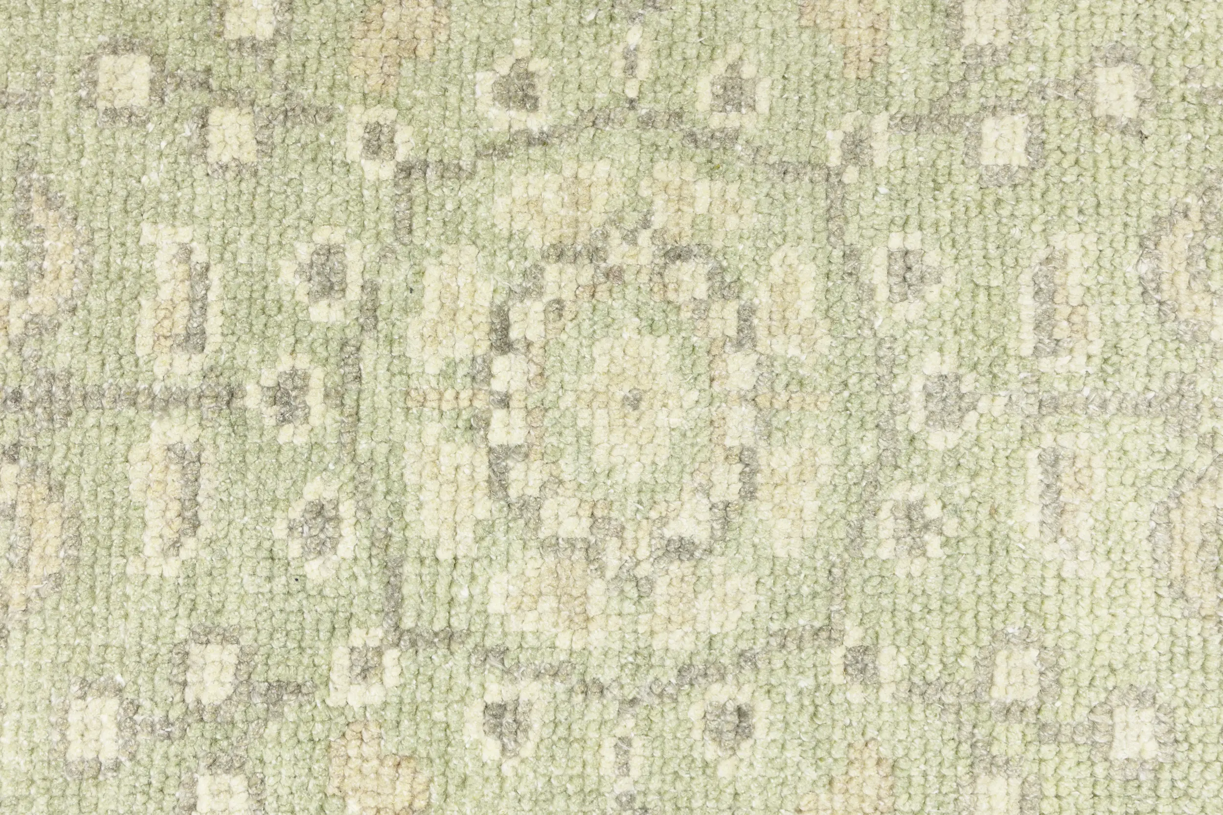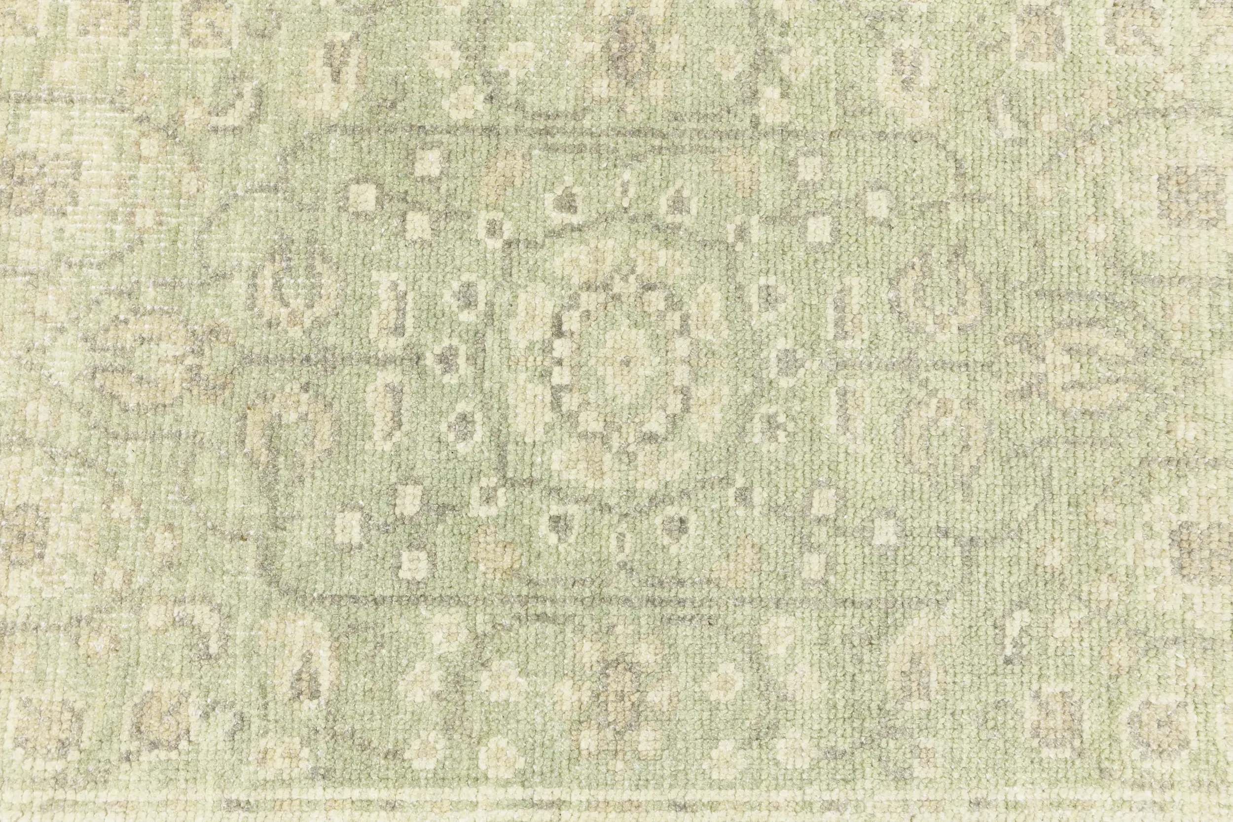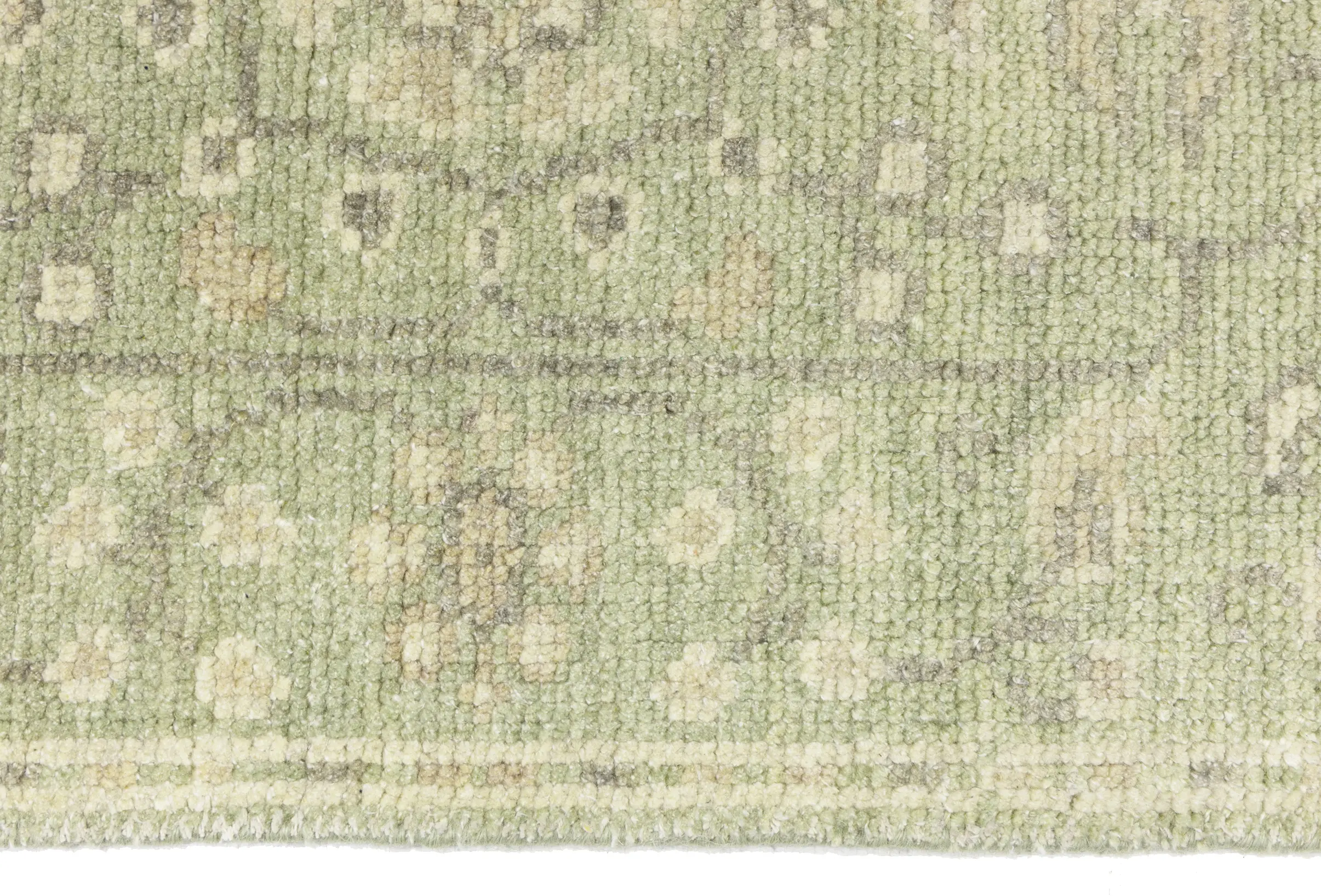 This genuine 2X3 green new Oriental rug was made by the hands of gifted weavers inspired by a variety of spectacular artistic designs, to recreate the aged look of the original piece with a richness of color and ornately patterned background field. What set this vintage style Oriental area rug from the others are the material and dye used (wool pile and cotton foundation), knot count, ancient designs, fantastic grades, and its regional historical connection: it has deep roots, from the story of the people who produced it to the meaning of the symbols and colors displayed across its canvas that have been praised for centuries. This Indian home décor carpet will be completely cozy and inviting that never will go out of style! Also, this Oriental rug would be among your most valuable treasures, it is a great investment that accrues value over time, and it will last for generations because was woven with high-quality, all-natural wool. Environmentally friendly, opulent yet affordable; this rug will give you a thorough amount of character to help define your living space with elegance and warmth that will capture the eyes and attention of your audience (homeowners, designers, decorators, family and friends).