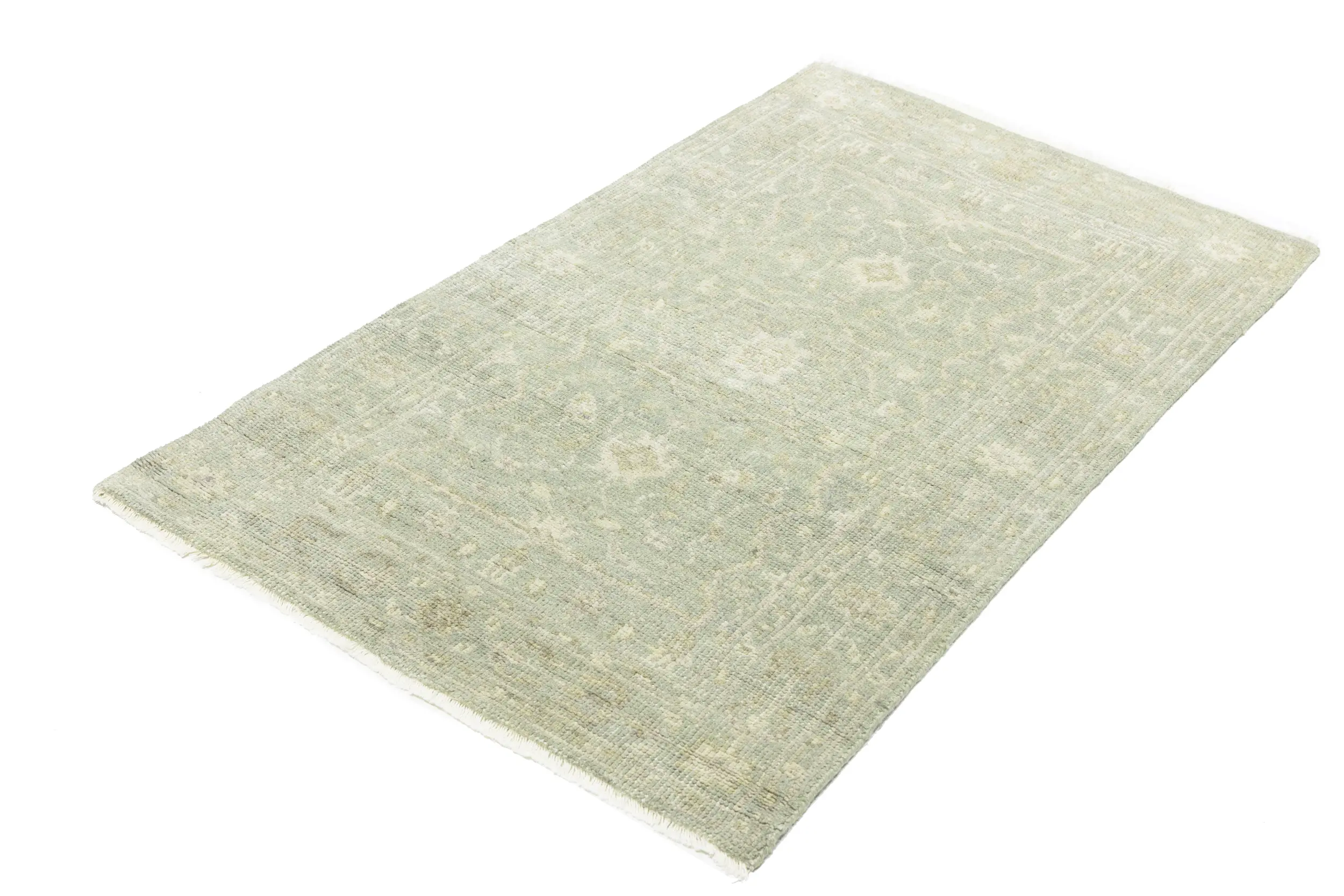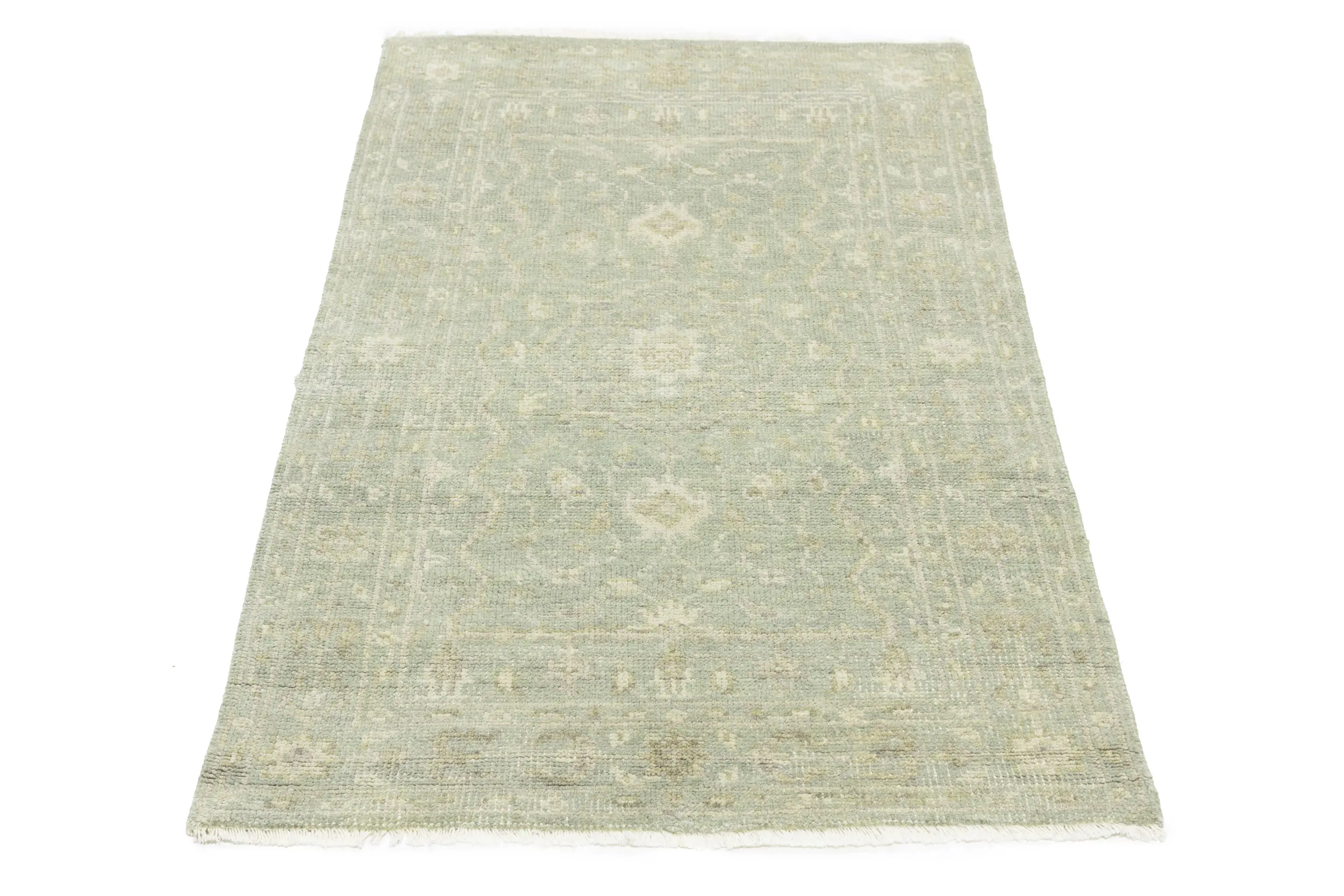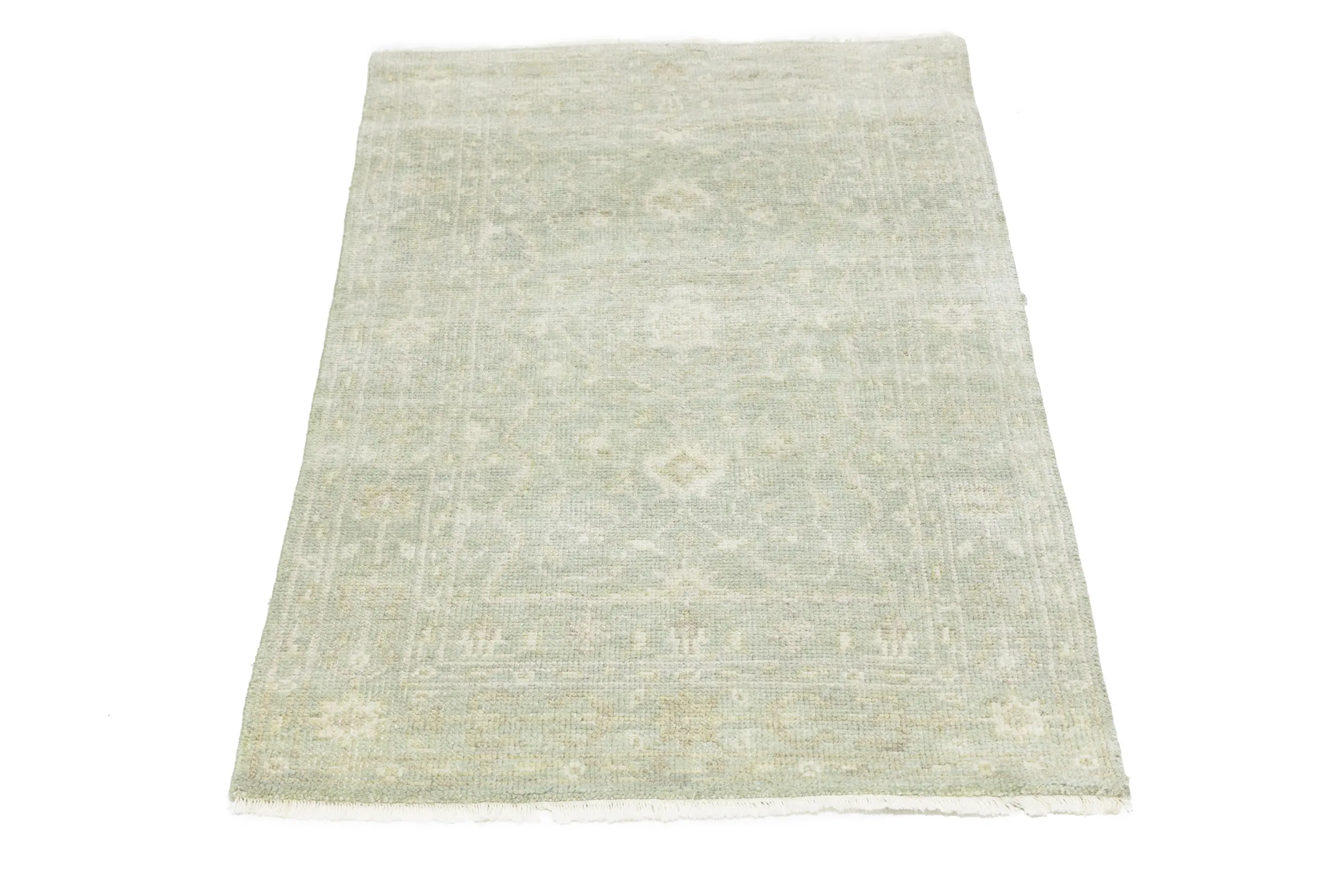Muted Green Floral 3X5 Transitional Oriental Rug