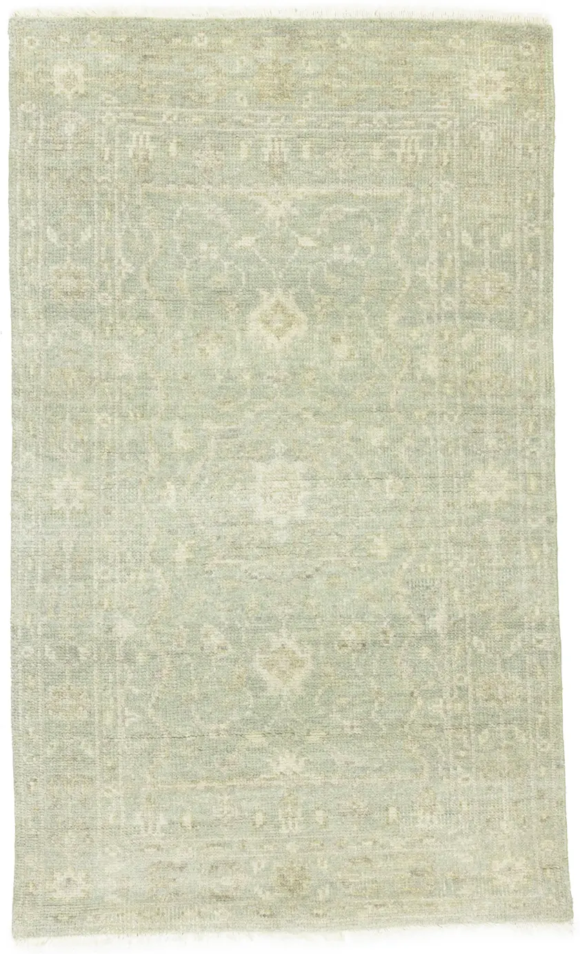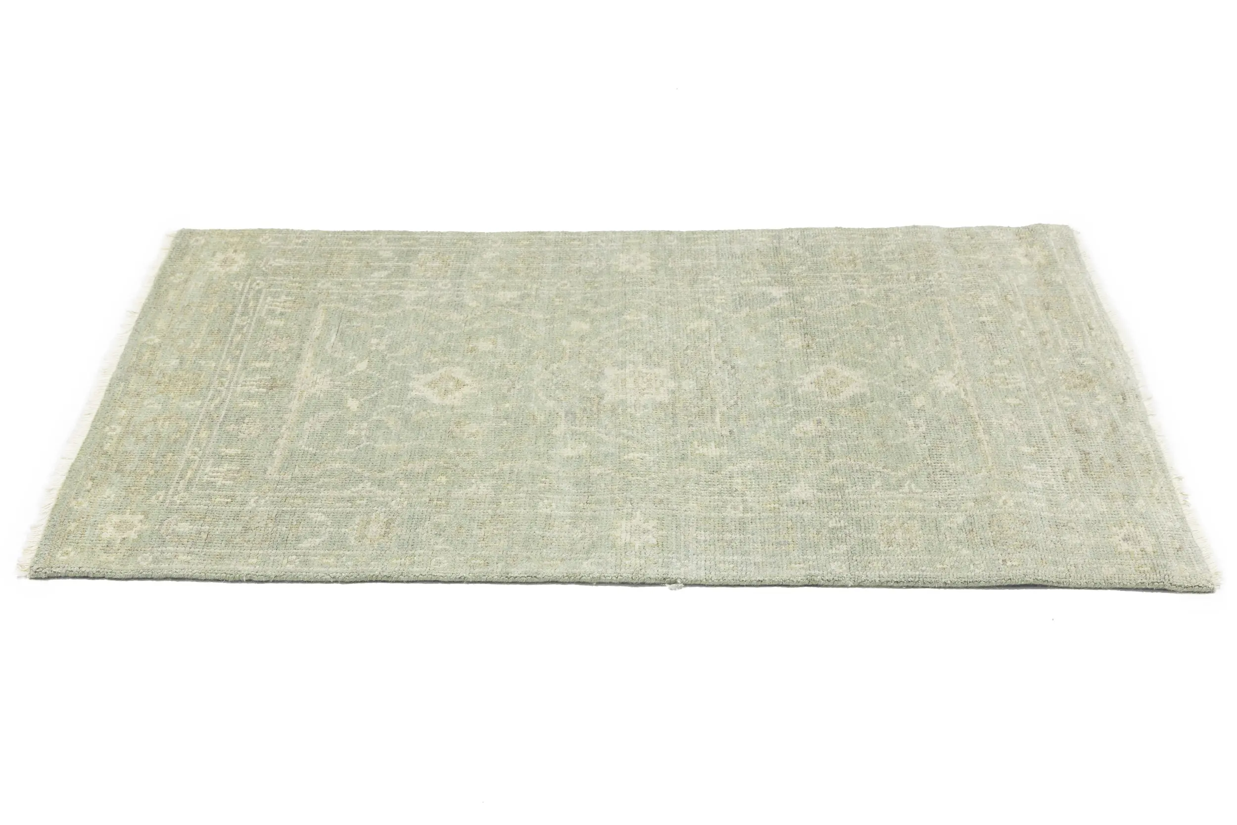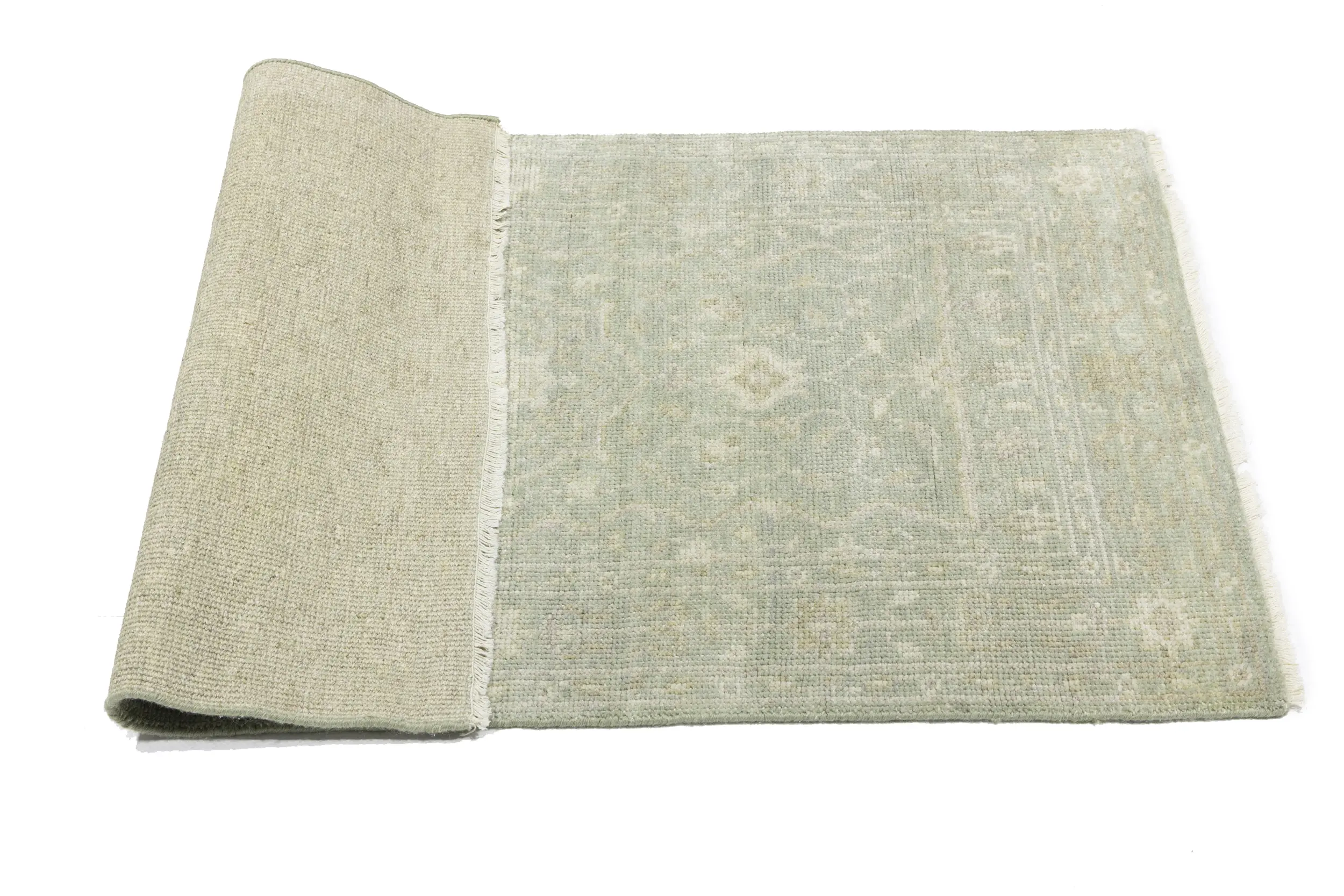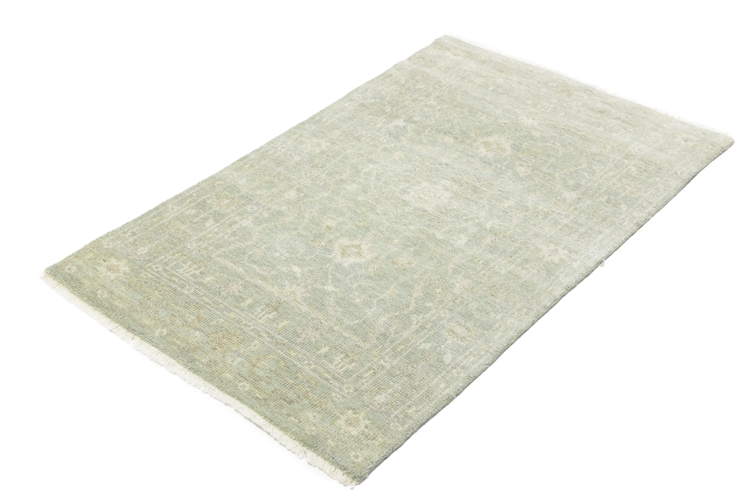 Muted Green Floral 3X5 Transitional Oriental Rug