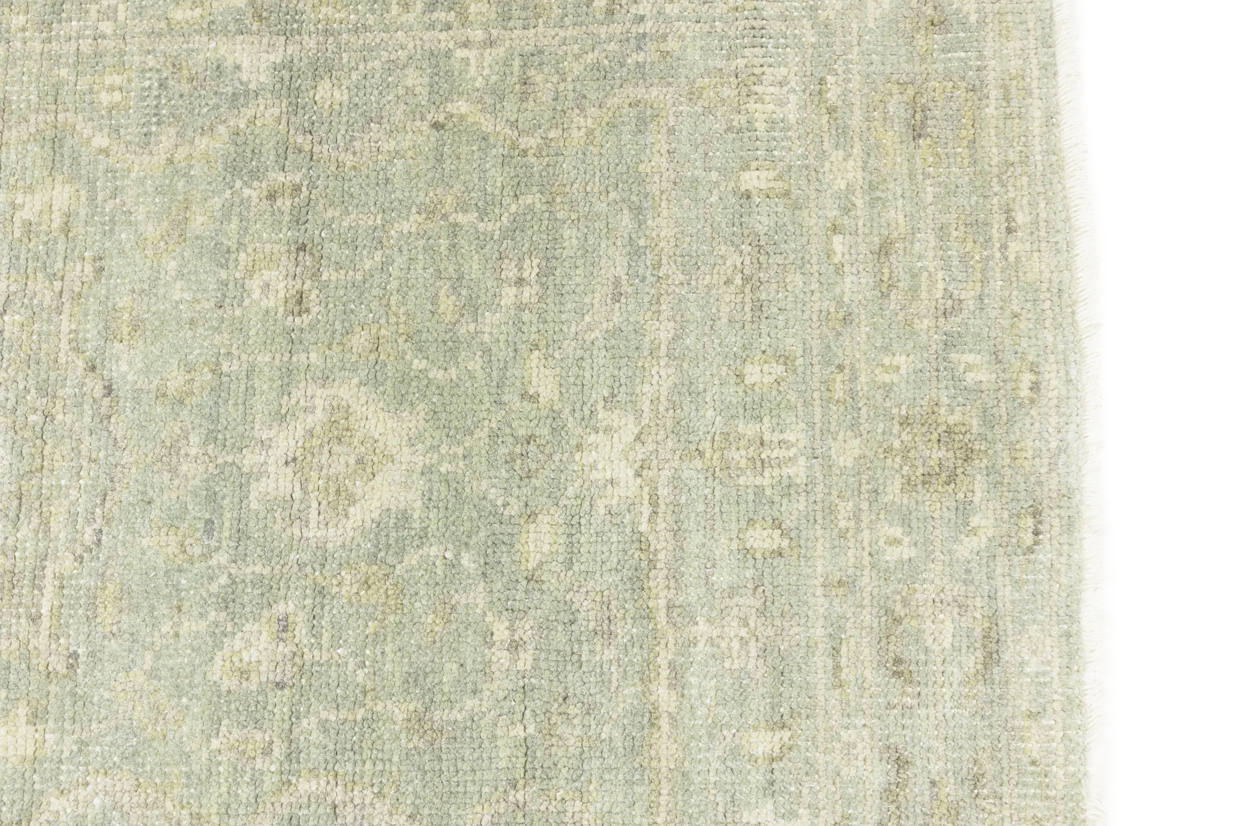 This genuine 3X5 green new Oriental rug was made by the hands of gifted weavers inspired by a variety of spectacular artistic designs, to recreate the aged look of the original piece with a richness of color and ornately patterned background field. What set this vintage style Oriental area rug from the others are the material and dye used (wool pile and cotton foundation), knot count, ancient designs, fantastic grades, and its regional historical connection: it has deep roots, from the story of the people who produced it to the meaning of the symbols and colors displayed across its canvas that have been praised for centuries. This Indian home décor carpet will be completely cozy and inviting that never will go out of style! Also, this Oriental rug would be among your most valuable treasures, it is a great investment that accrues value over time, and it will last for generations because was woven with high-quality, all-natural wool. Environmentally friendly, opulent yet affordable; this rug will give you a thorough amount of character to help define your living space with elegance and warmth that will capture the eyes and attention of your audience (homeowners, designers, decorators, family and friends).