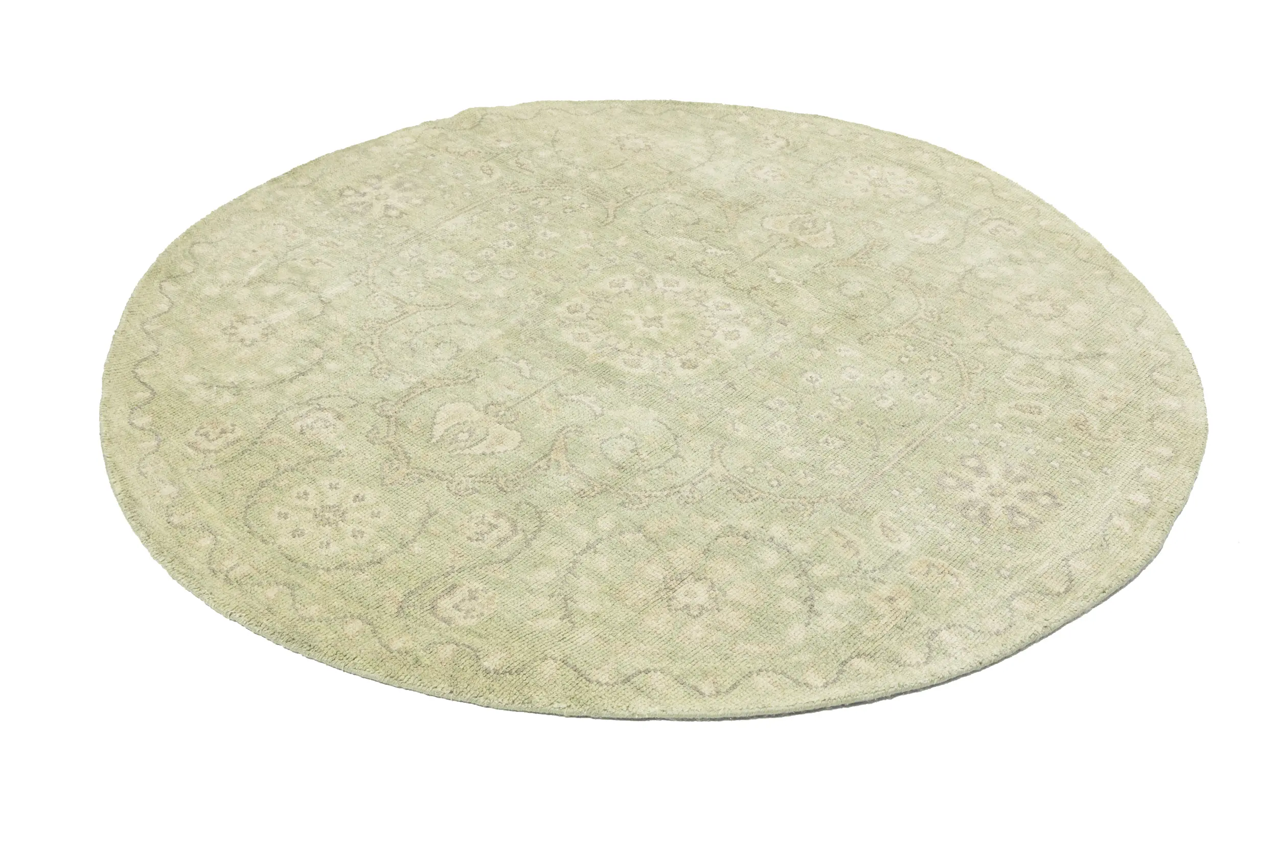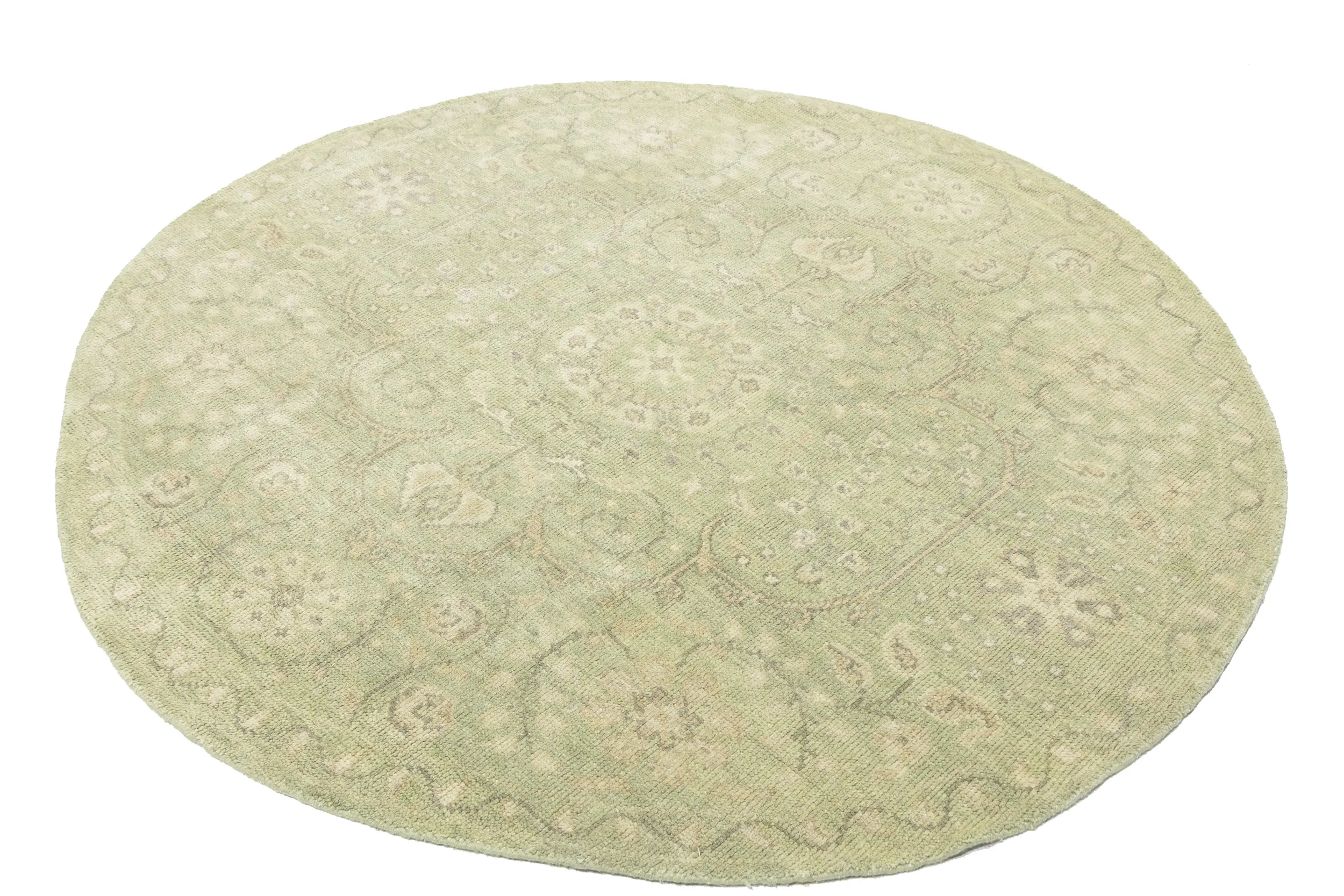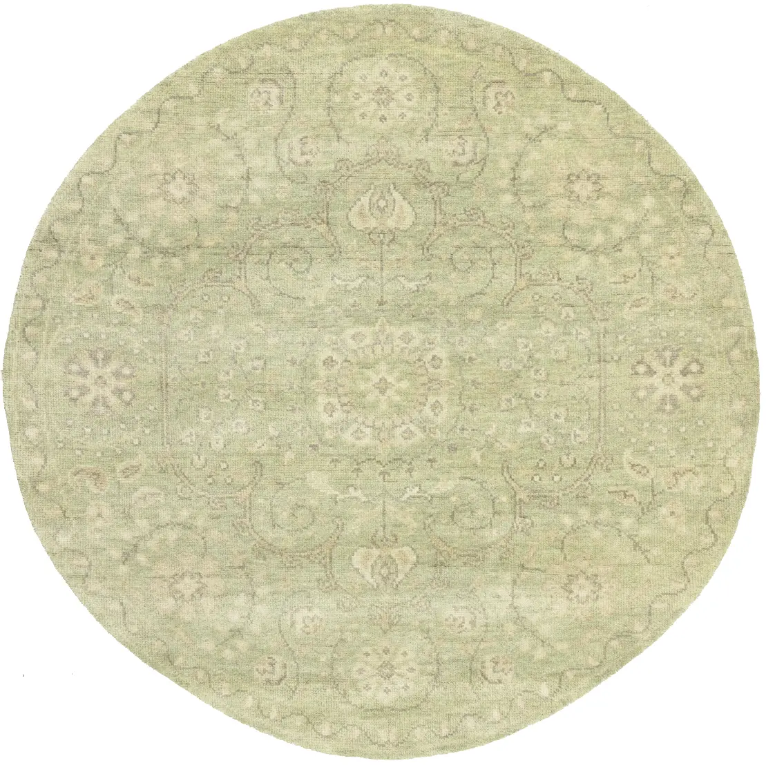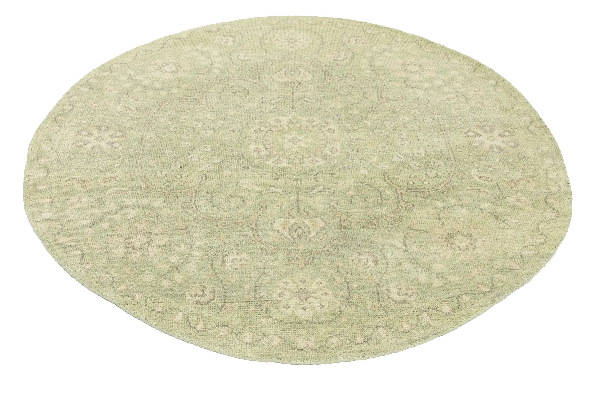 Muted Green Floral 6X6 Transitional Oriental Round Rug