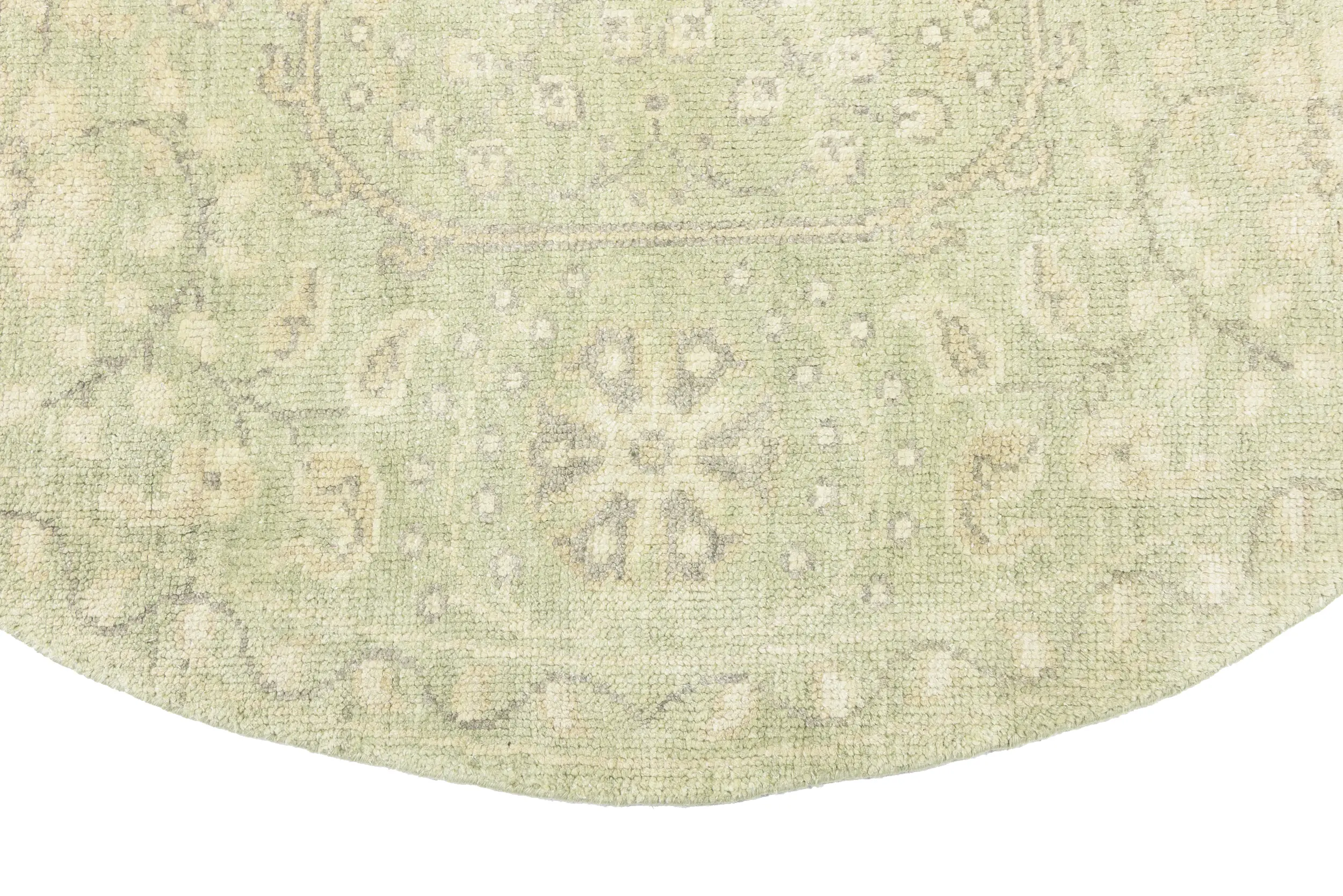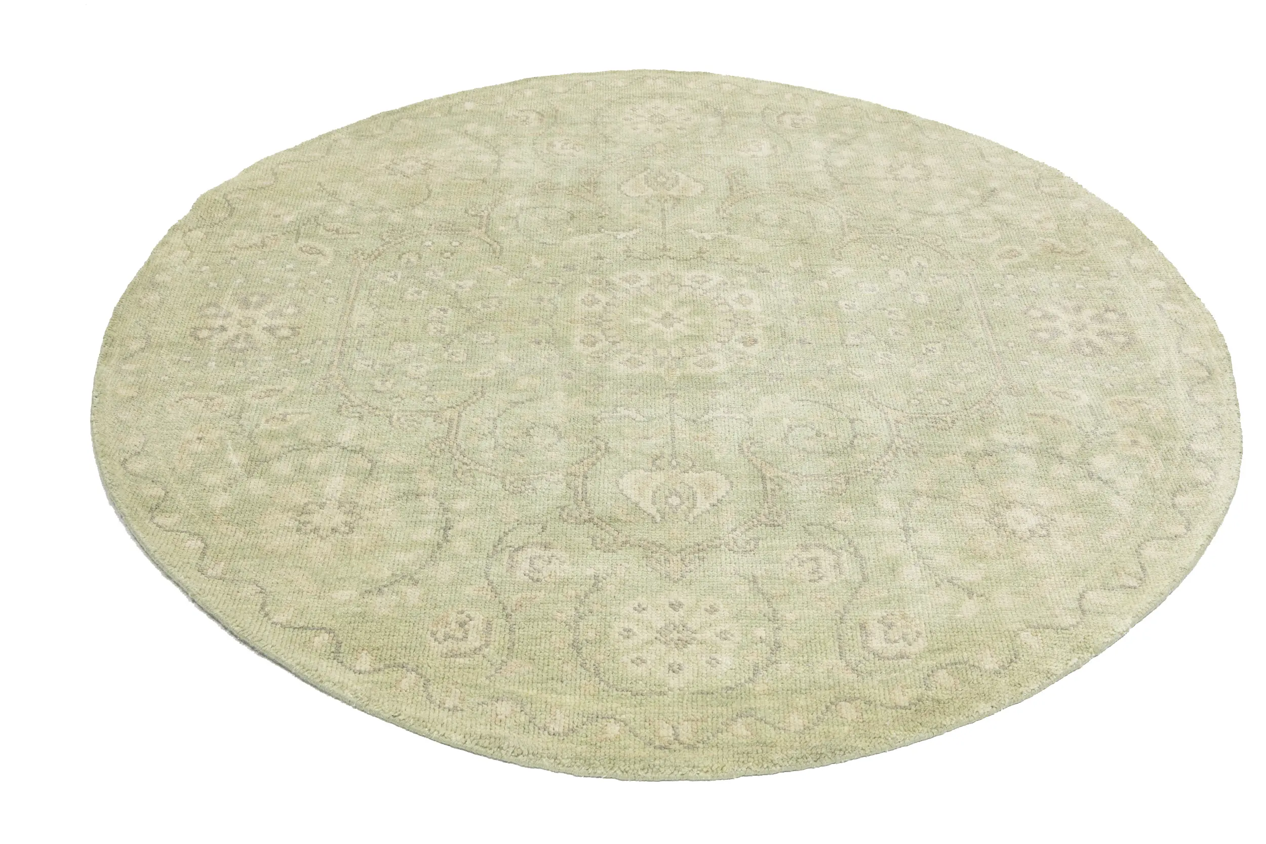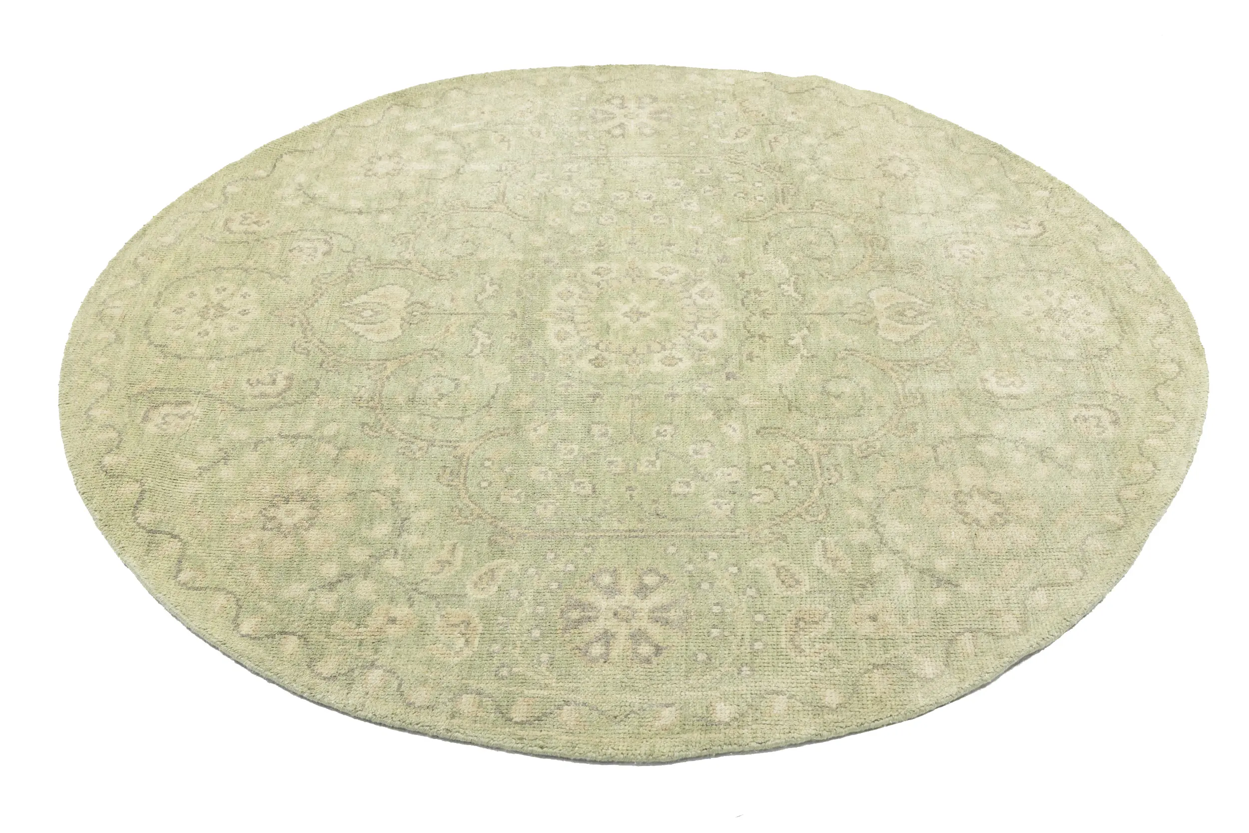 Muted Green Floral 6X6 Transitional Oriental Round Rug