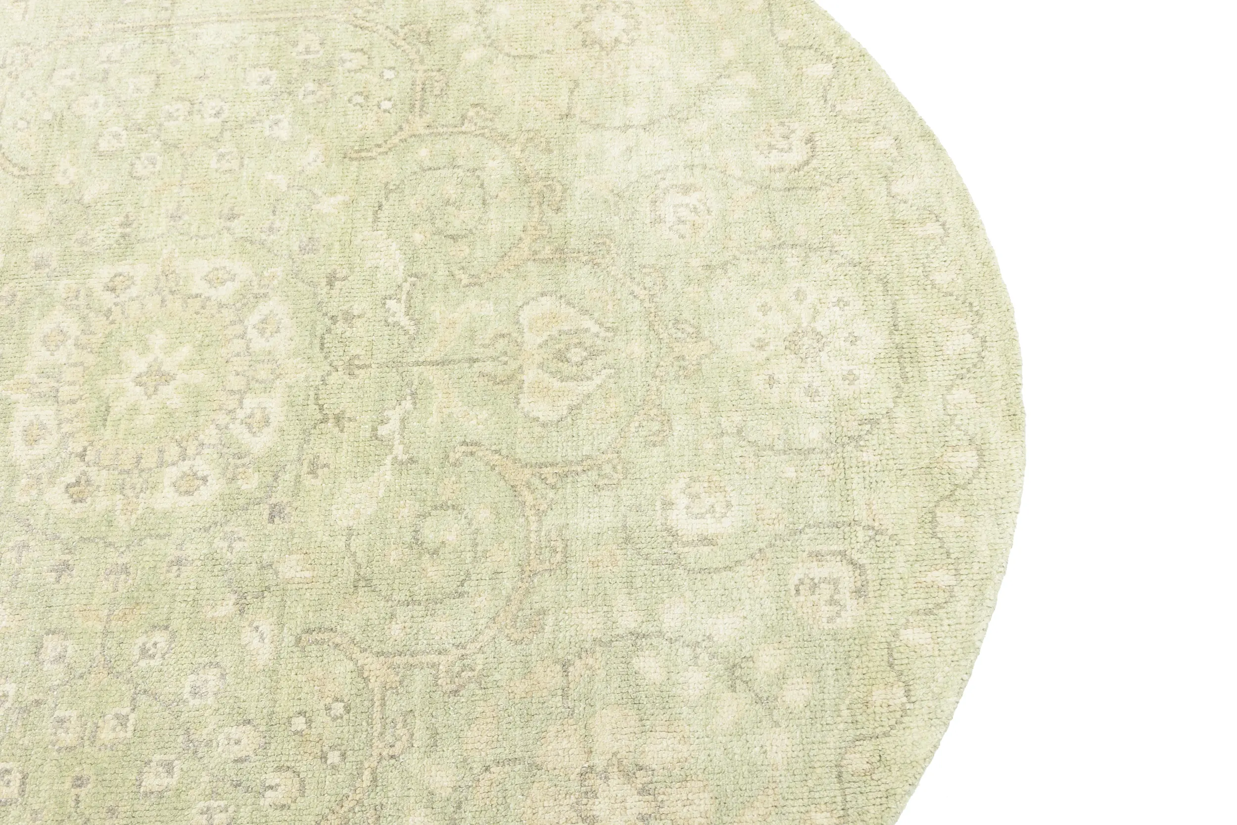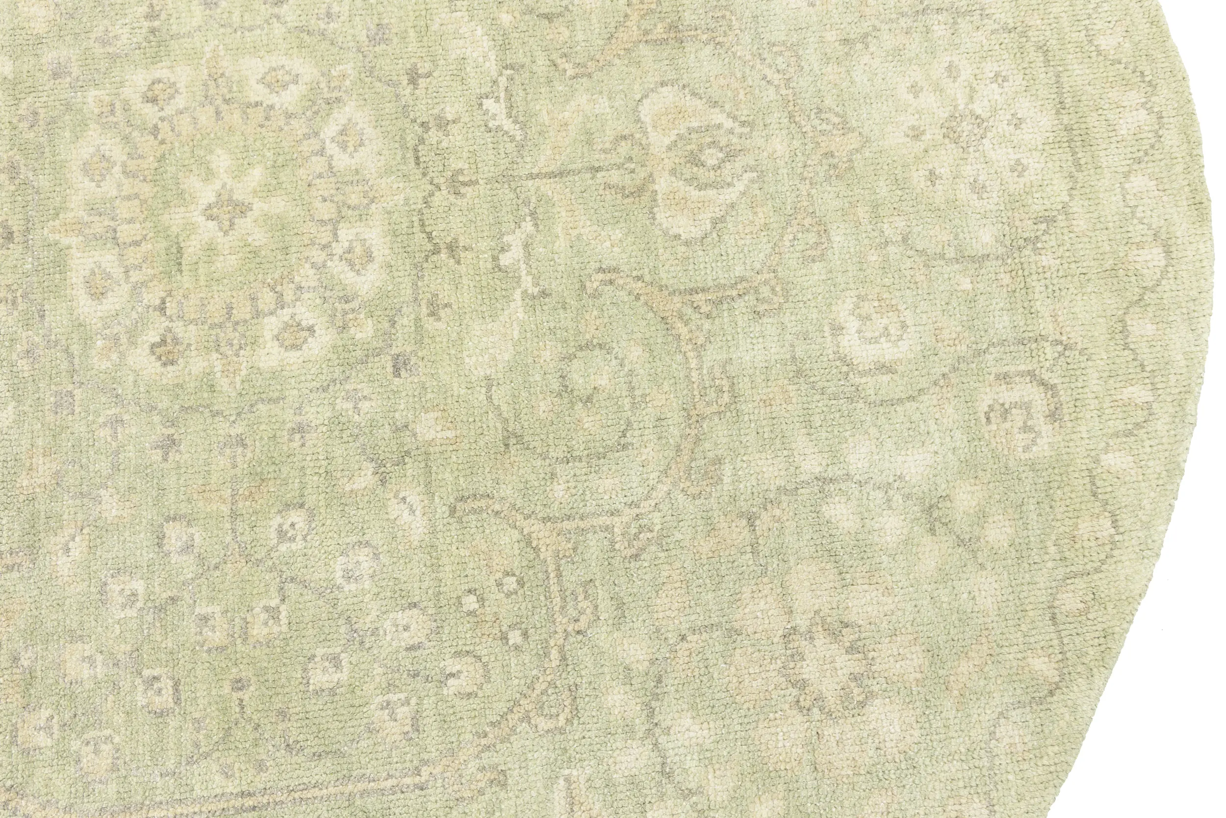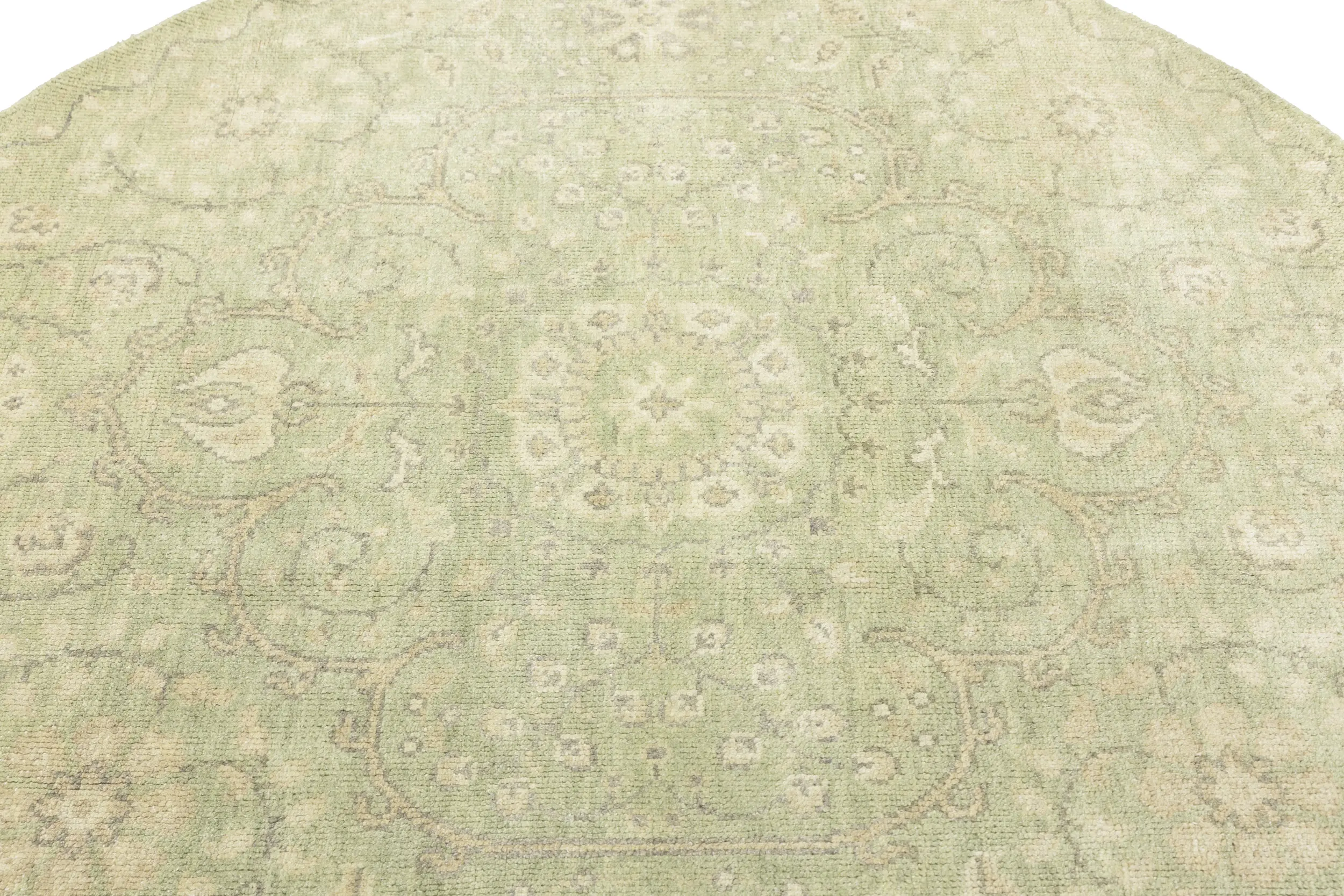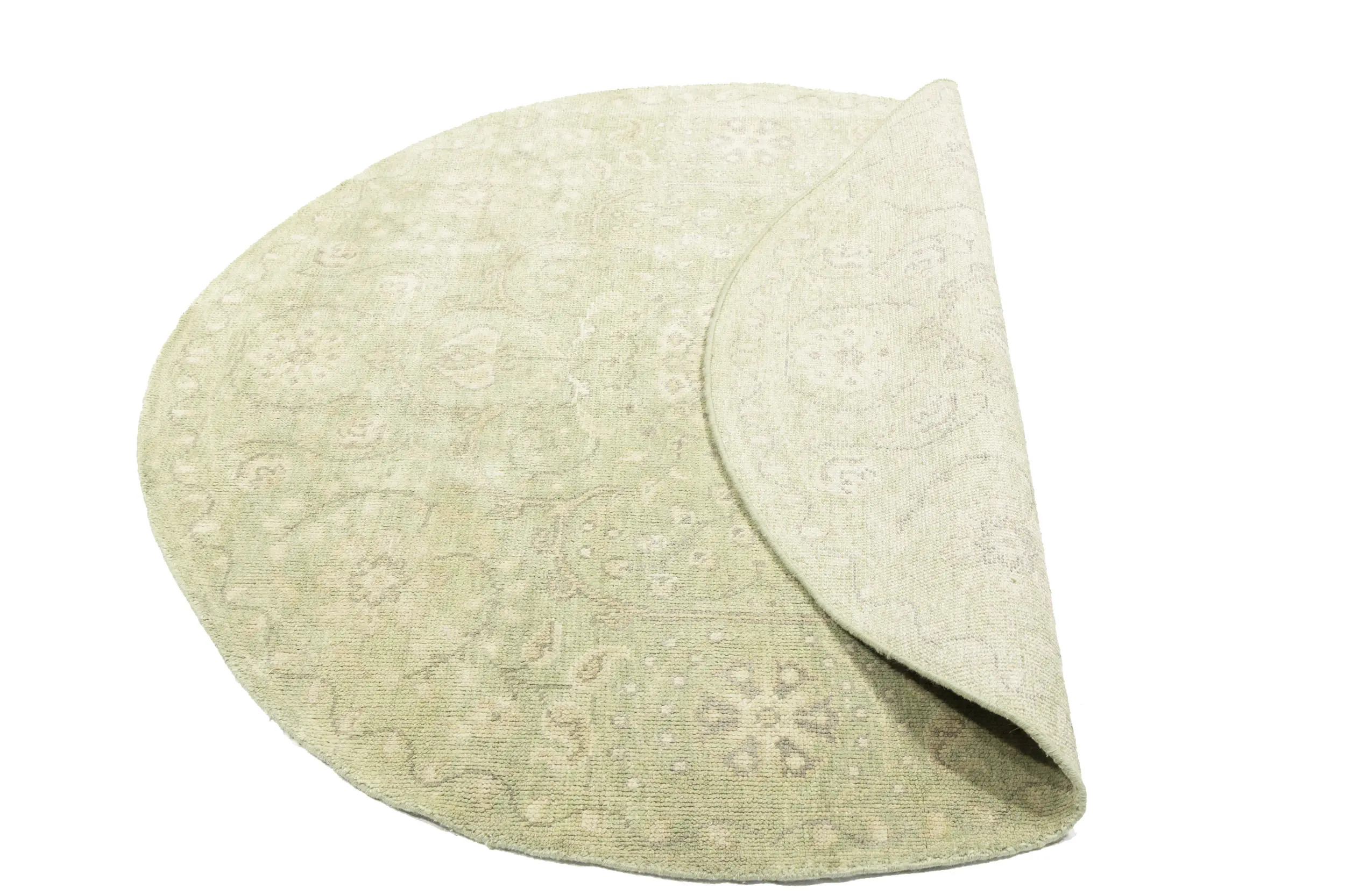 Muted Green Floral 6X6 Transitional Oriental Round Rug