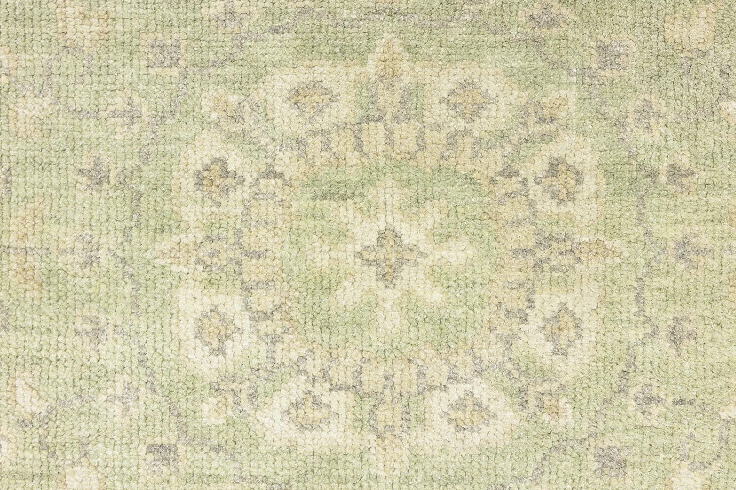 Handmade 6X6 green oriental rug made with vegetable dyes (fine wool pile and cotton foundation), superior knot count, and appealing ancient designs. This Oriental rug never will go out of style and would be among your most valuable treasures.