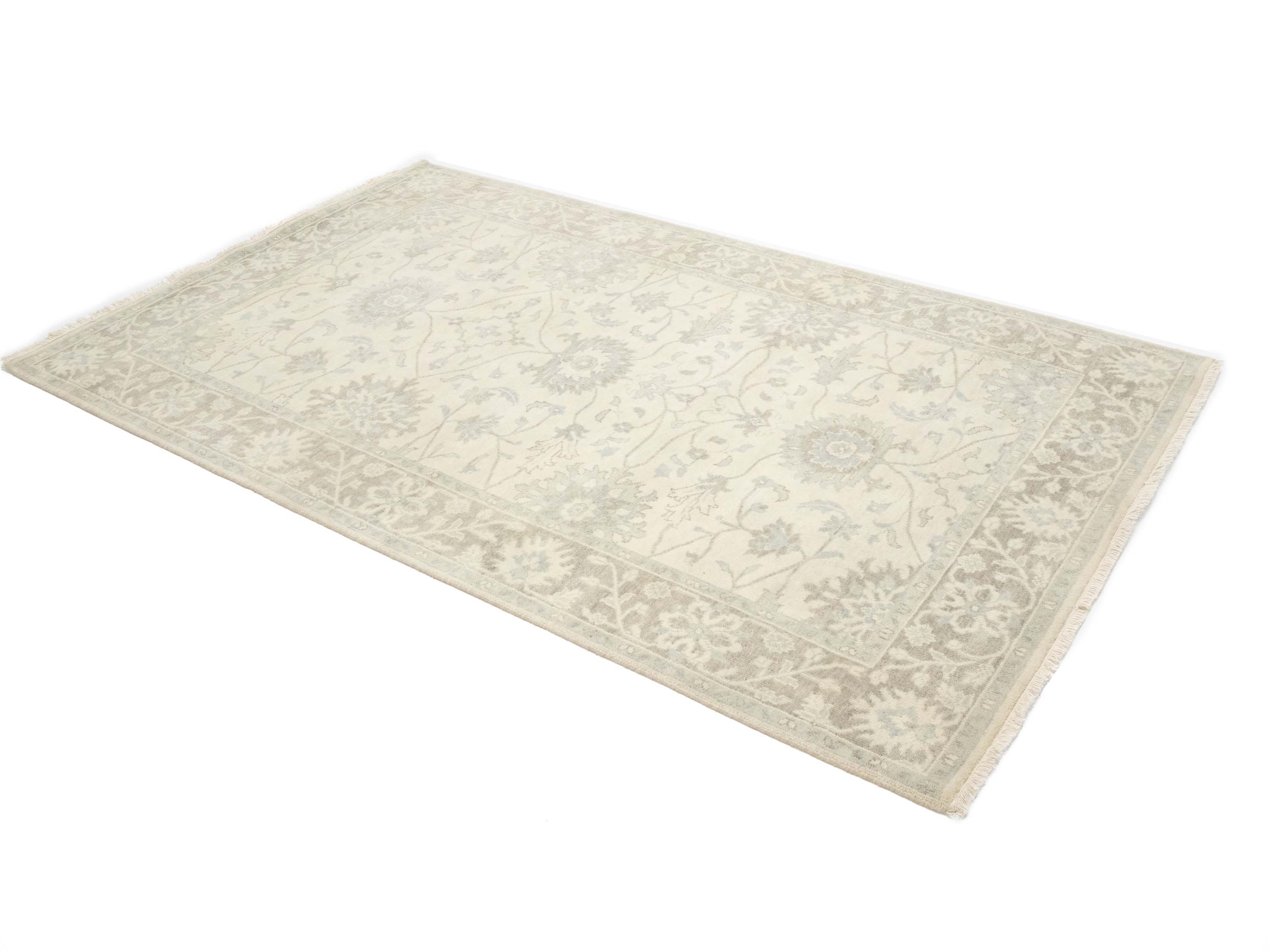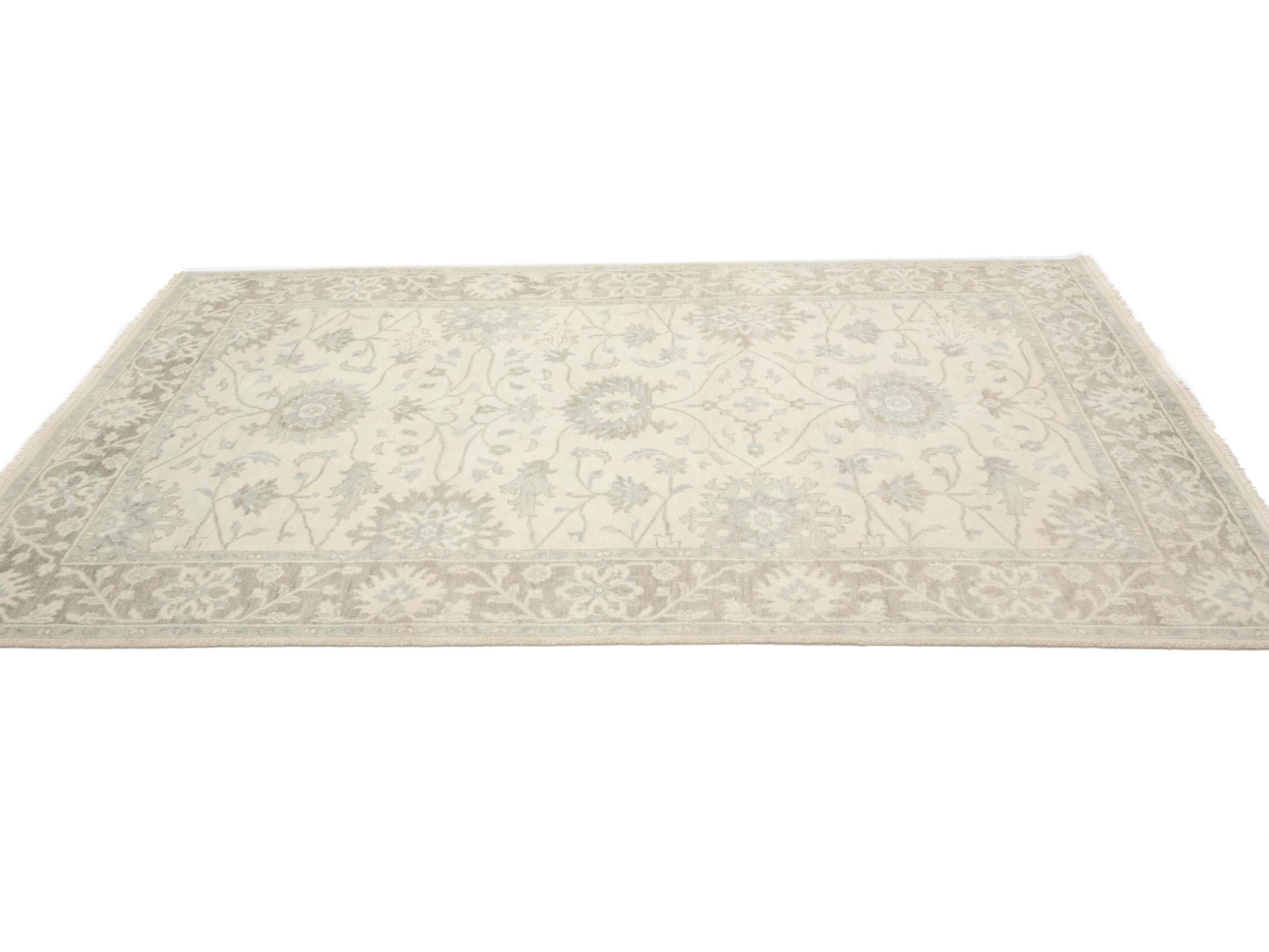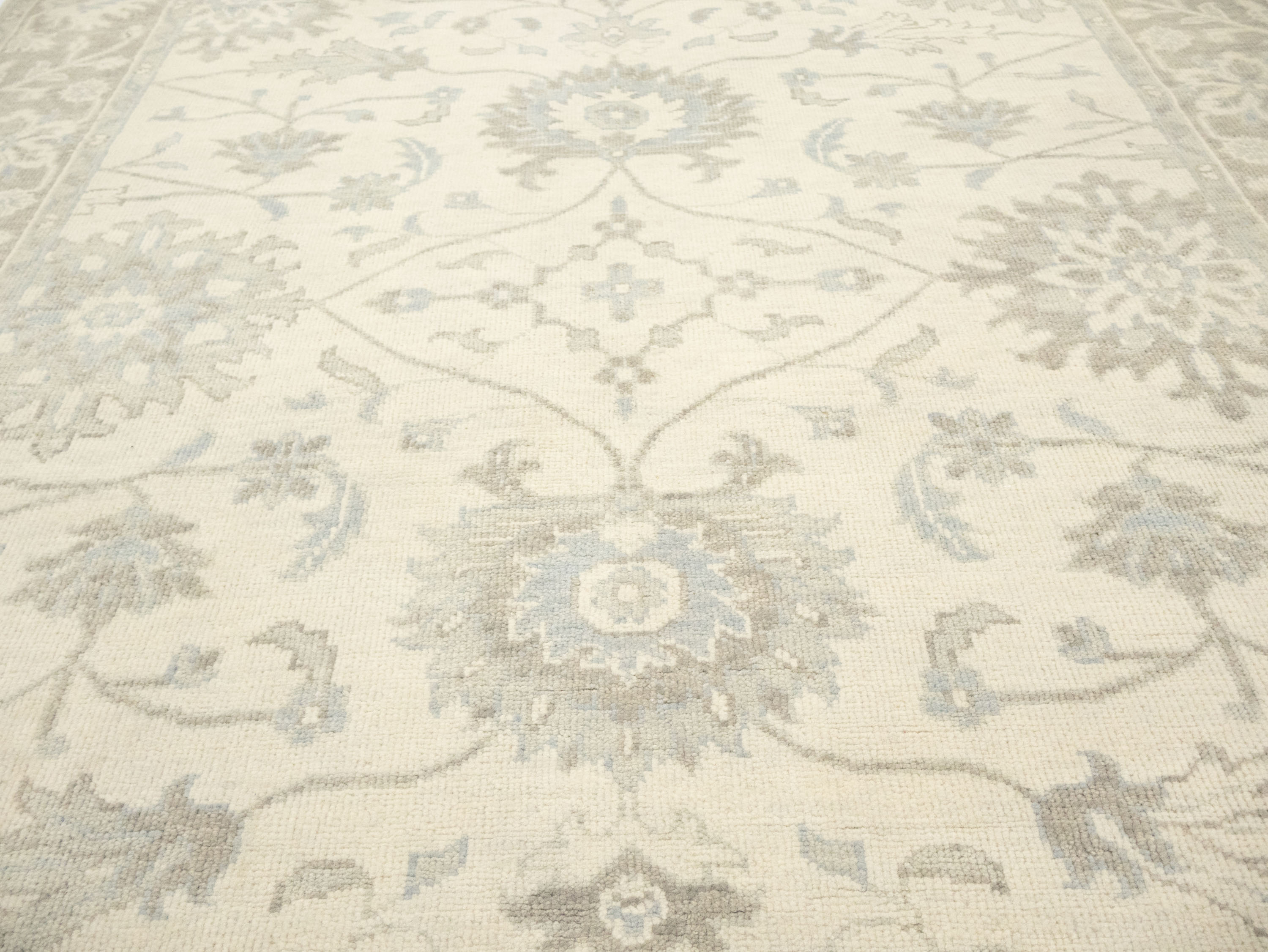 Muted Ivory Floral 5x8 Oushak Chobi Oriental Rug