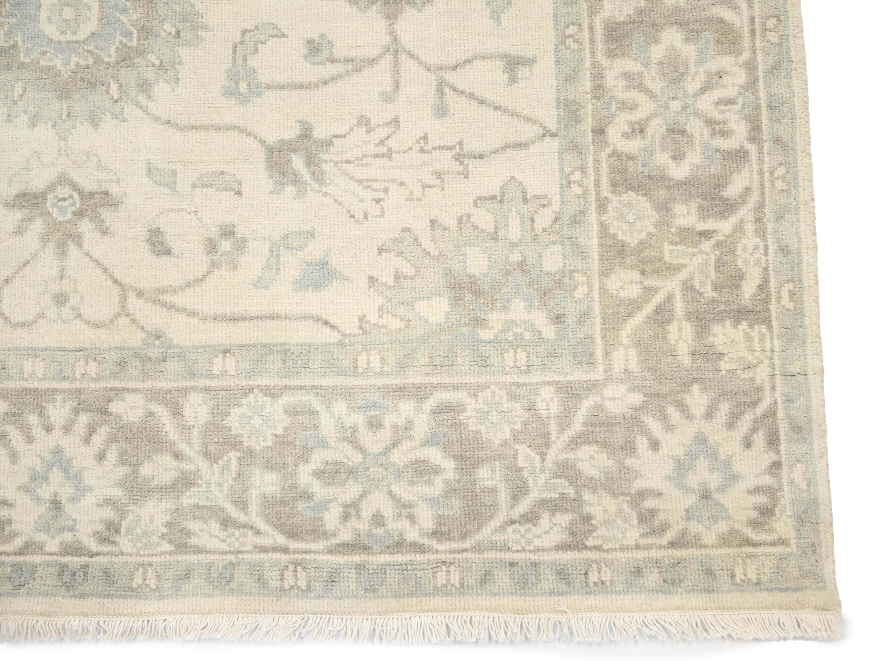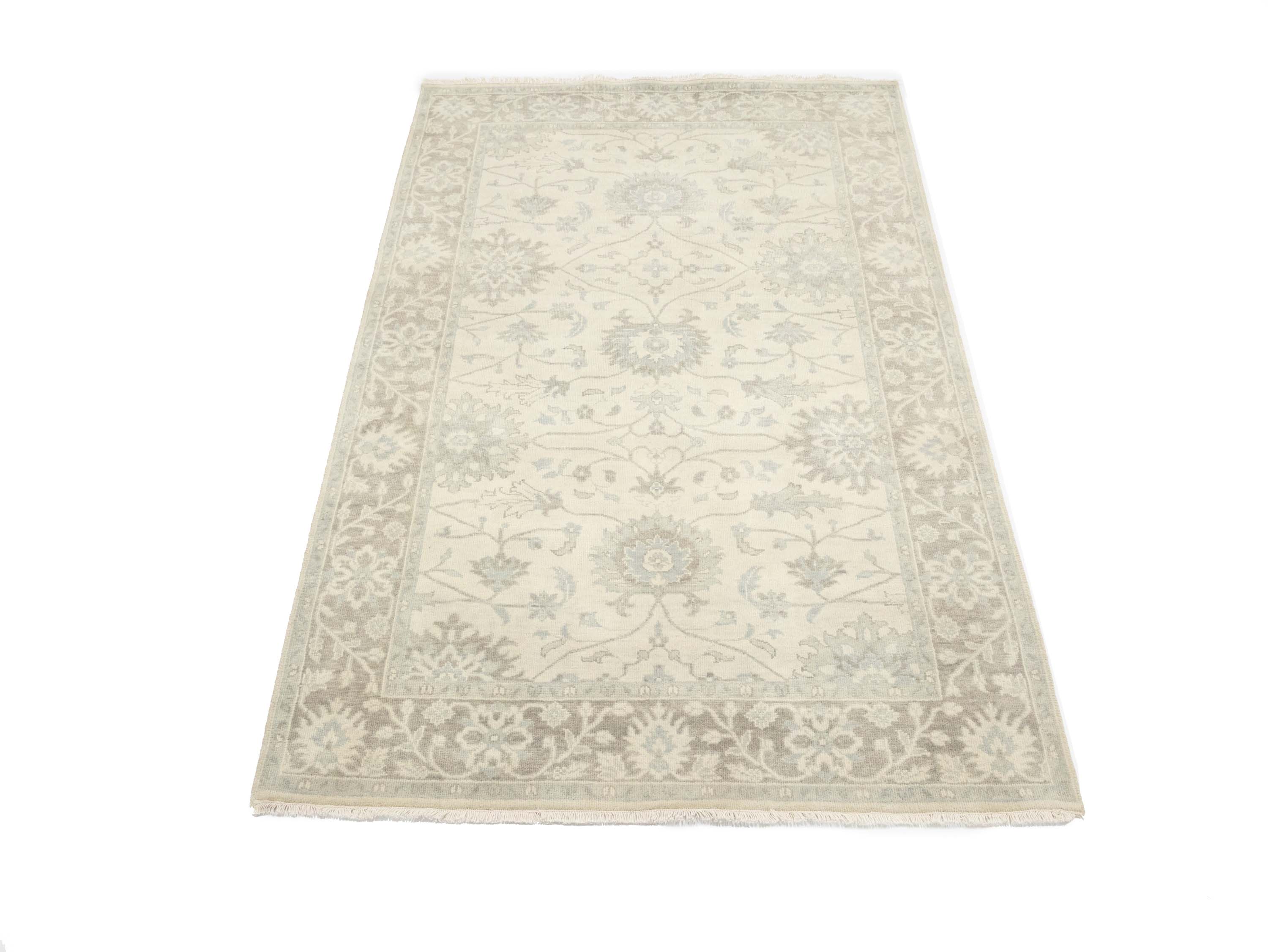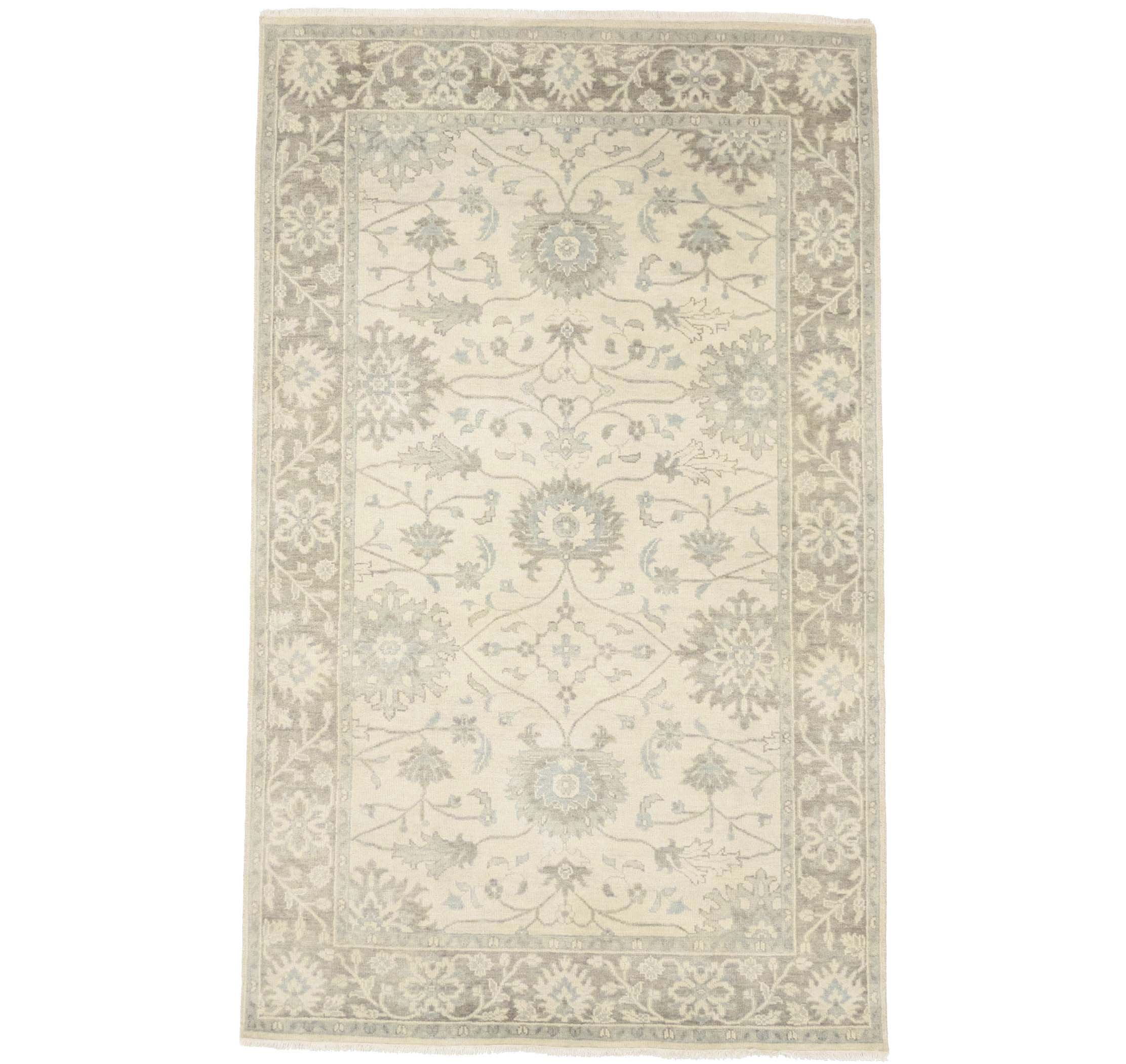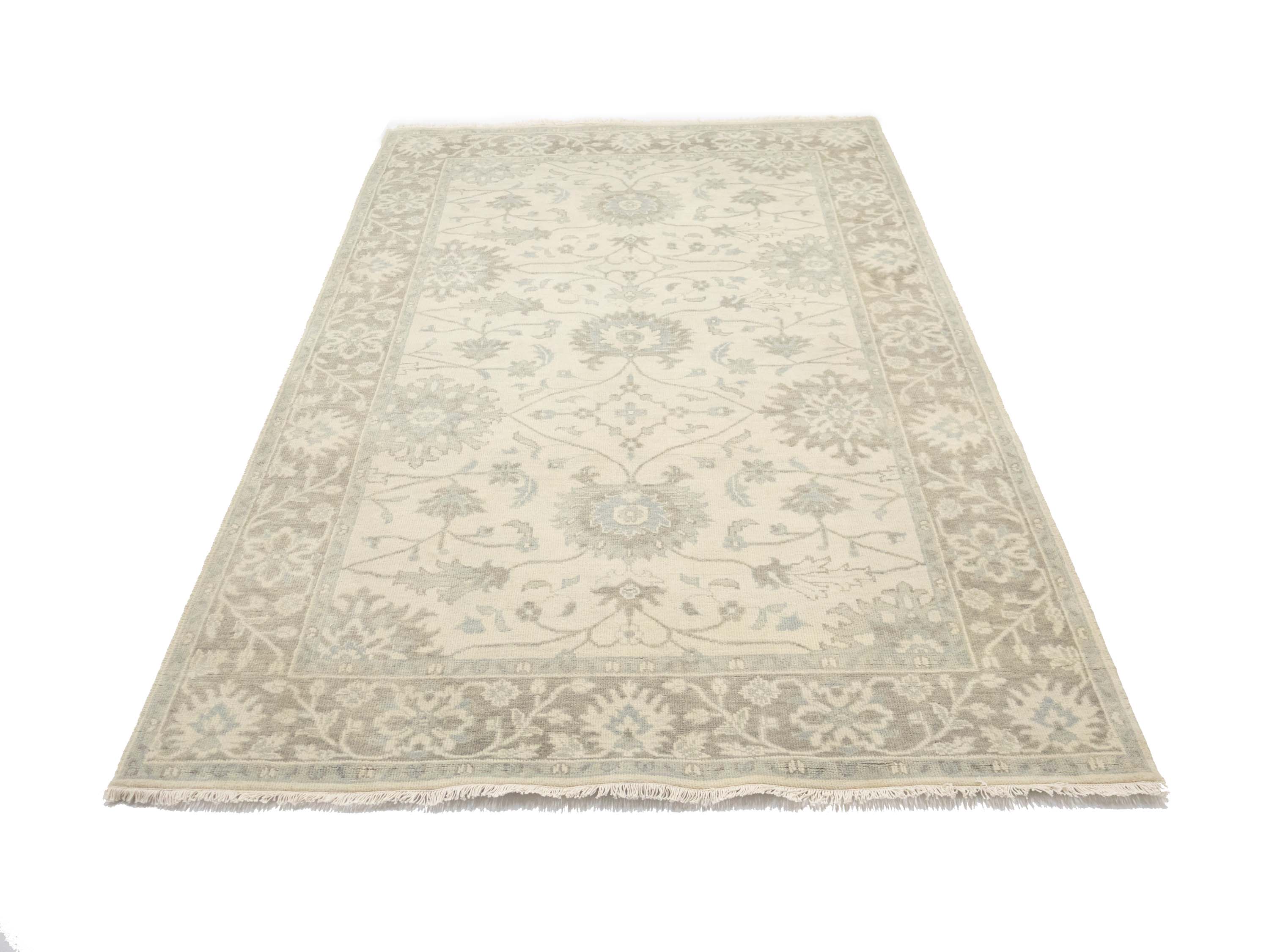 Muted Ivory Floral 5x8 Oushak Chobi Oriental Rug