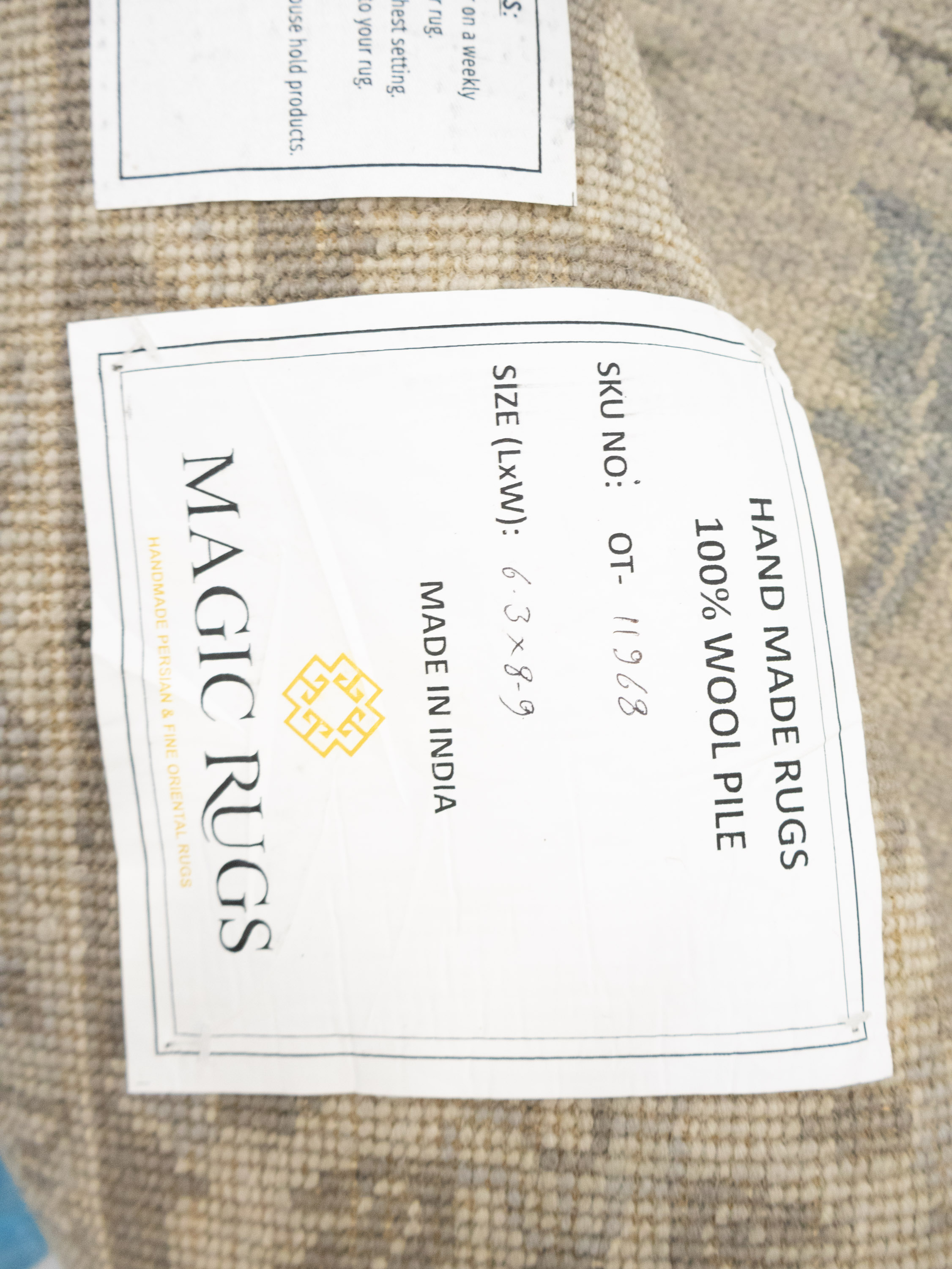 This original 6x9 Muted new Oriental rug was made by the hands of talented weavers influenced by a variety of gorgeous symmetrical artistic designs, to recreate the aged look of the unique piece with a richness of color and very balanced background field. What set this vintage style Oriental area rug from the others are the material and dye used (wool pile and cotton foundation), knot count, antique designs, fantastic grades, and its regional historical connection: it has deep roots, from the story of the people who produced it to the meaning of the symbols and colors displayed across its canvas that have been praised for centuries. This Indian home décor carpet will be completely cozy and inviting that never will go out of style! Also, this Oriental rug would be among your most valuable treasures, it is a great investment that accrues value over time, and it will last a lifetime because was woven with high-quality, all-natural wool. Eco-friendly, opulent yet affordable; this rug will give you an extra pop of character to help define your home environment with sophistication and warmth that will capture the eyes and attention of your audience (homeowners, designers, decorators, family and friends). OT-11968