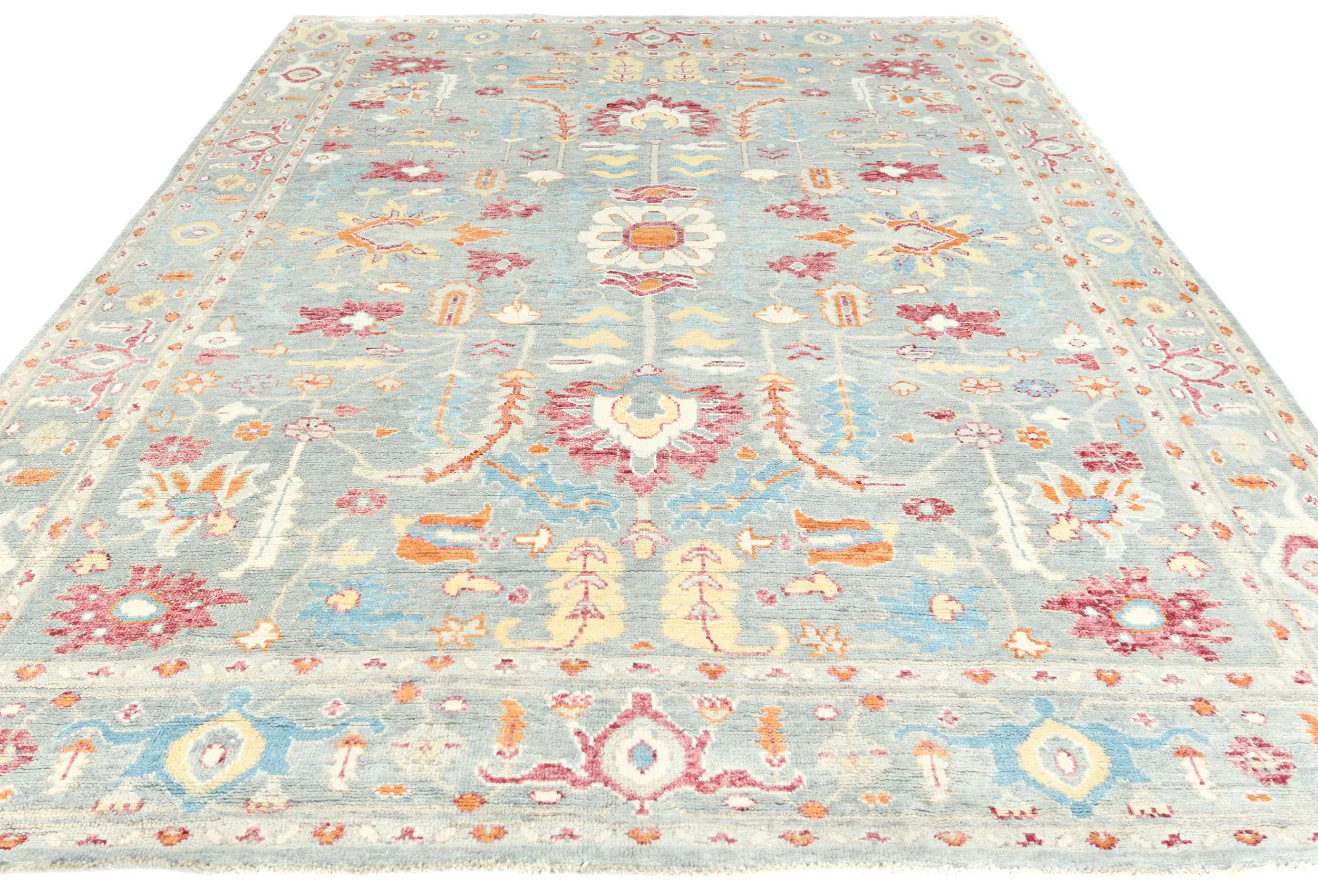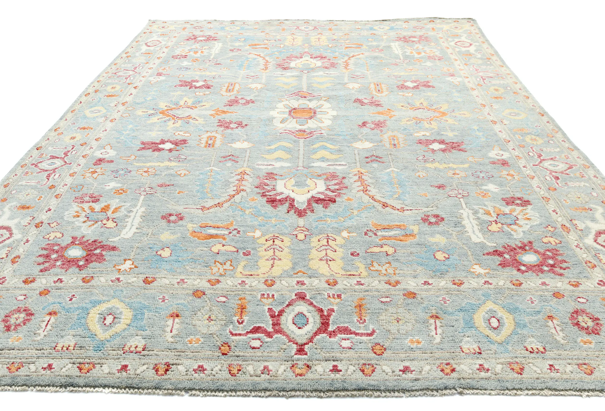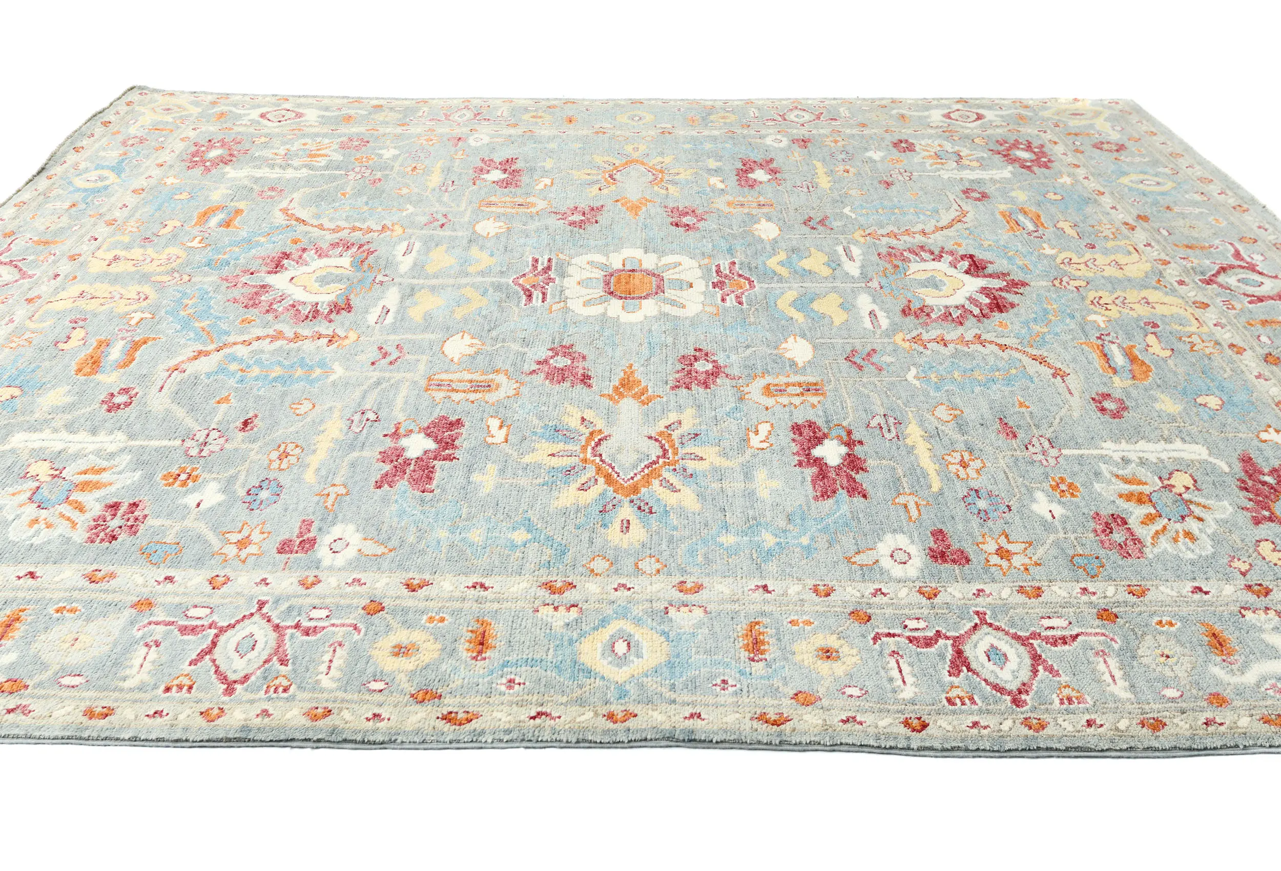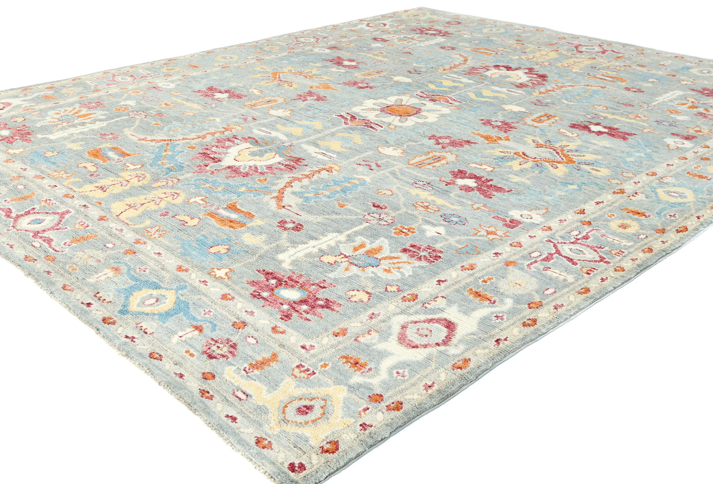 Muted Light Blue Floral 8X10 Transitional Oushak Oriental Rug