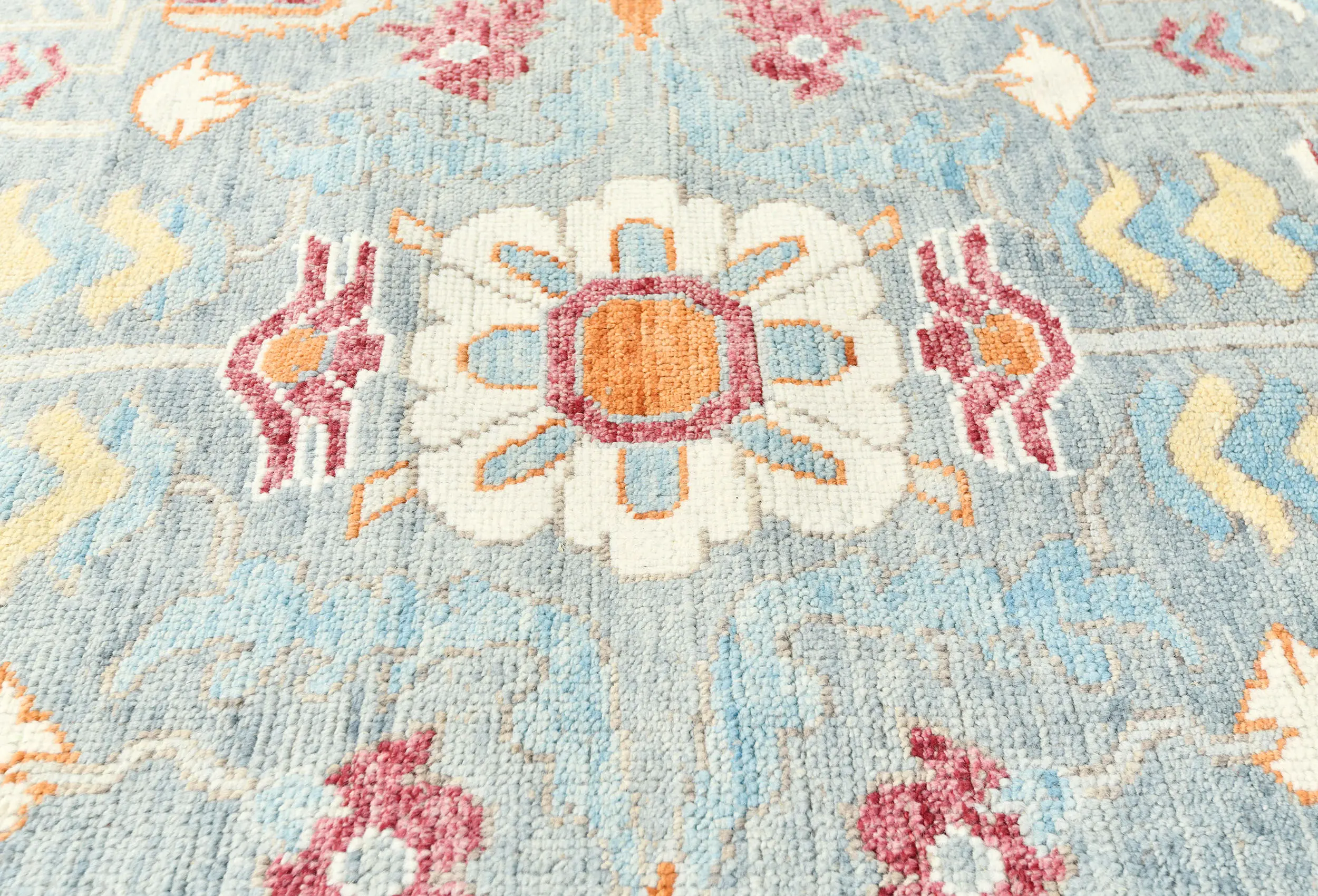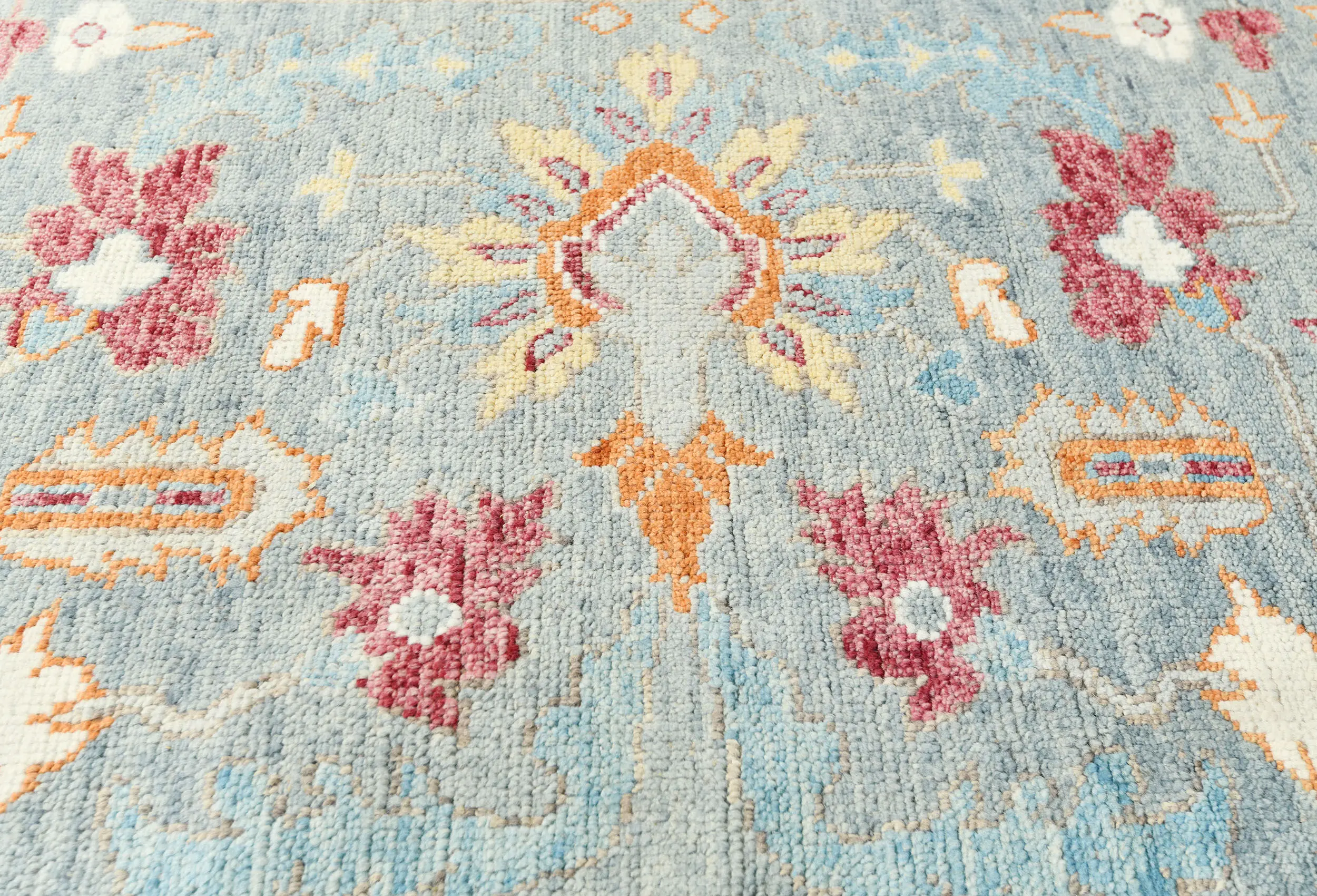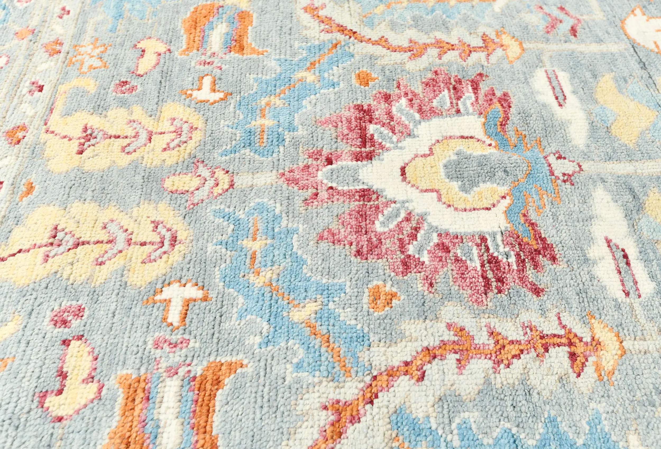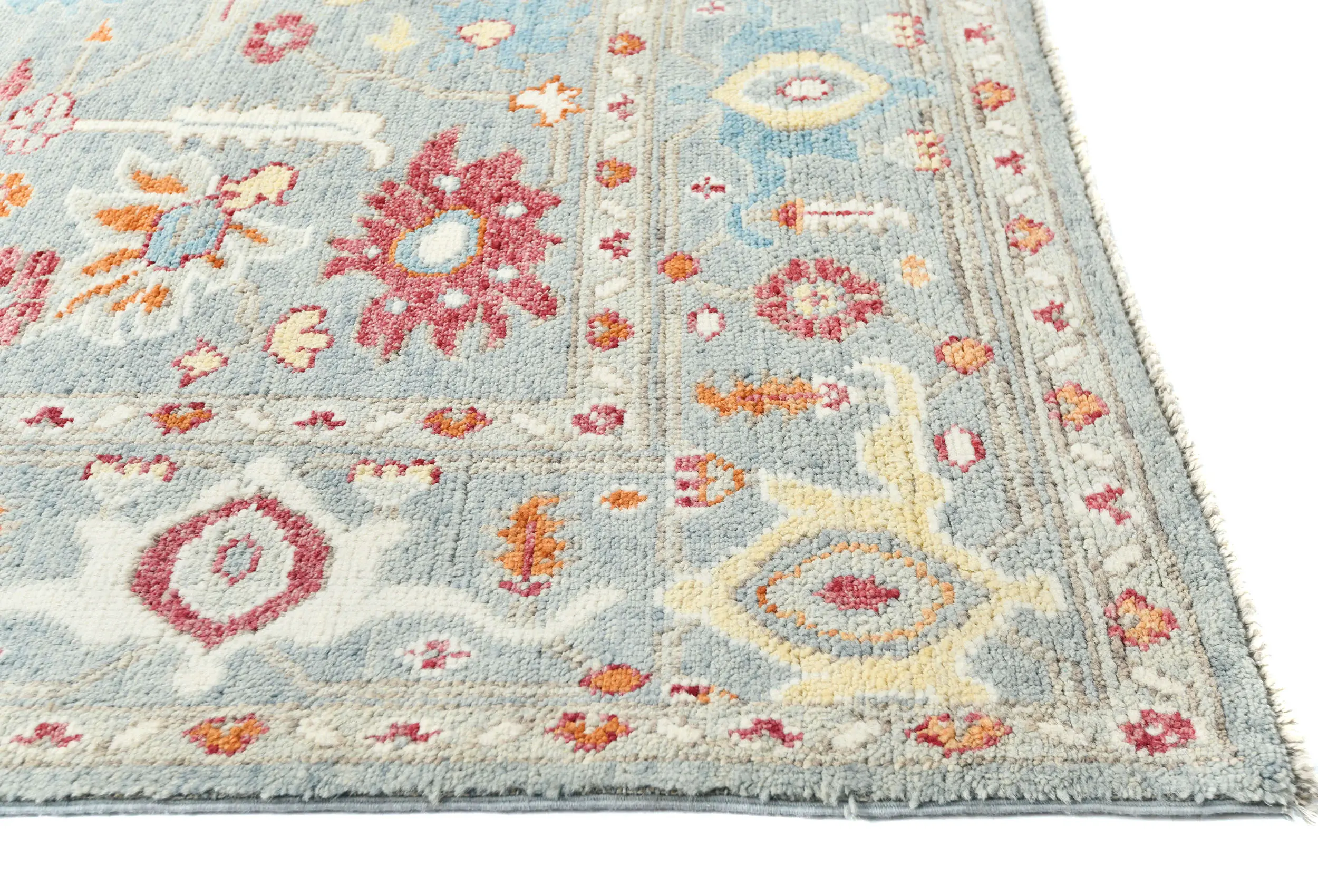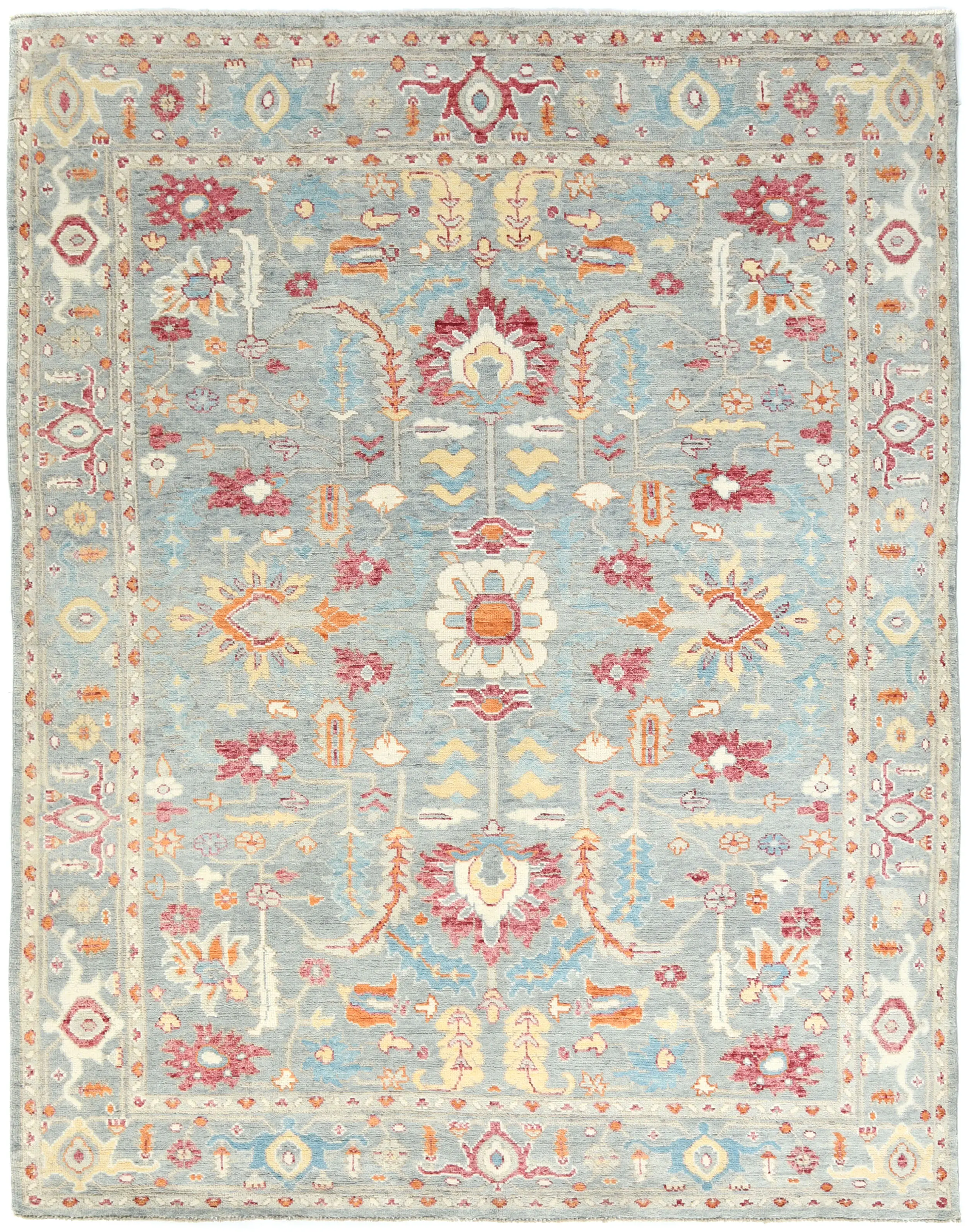 Muted Light Blue Floral 8X10 Transitional Oushak Oriental Rug