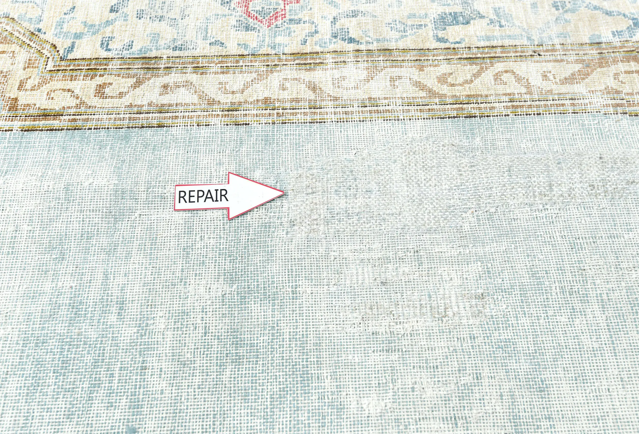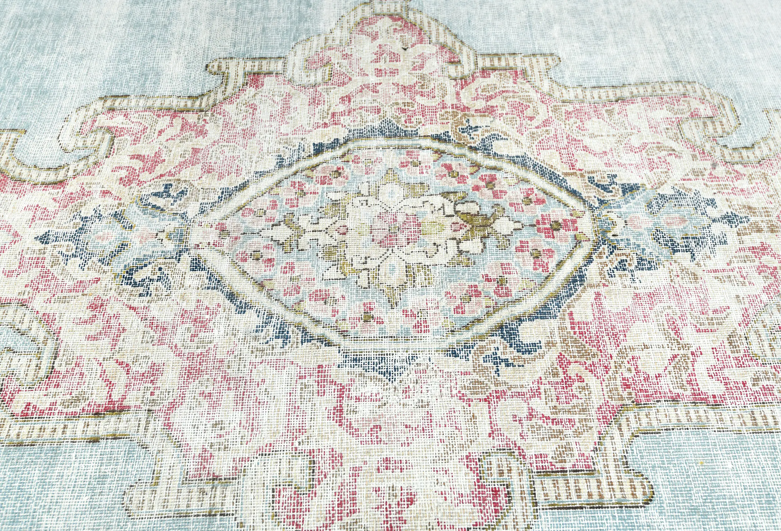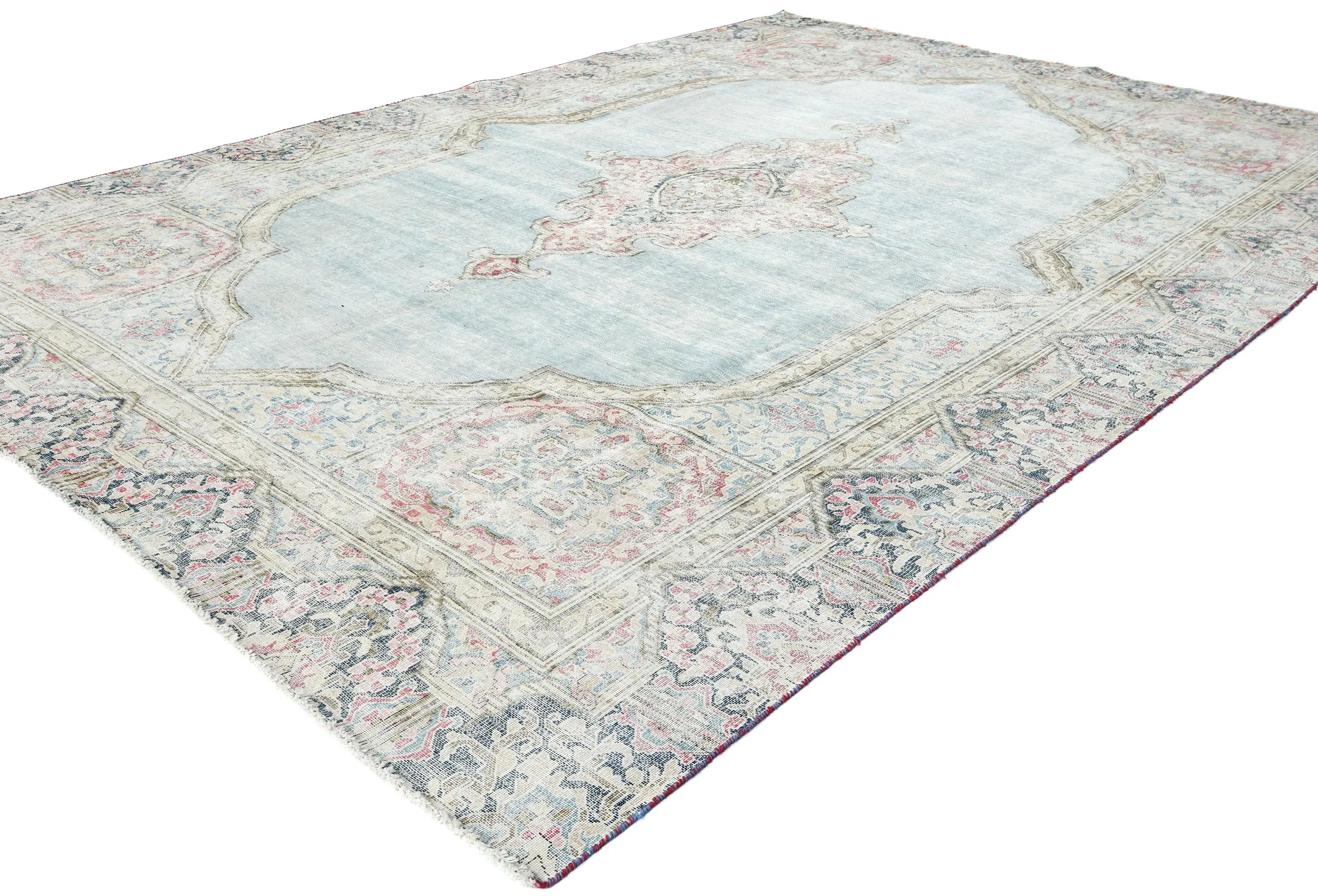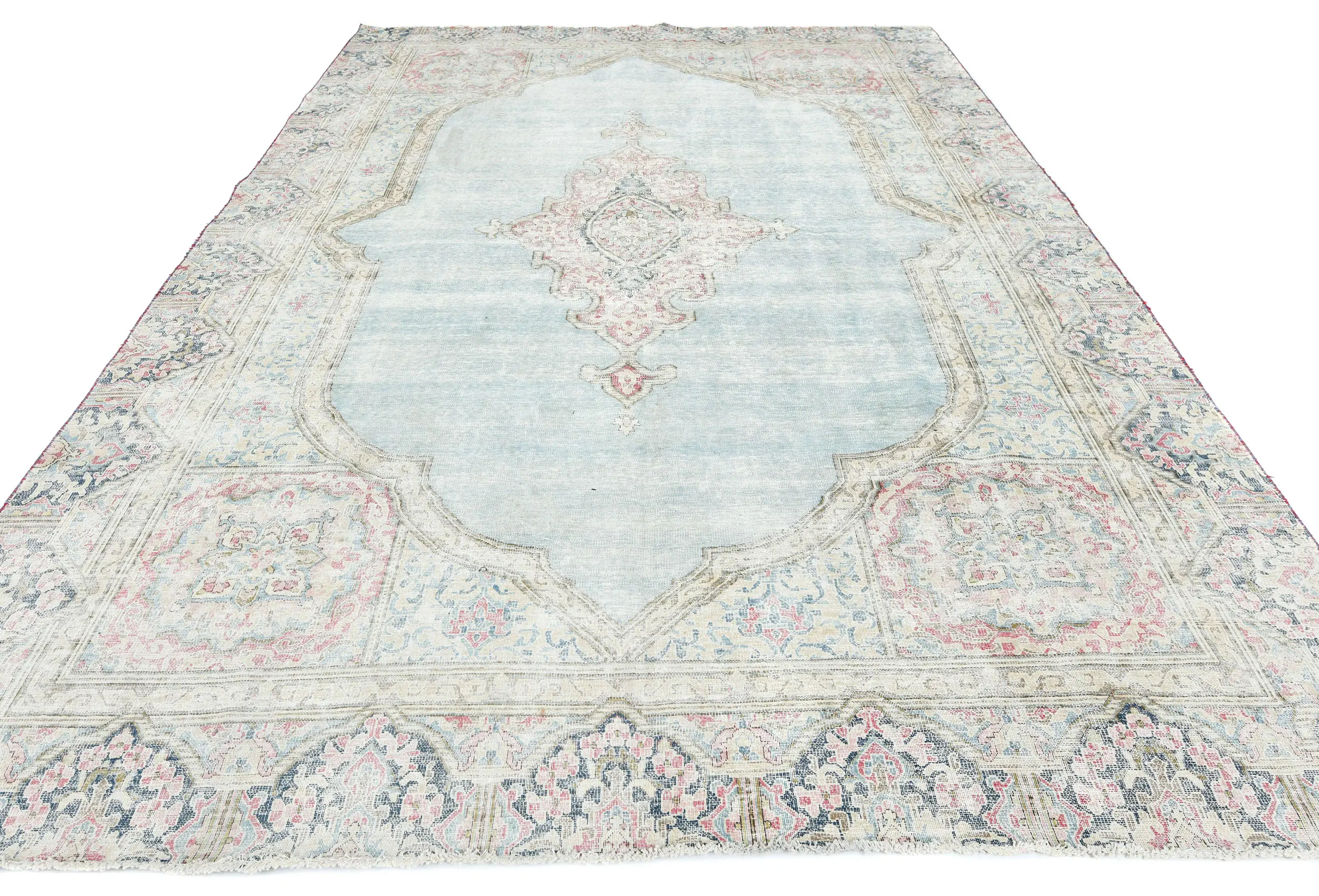 Muted Light Blue Floral 8X11 Distressed Vintage Oriental Rug